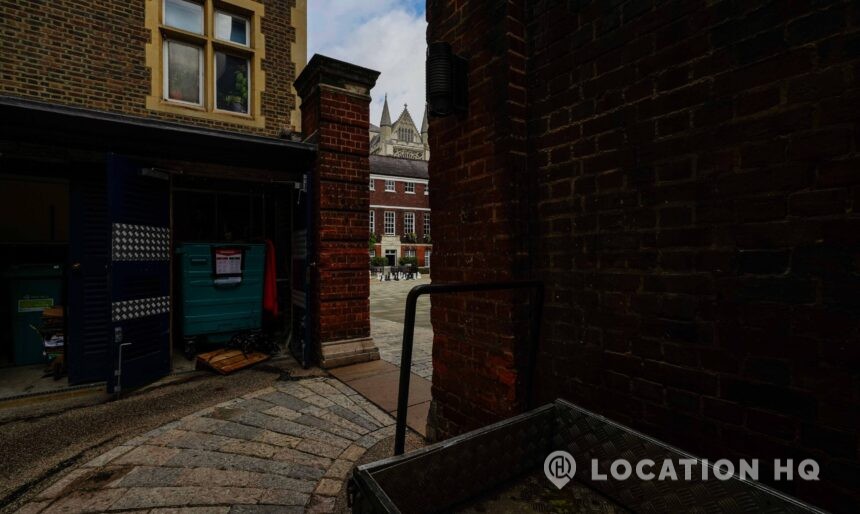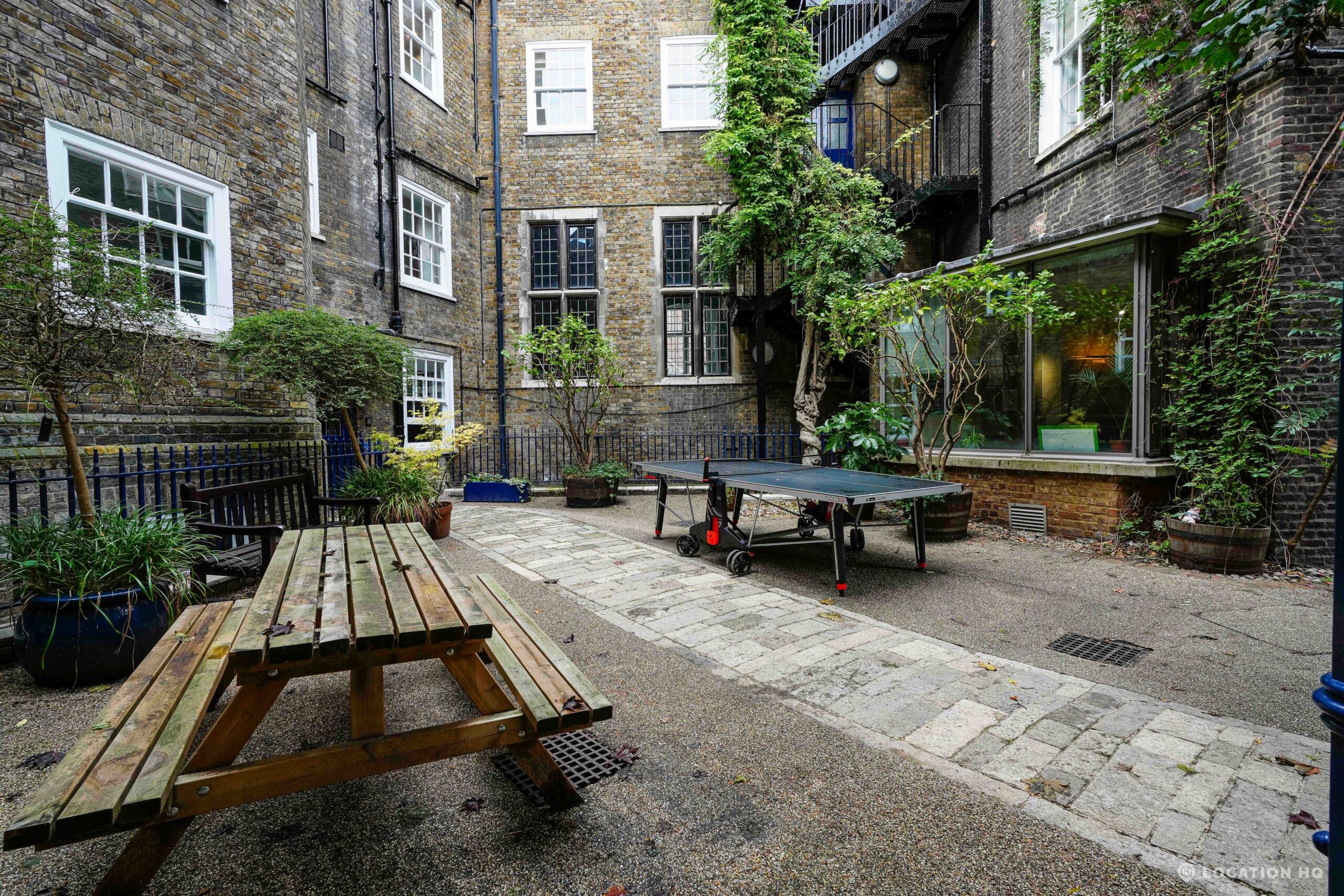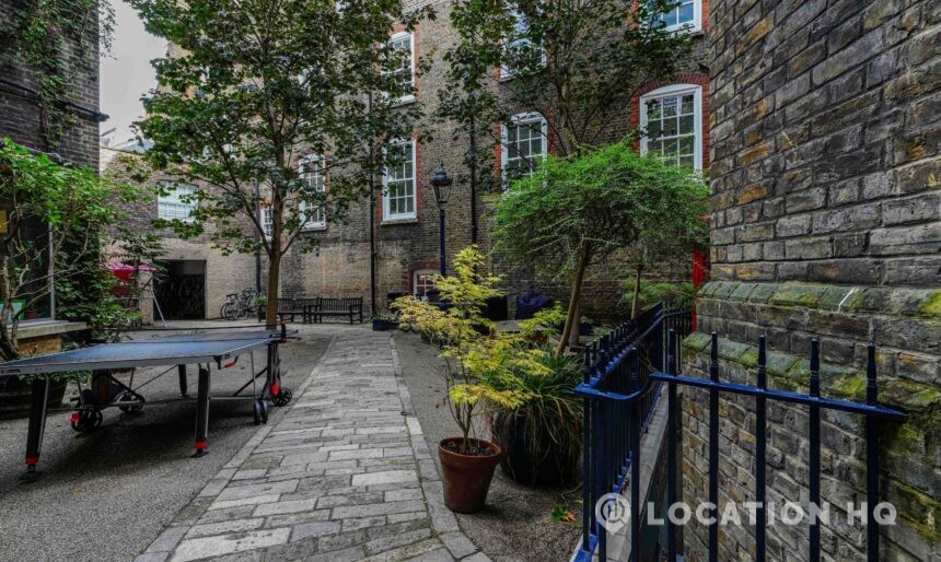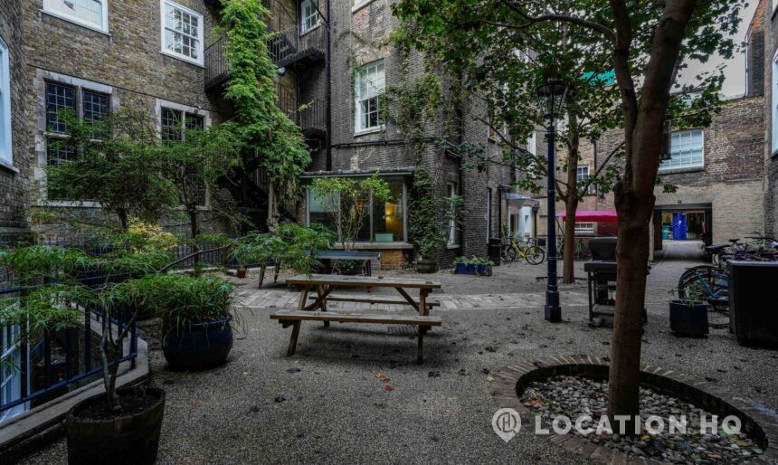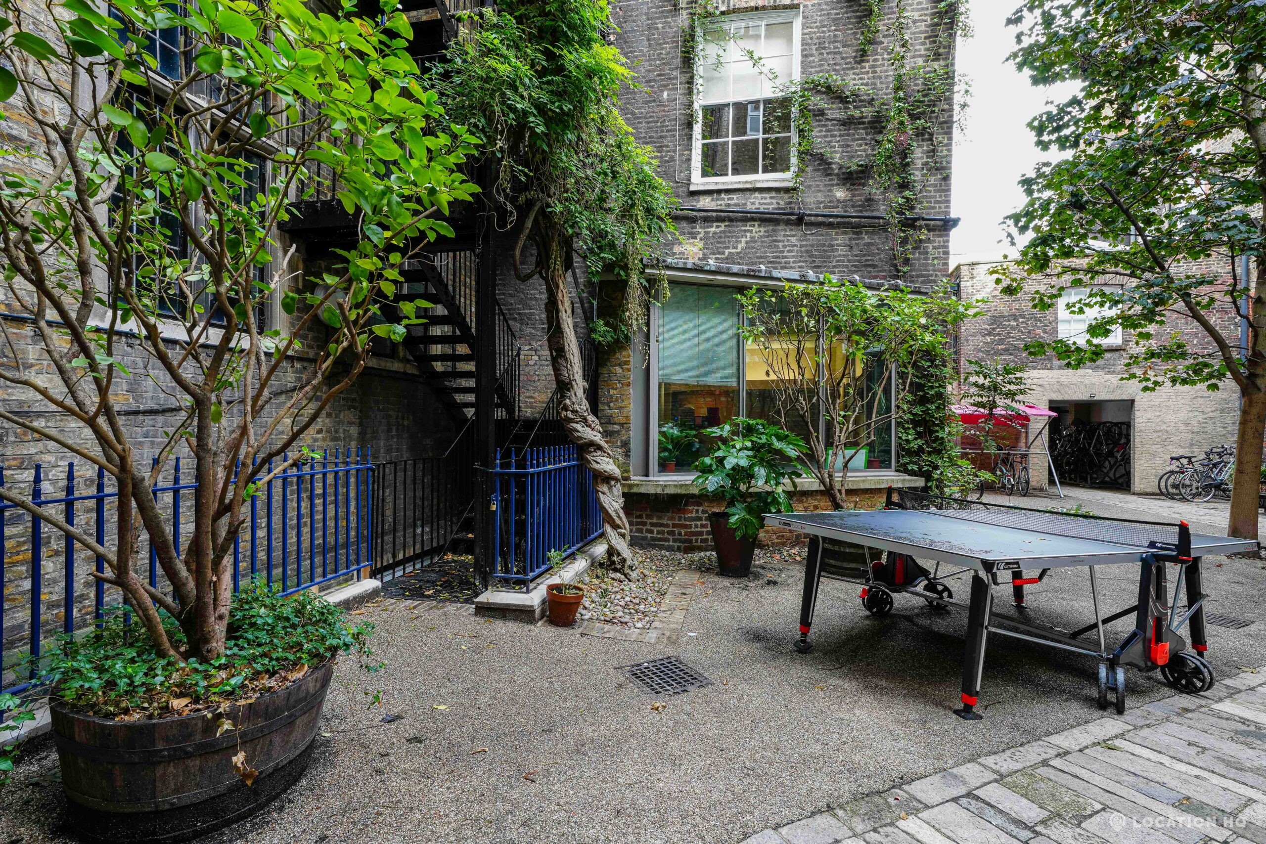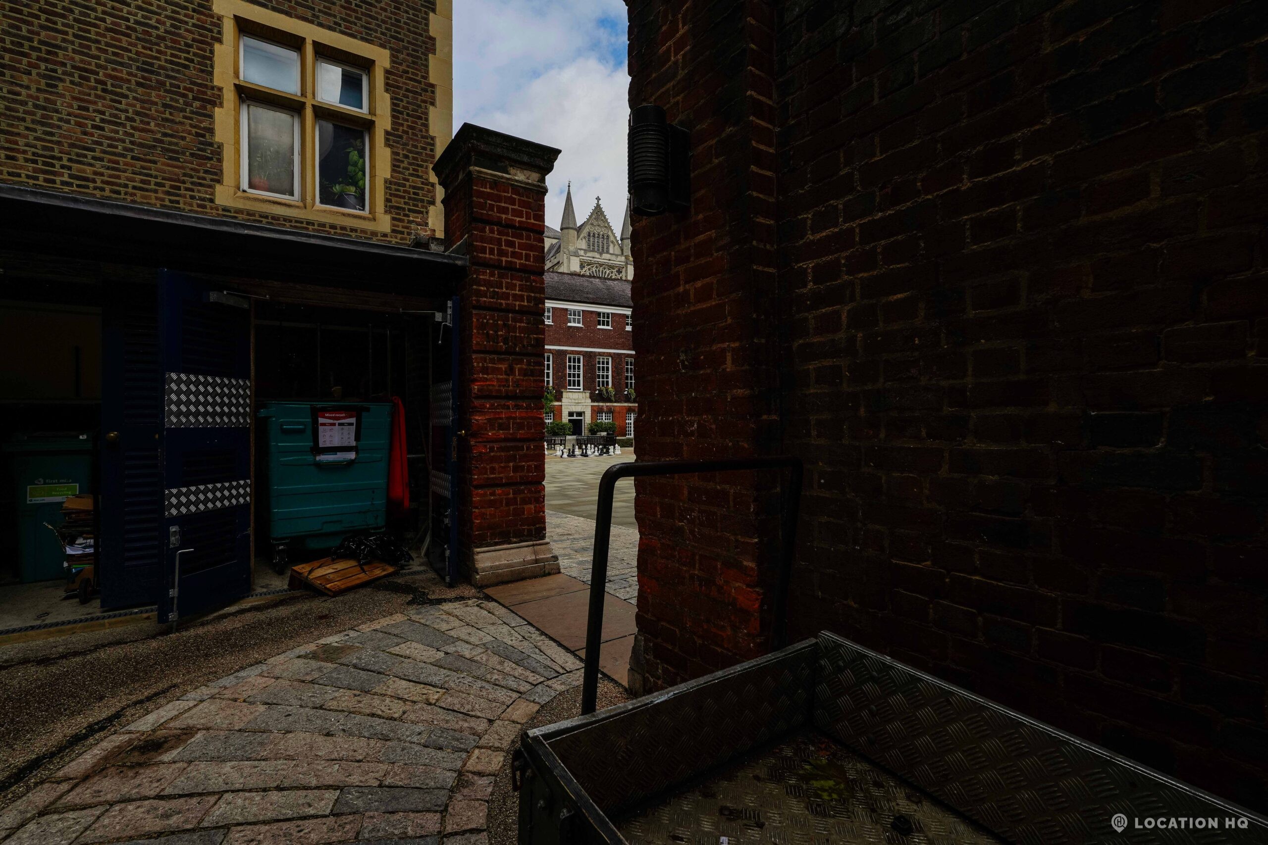 This Courtyard offers a softer, greener feel within a historic setting. Mature trees, simple benches and paved walkways surrounded by period brickwork and tall windows. Somehow romantic. Could be a double for a council flat block courtyard if you hang a little washing, all owned by one owner.