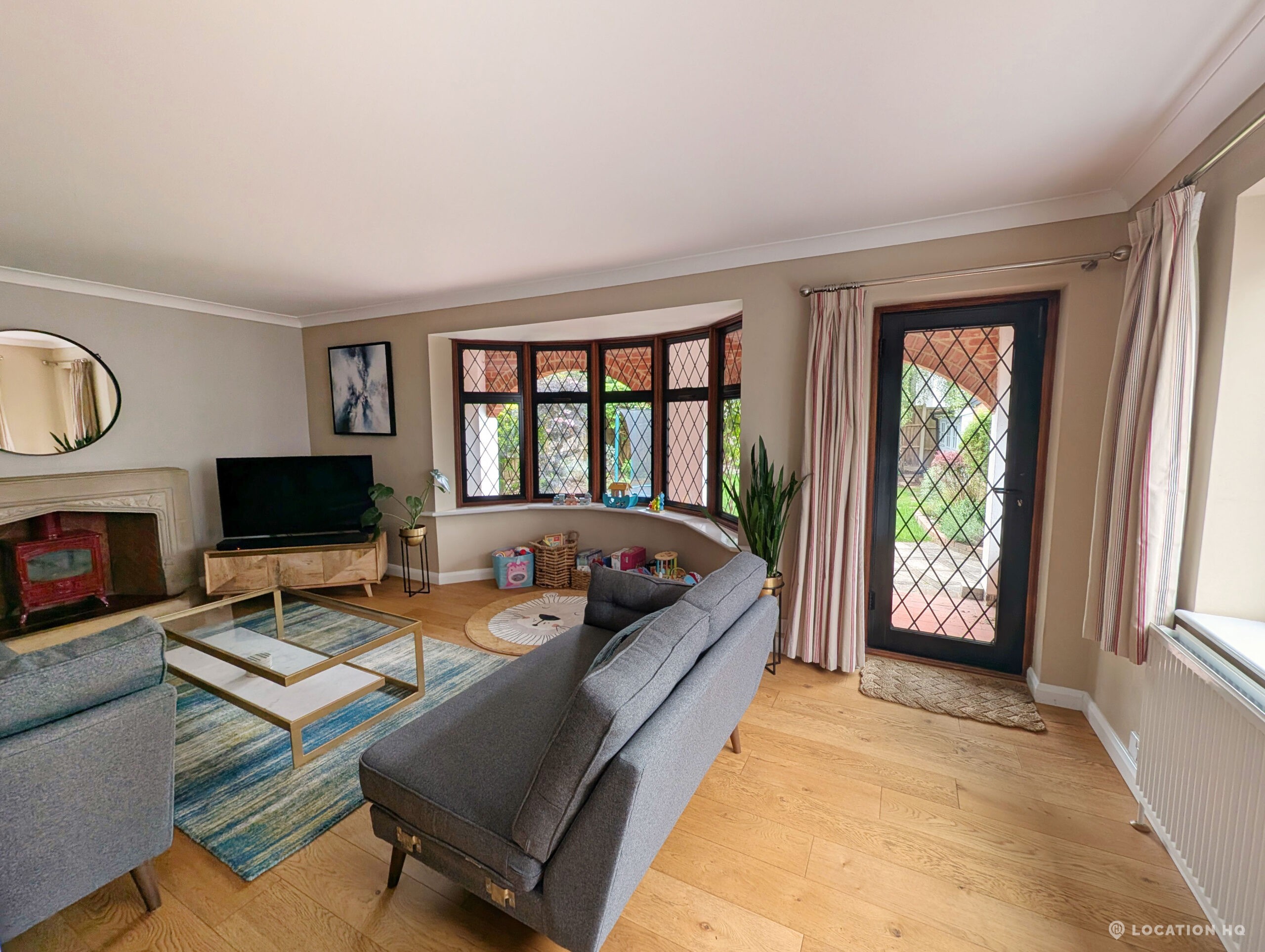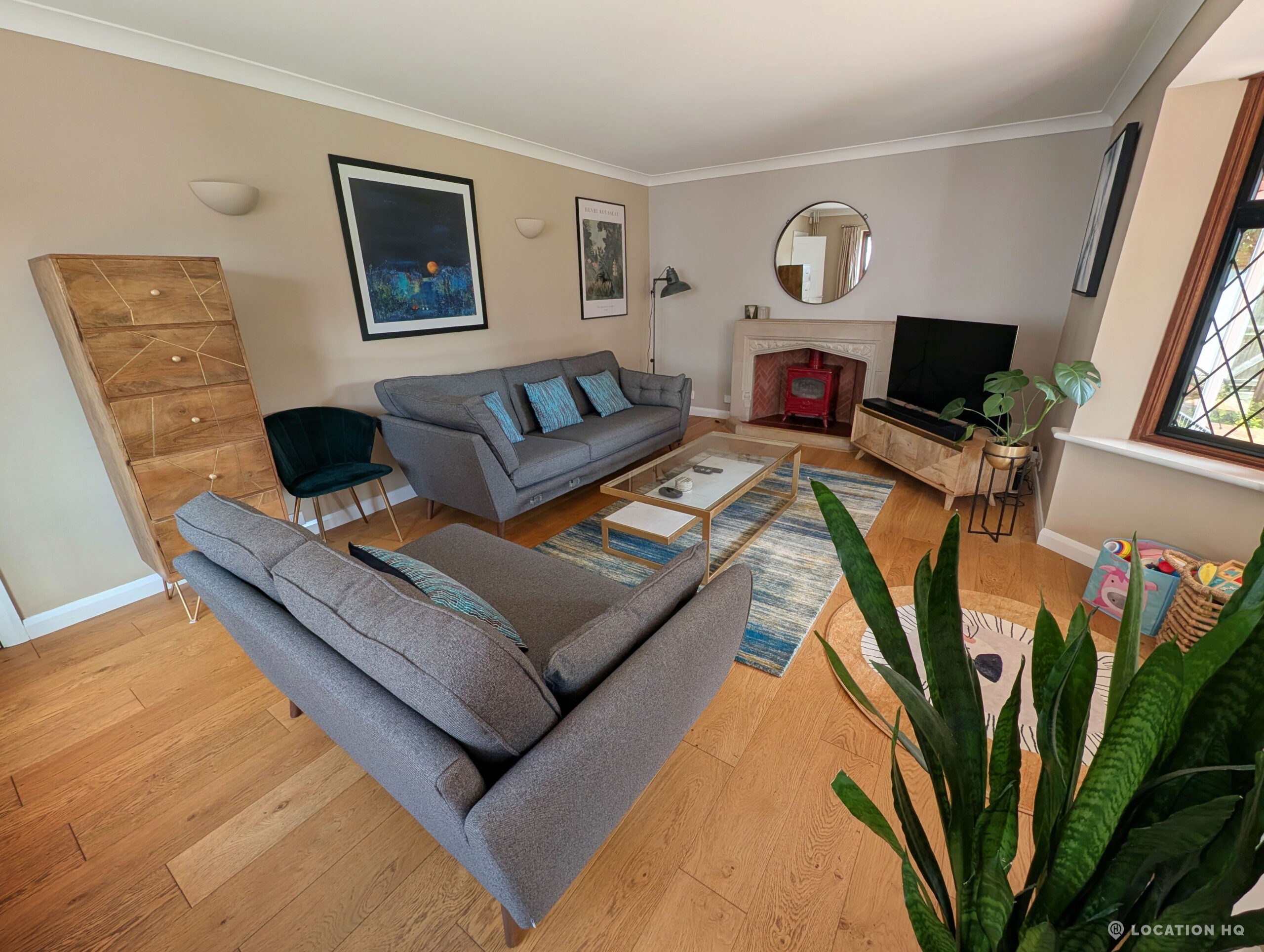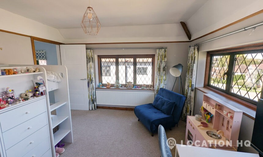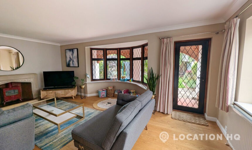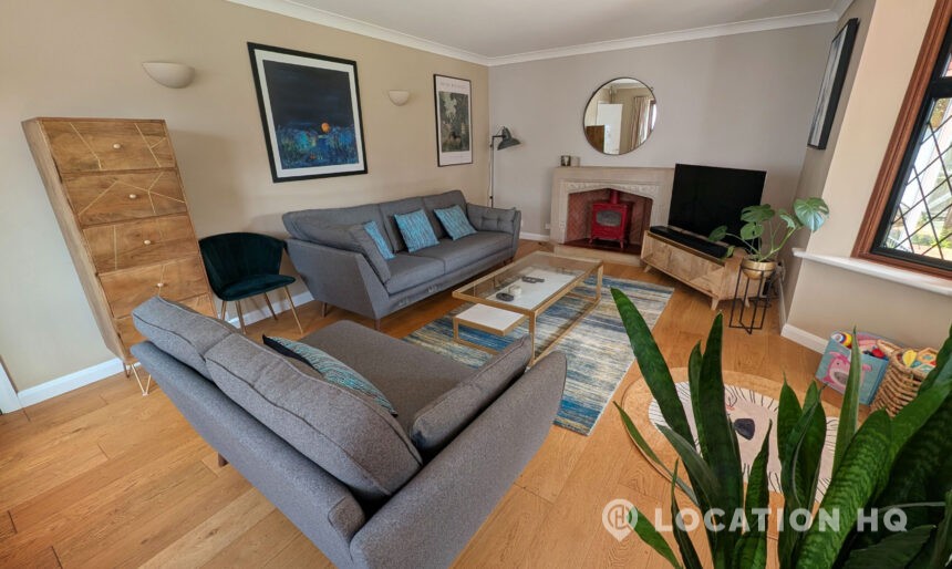 This detached house presents a compelling and versatile setting for film and television productions. The property features an open-plan kitchen and dining area, appointed with stone countertops, providing an elegant and practical backdrop for scenes requiring culinary and dining themes. The spacious living room, centred around a log burner, exudes warmth and comfort, making it an ideal space for various narrative scenarios.