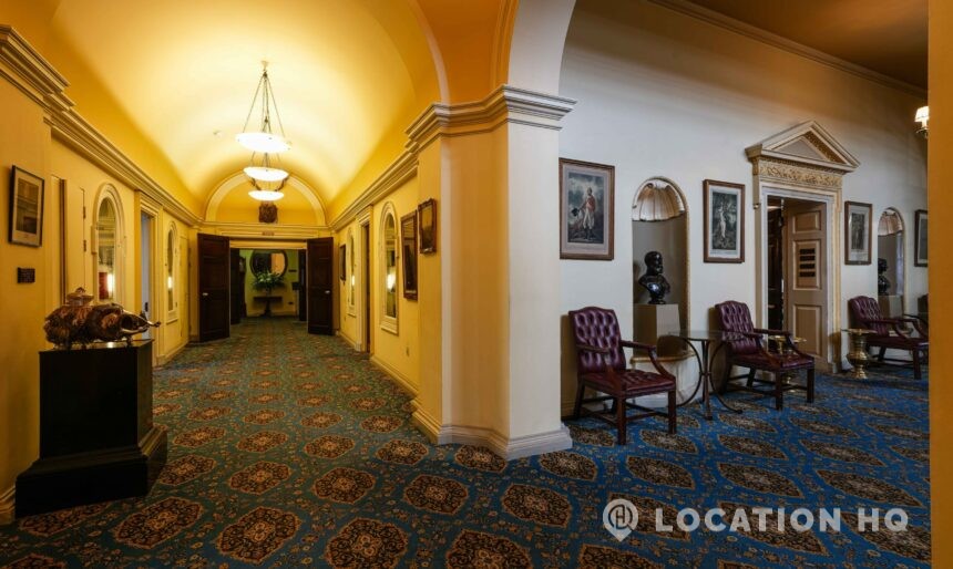 Private members club. This opulent venue boasts an array of meticulously designed function rooms, each catering to diverse needs within the realm of film and television production. Among the noteworthy spaces are the sophisticated conference rooms, the distinguished oval room, and the refined card room, each offering a distinct ambiance tailored to elevate the visual narrative of any production. The venue’s architectural splendor is accentuated by a grand staircase that exudes timeless elegance, a meticulously curated library, a stately dining room, and a refined bar area. As a prized location within the Location HQ collection, this distinguished private members club stands ready to provide a backdrop of unparalleled refinement for the most discerning film and television projects.