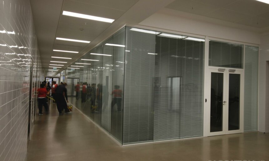 Ultra modern school building. Easy double for an office or a laboratory. Fantastic interior. Exceptional natural light. Classrooms, gyms, library, rooftop, changing rooms and locker rooms. Plenty of parking on site.