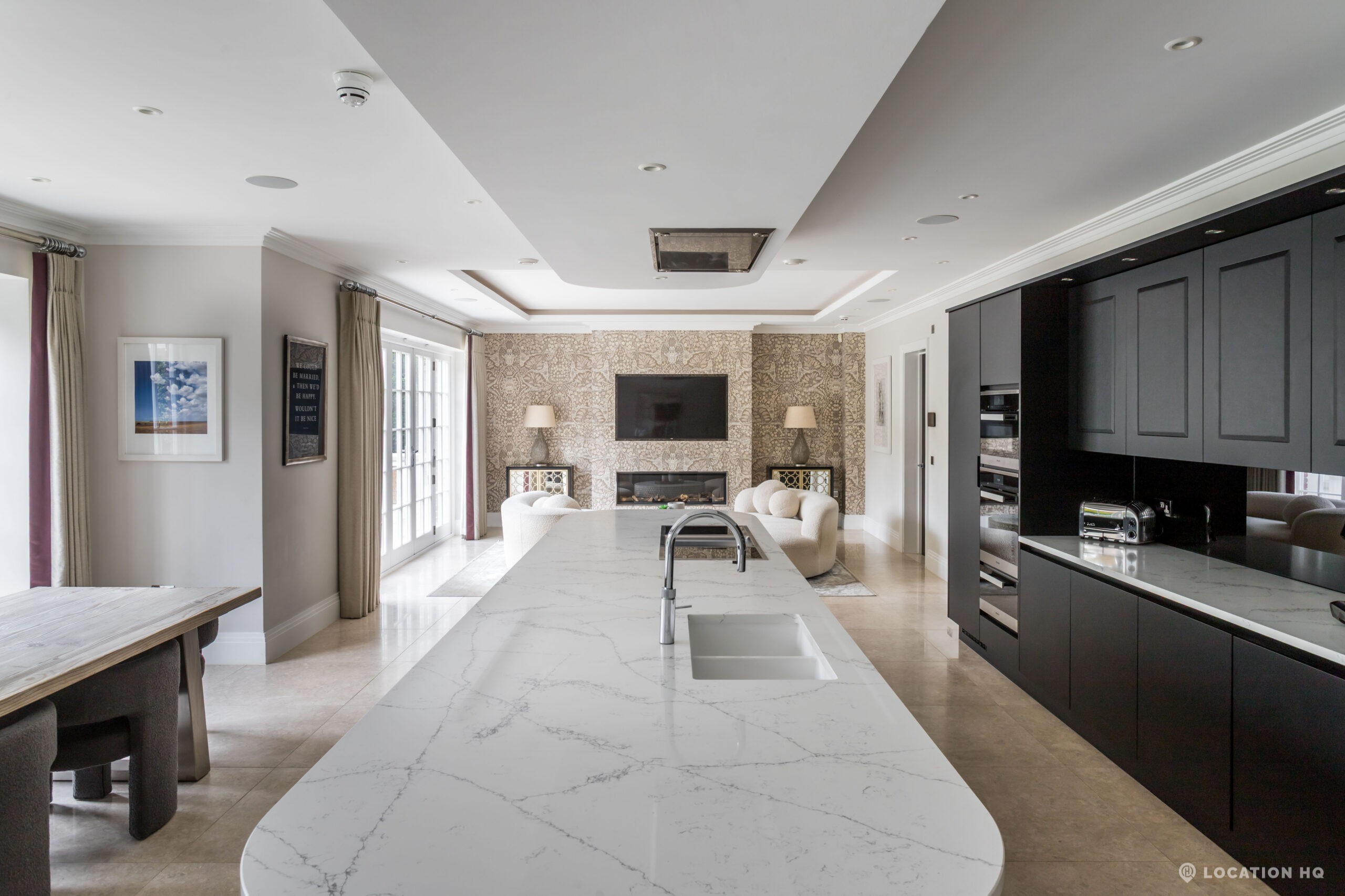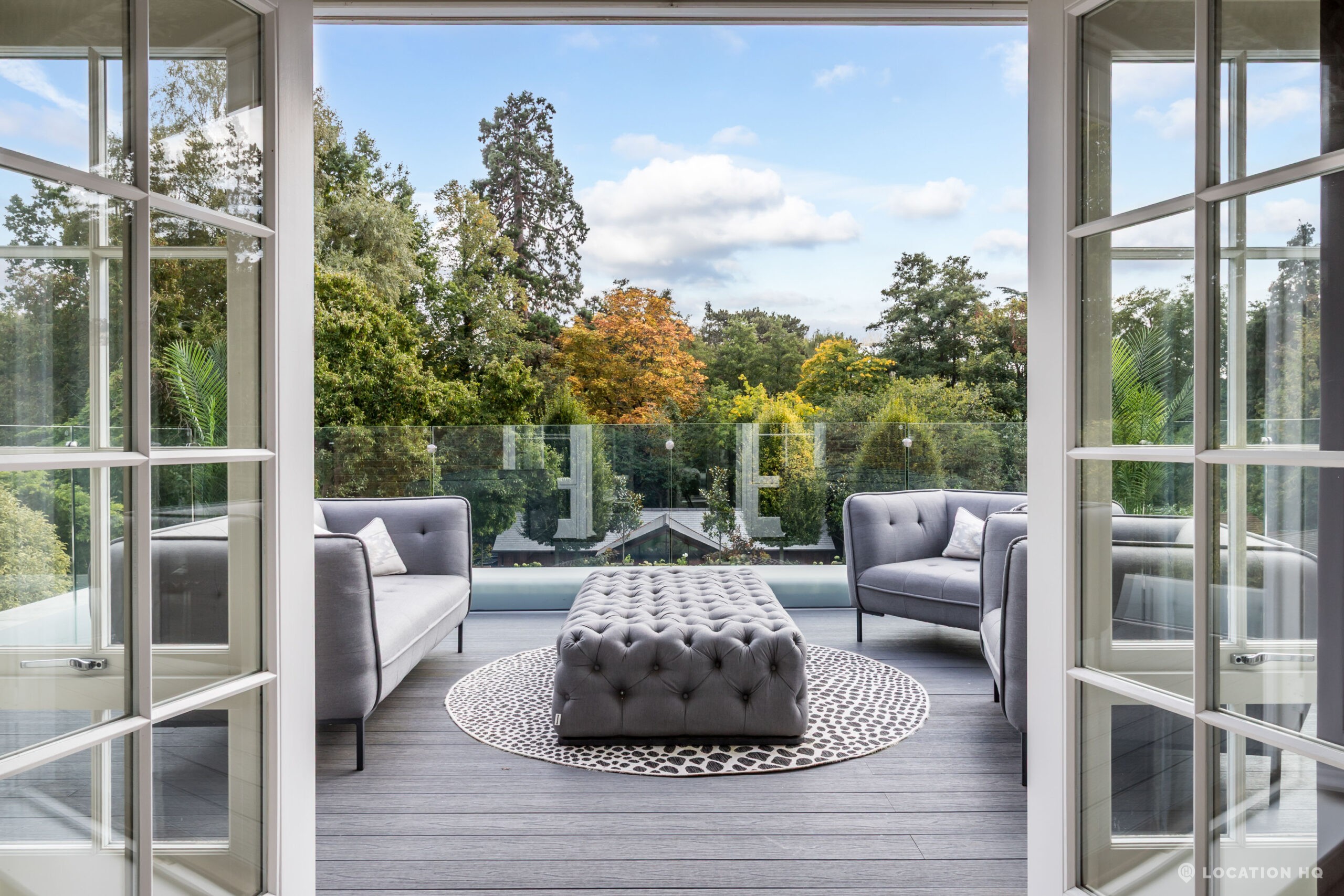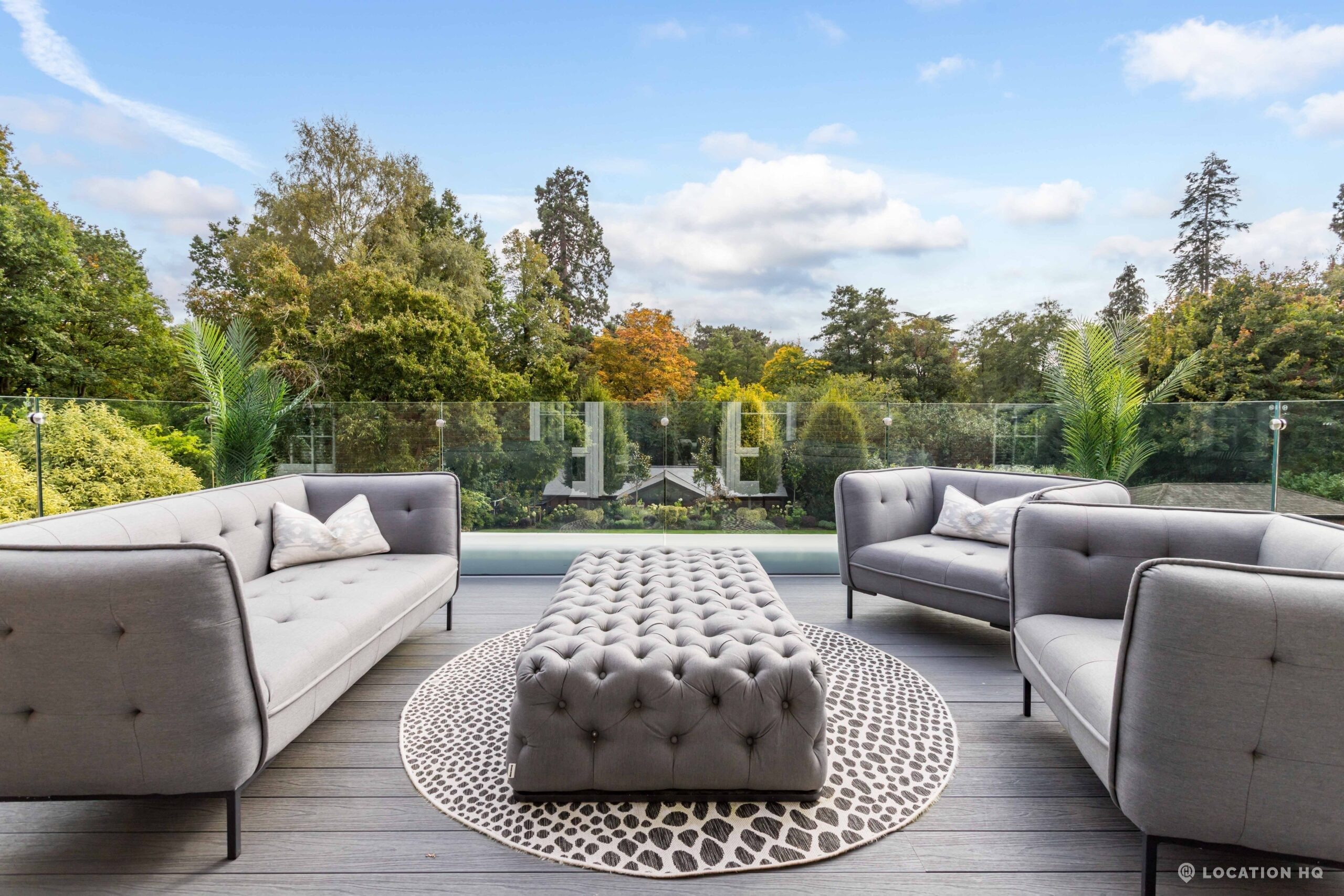 This Modern Luxury house is an exceptional private residence spanning approximately 12,000 sq ft, set within around one acre of landscaped grounds, just inside the M25.