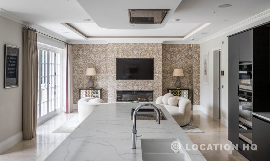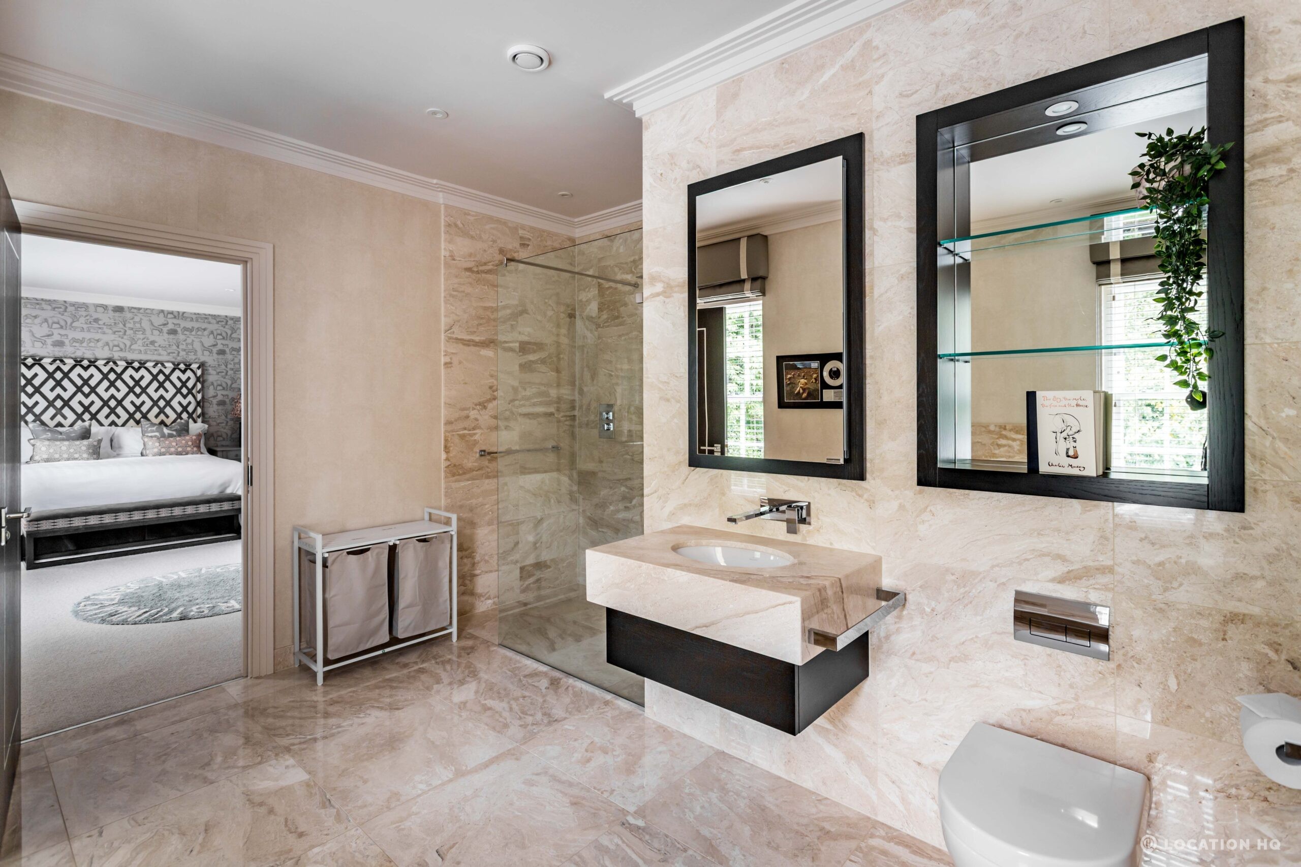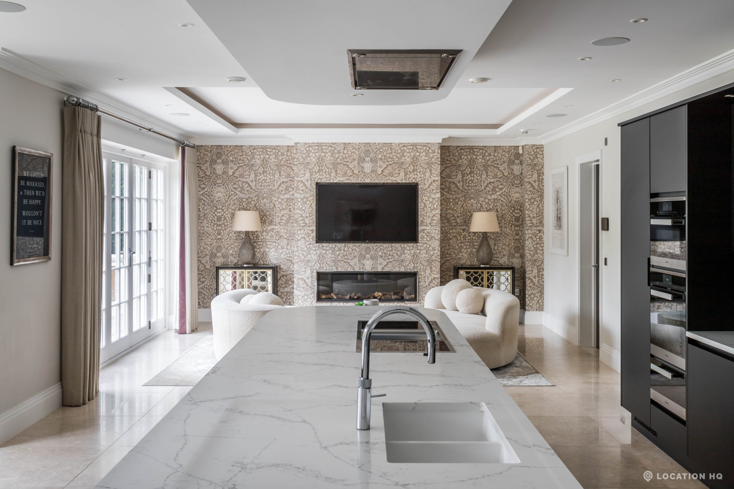 This Modern Luxury house is an exceptional private residence spanning approximately 12,000 sq ft, set within around one acre of landscaped grounds, just inside the M25.