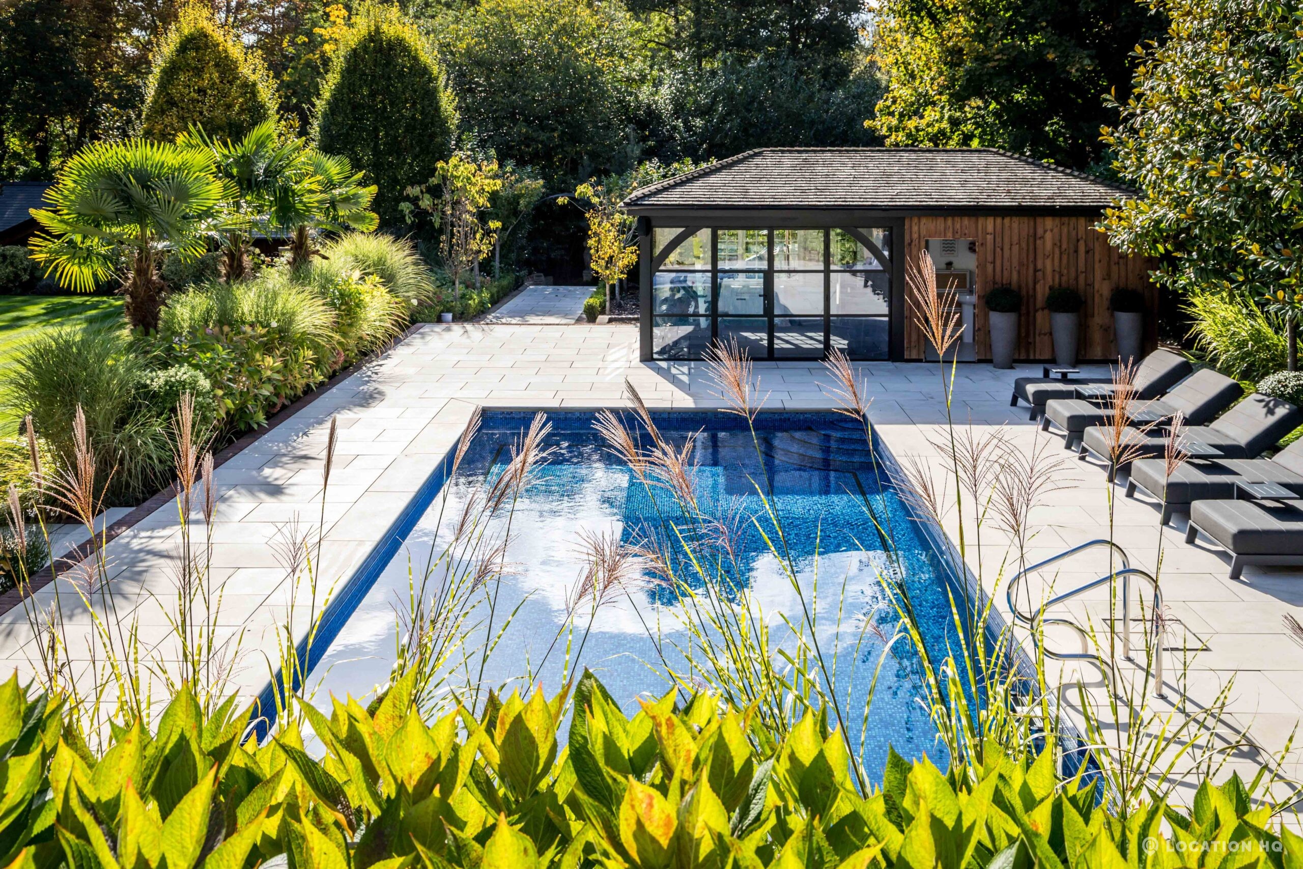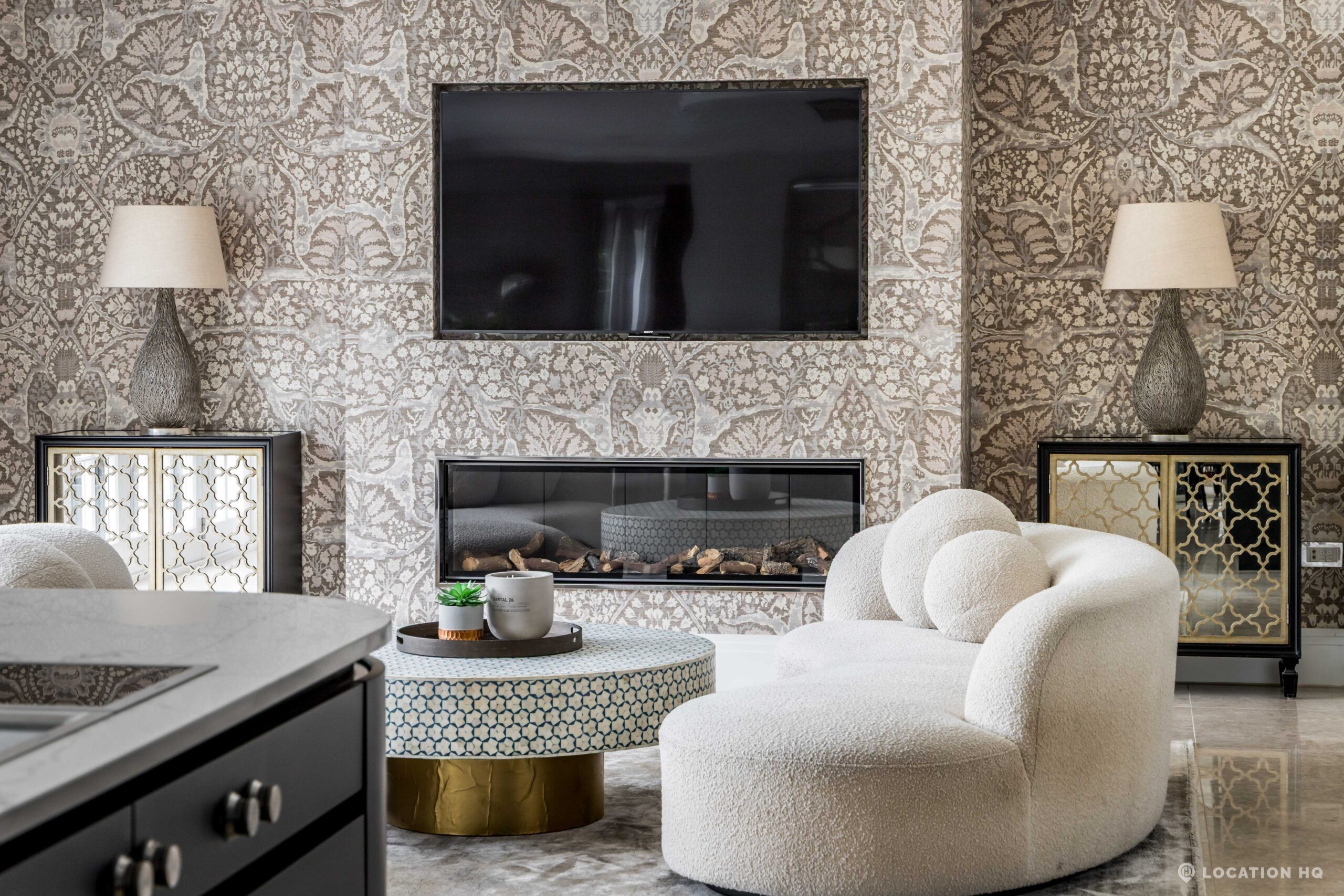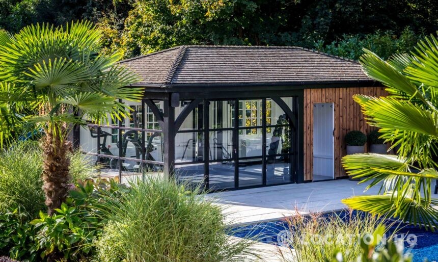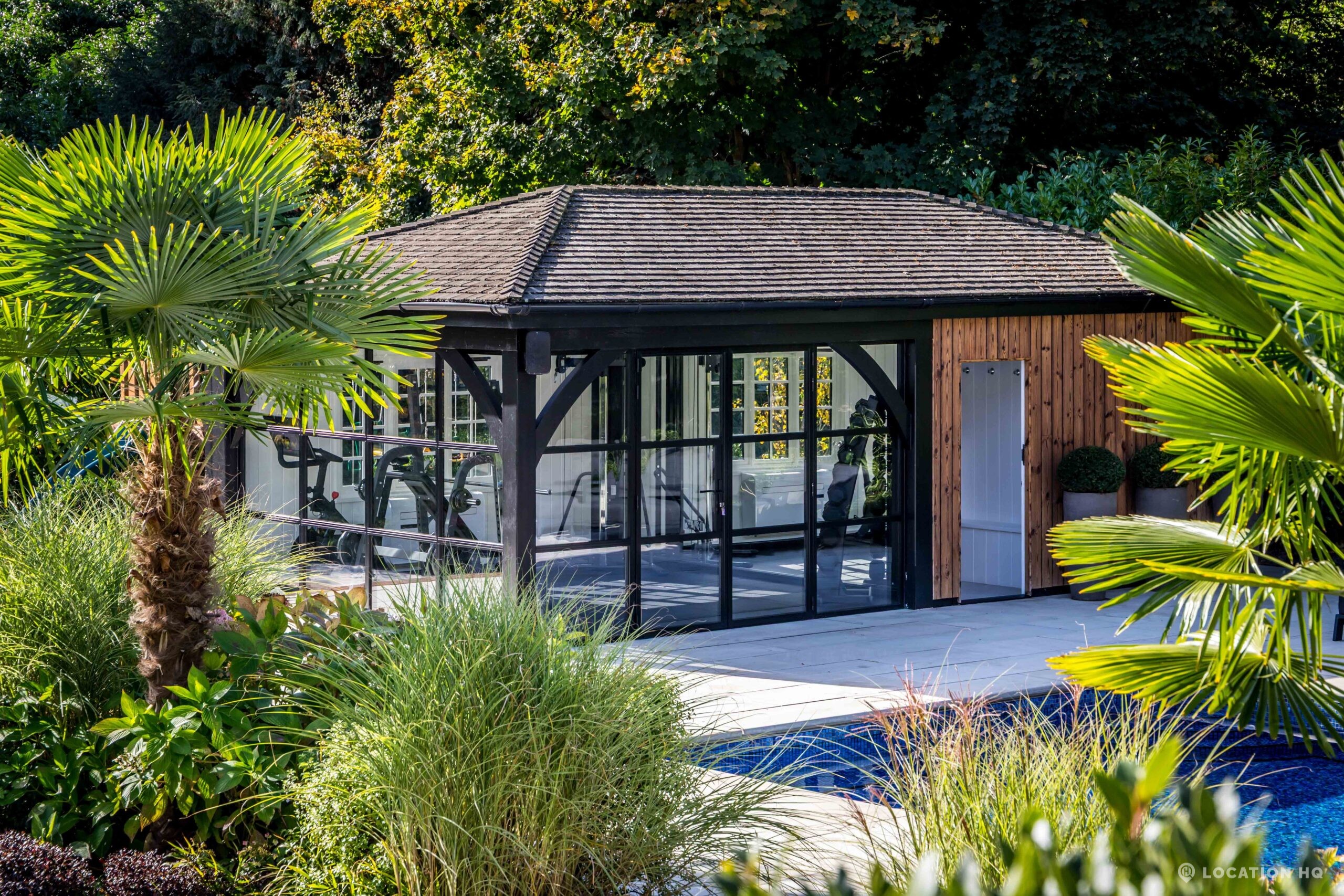 Outside, landscaped gardens include a heated swimming pool, gym, pool house, outdoor kitchen, firepit and seating areas, alongside a large gated driveway providing excellent access and privacy.
