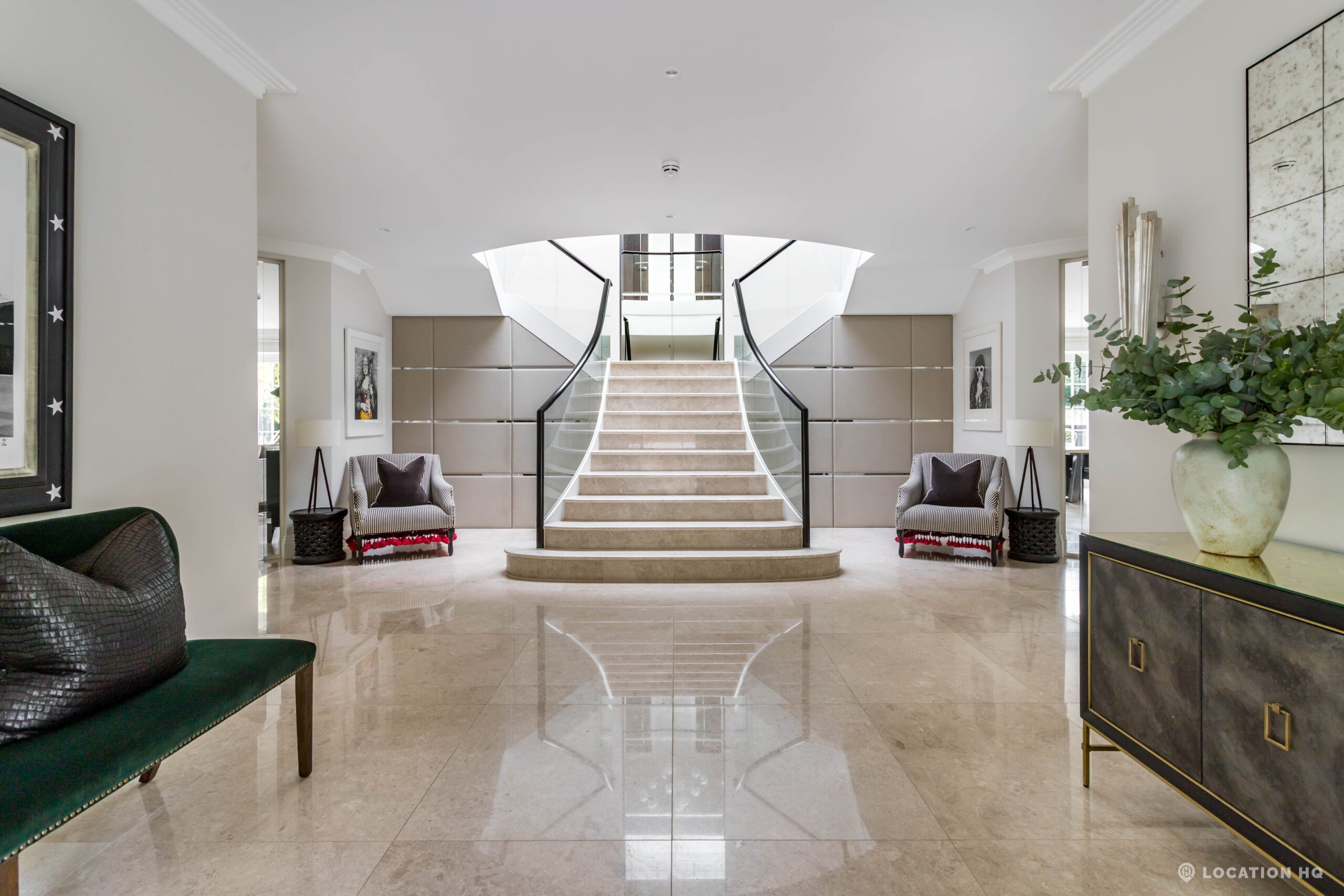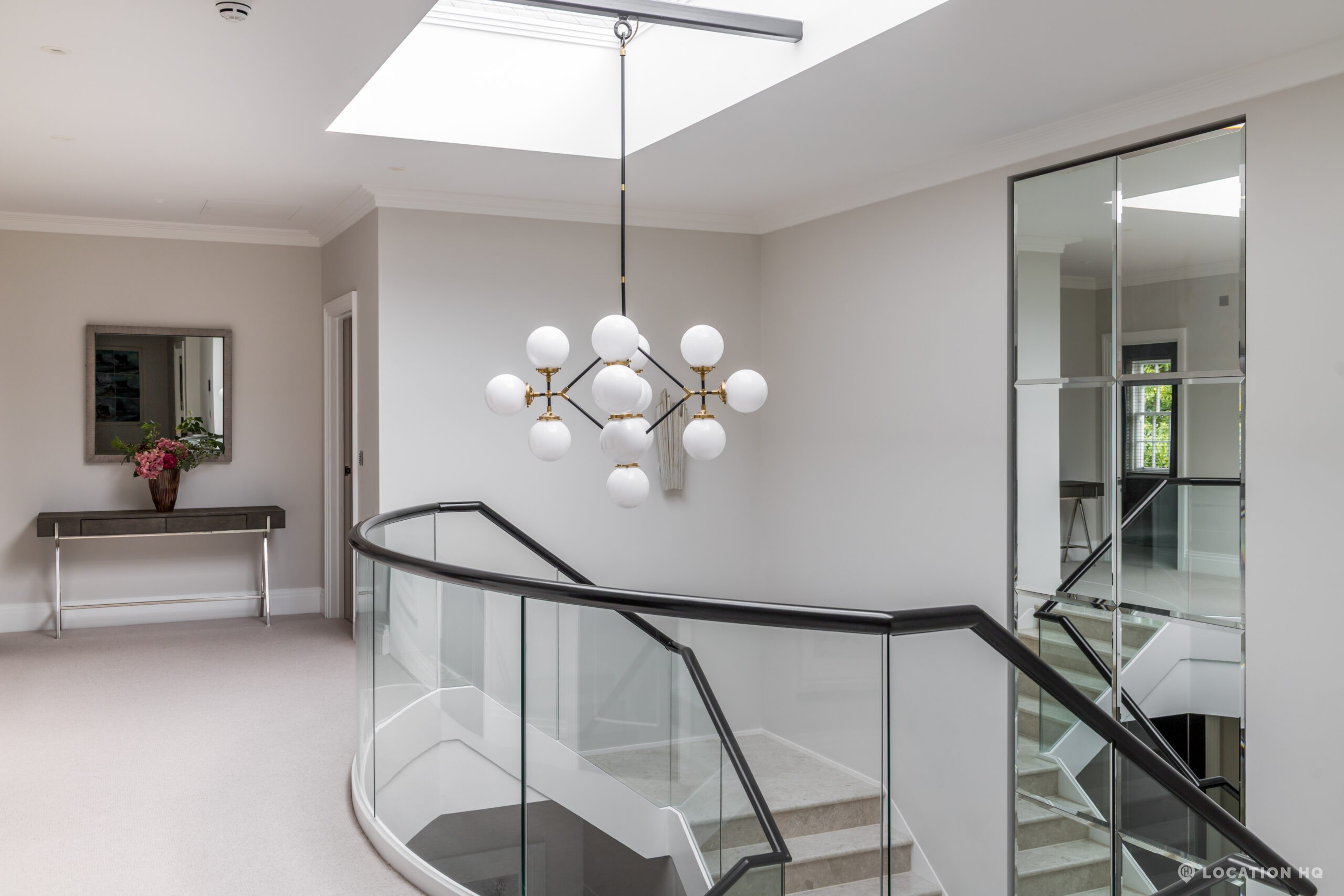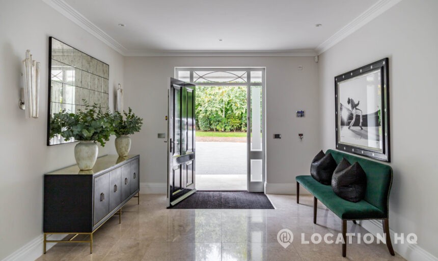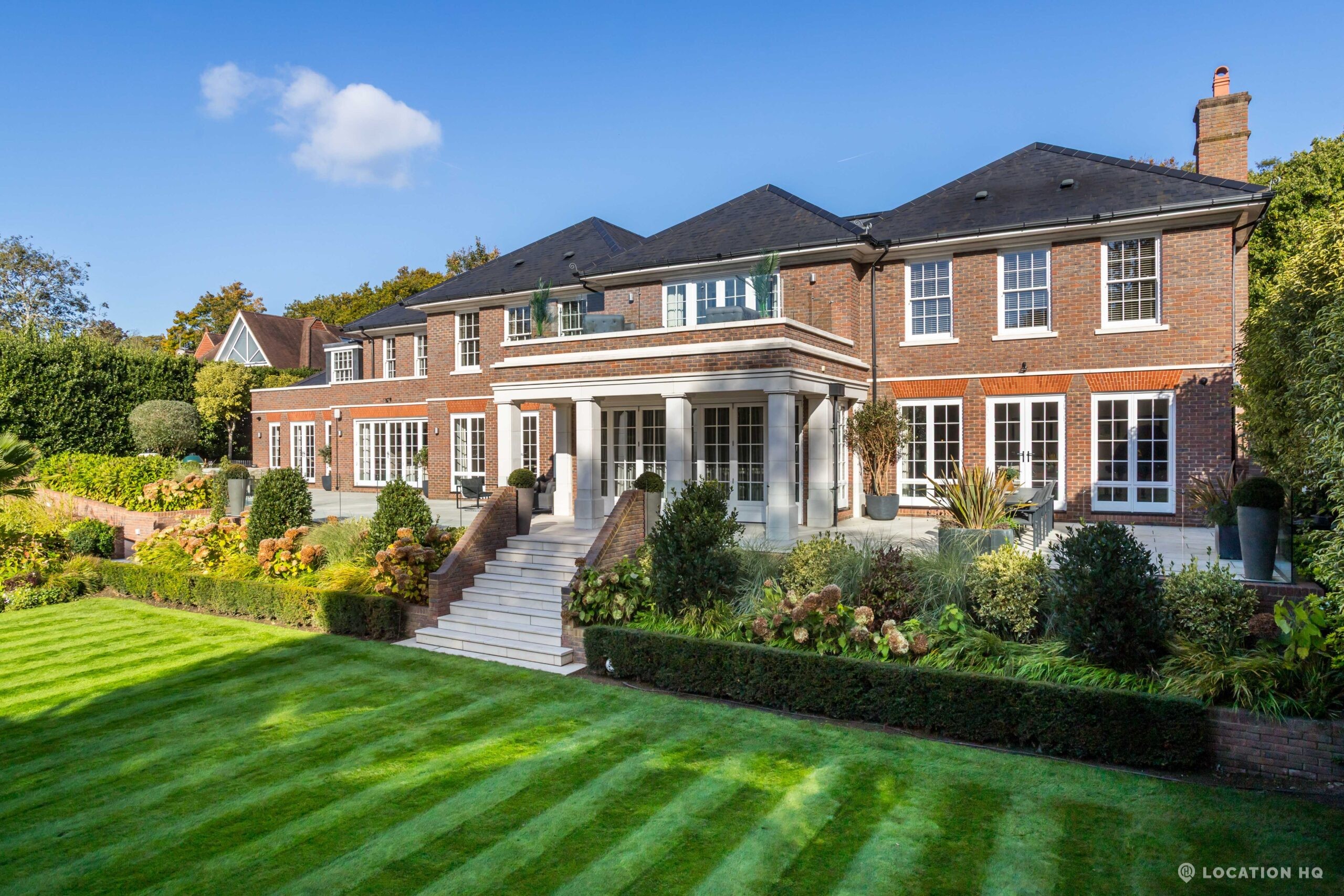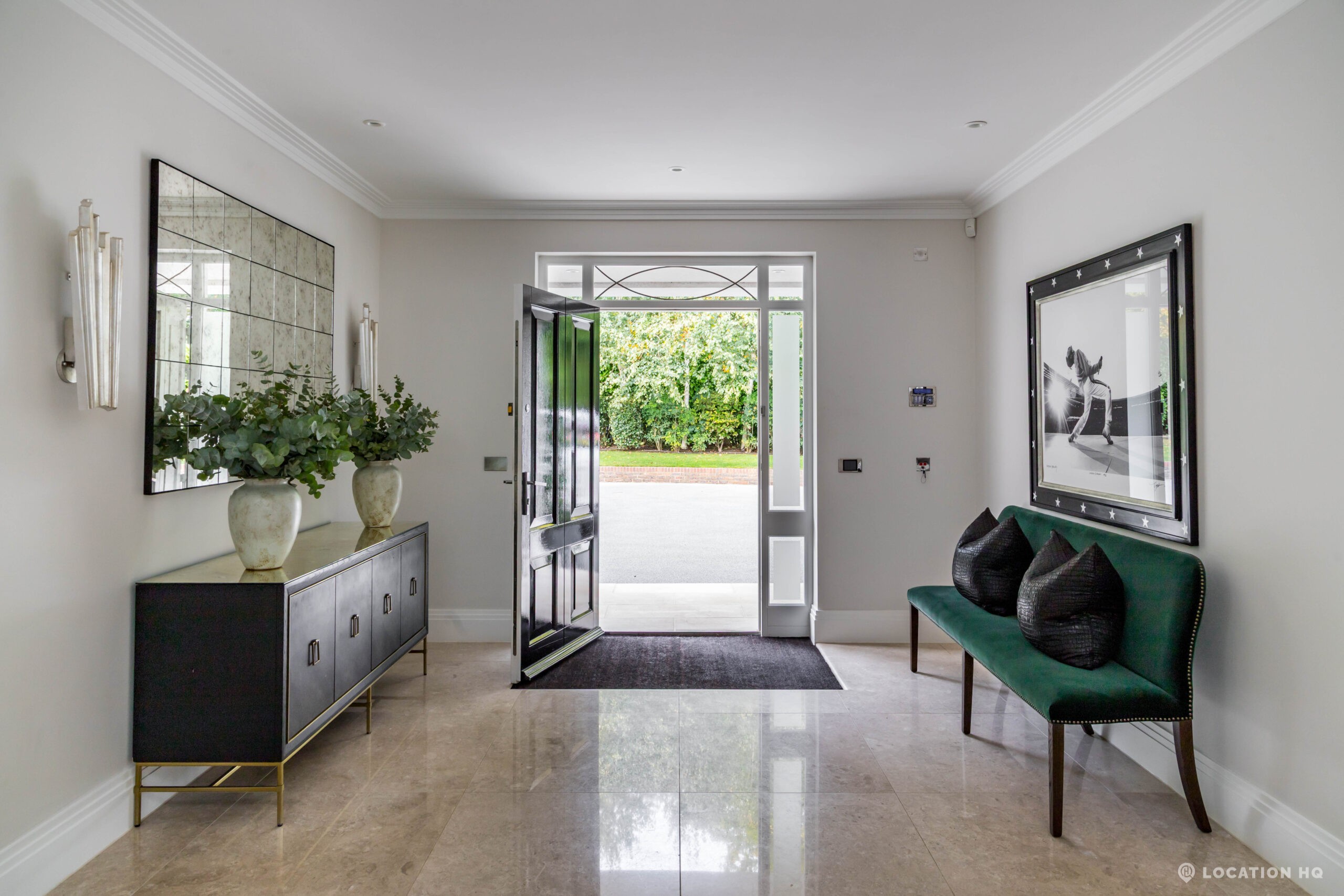 The property offers a wide range of versatile interiors and exteriors, combining scale, natural light and flexibility. Internally, it features multiple reception rooms, nine bedrooms and bathrooms, a striking entrance hall with feature staircase, as well as a bar, cinema room.