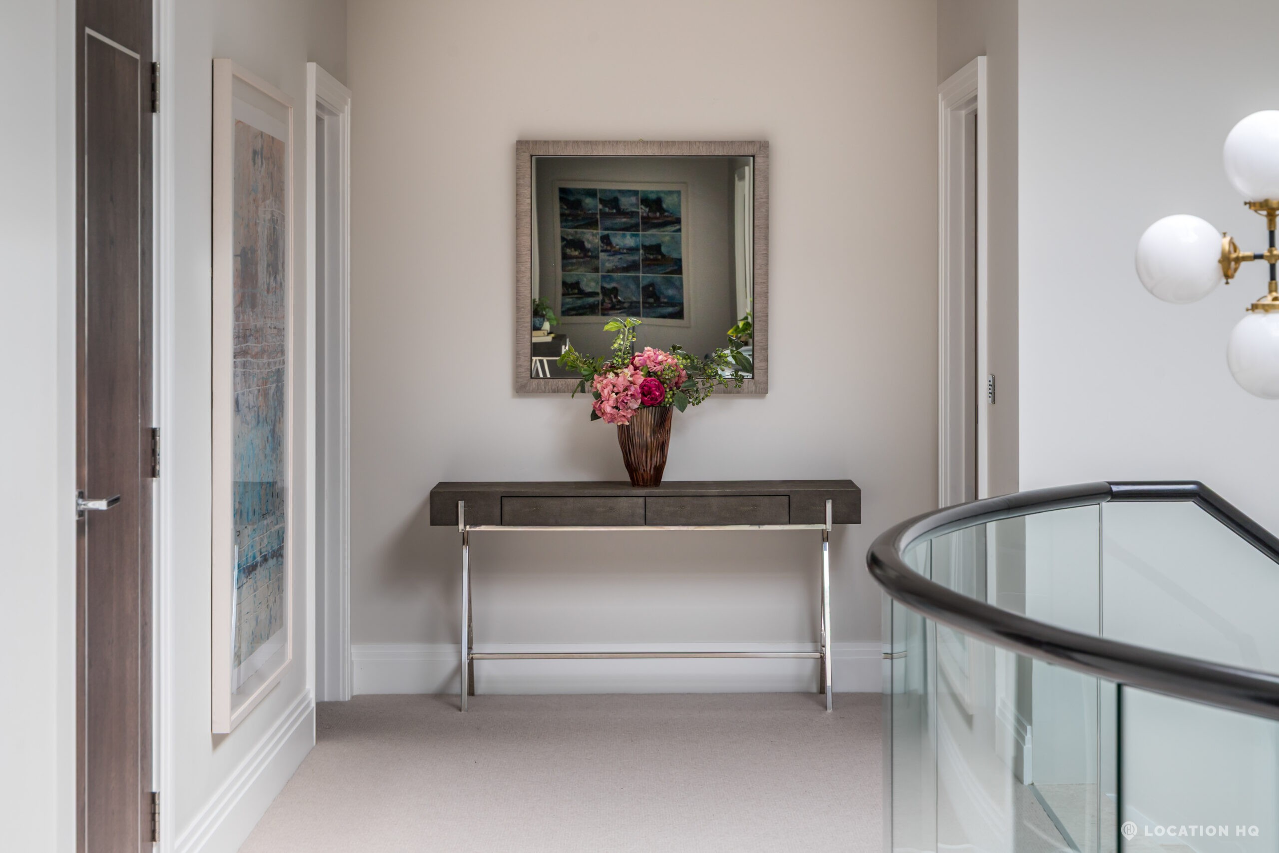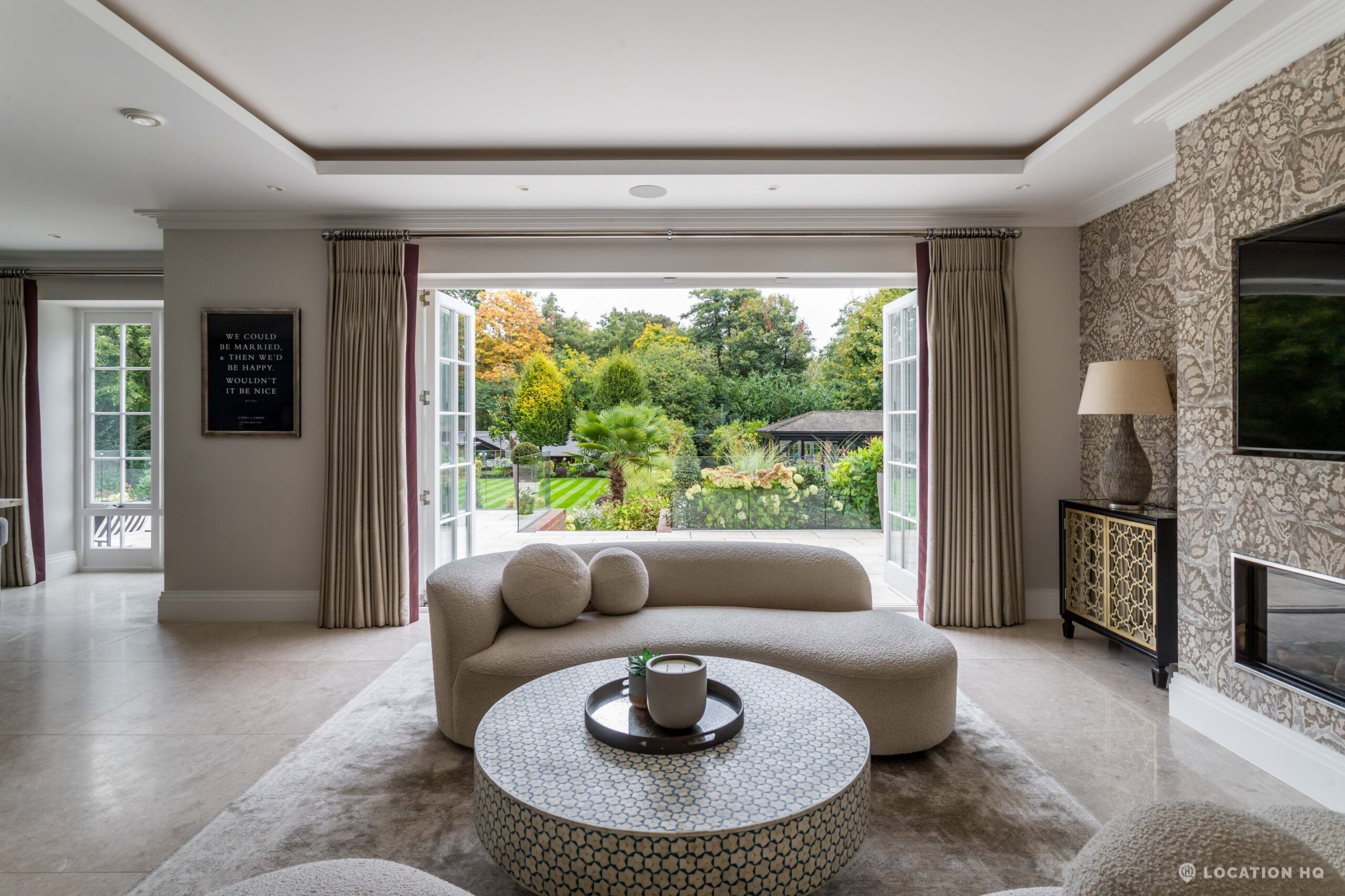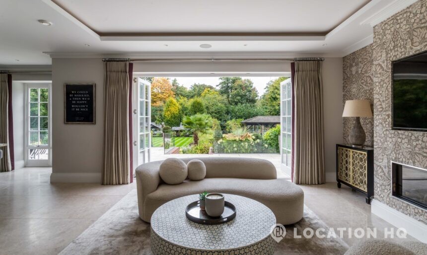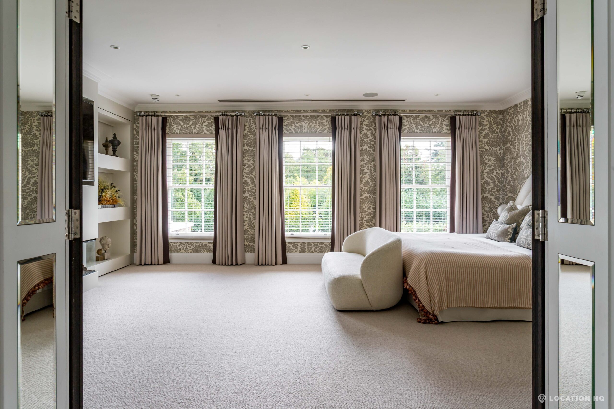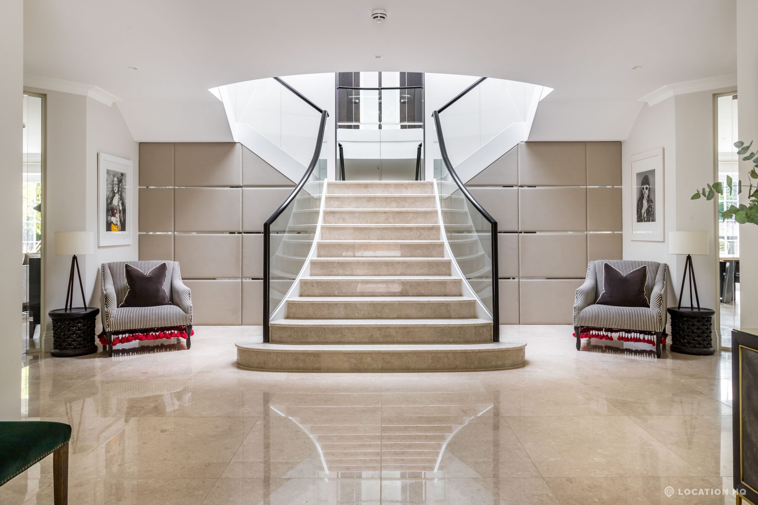 The property offers a wide range of versatile interiors and exteriors, combining scale, natural light and flexibility. Internally, it features multiple reception rooms, nine bedrooms and bathrooms, a striking entrance hall with feature staircase, as well as a bar, cinema room.