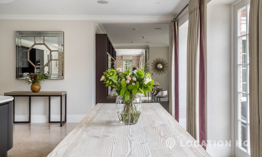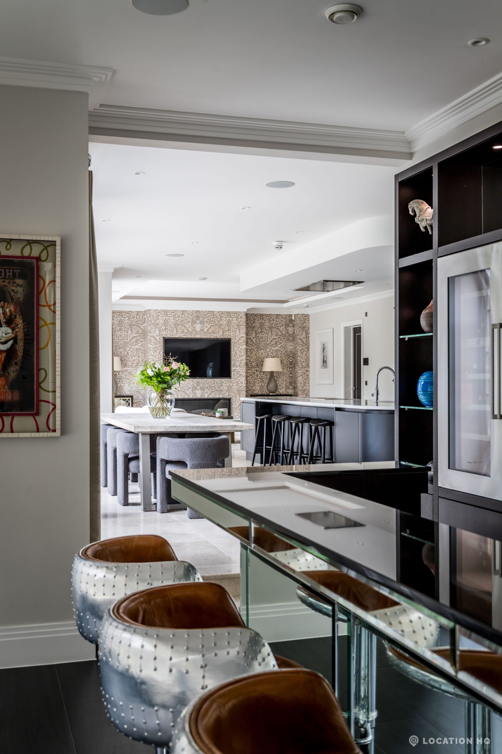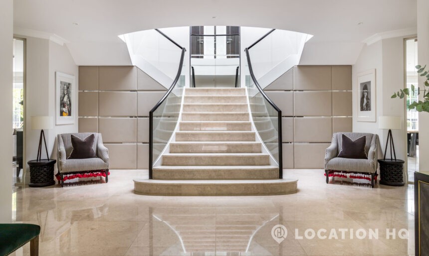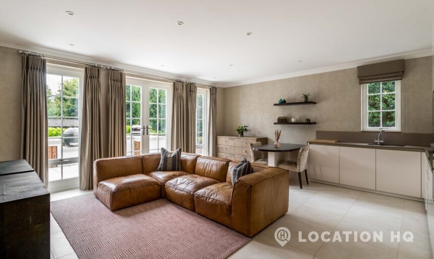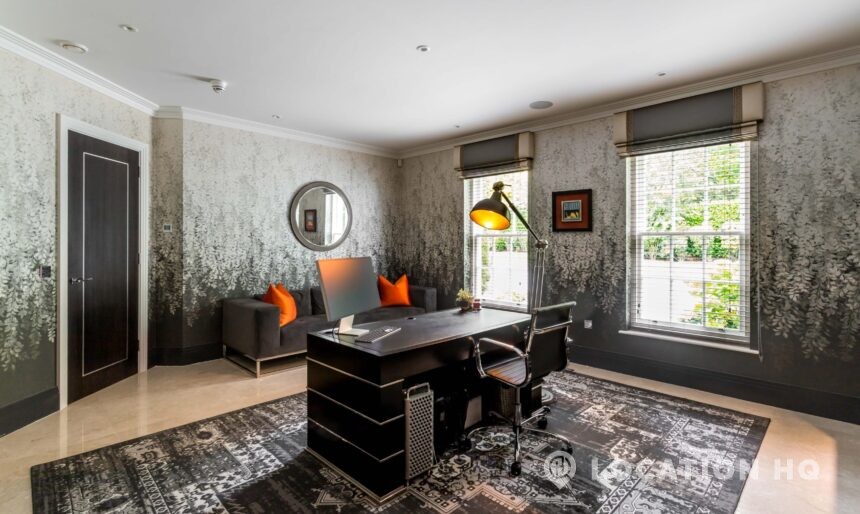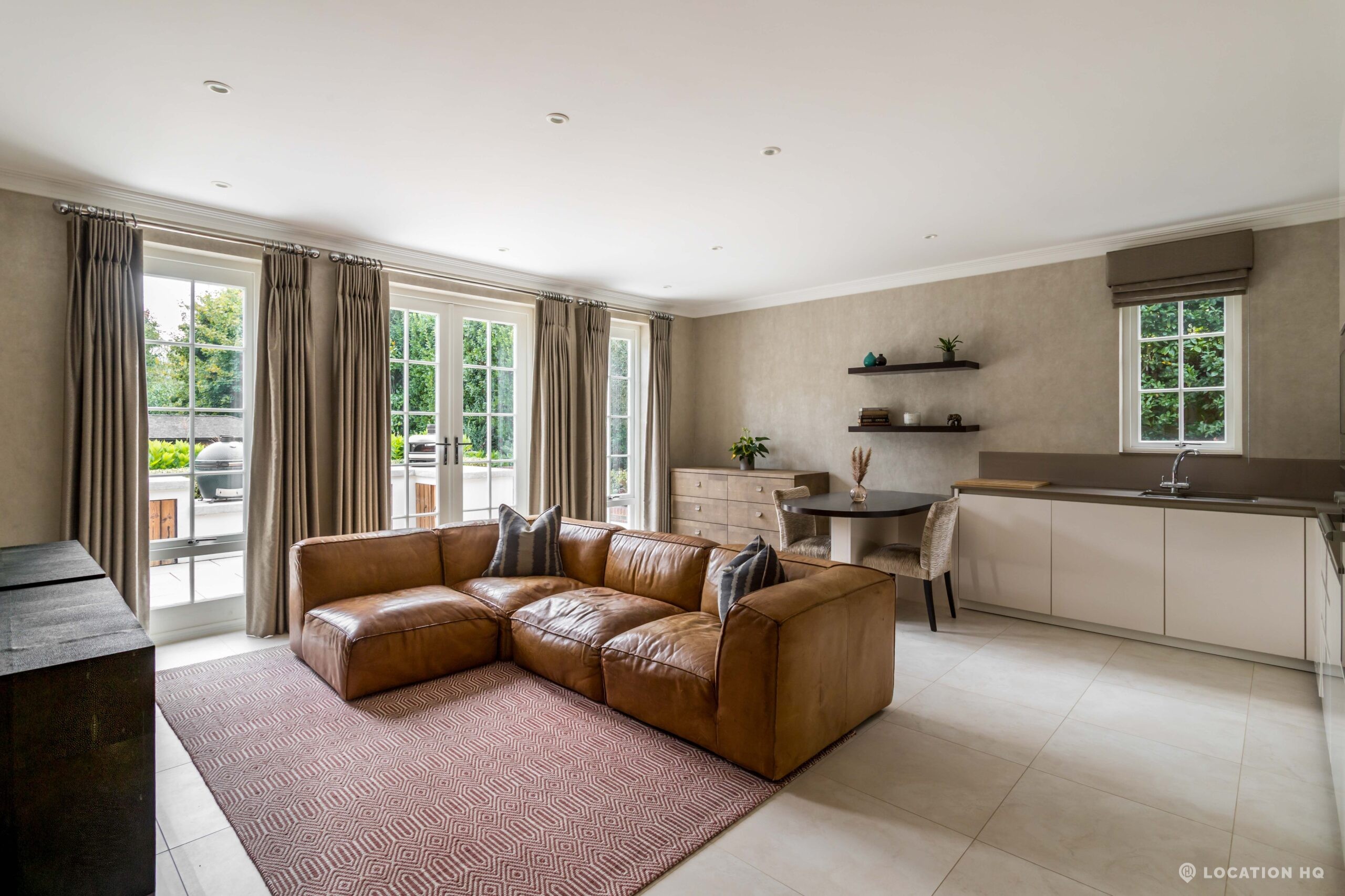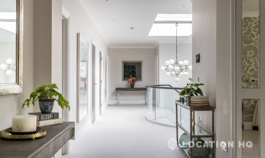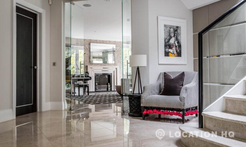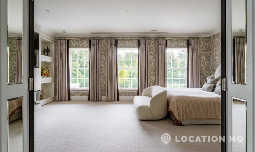 The property offers a wide range of versatile interiors and exteriors, combining scale, natural light and flexibility. Internally, it features multiple reception rooms, nine bedrooms and bathrooms, a striking entrance hall with feature staircase, as well as a bar, cinema room.