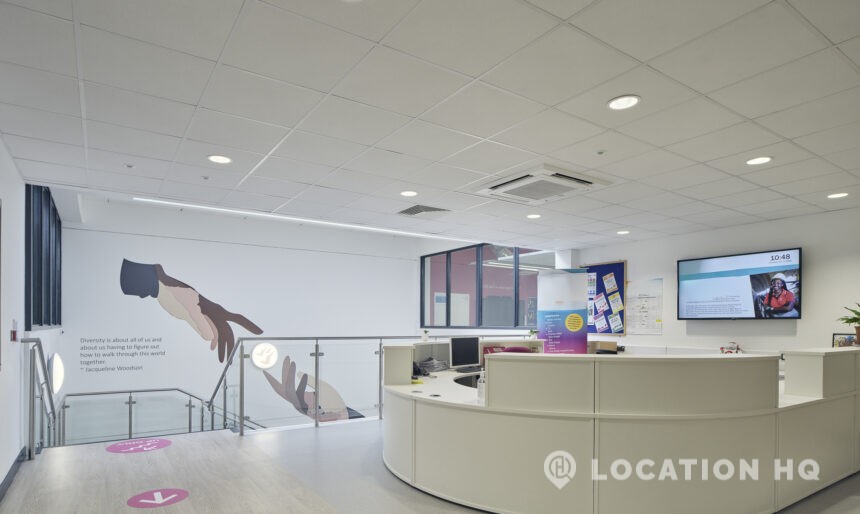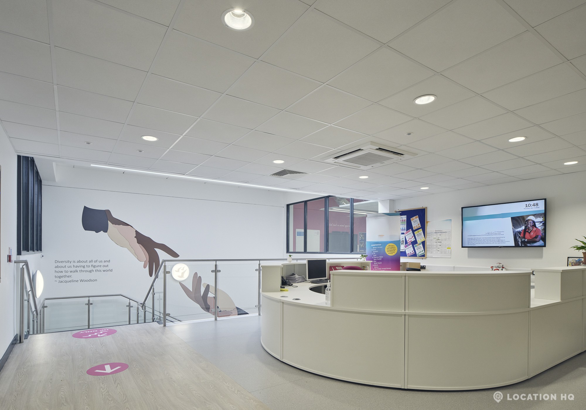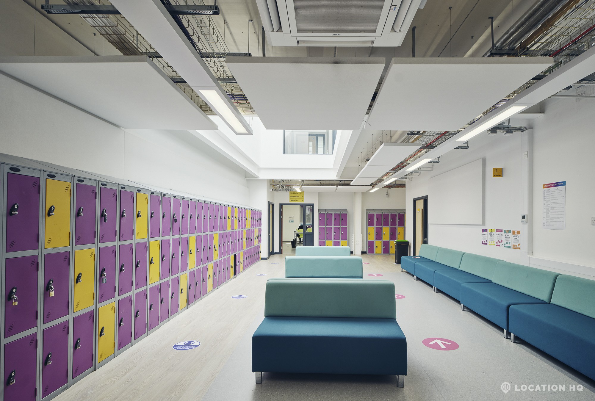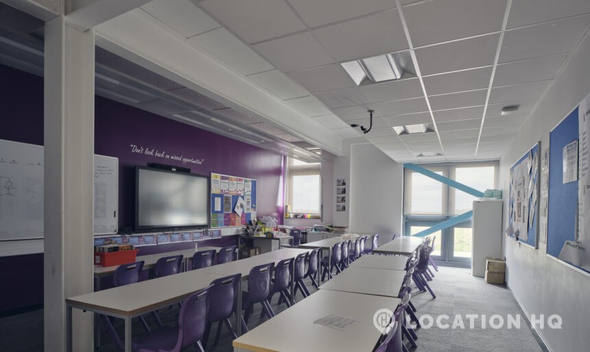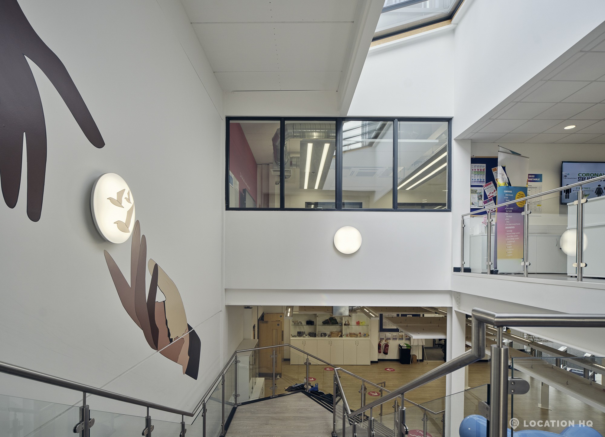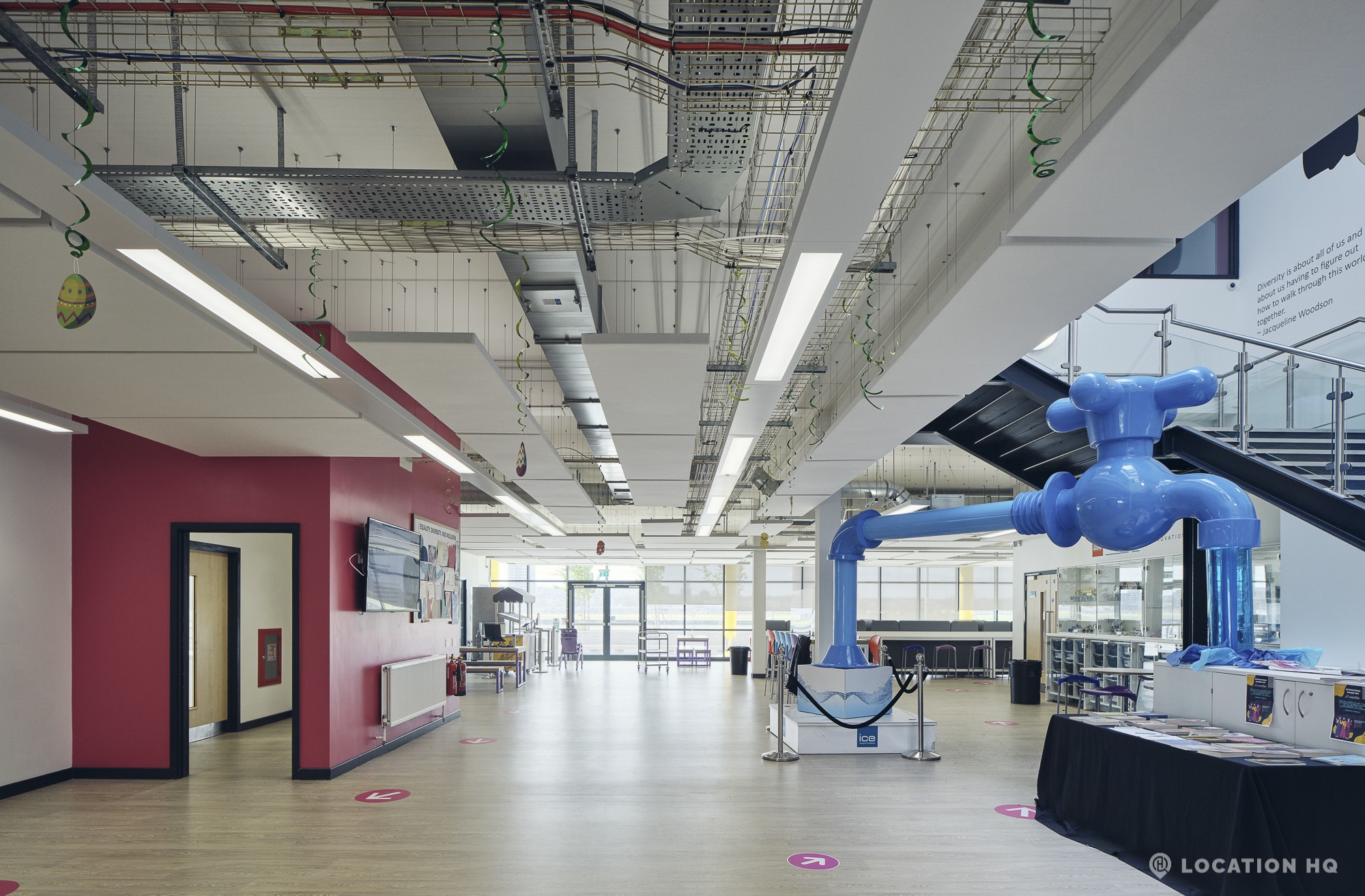 Exclusive to Location HQ. Modern London design and engineering college. Doubles well as an office, workshops, tech labs, manufacturing or a high tech development factory. Multiple classrooms, engineering workshops, design lecture rooms, corridors, lecture theatres, atriums, staircases, and wonderful modernist exterior spaces with city views. Private road on site and a large unit base for ease.