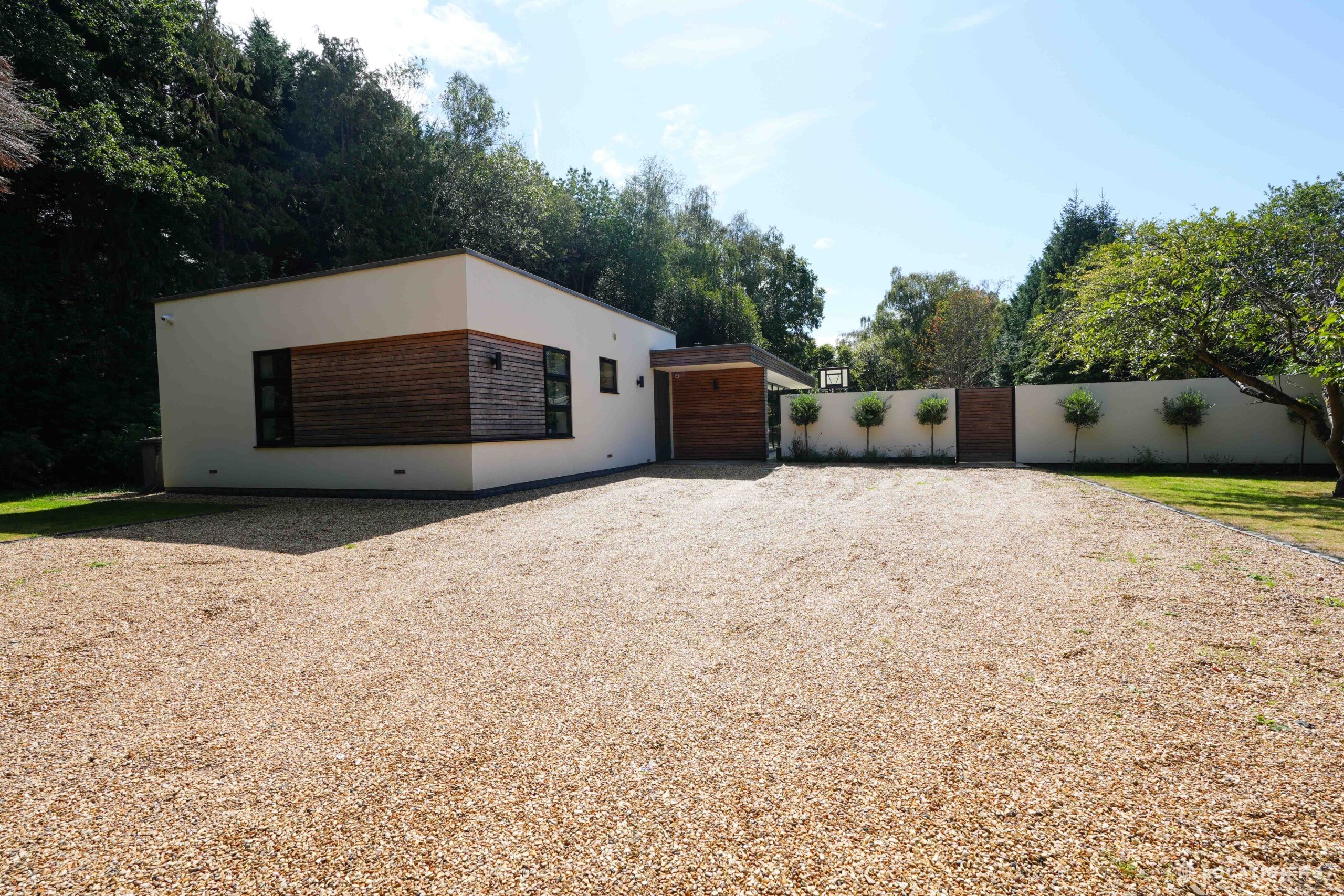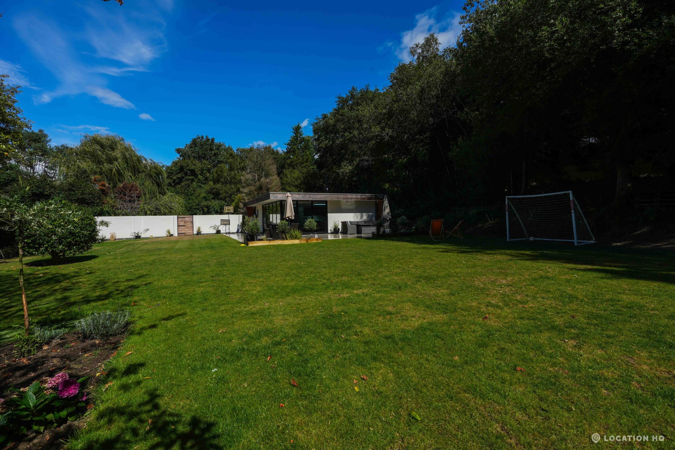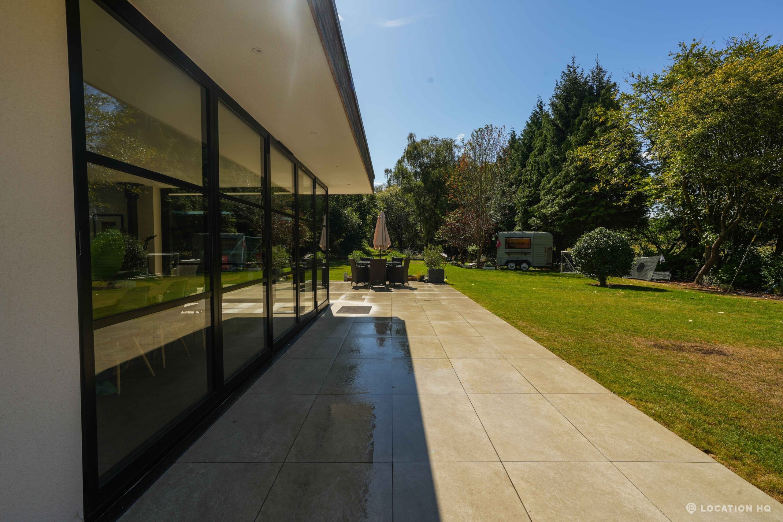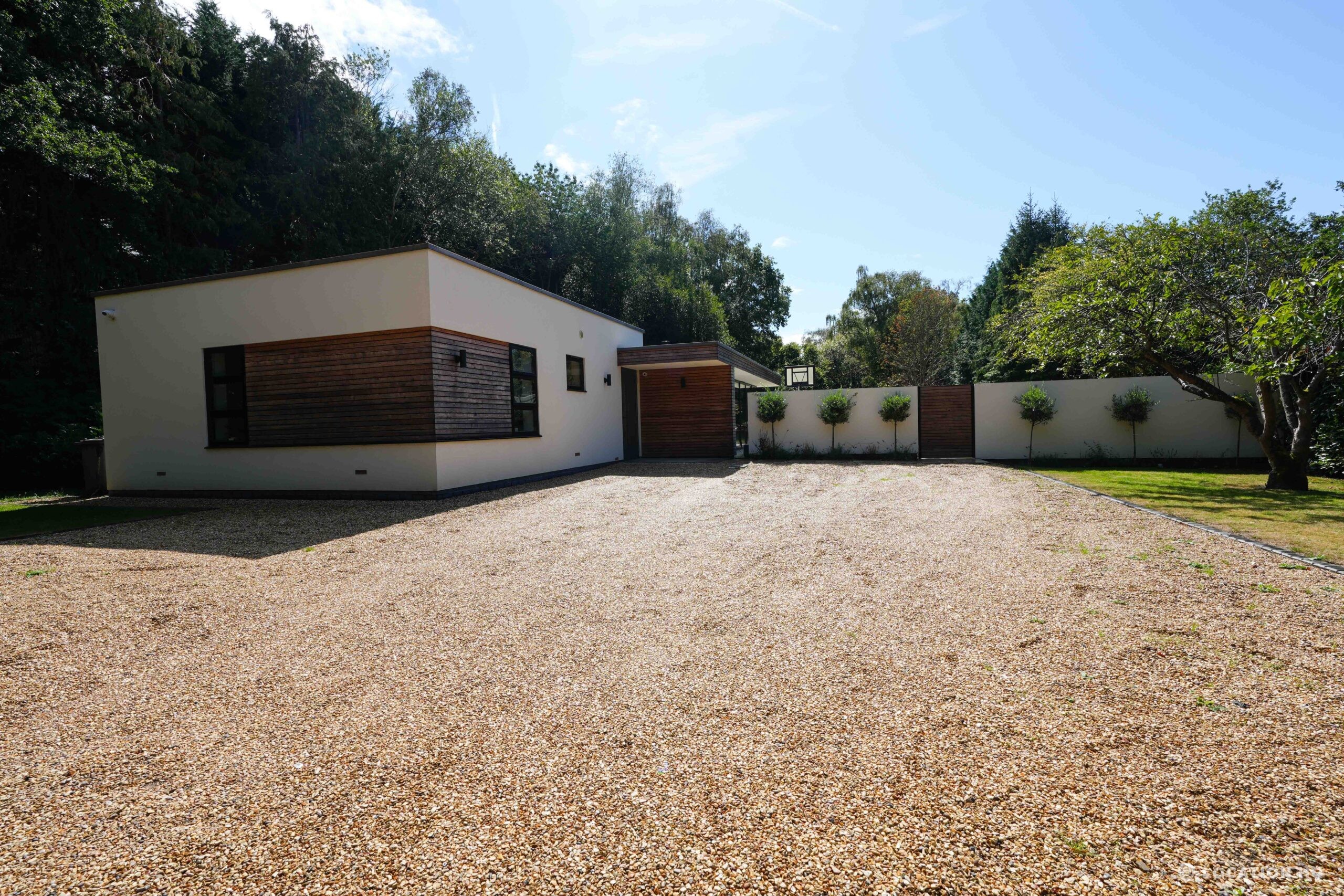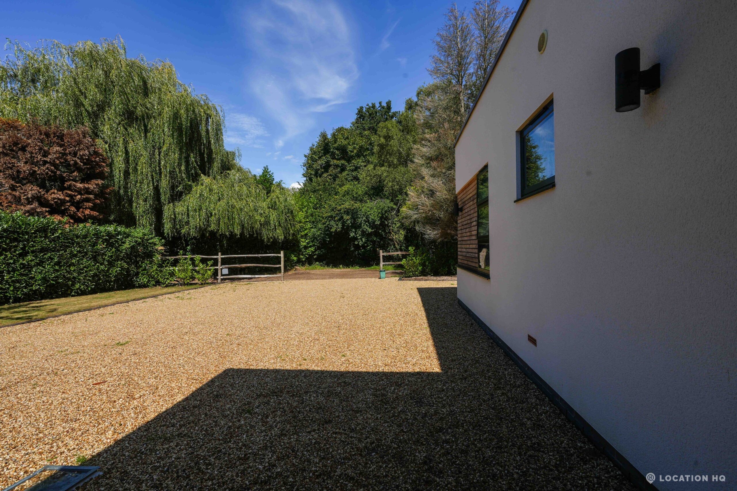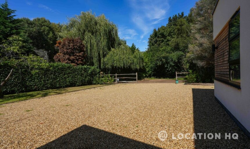 A stunning contemporary house offering a sleek, modern aesthetic ideal for film, TV, and commercial shoots. The property features spacious open-plan interiors with excellent natural light, minimalist design, and high-end finishes. Expansive glass facades provide seamless views of the surrounding large landscaped garden, perfect for exterior scenes. Large drive perfect for scenes with cars. With a balance of architectural style and versatility, this location suits both lifestyle productions and high-end dramas seeking a clean, modern backdrop.
