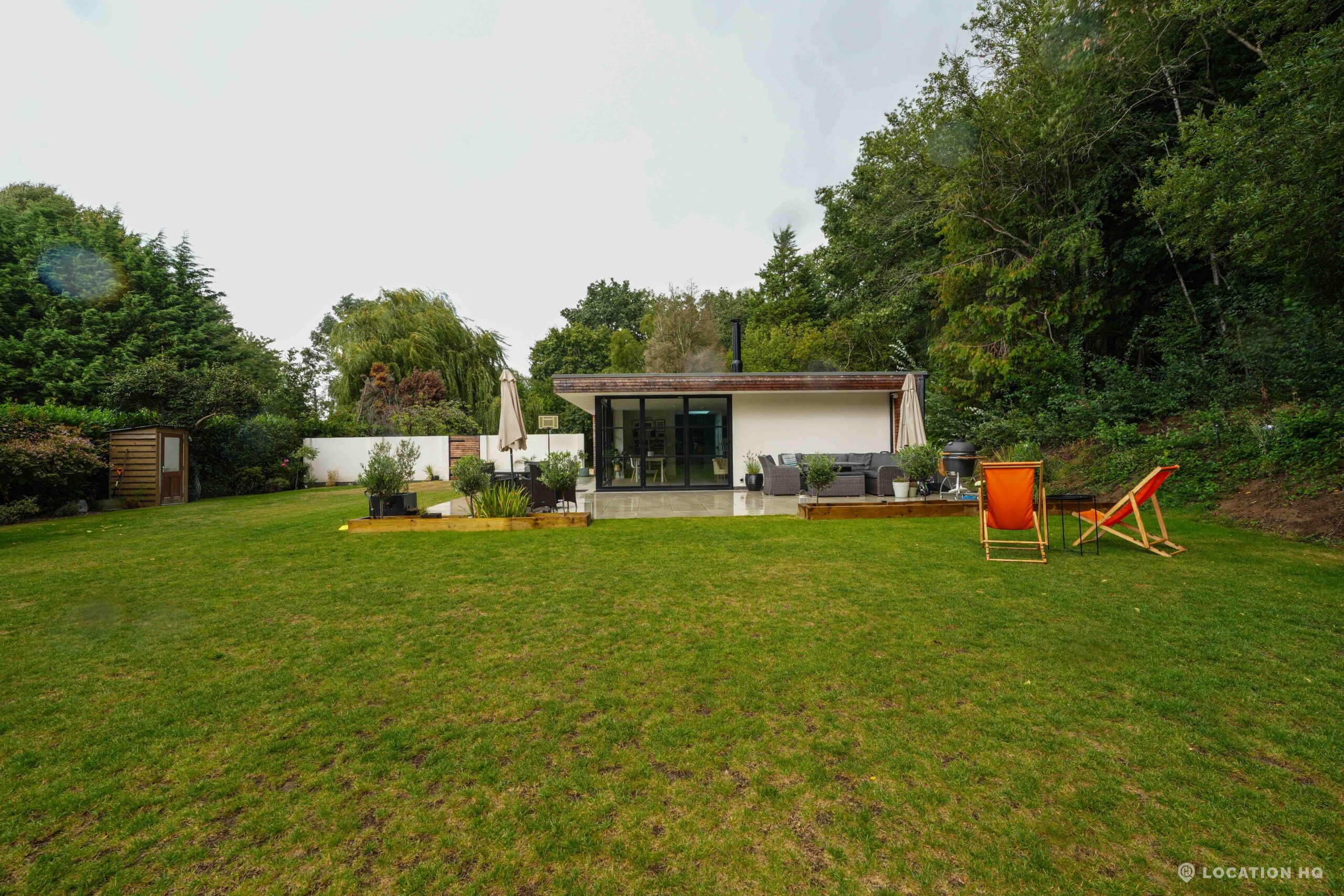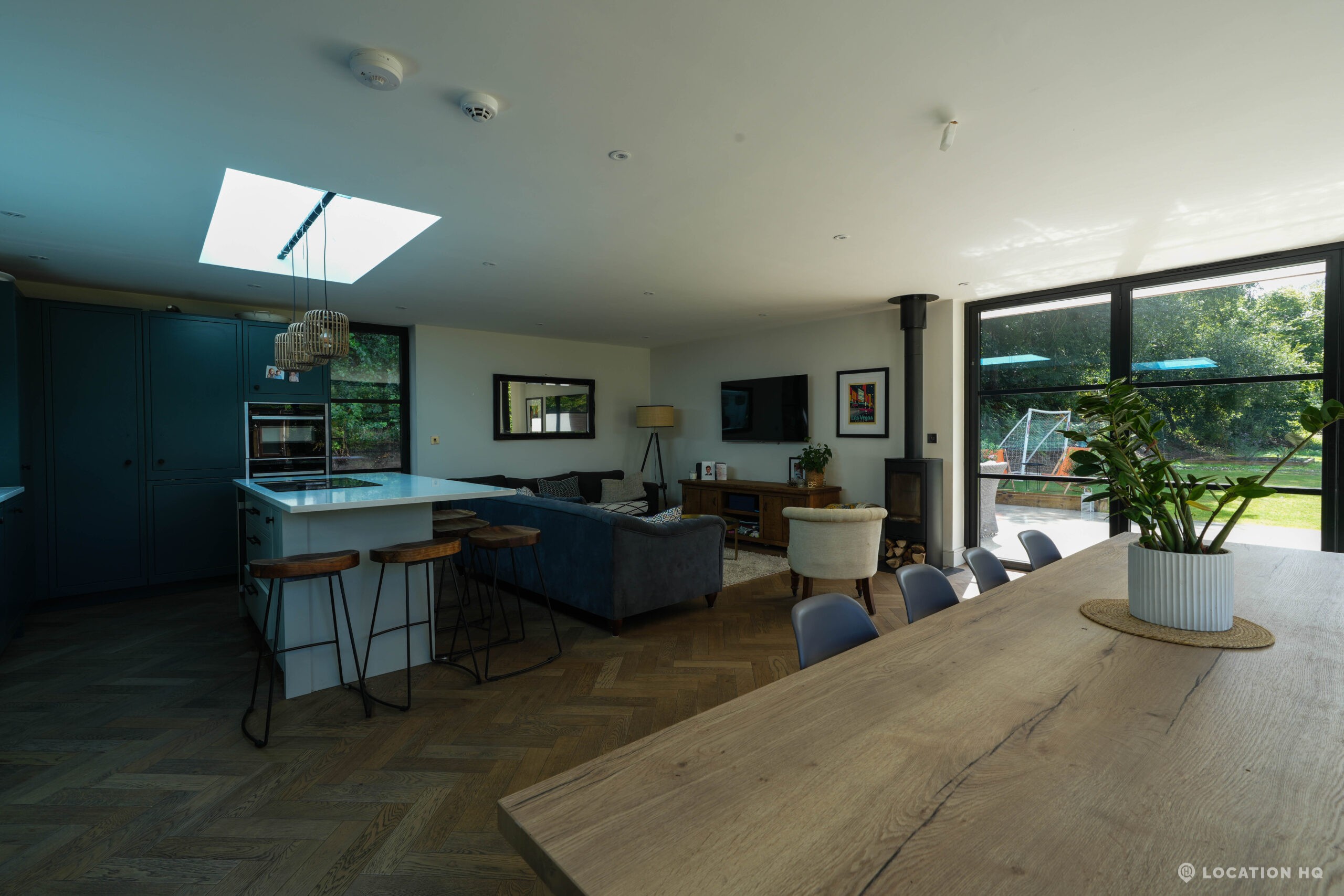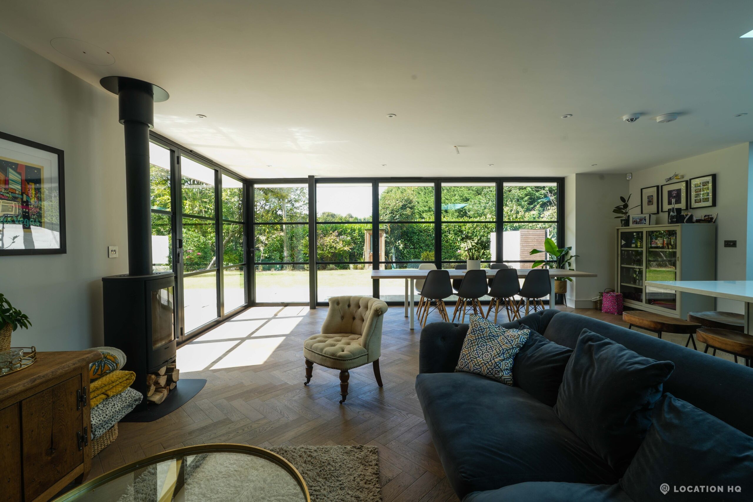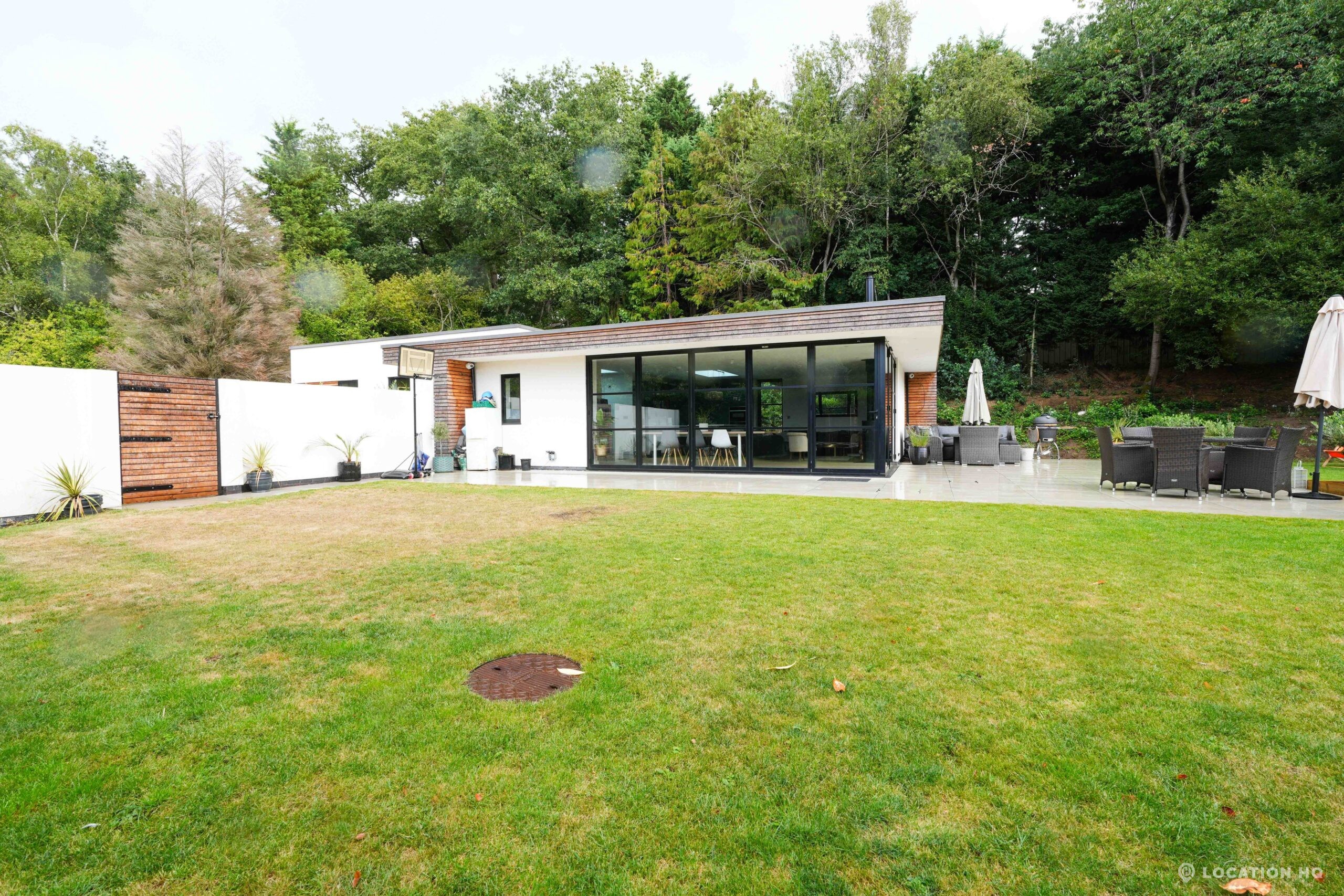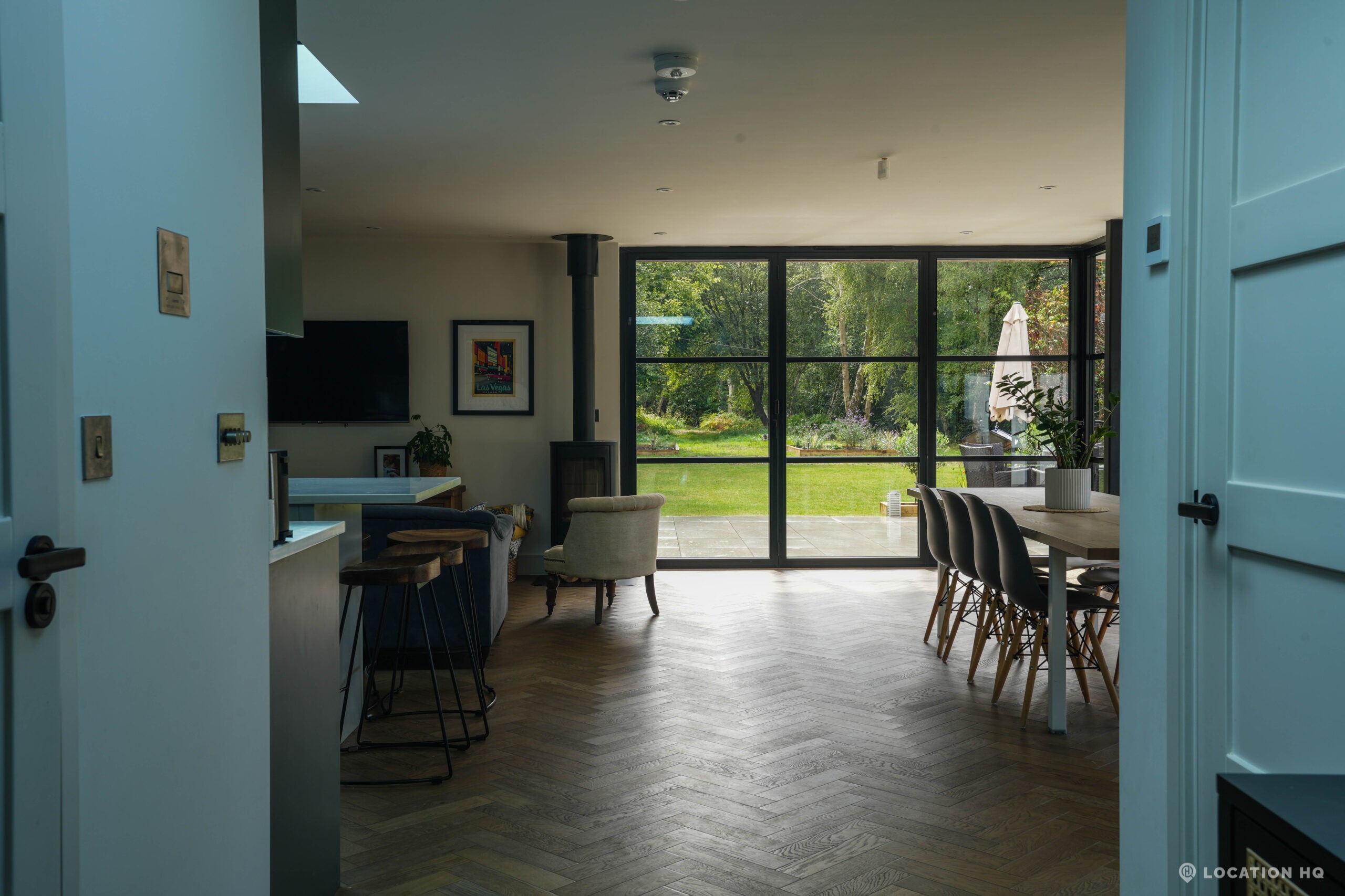 A stunning contemporary house offering a sleek, modern aesthetic ideal for film, TV, and commercial shoots. The property features spacious open-plan interiors with excellent natural light, minimalist design, and high-end finishes. Expansive glass facades provide seamless views of the surrounding large landscaped garden, perfect for exterior scenes. Large drive perfect for scenes with cars. With a balance of architectural style and versatility, this location suits both lifestyle productions and high-end dramas seeking a clean, modern backdrop.