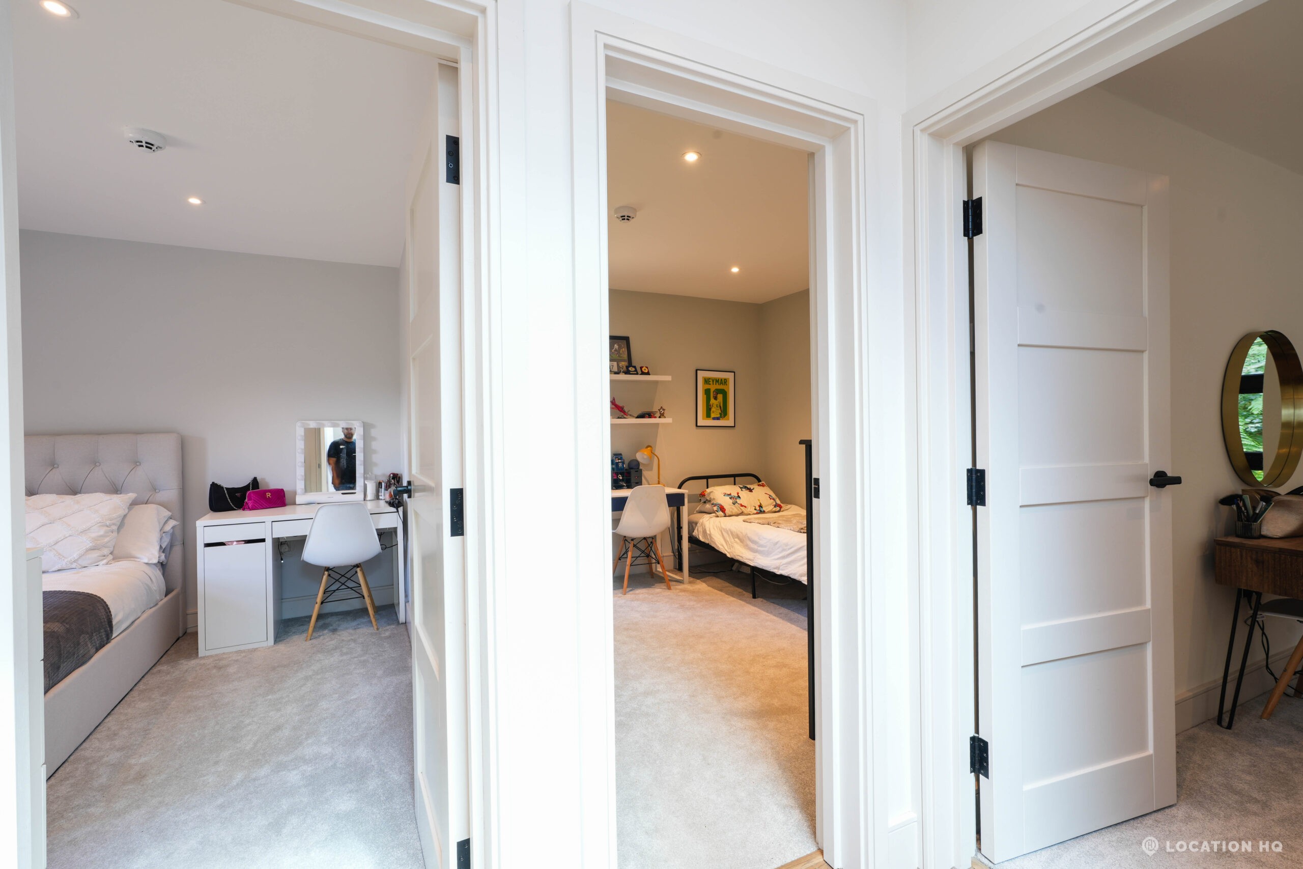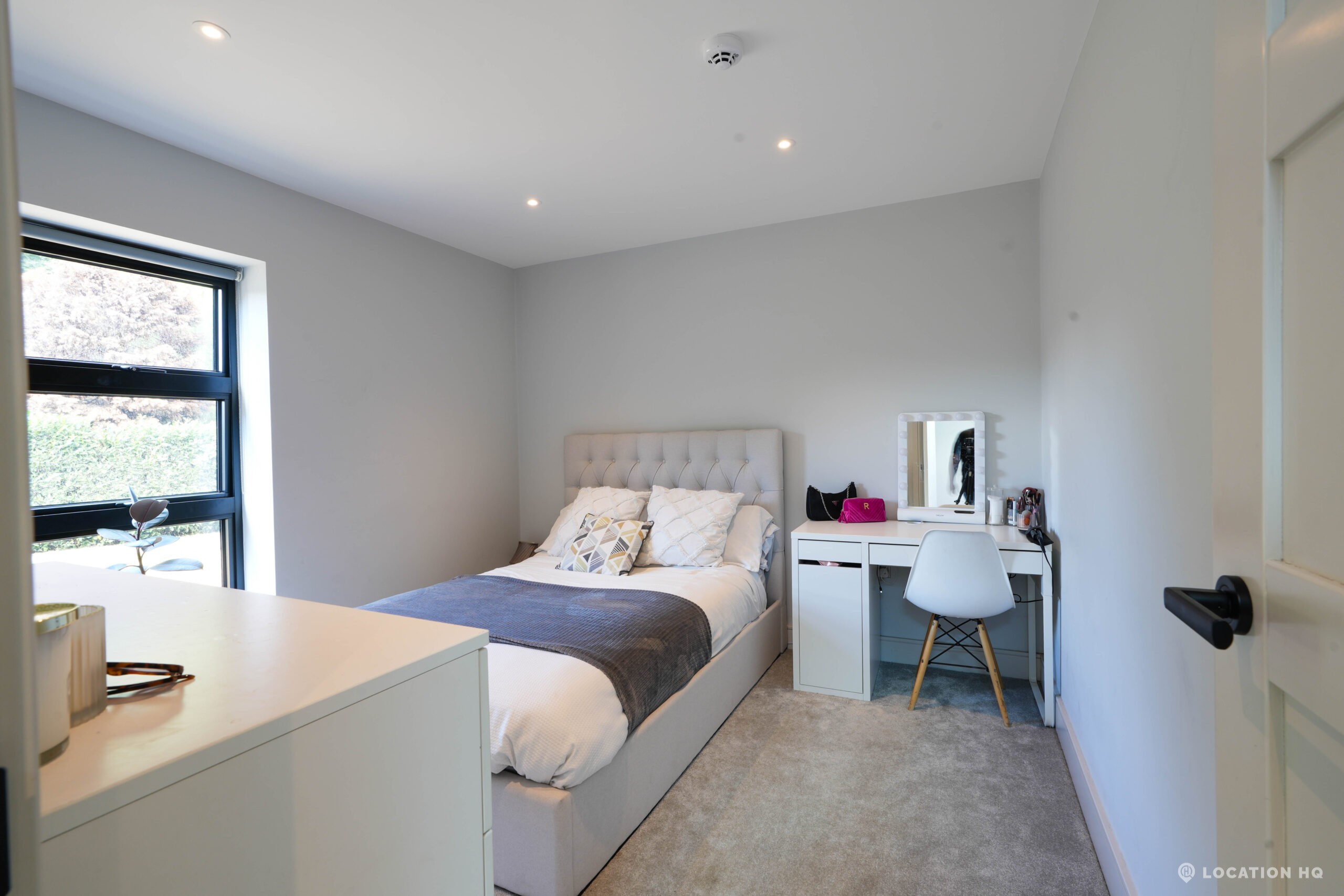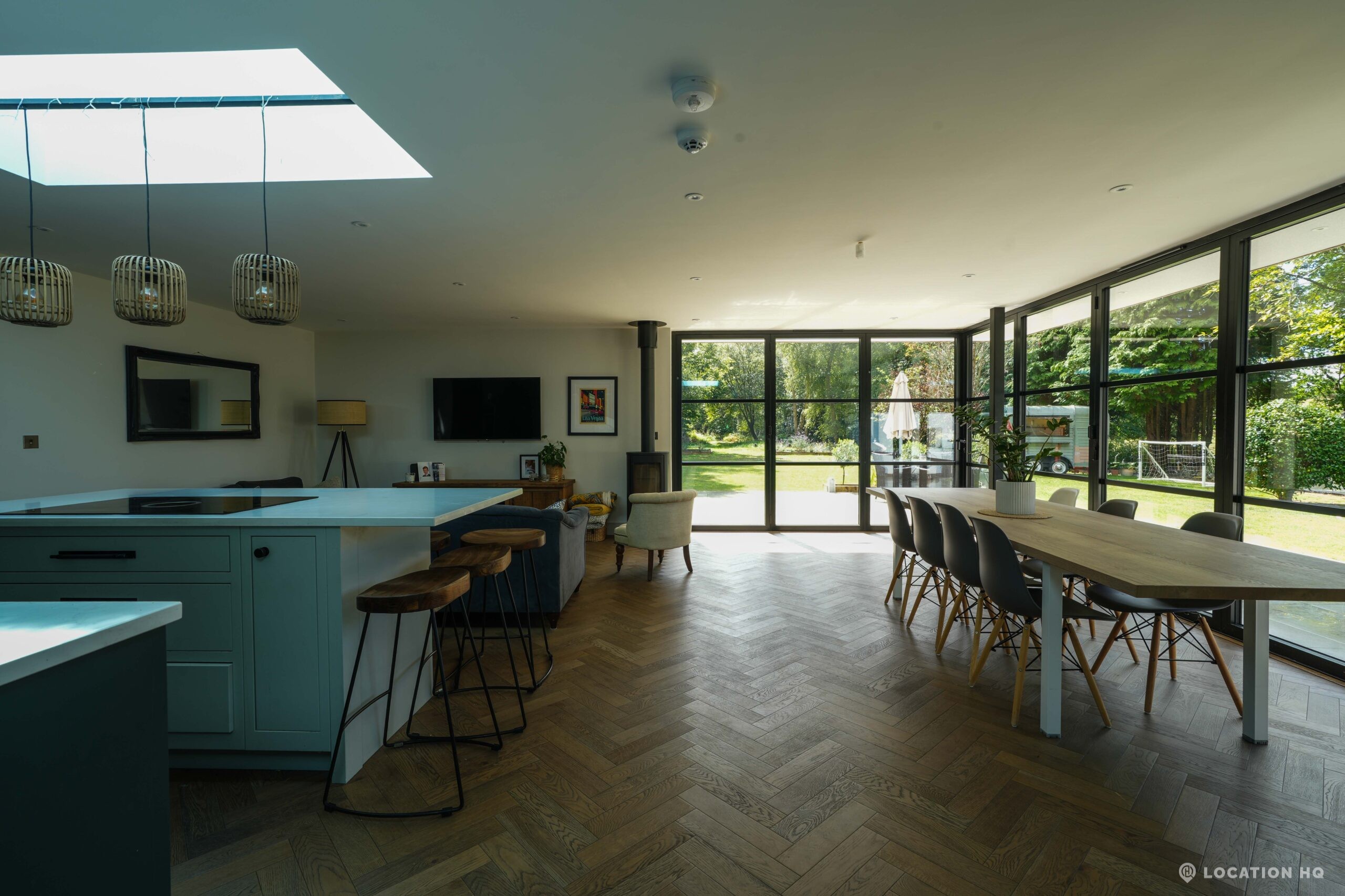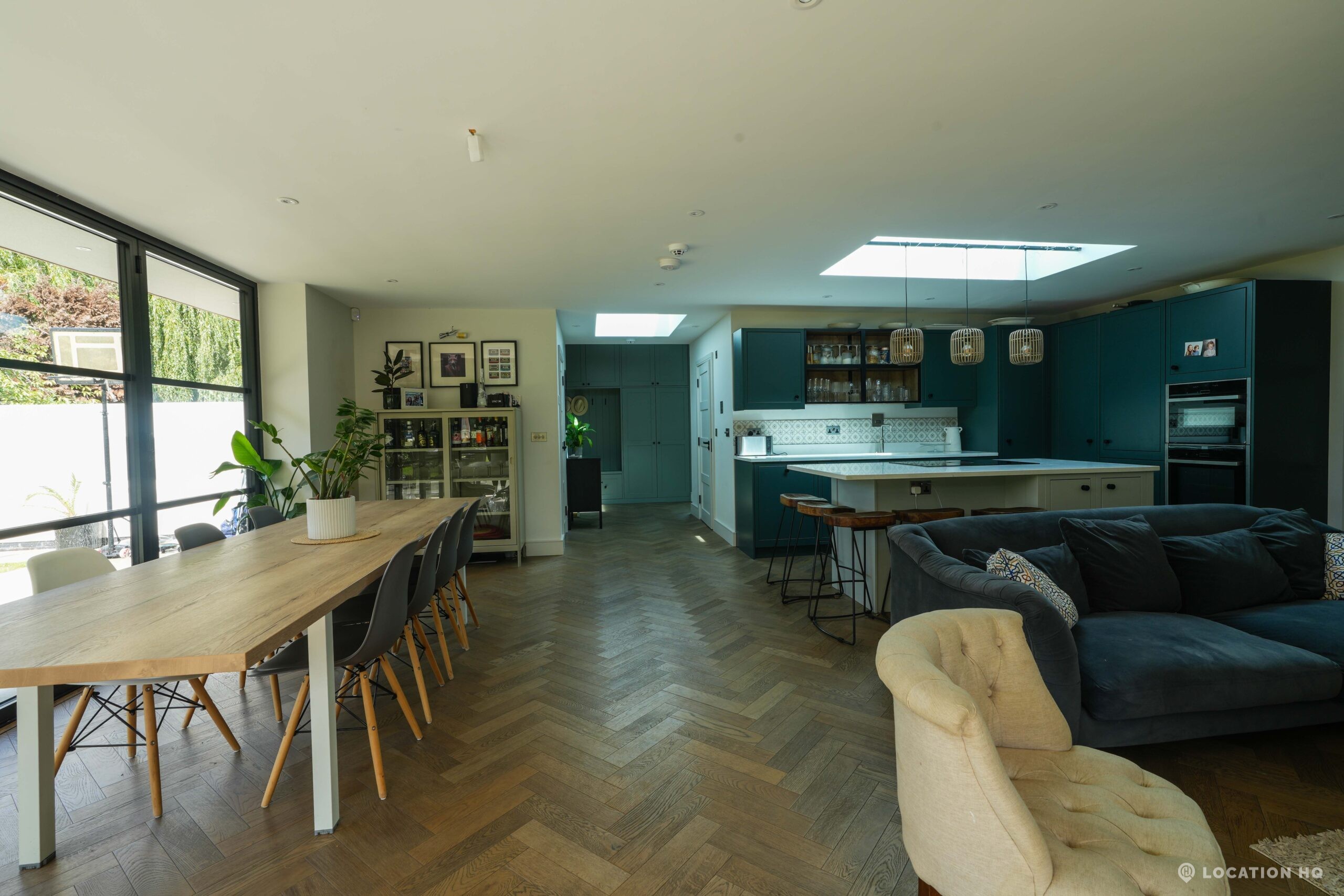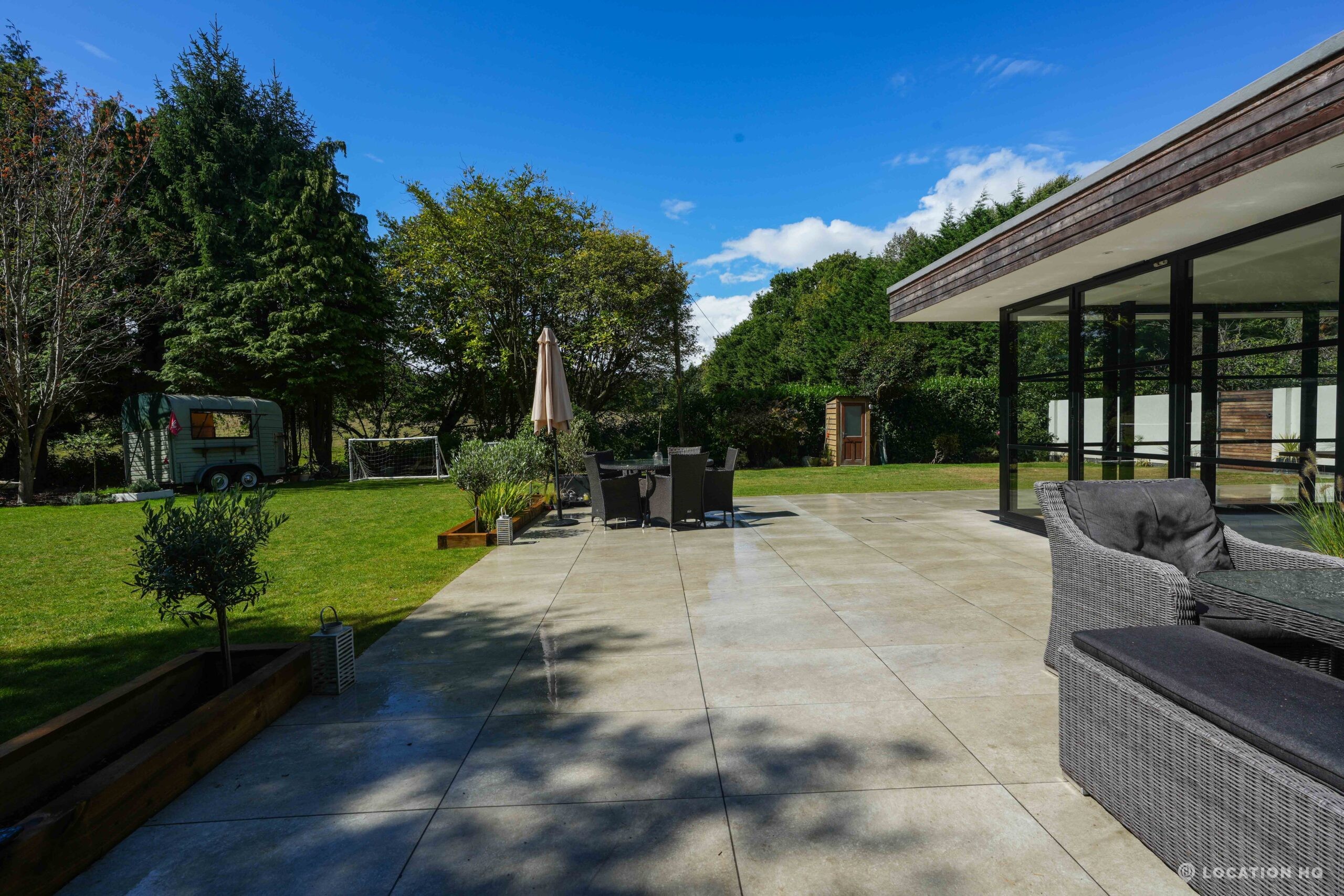 A stunning contemporary house offering a sleek, modern aesthetic ideal for film, TV, and commercial shoots. The property features spacious open-plan interiors with excellent natural light, minimalist design, and high-end finishes. Expansive glass facades provide seamless views of the surrounding large landscaped garden, perfect for exterior scenes. Large drive perfect for scenes with cars. With a balance of architectural style and versatility, this location suits both lifestyle productions and high-end dramas seeking a clean, modern backdrop.