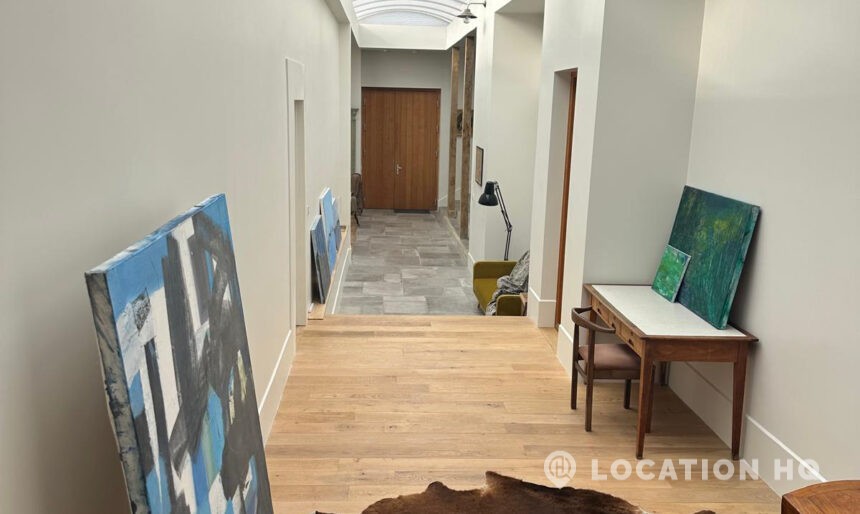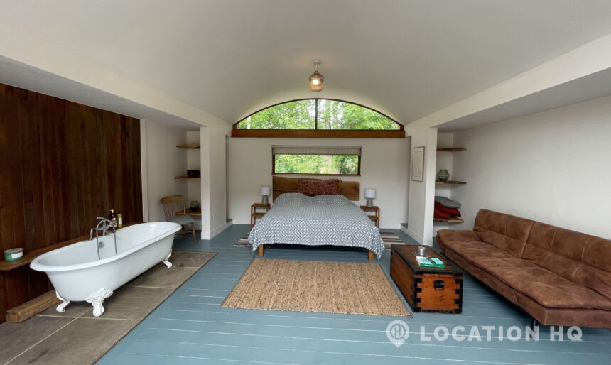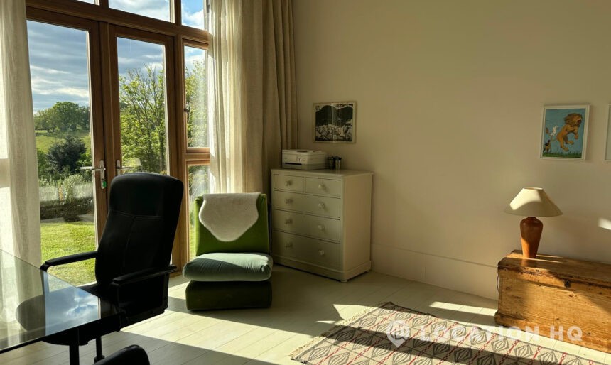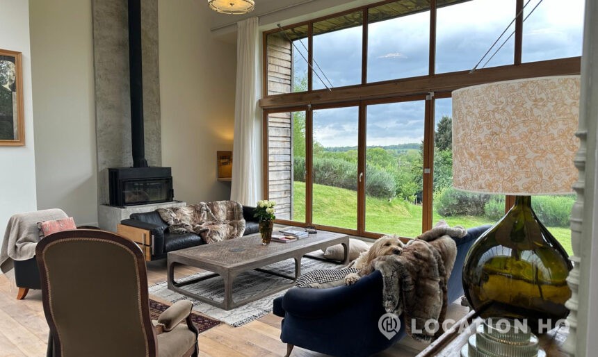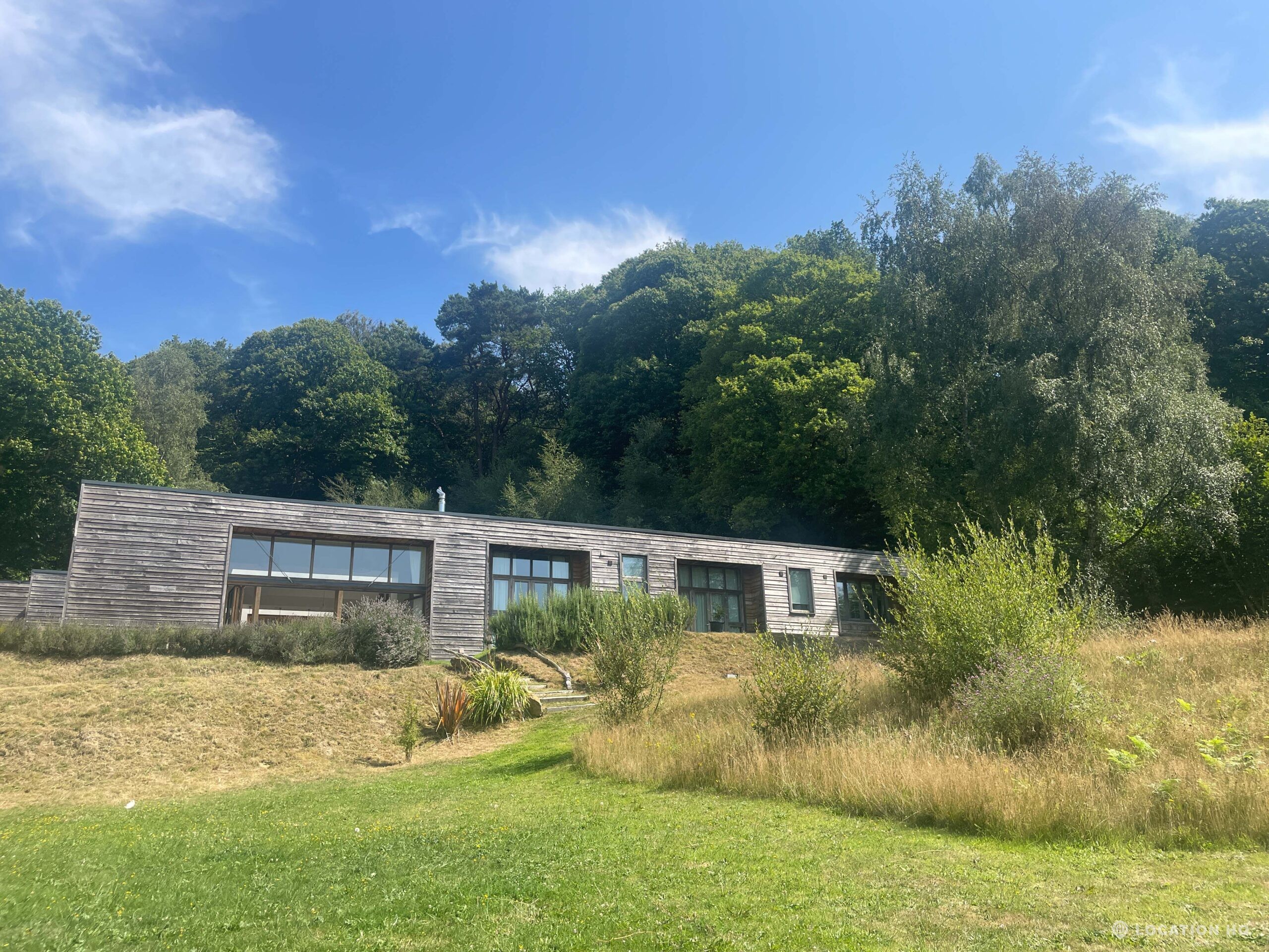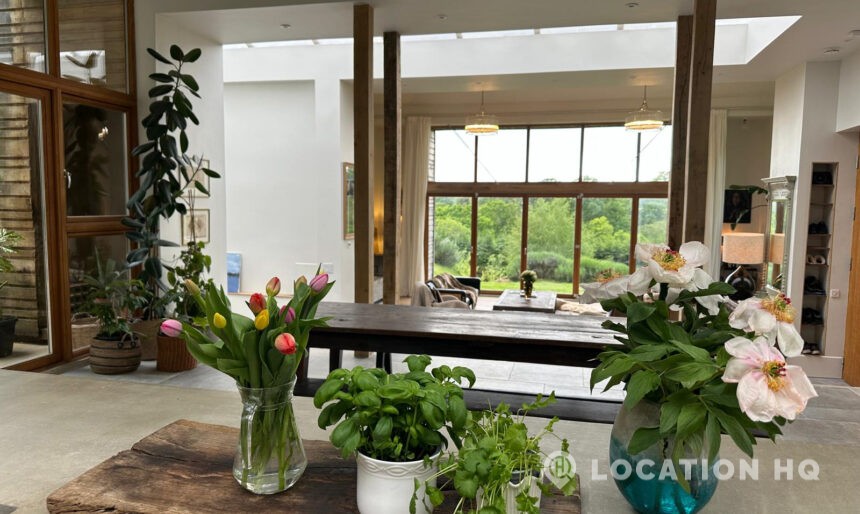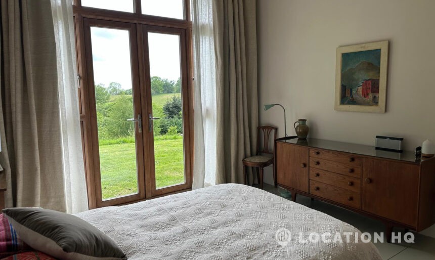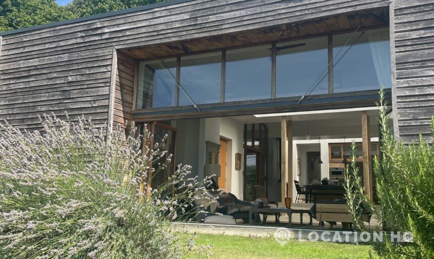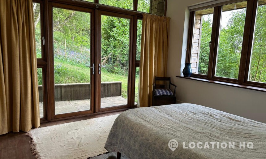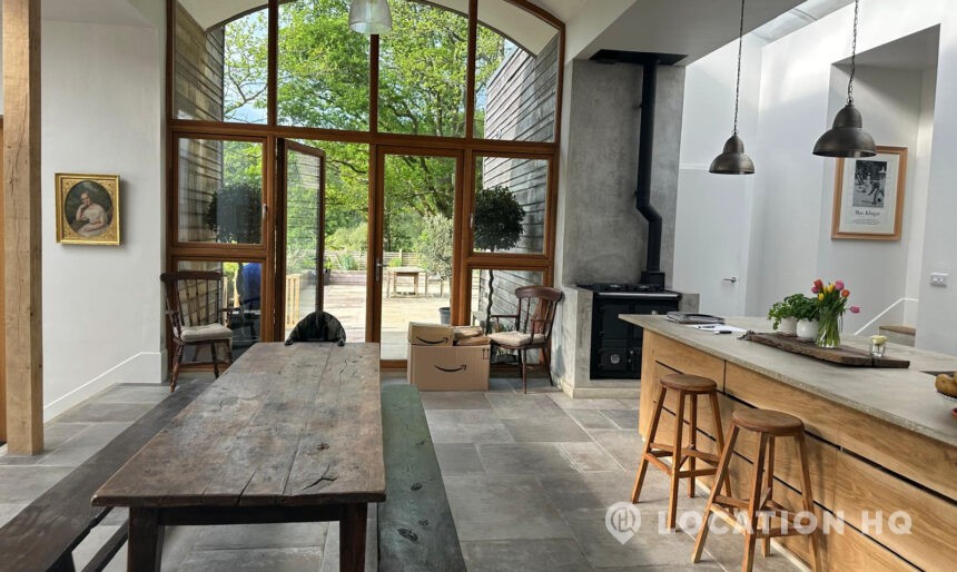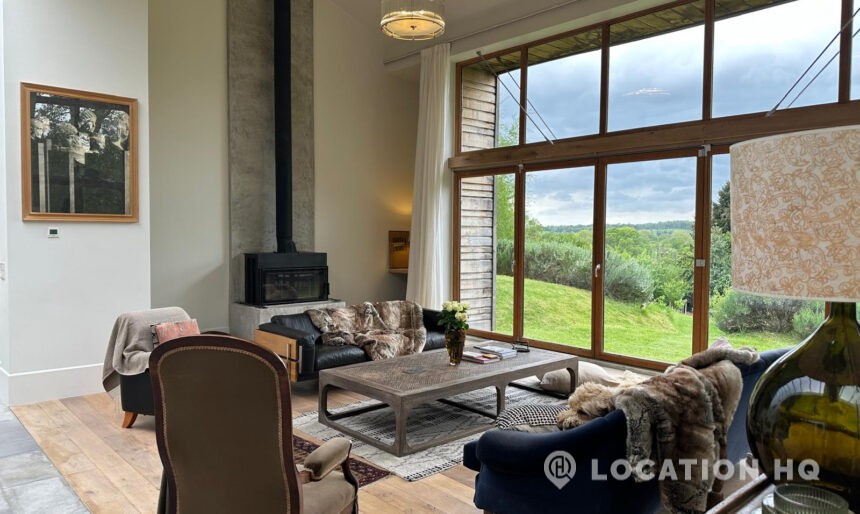 Set high on a quiet hillside, this architect-designed contemporary cabin house offers open views across rolling countryside and wide skies. Large areas of glazing, arched openings and skylights bring in natural light throughout the day, creating a calm and easy flow between living, dining and private spaces. 20th Century Modern. Natural materials and split levels add character without feeling overworked. The surrounding landscape feels close and uninterrupted, making the house a good location for Film and TV shoots needing space, daylight and open surroundings. With on-site parking and simple access, this contemporary house is a practical choice for productions looking for a contemporary house with countryside settings.