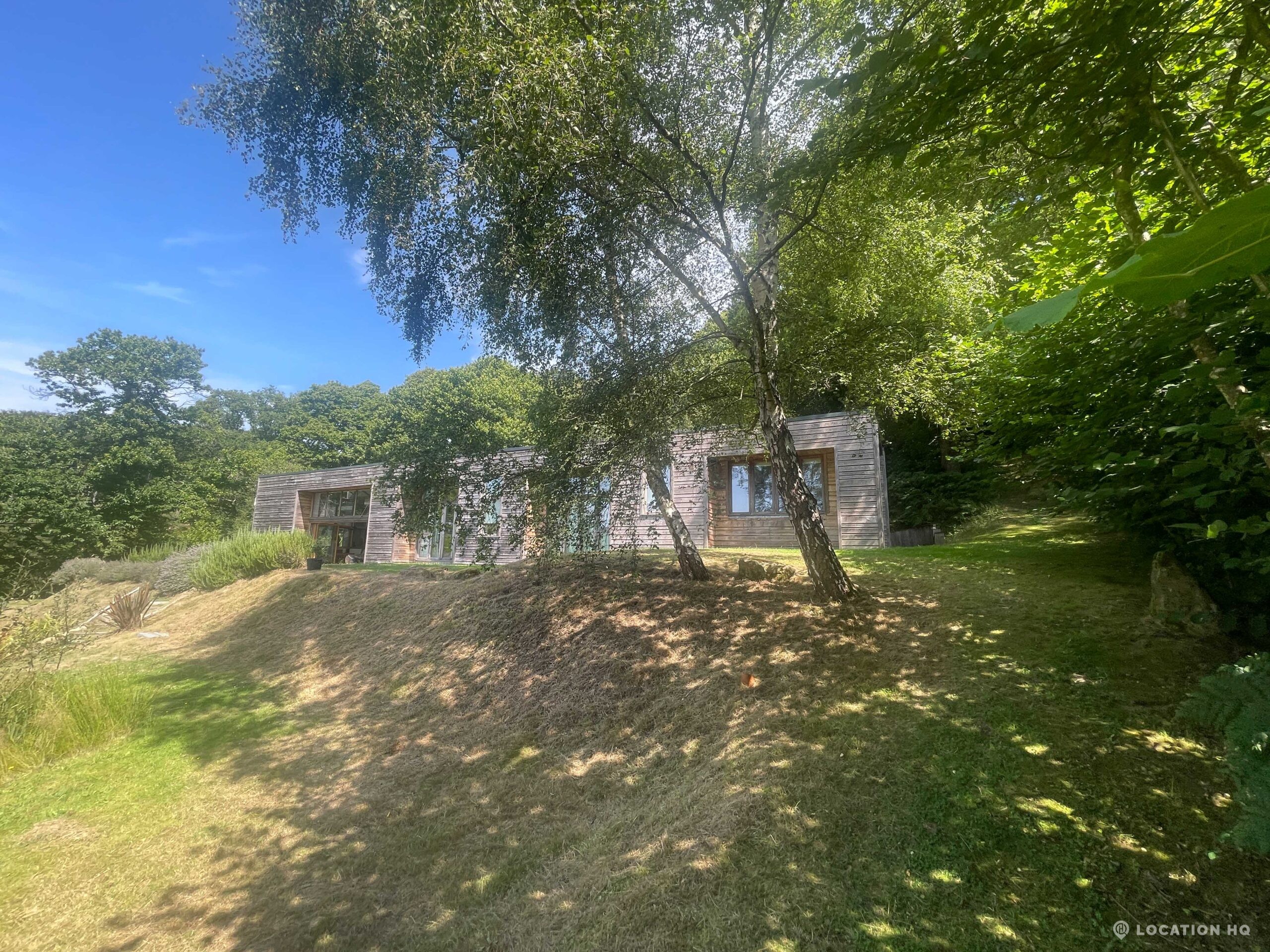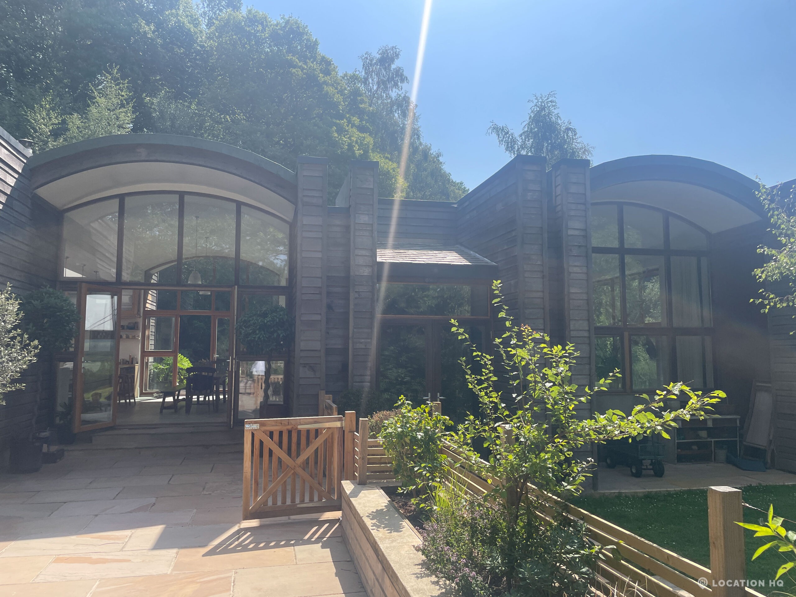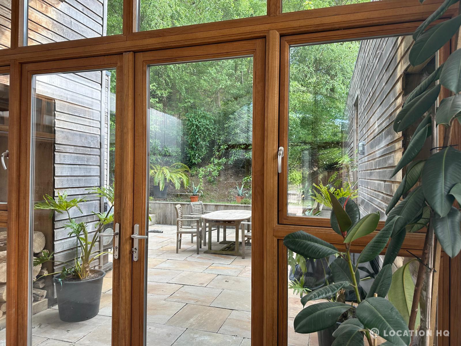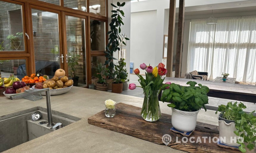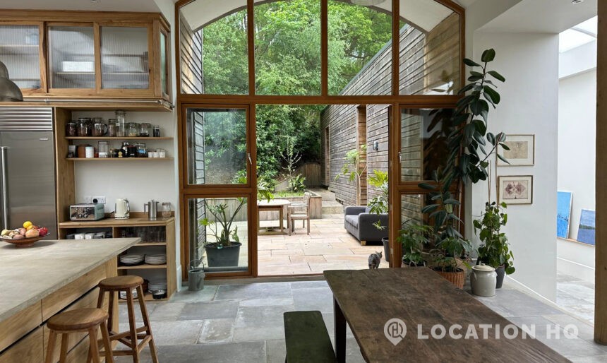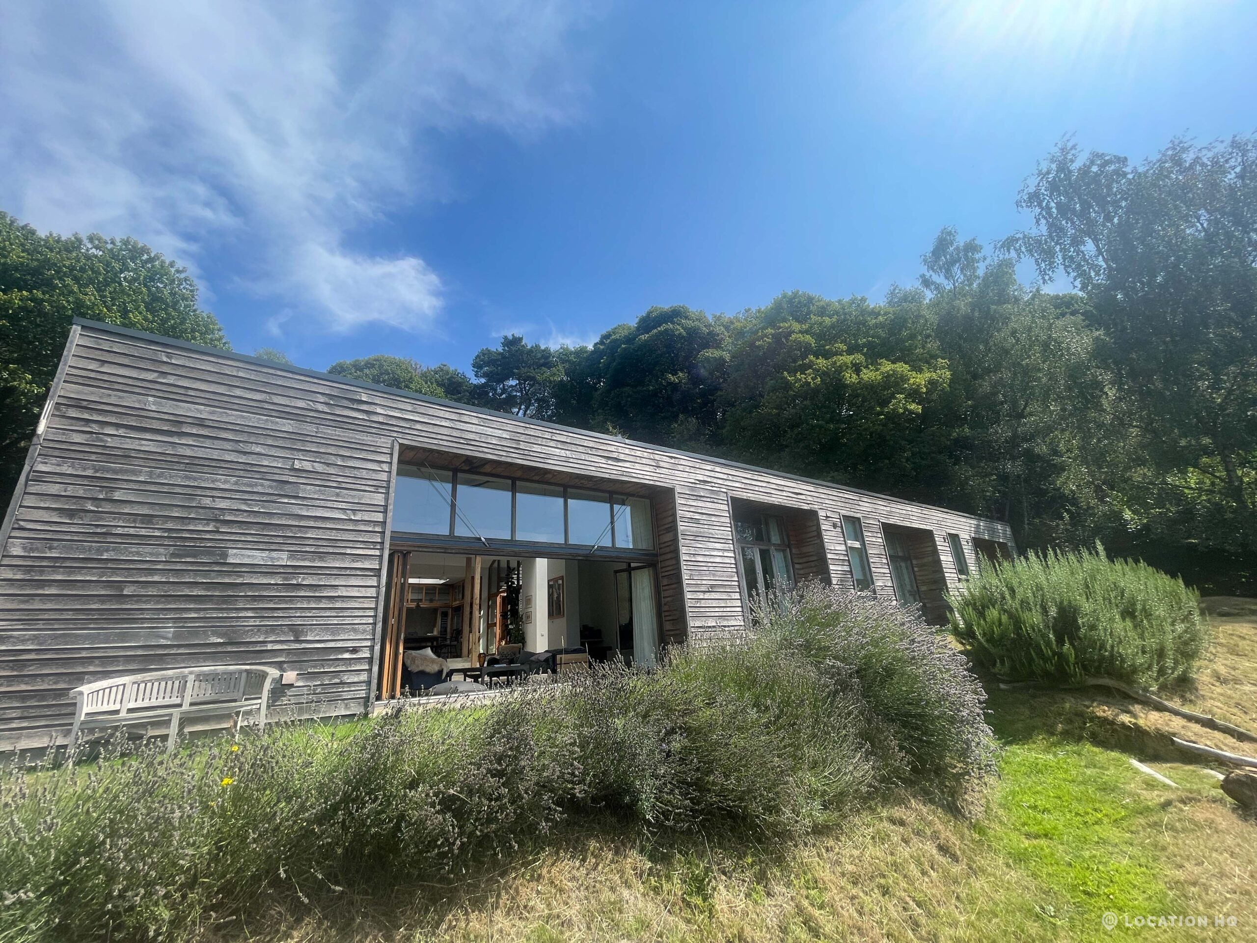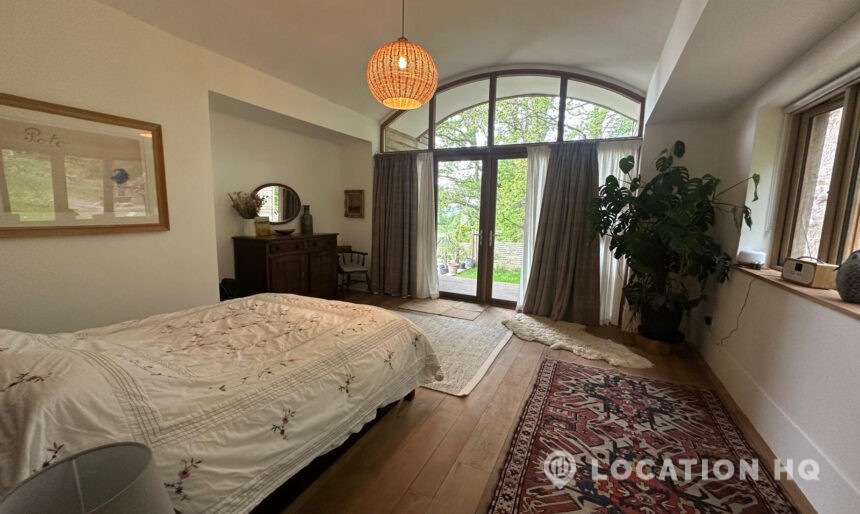 Set high on a quiet hillside, this architect-designed contemporary cabin house offers open views across rolling countryside and wide skies. Large areas of glazing, arched openings and skylights bring in natural light throughout the day, creating a calm and easy flow between living, dining and private spaces. 20th Century Modern. Natural materials and split levels add character without feeling overworked. The surrounding landscape feels close and uninterrupted, making the house a good location for Film and TV shoots needing space, daylight and open surroundings. With on-site parking and simple access, this contemporary house is a practical choice for productions looking for a contemporary house with countryside settings.