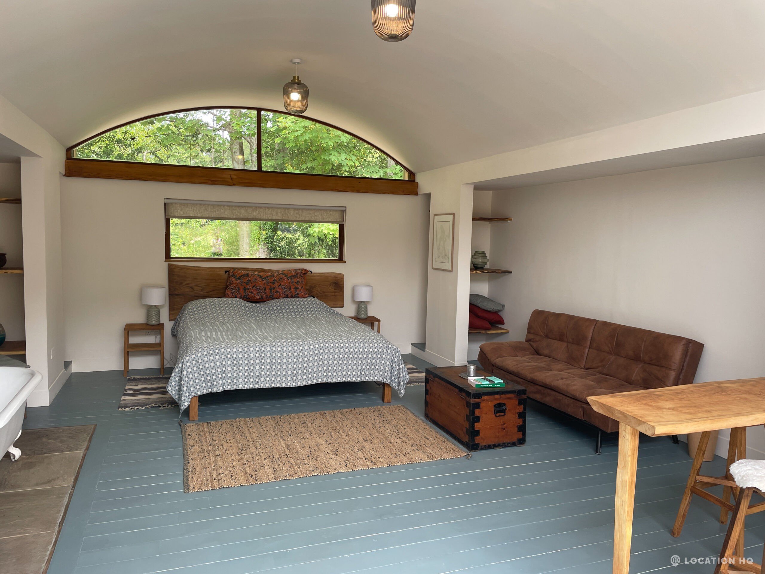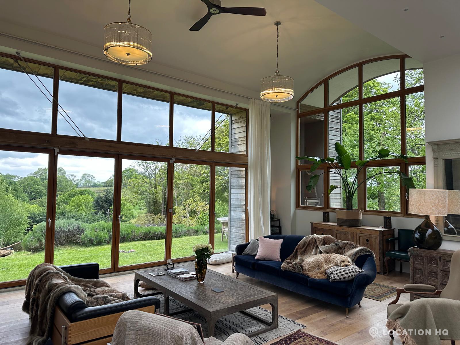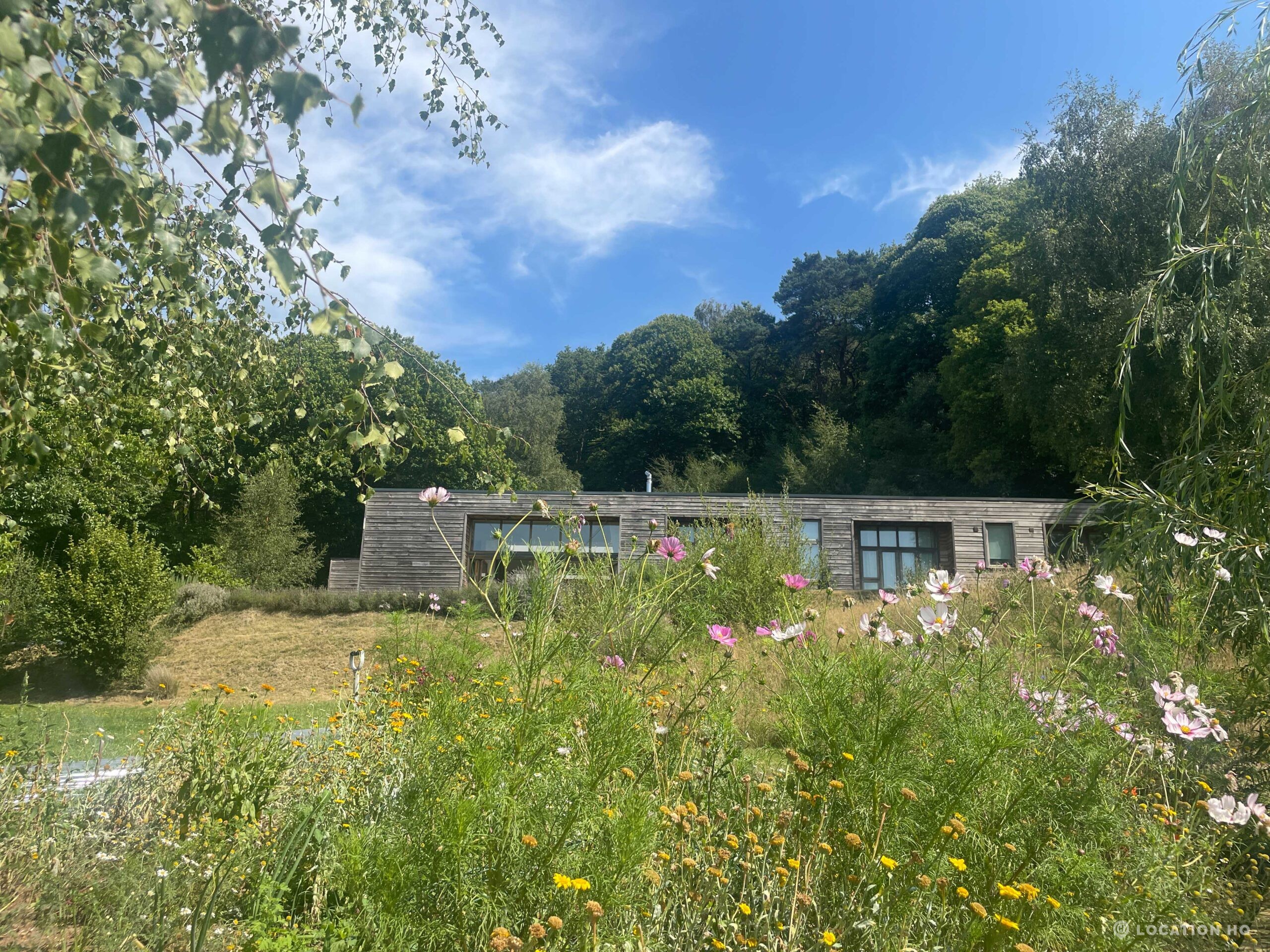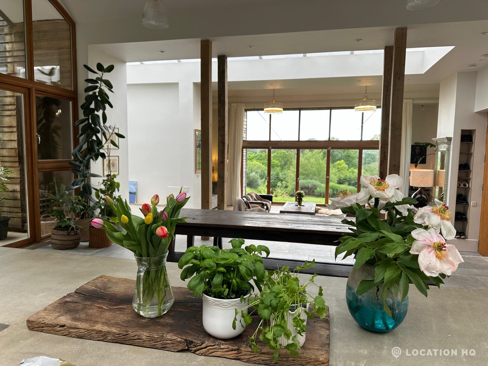 Set high on a quiet hillside, this architect-designed contemporary cabin house offers open views across rolling countryside and wide skies. Large areas of glazing, arched openings and skylights bring in natural light throughout the day, creating a calm and easy flow between living, dining and private spaces. 20th Century Modern. Natural materials and split levels add character without feeling overworked. The surrounding landscape feels close and uninterrupted, making the house a good location for Film and TV shoots needing space, daylight and open surroundings. With on-site parking and simple access, this contemporary house is a practical choice for productions looking for a contemporary house with countryside settings.
