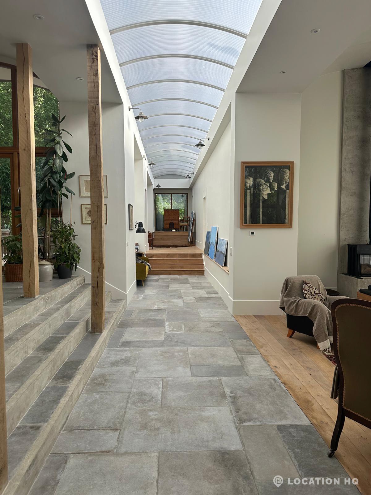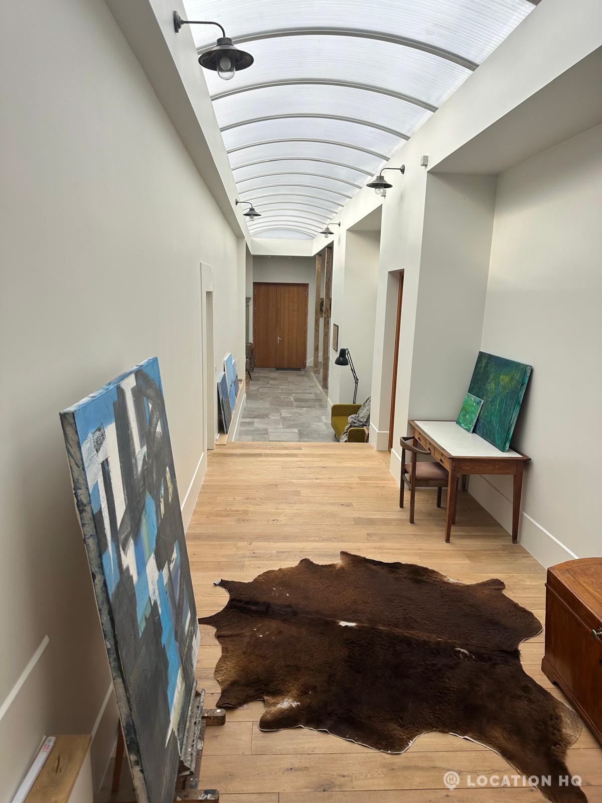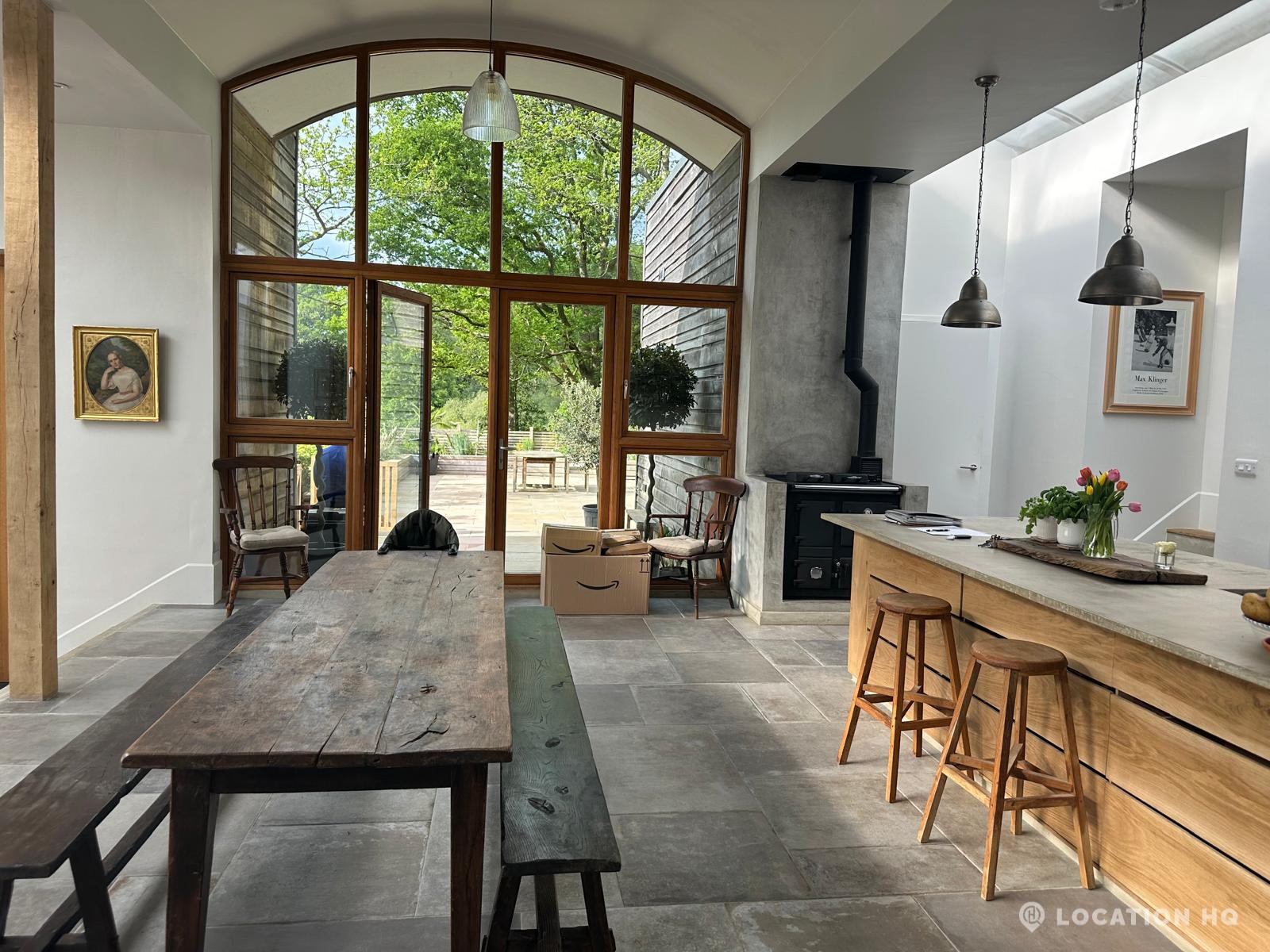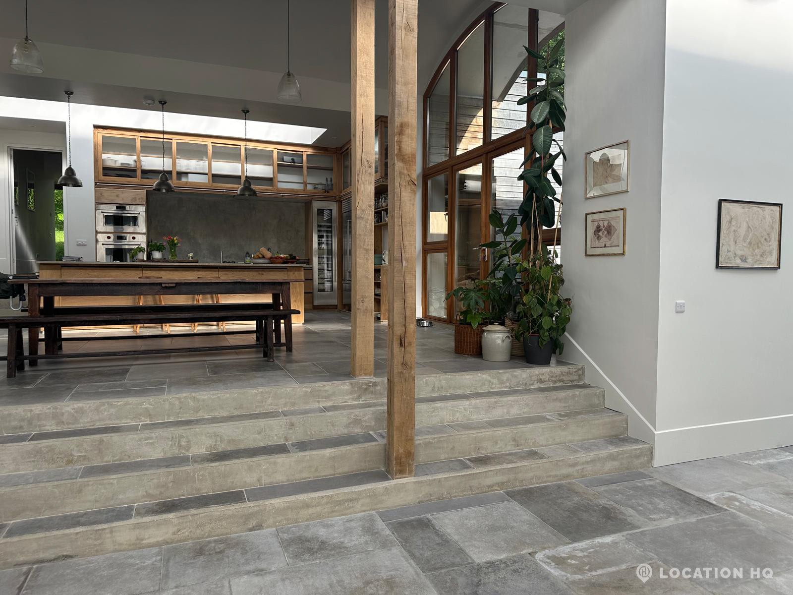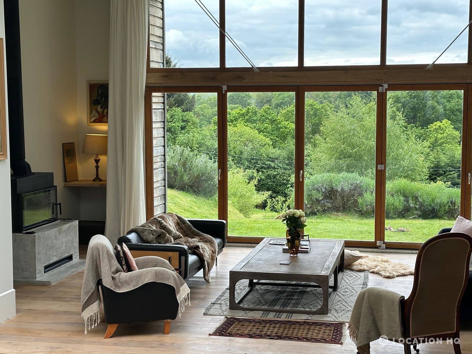 Set high on a quiet hillside, this architect-designed contemporary cabin house offers open views across rolling countryside and wide skies. Large areas of glazing, arched openings and skylights bring in natural light throughout the day, creating a calm and easy flow between living, dining and private spaces. 20th Century Modern. Natural materials and split levels add character without feeling overworked. The surrounding landscape feels close and uninterrupted, making the house a good location for Film and TV shoots needing space, daylight and open surroundings. With on-site parking and simple access, this contemporary house is a practical choice for productions looking for a contemporary house with countryside settings.