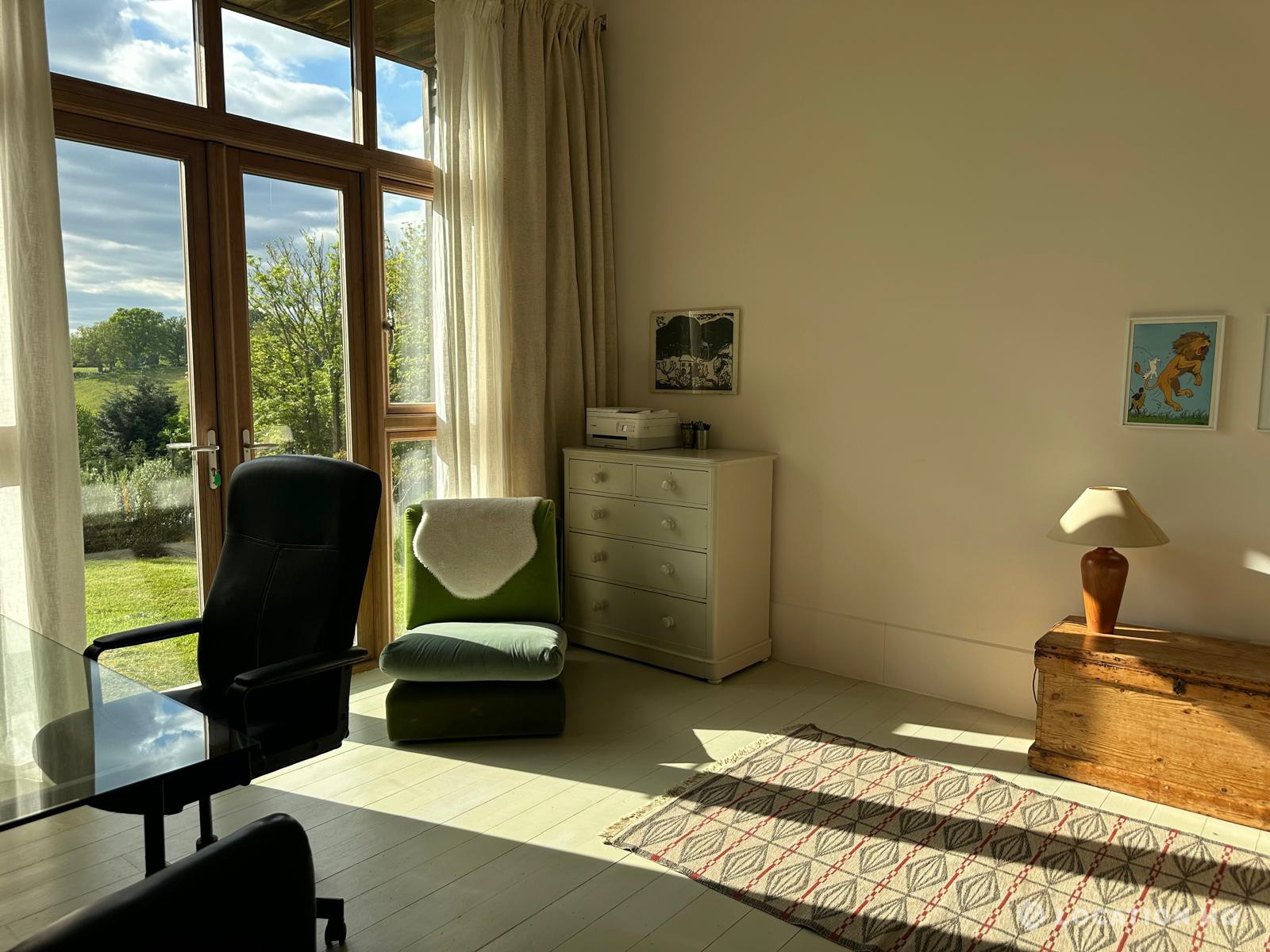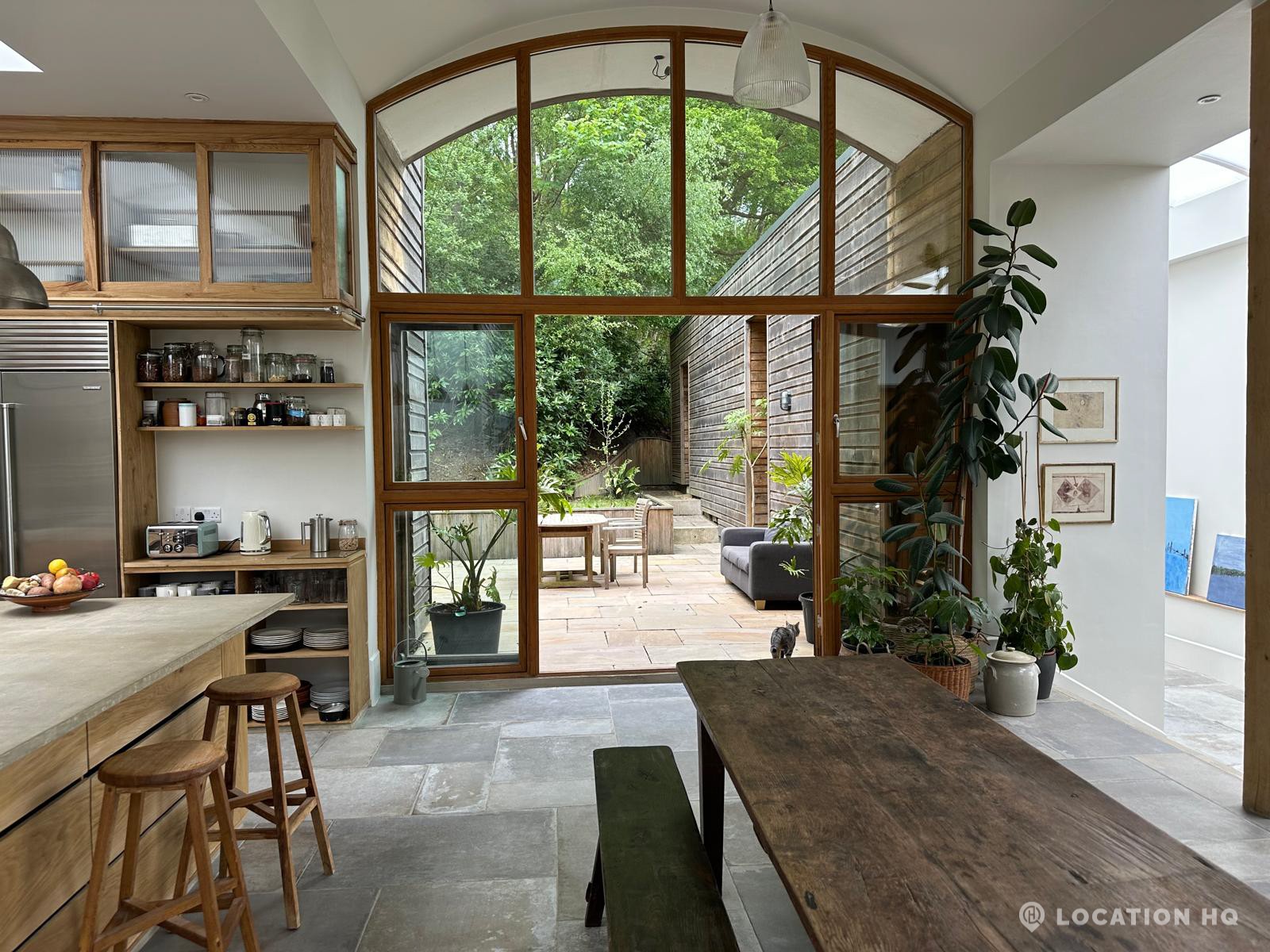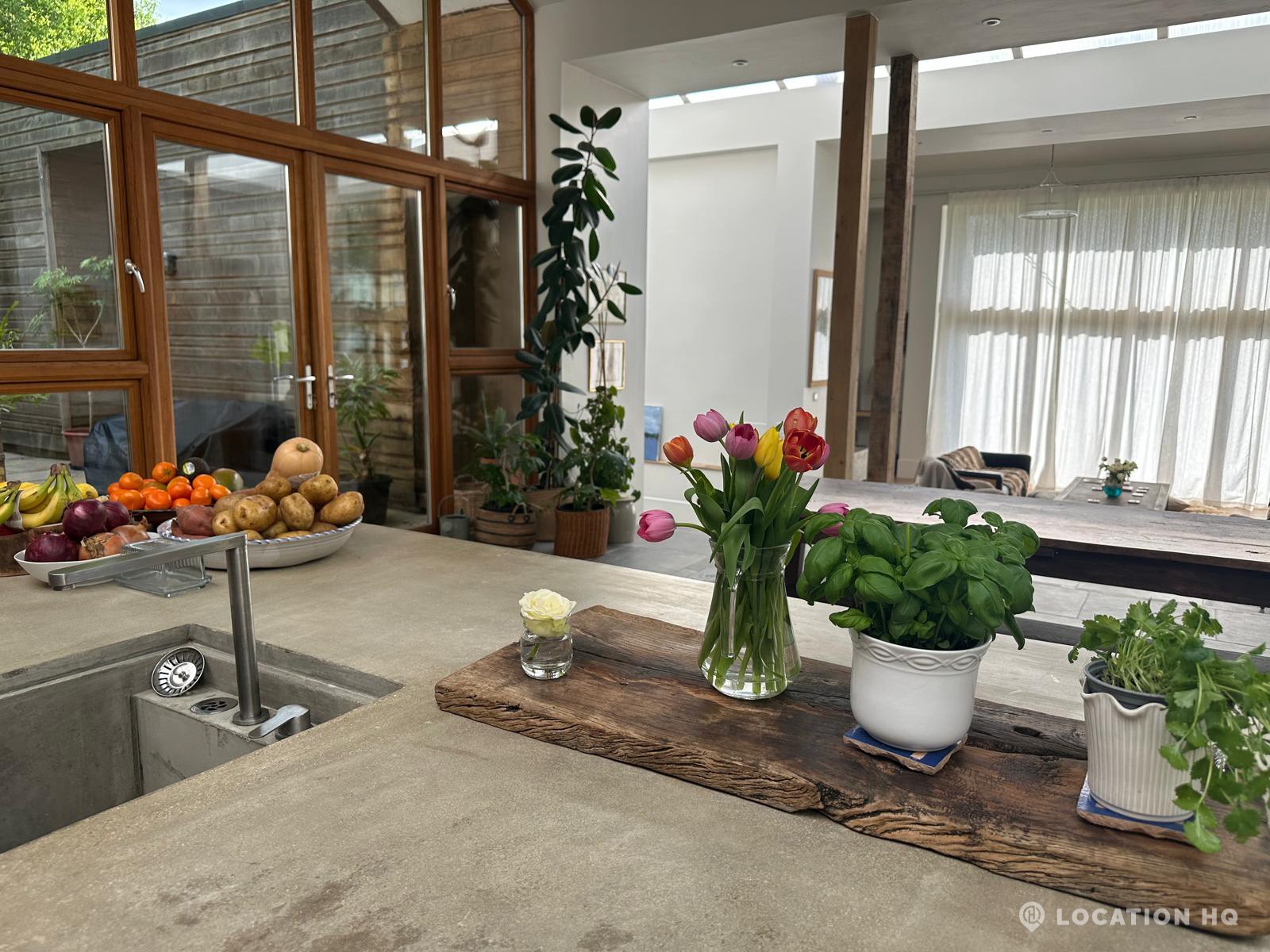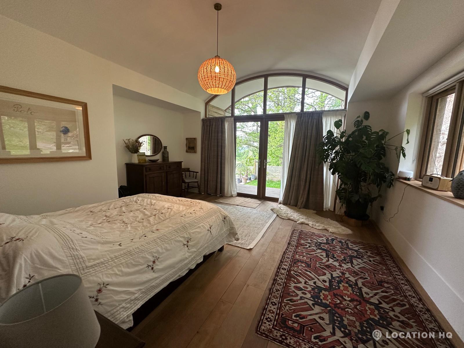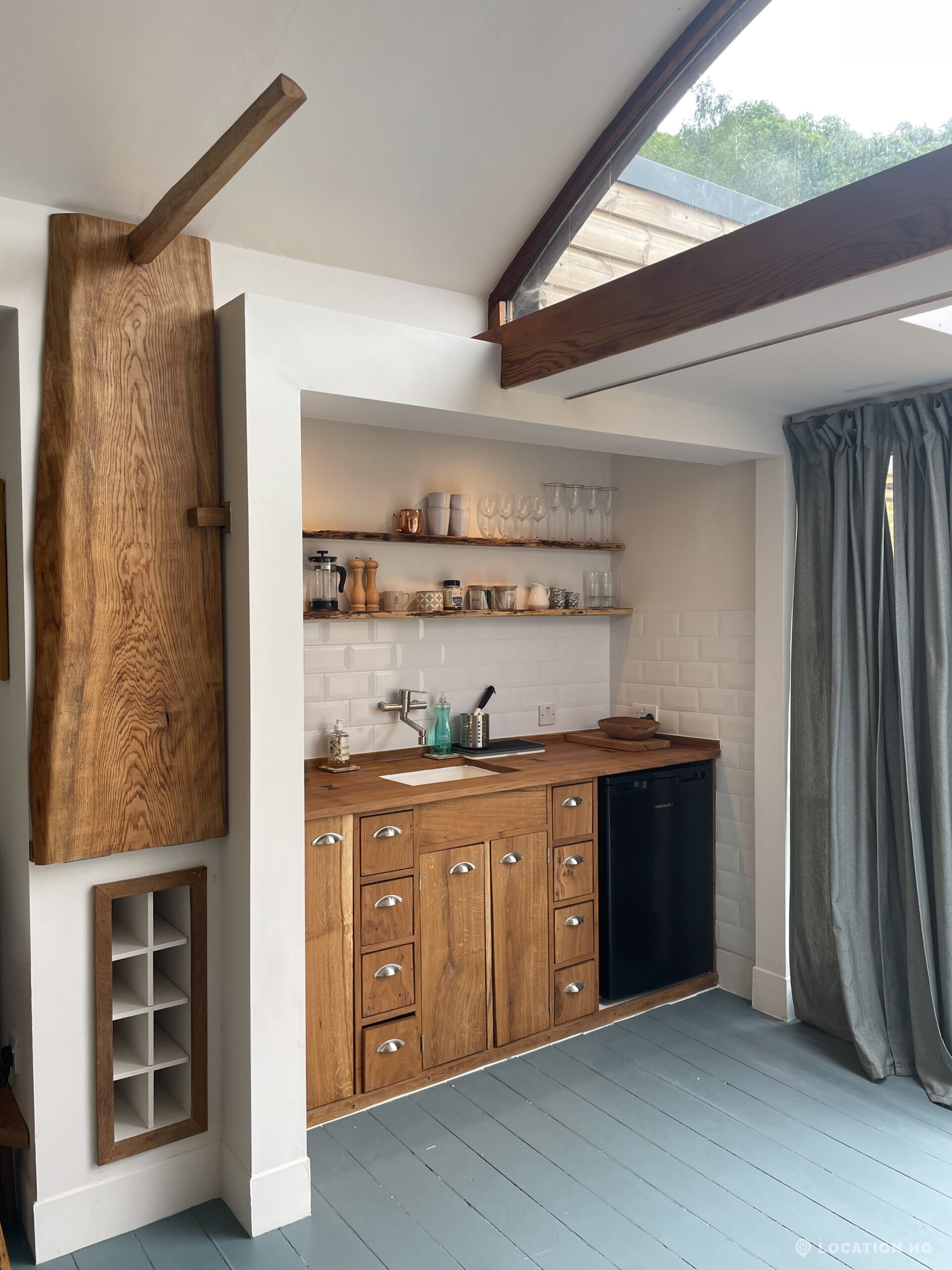 Set high on a quiet hillside, this architect-designed contemporary cabin house offers open views across rolling countryside and wide skies. Large areas of glazing, arched openings and skylights bring in natural light throughout the day, creating a calm and easy flow between living, dining and private spaces. 20th Century Modern. Natural materials and split levels add character without feeling overworked. The surrounding landscape feels close and uninterrupted, making the house a good location for Film and TV shoots needing space, daylight and open surroundings. With on-site parking and simple access, this contemporary house is a practical choice for productions looking for a contemporary house with countryside settings.