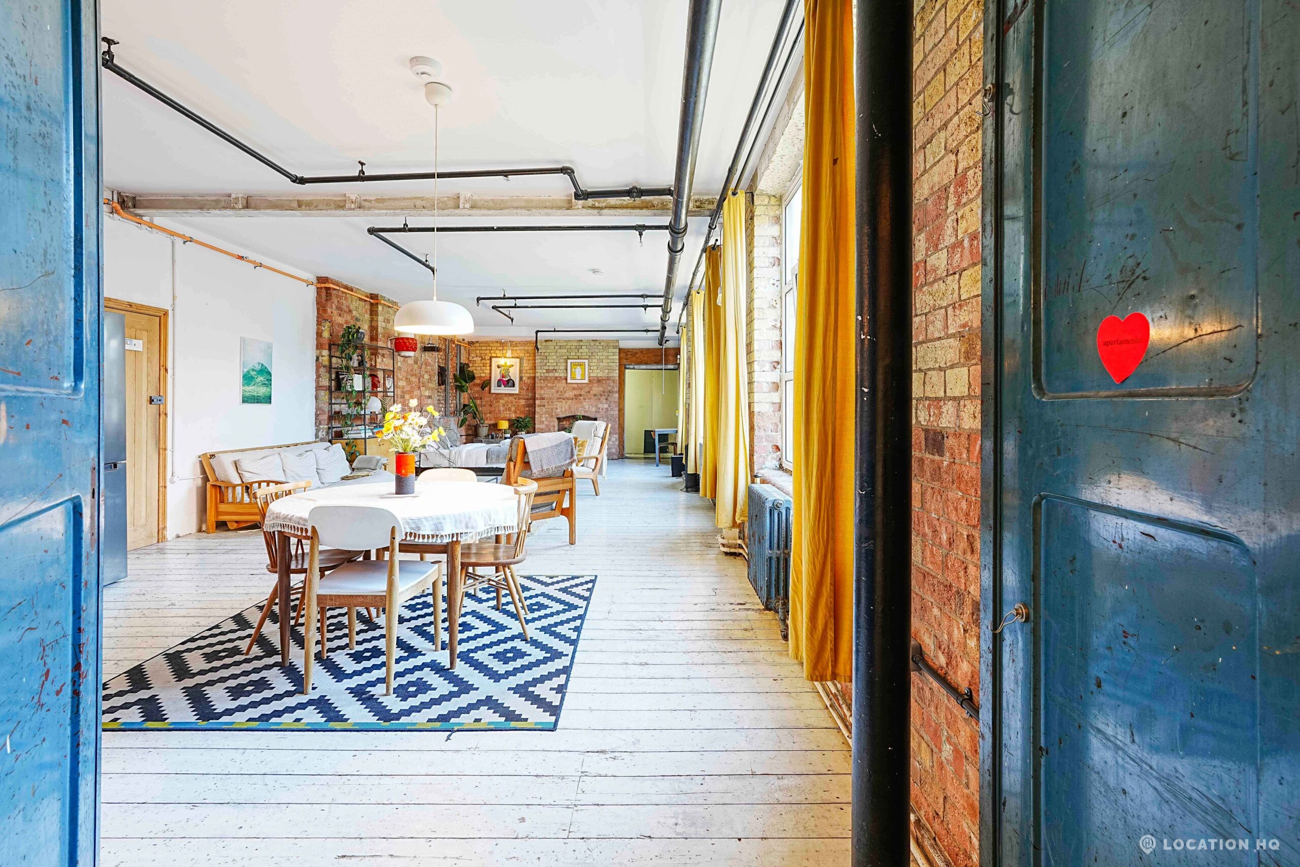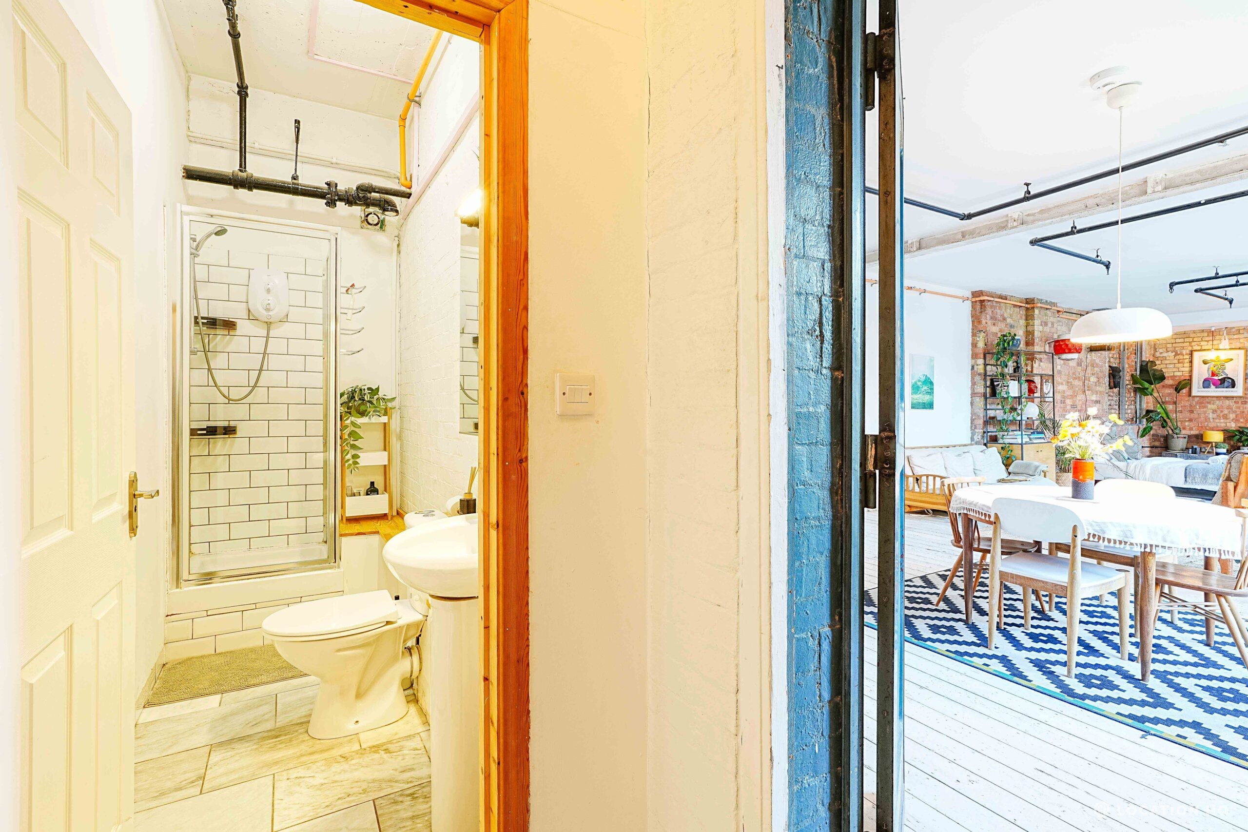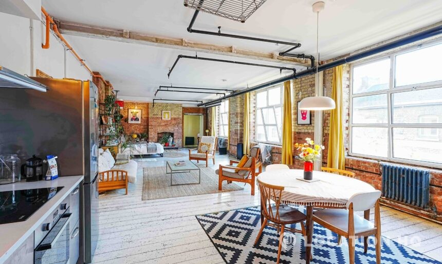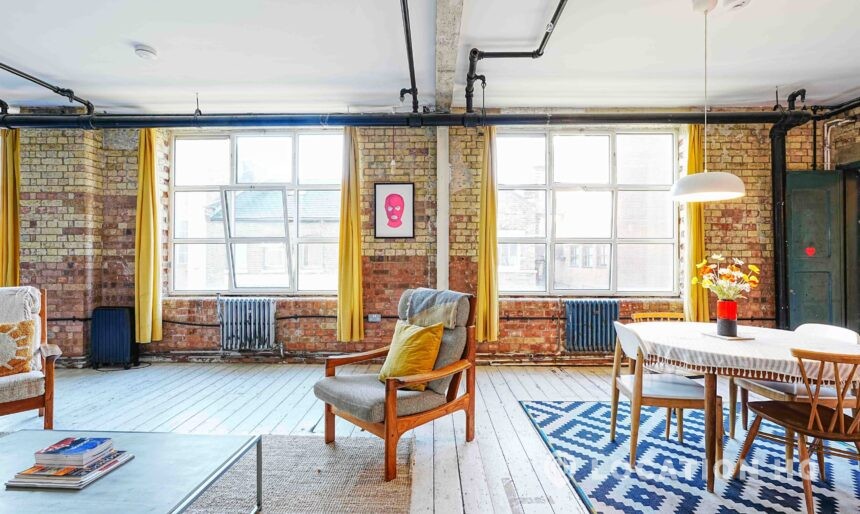 Converted Warehouse Apartment. Authentic East London industrial feel with exposed brickwork, original beams and an open, flexible layout ideal for filming. The space has a warm character thanks to the building’s heritage as a former factory, now reimagined as a modern home while keeping its raw edges.