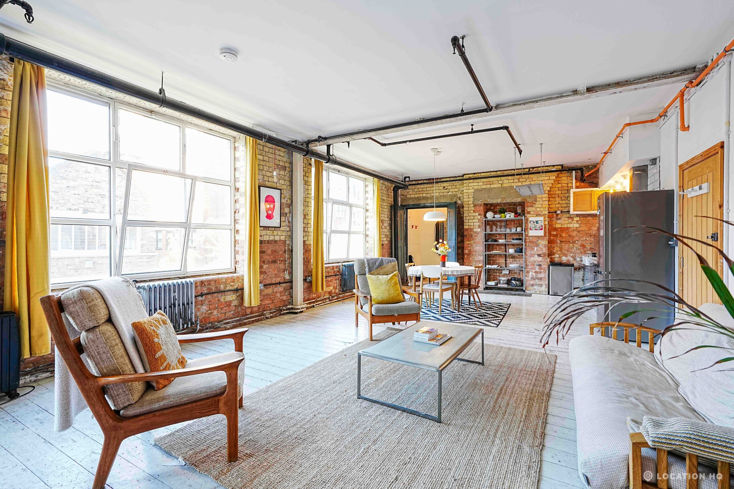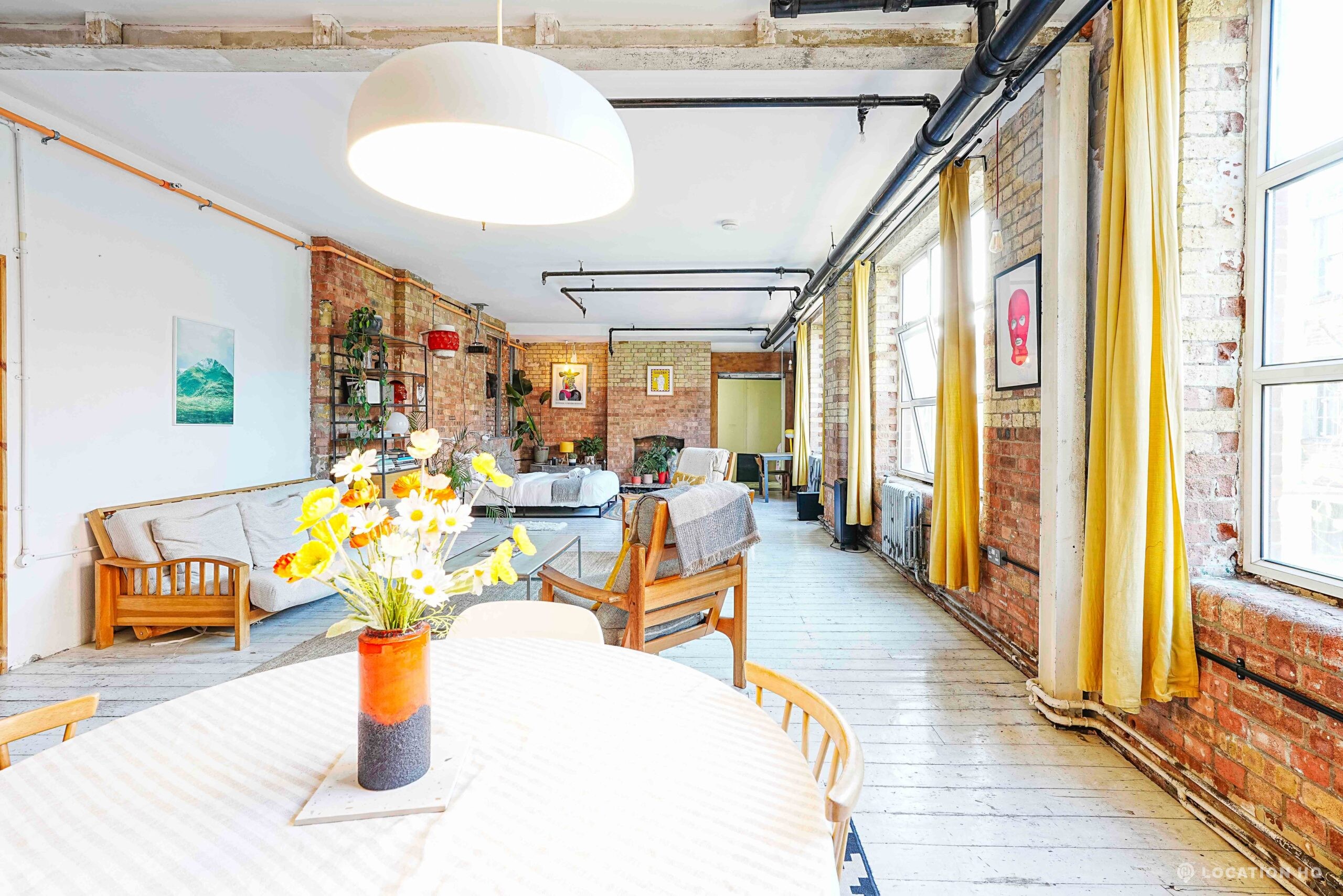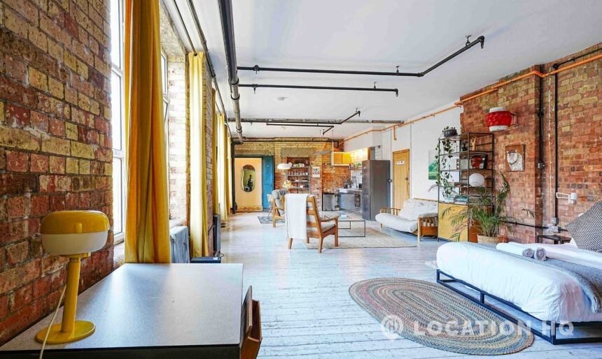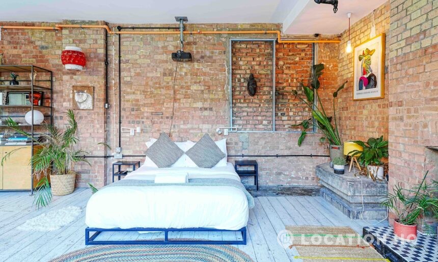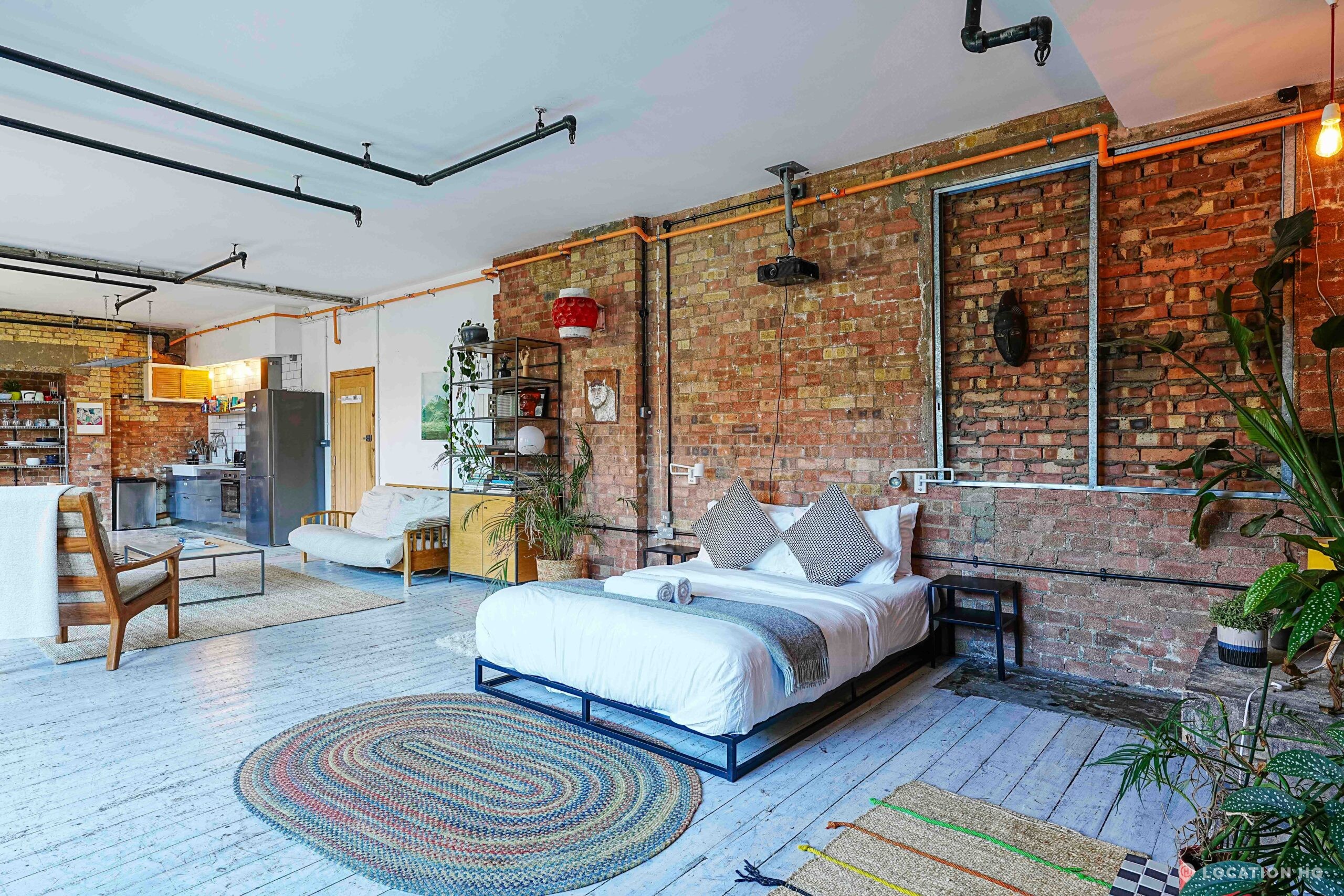 This Converted Warehouse Apartment in London features exposed brick, high ceilings and open-plan industrial character, offering a bright and versatile backdrop ideal for film, photography and creative shoots.