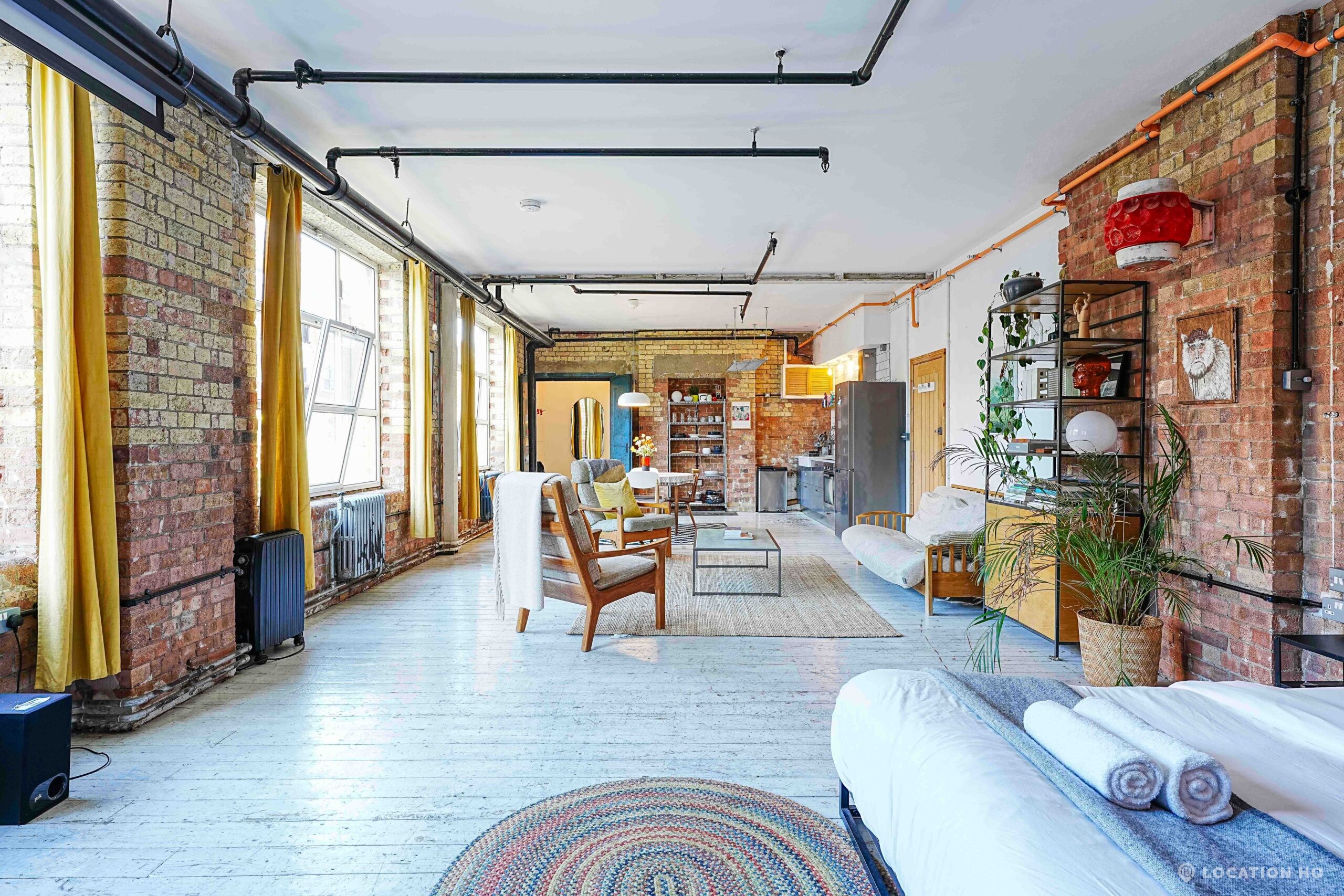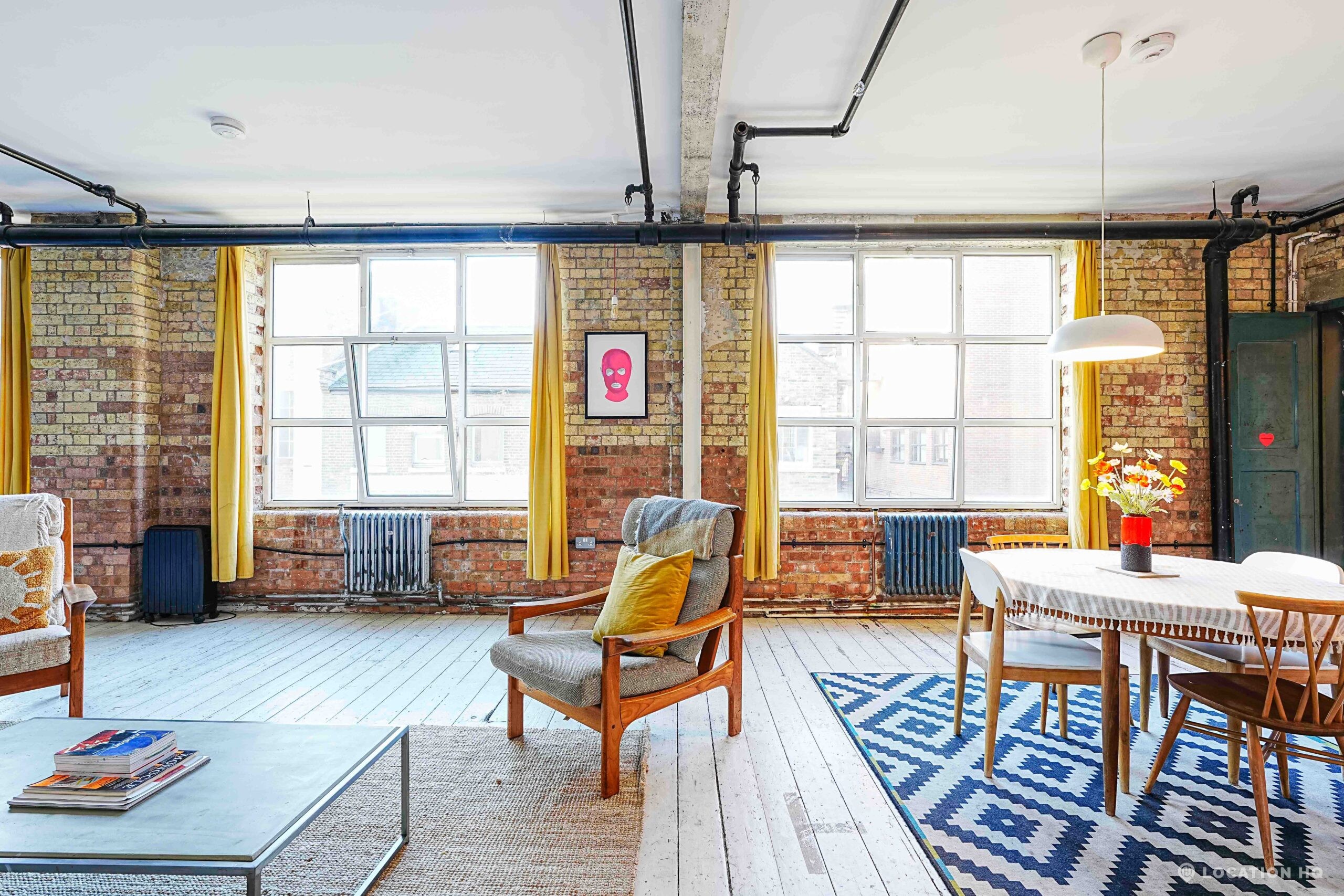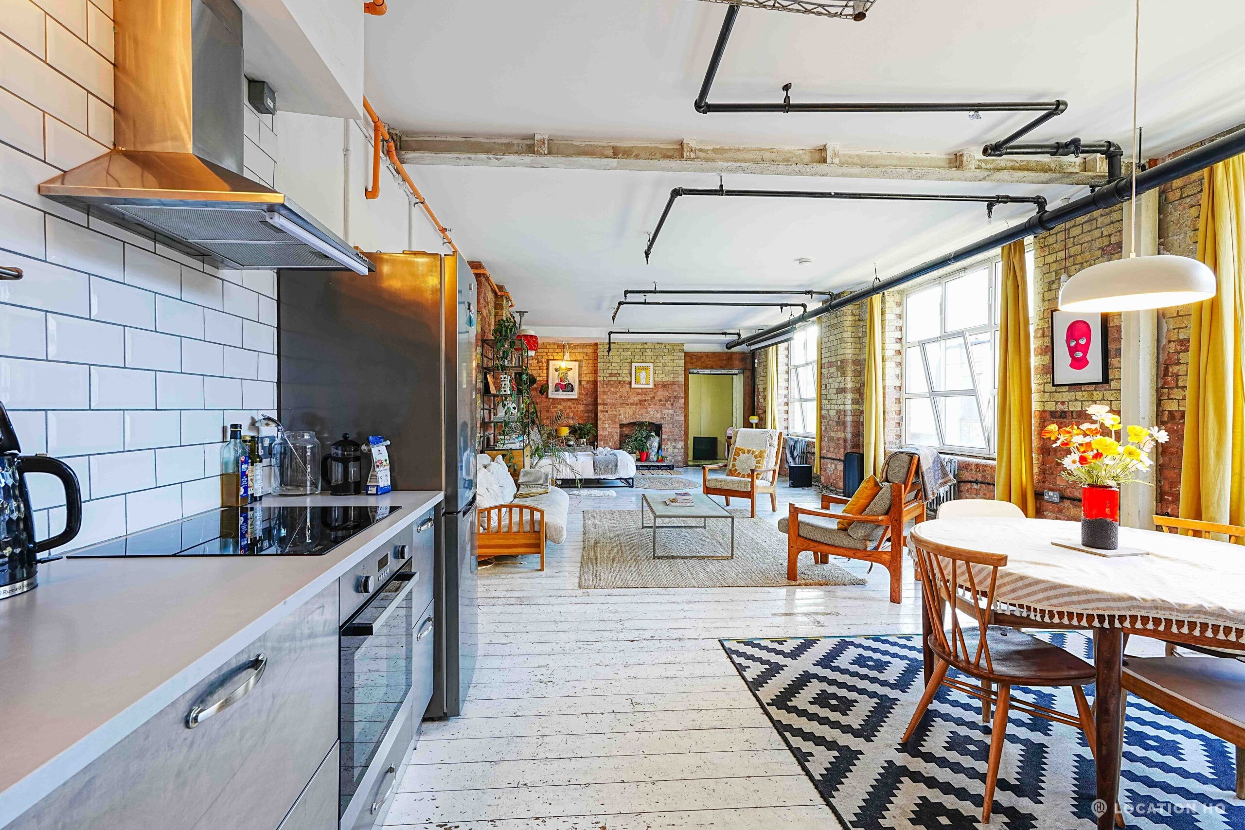 This Converted Warehouse Apartment in London features exposed brick, high ceilings and open-plan industrial character, offering a bright and versatile backdrop ideal for film, photography and creative shoots.