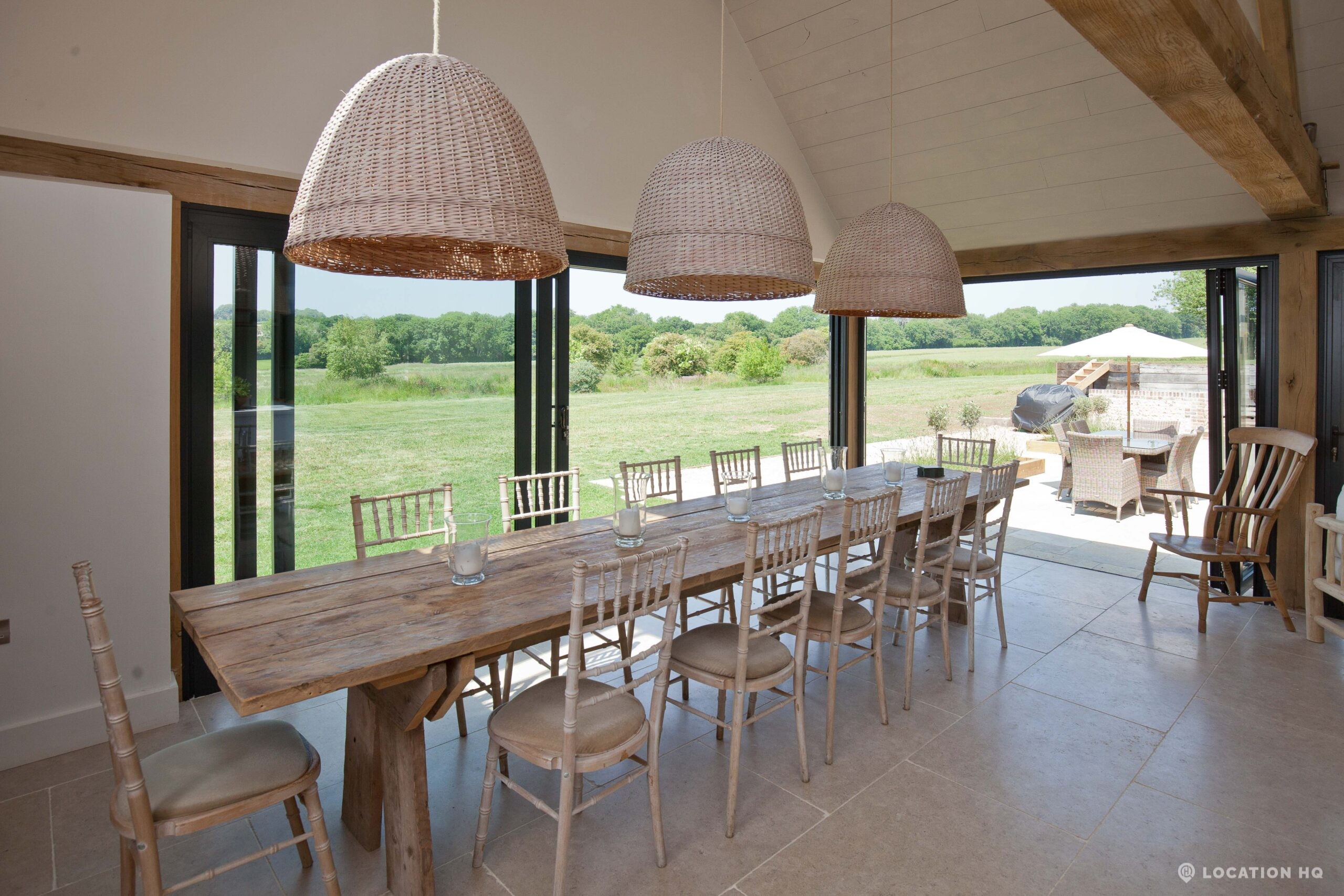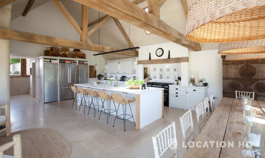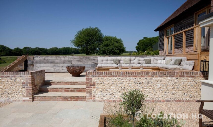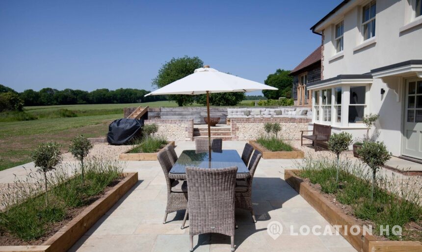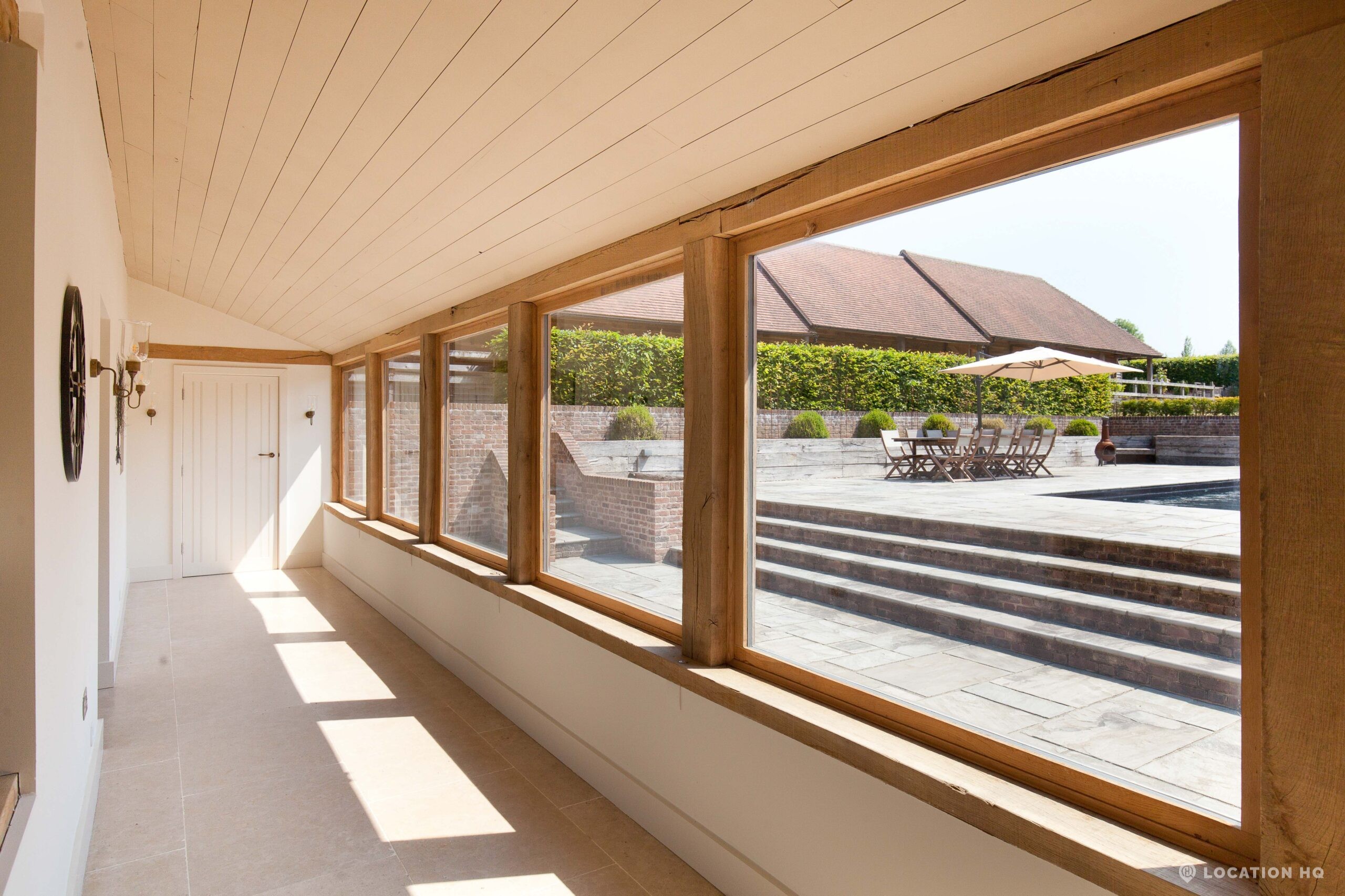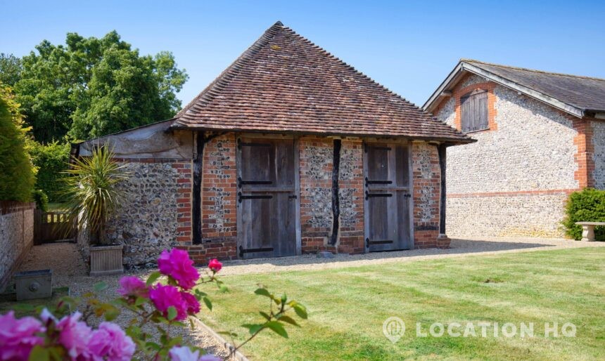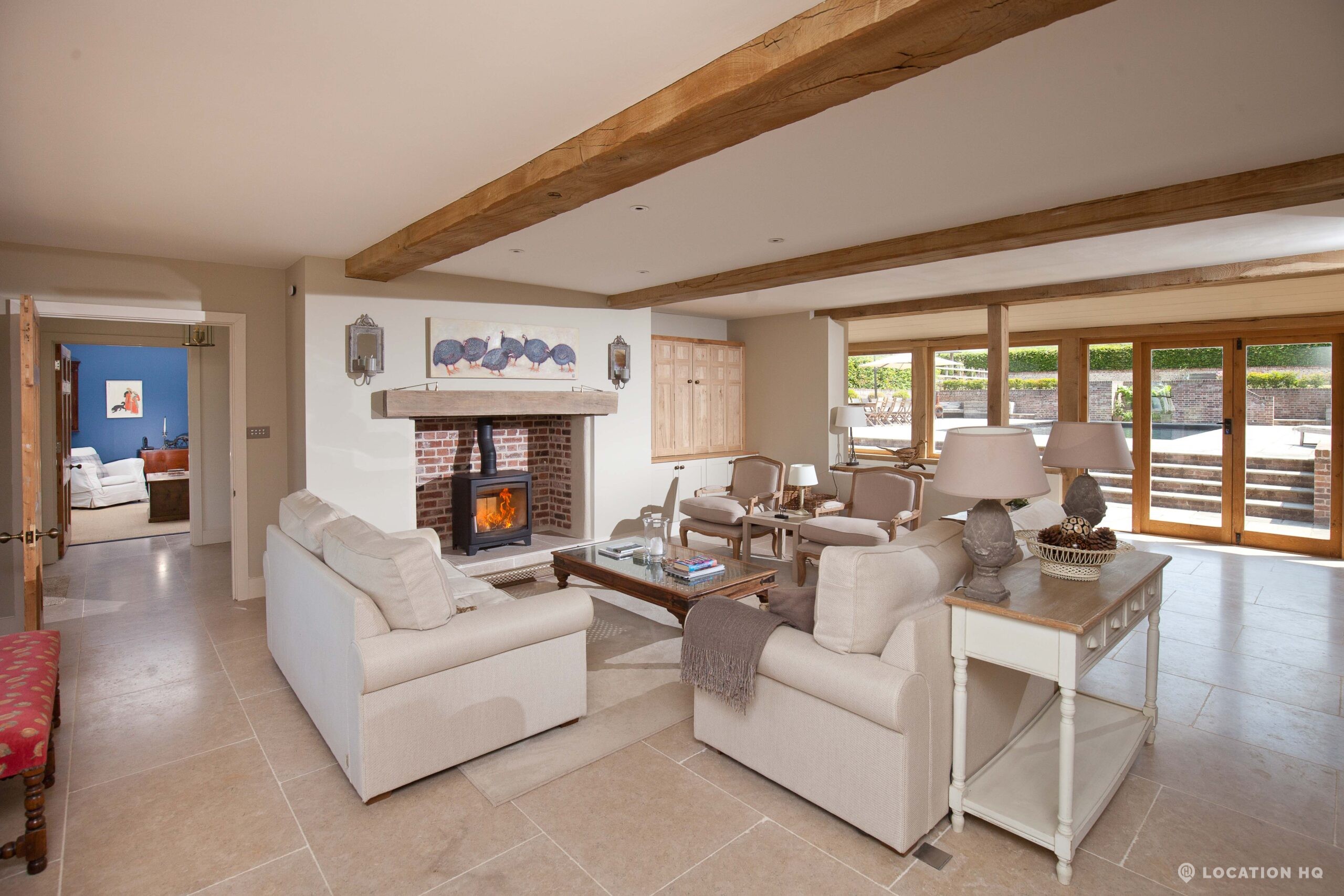 Detached family house set within 7 acres of beautifully landscaped grounds, offering a relaxed countryside feel across a generous collection of buildings. The courtyard swimming pool is particularly special. The main house includes spacious open-plan living areas, an entertainment barn, five bedrooms, and multiple practical rooms for easy movement and setups. Dairy Cottage adds further accommodation, while a stable block and large modern storage barn bring extra versatility. With gardens, paddocks, a wildlife pond, and an outdoor pool, it’s a great fit for scenes needing a calm rural family setting. Hardstanding unitbase on site for an easy day.