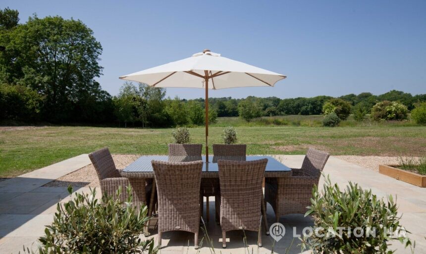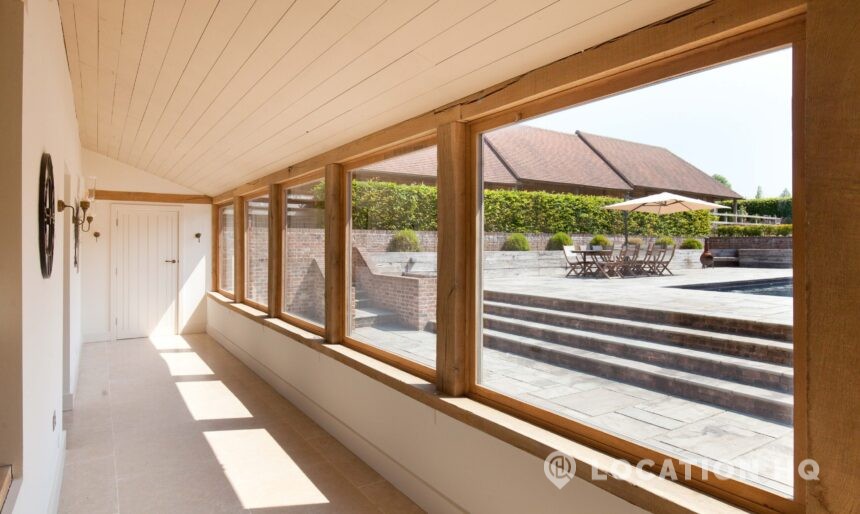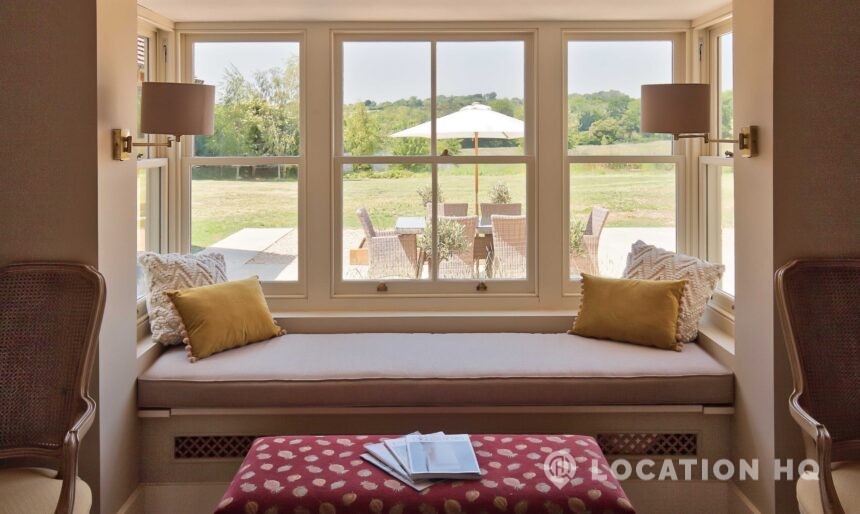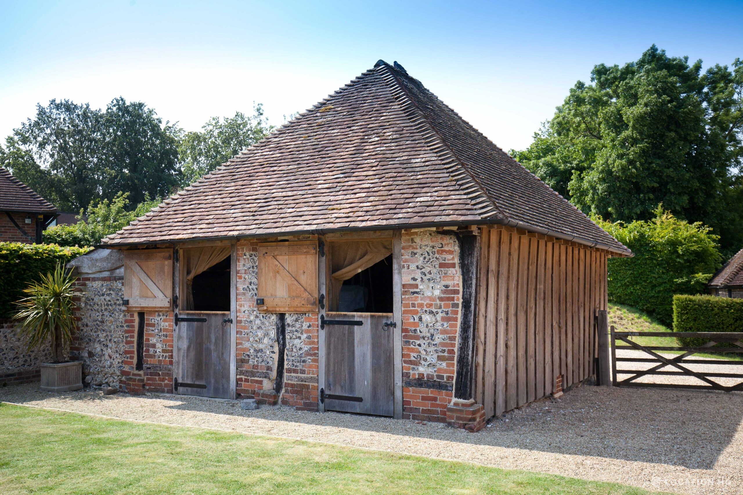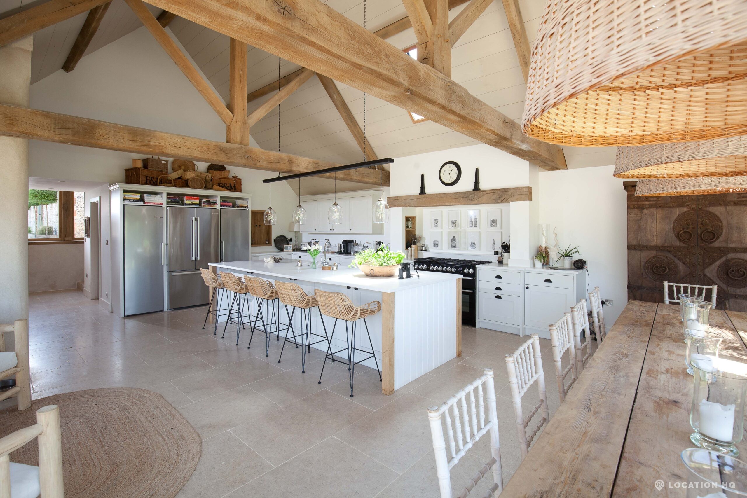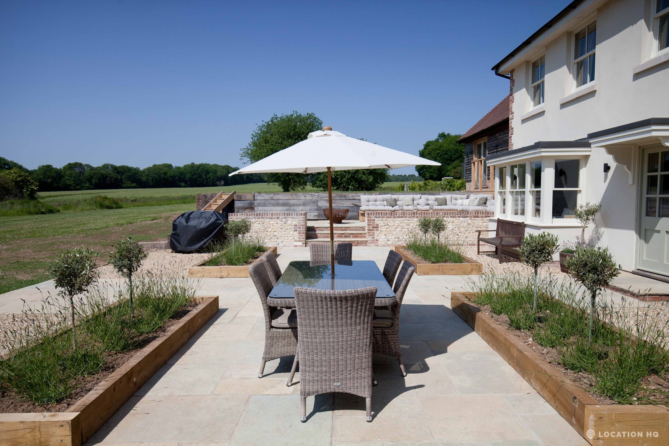 Detached family house set within 7 acres of beautifully landscaped grounds, offering a relaxed countryside feel across a generous collection of buildings. The courtyard swimming pool is particularly special. The main house includes spacious open-plan living areas, an entertainment barn, five bedrooms, and multiple practical rooms for easy movement and setups. Dairy Cottage adds further accommodation, while a stable block and large modern storage barn bring extra versatility. With gardens, paddocks, a wildlife pond, and an outdoor pool, it’s a great fit for scenes needing a calm rural family setting. Hardstanding unitbase on site for an easy day.