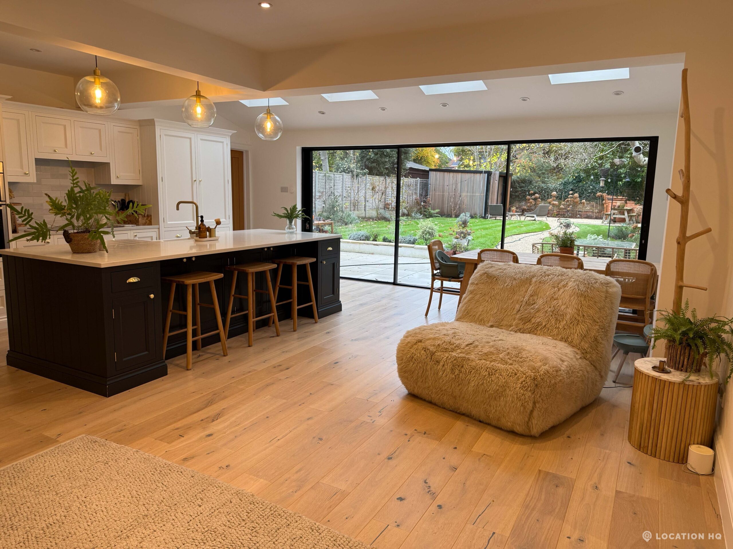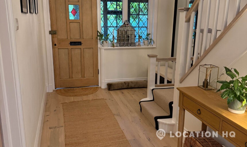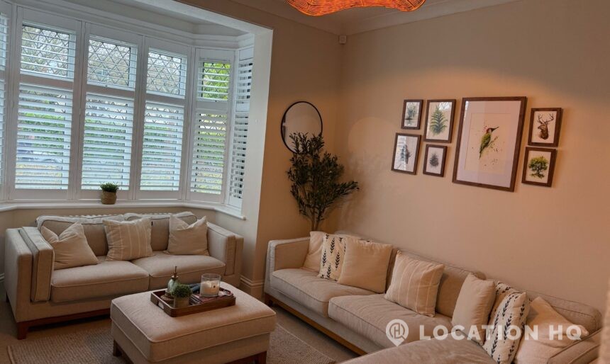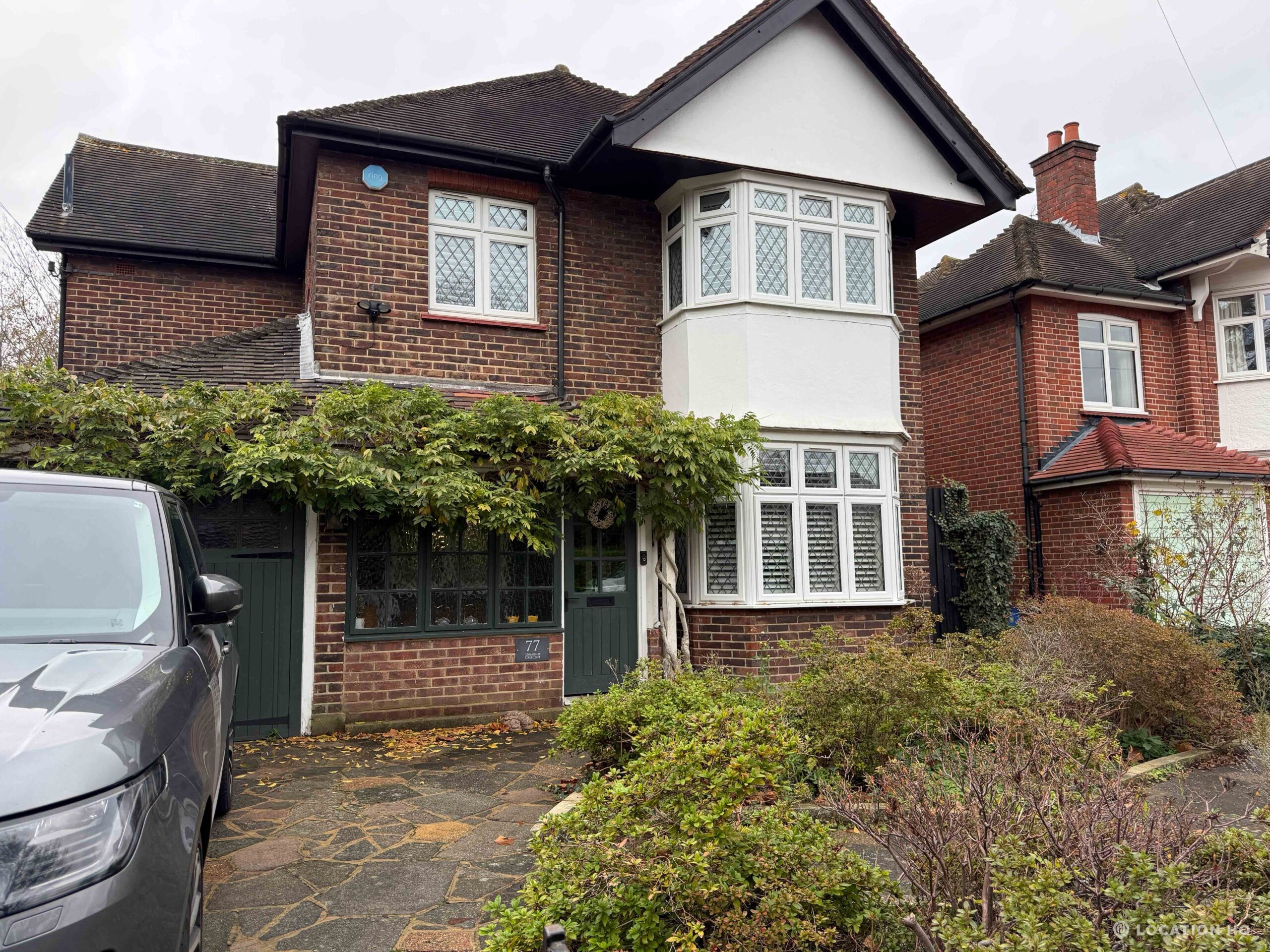 Detached house in London, this 1930’s property features five-bedroom, generous hallway, open-plan living, neutral country-modern interiors, dormer-style bay windows, a large garden, plus private driveway and on-street parking. Perfect for a scene with a car on a driveway.