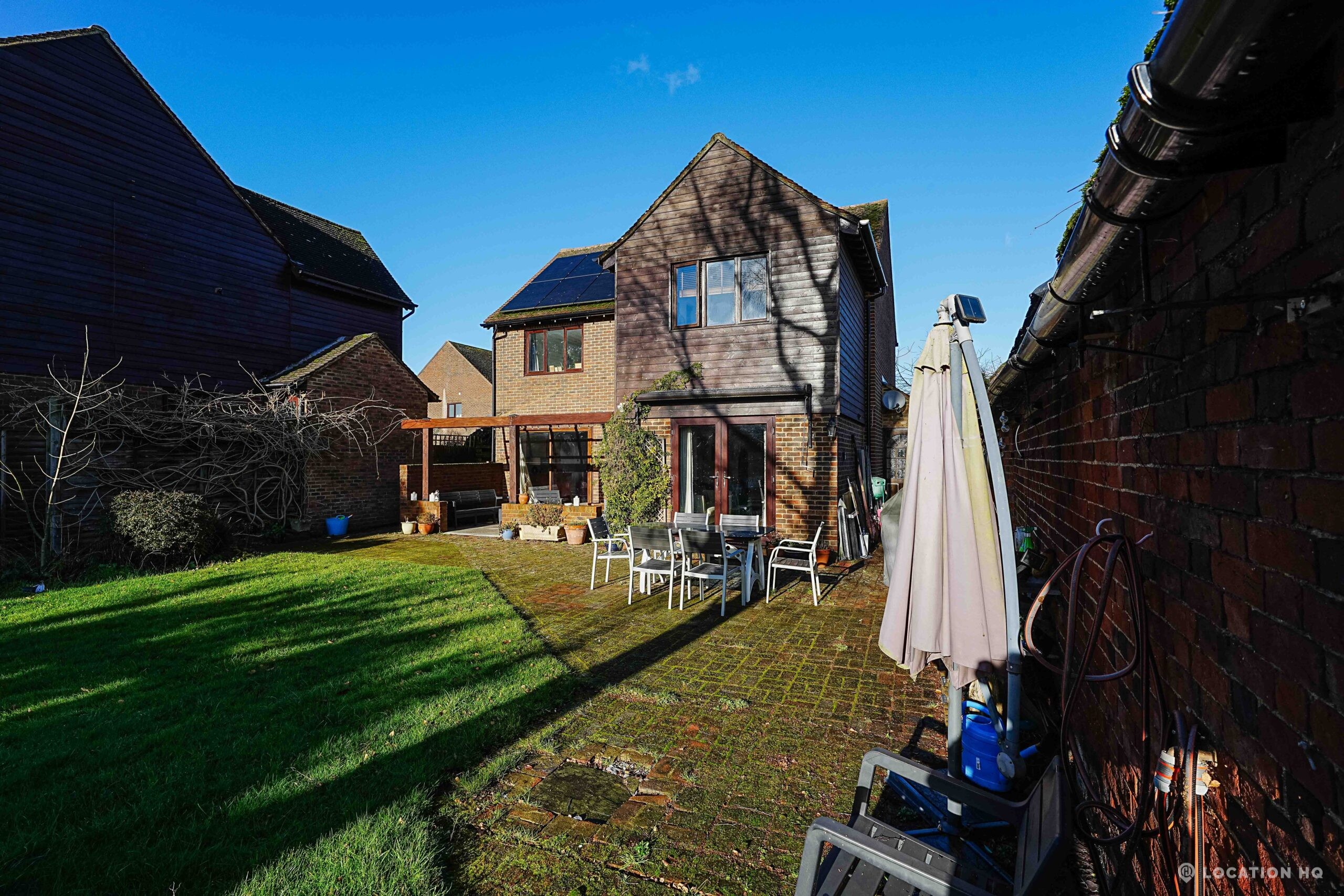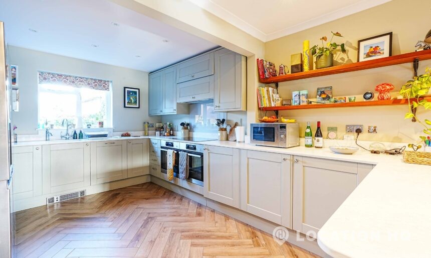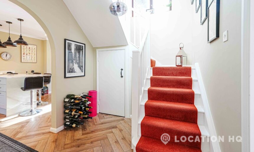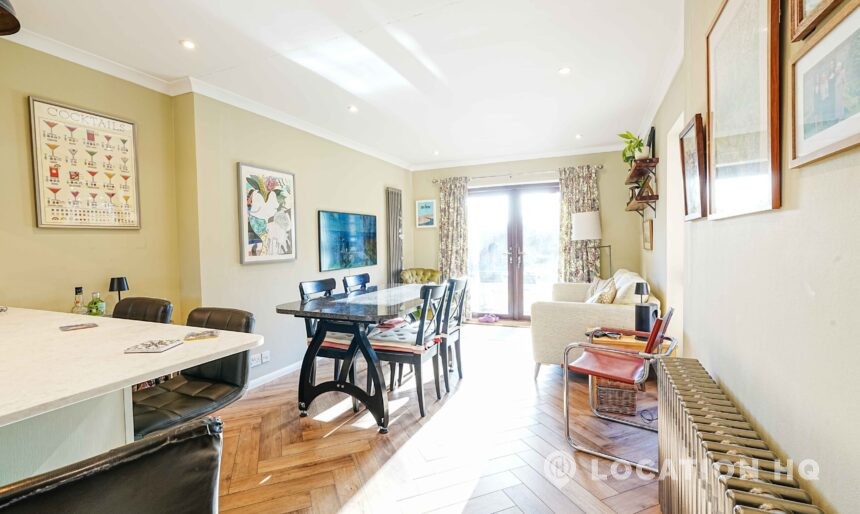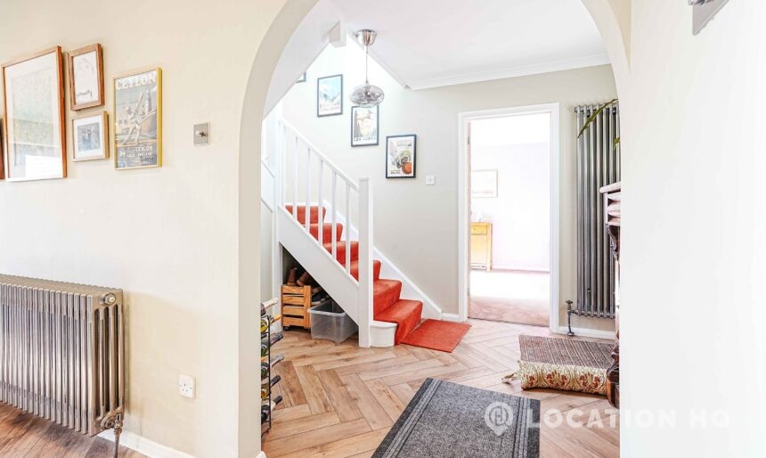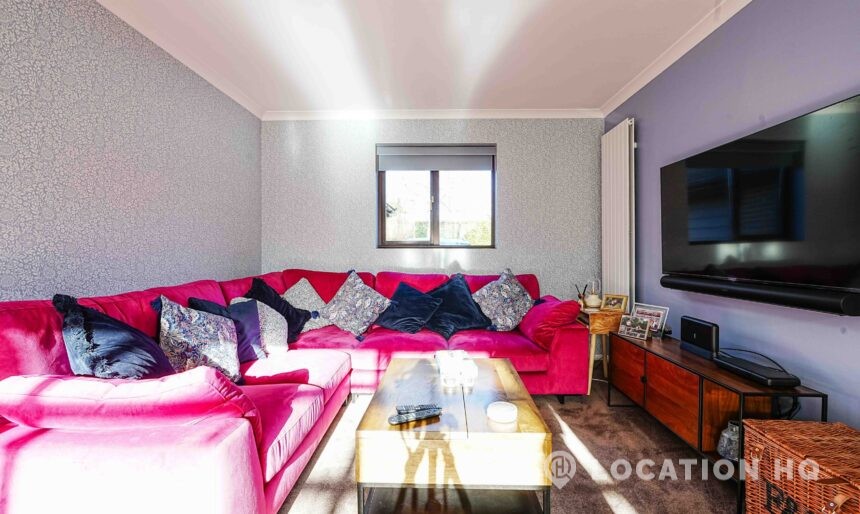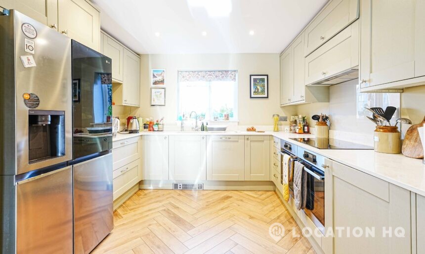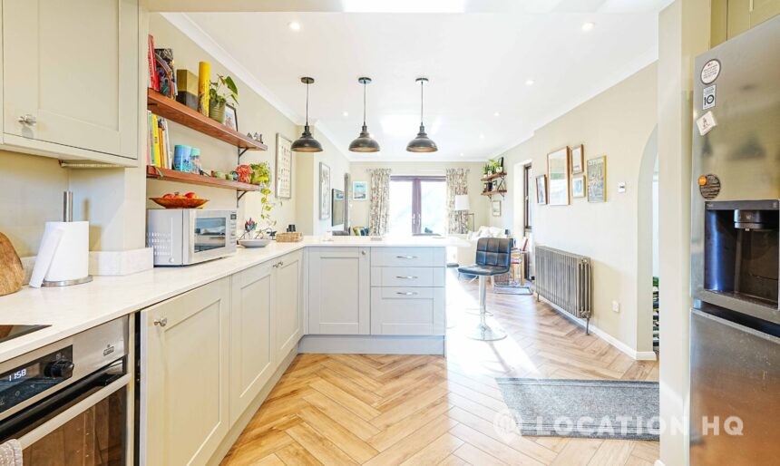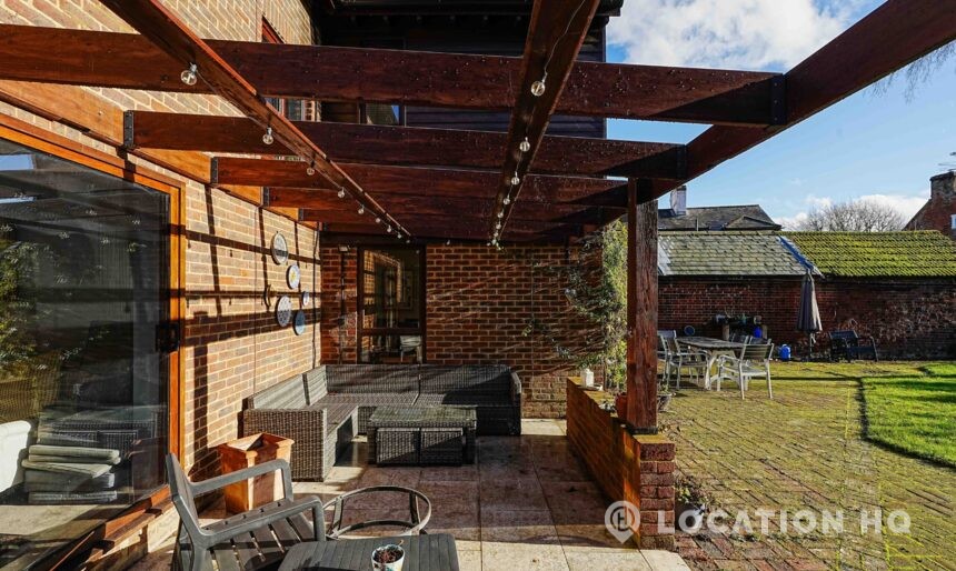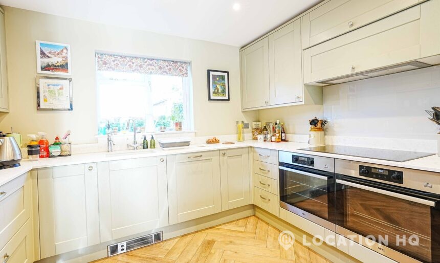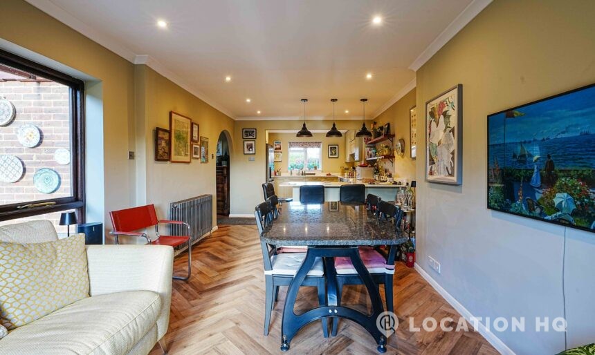 This detached suburban house family brick house offers a stylish and versatile setting ideal for film and television productions. Beautiful black clapperboard. The property features a large, light-filled living room and a spacious open-plan kitchen-diner. To the front, a double garage and private driveway offer practical crew access, making this house a highly functional filming location.