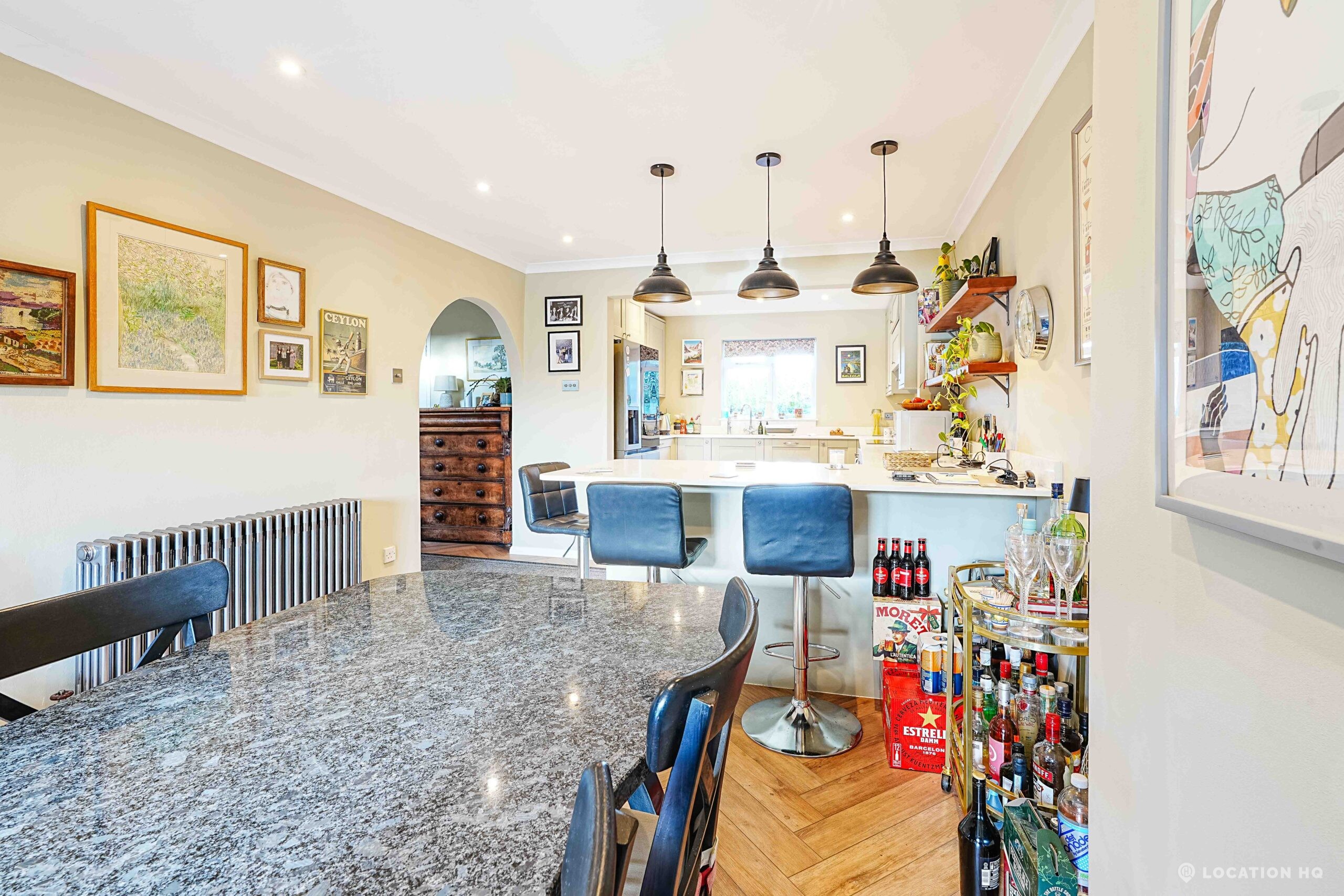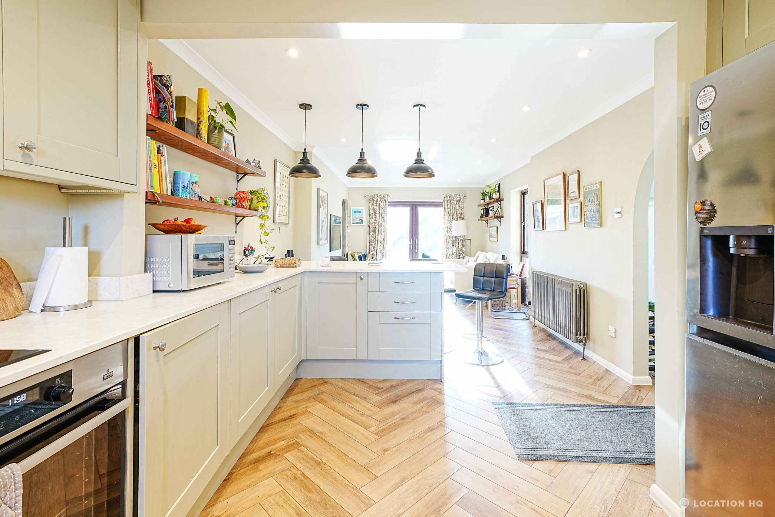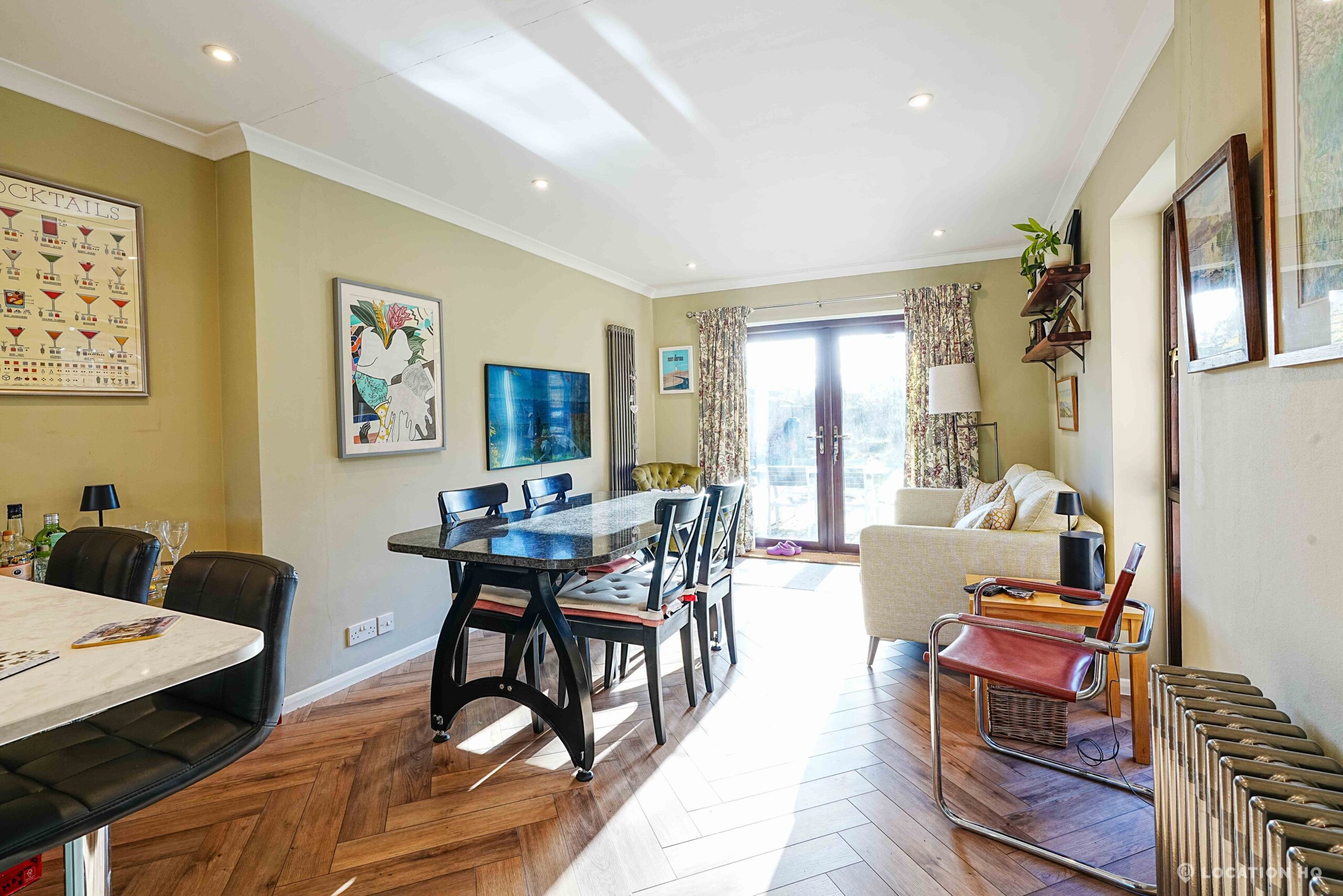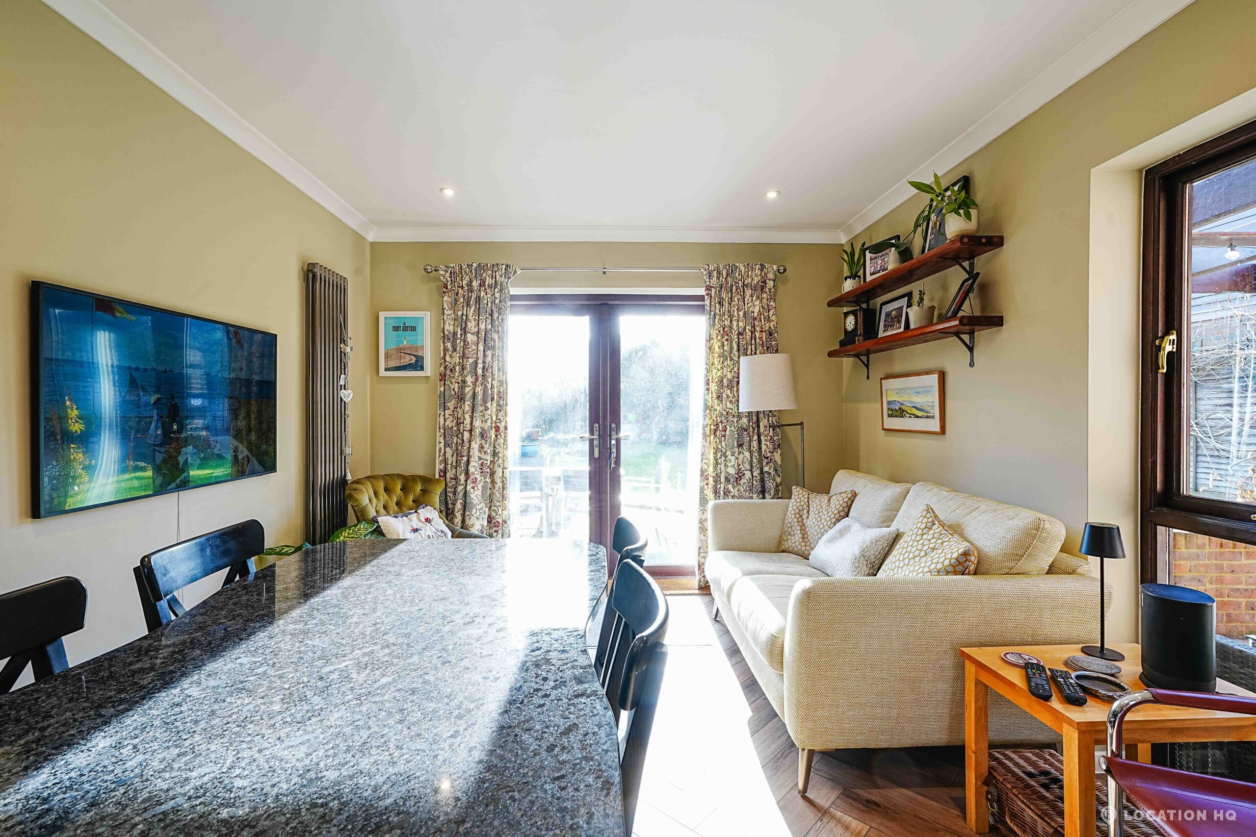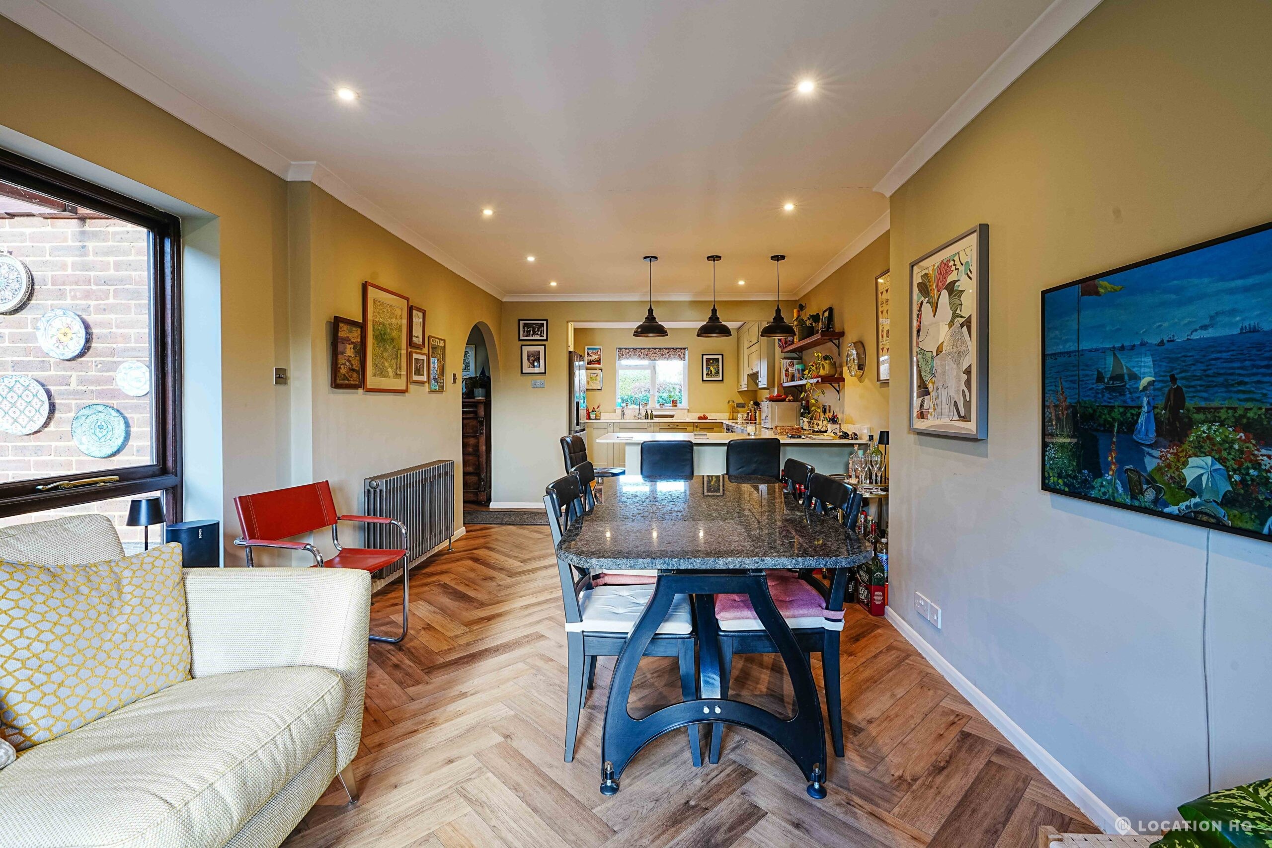 This detached suburban house family brick house offers a stylish and versatile setting ideal for film and television productions. Beautiful black clapperboard. The property features a large, light-filled living room and a spacious open-plan kitchen-diner. To the front, a double garage and private driveway offer practical crew access, making this house a highly functional filming location.