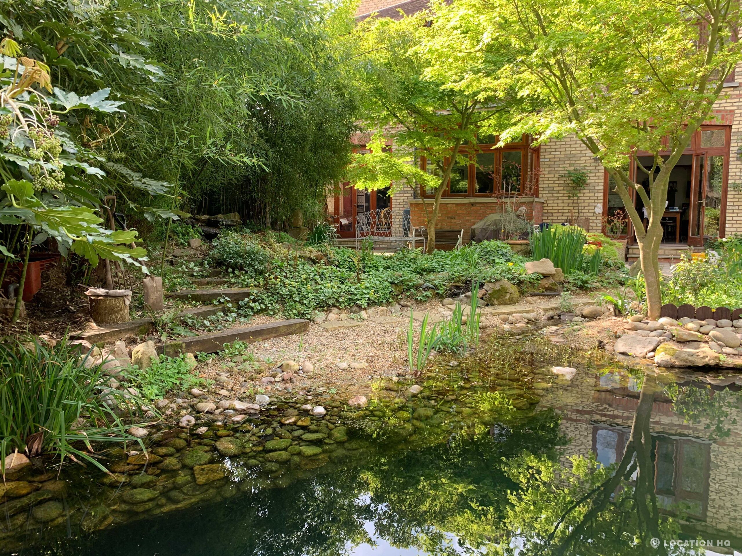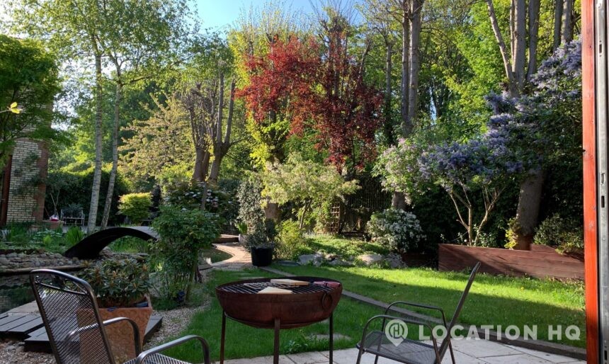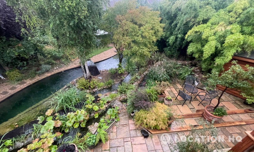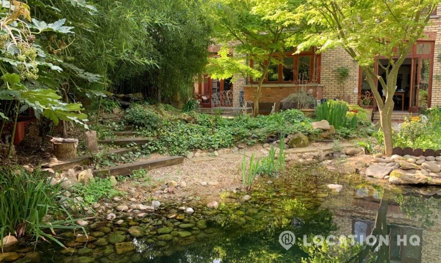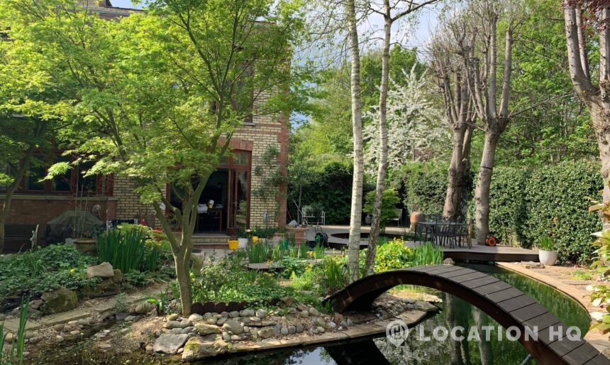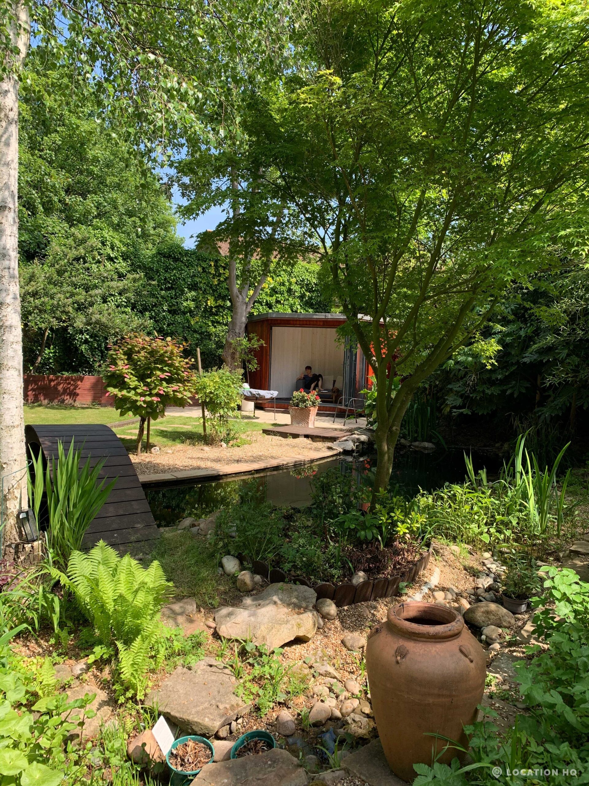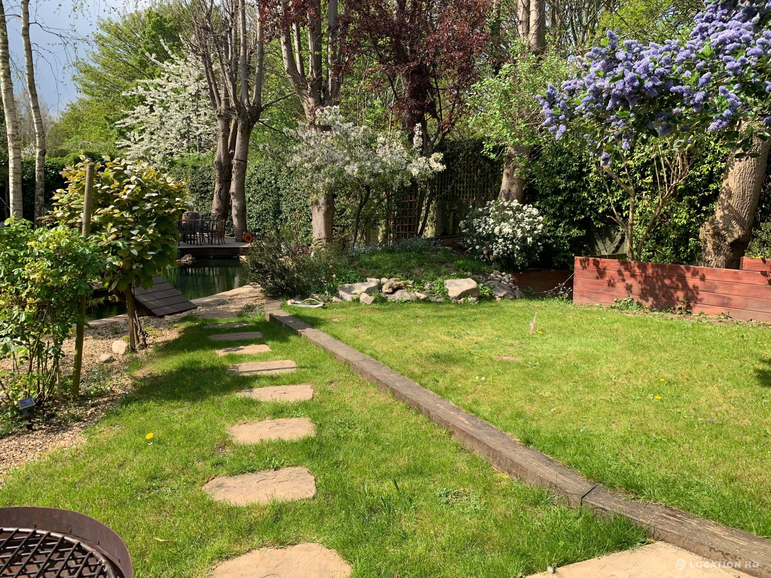 North London family house with large garden and natural swimming pool. Splendid open plan kitchen and dining room. Natural swimming pool. High ceilings and spacious rooms.