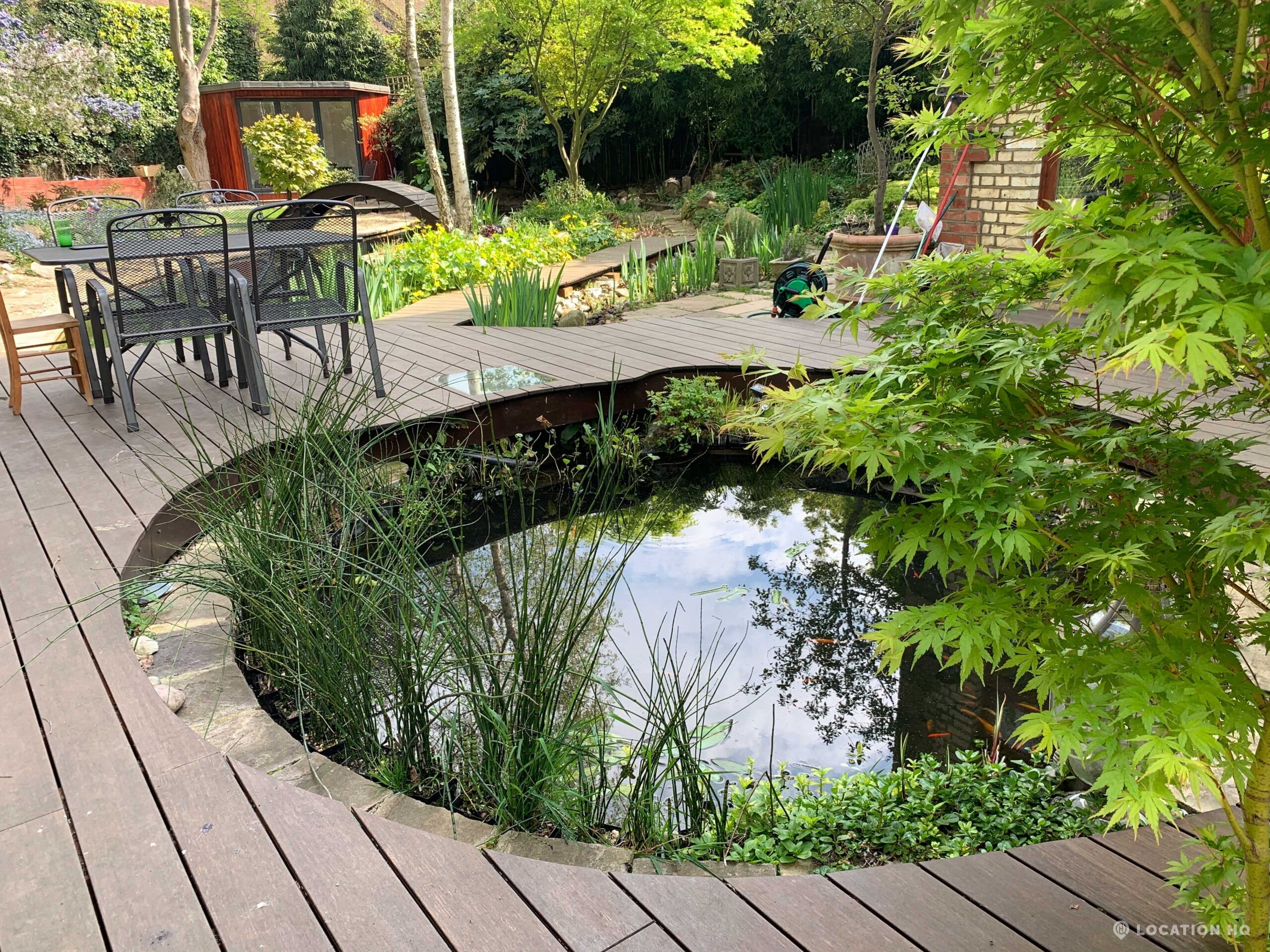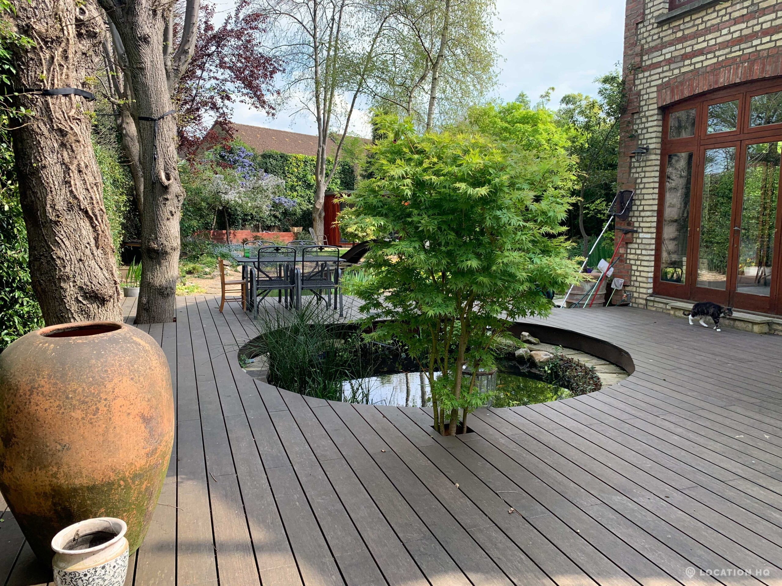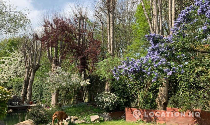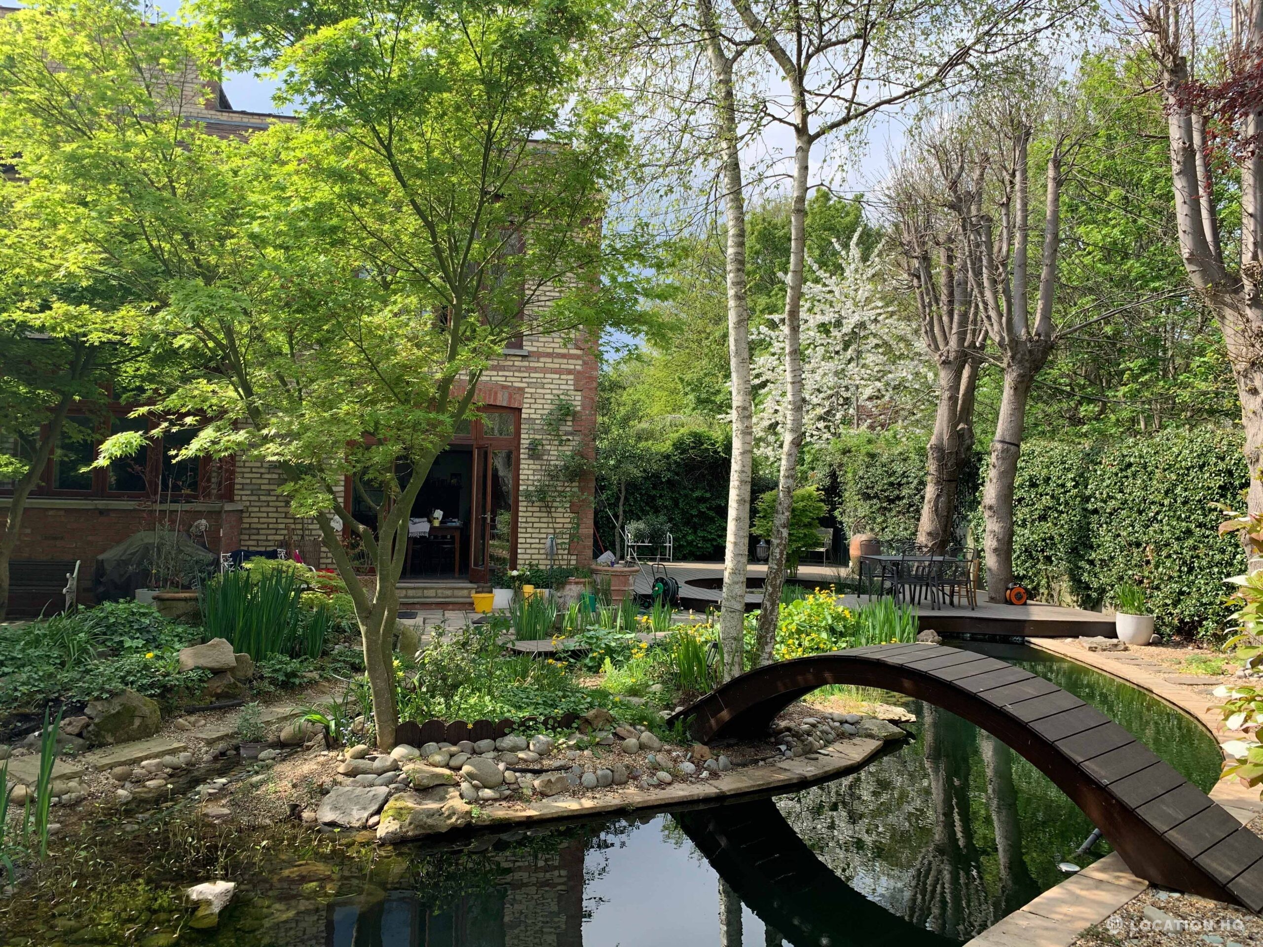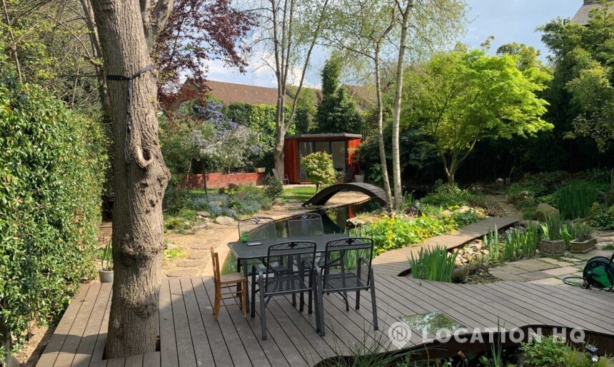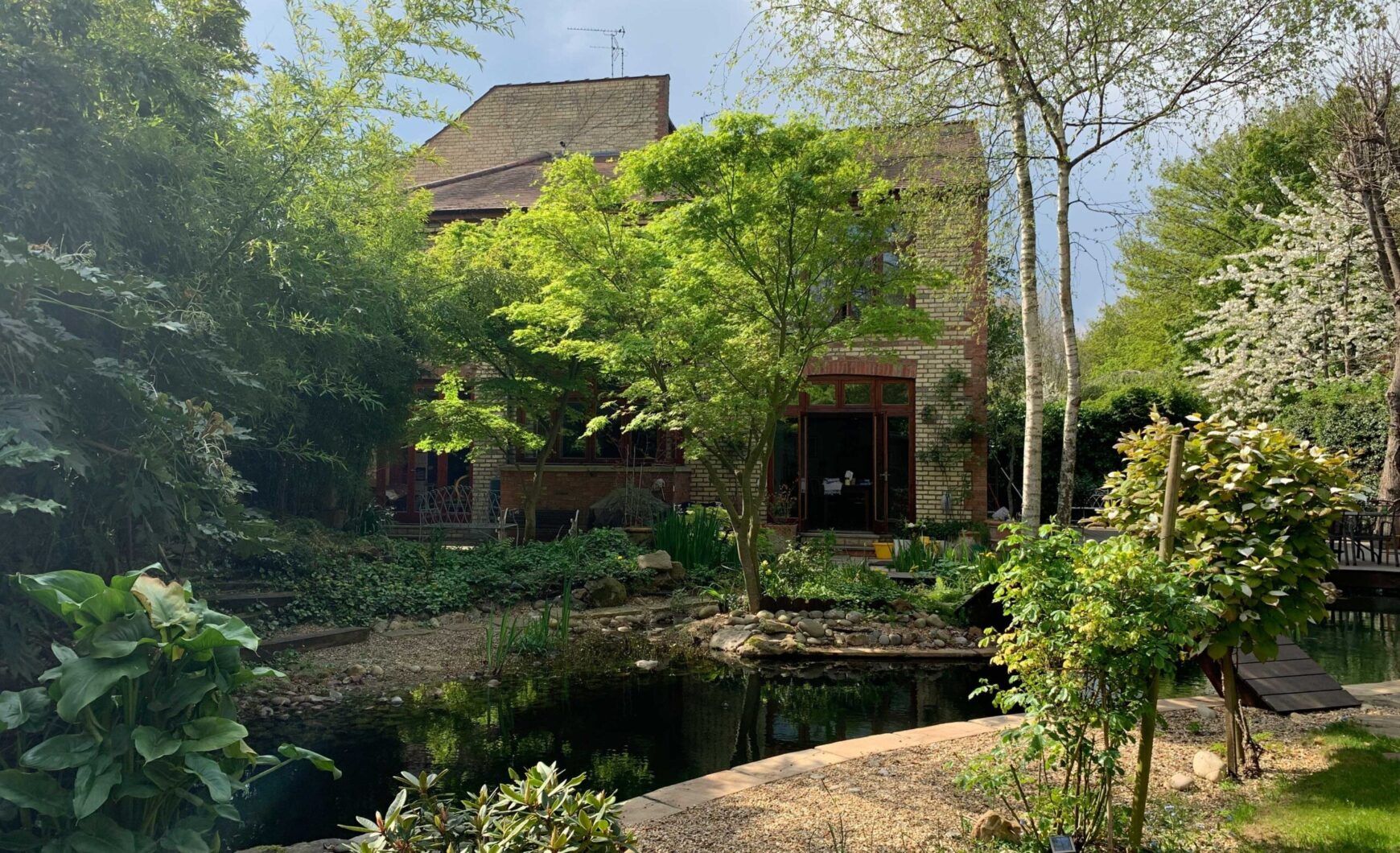 North London family house with large garden and natural swimming pool. Splendid open plan kitchen and dining room. Natural swimming pool. High ceilings and spacious rooms.