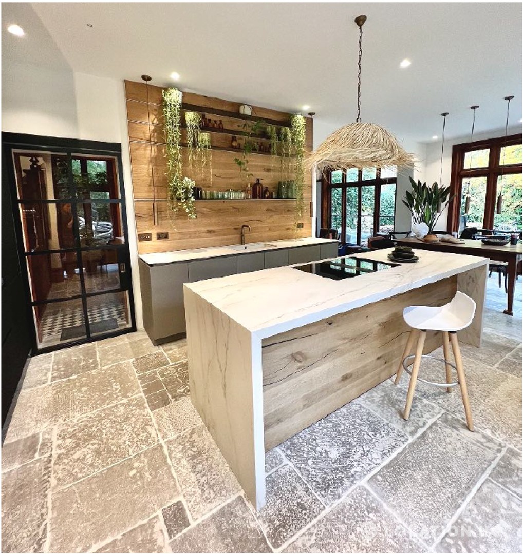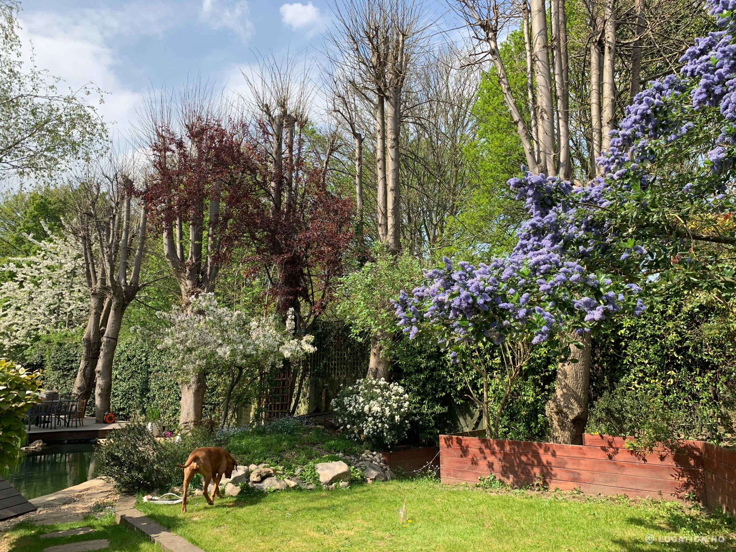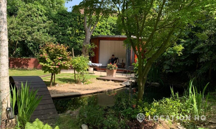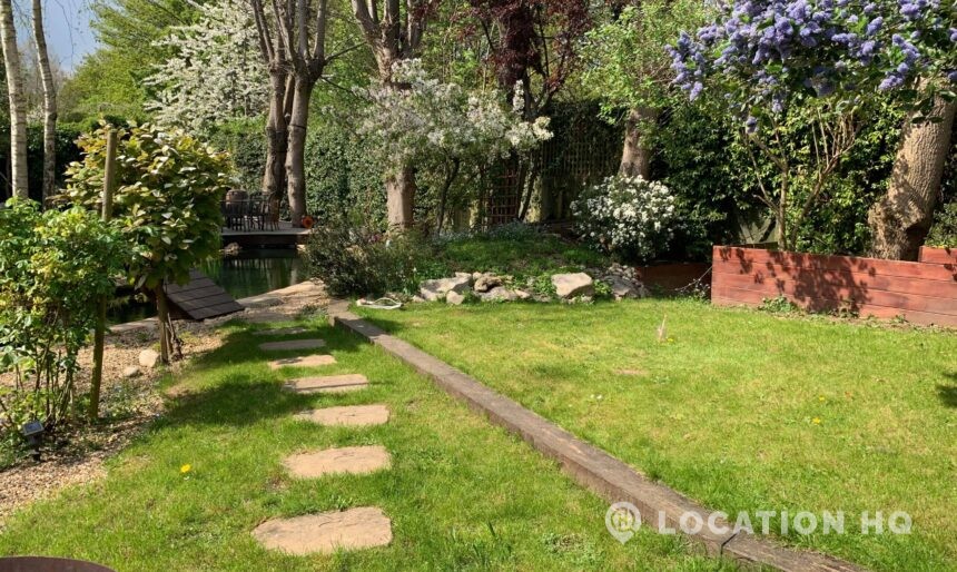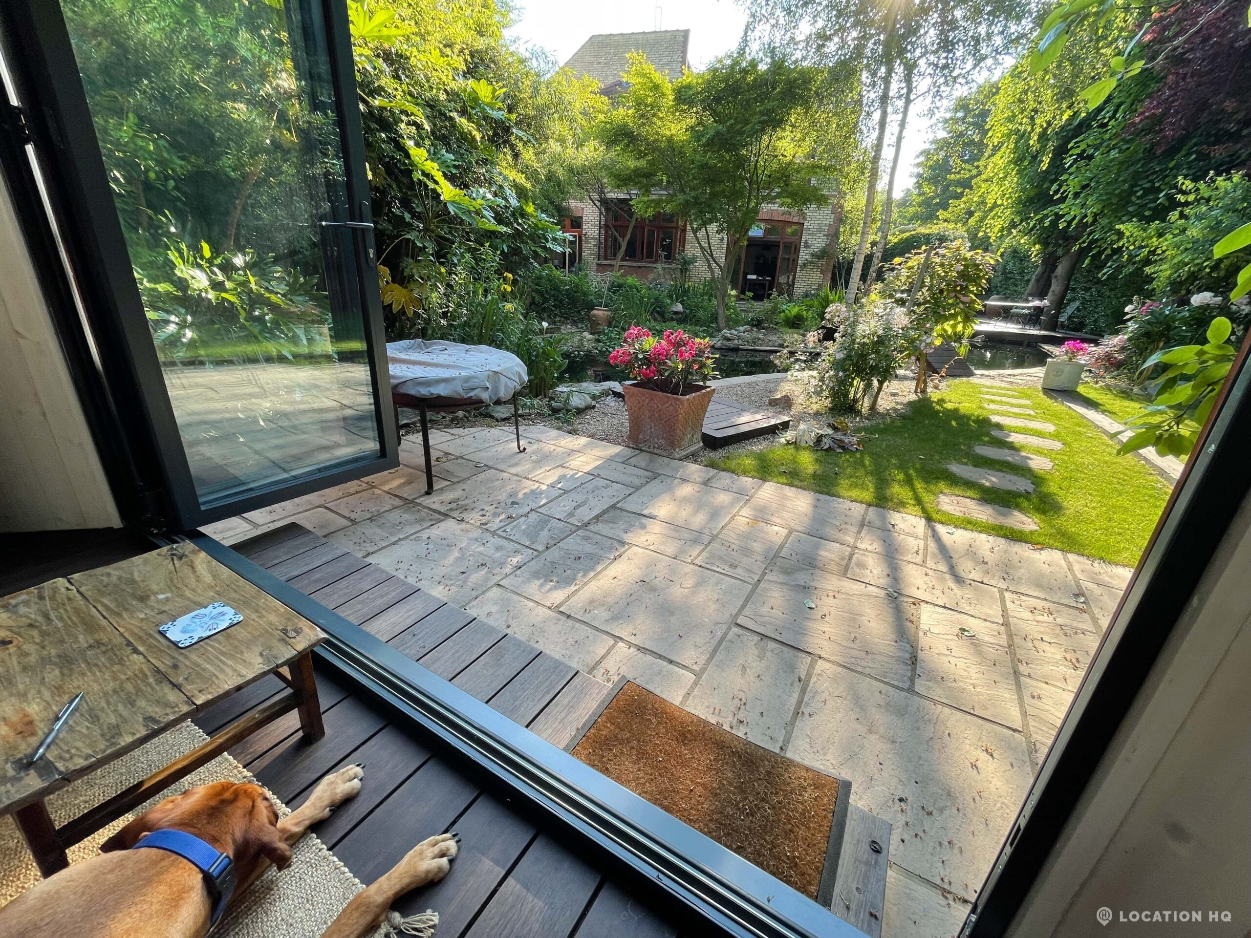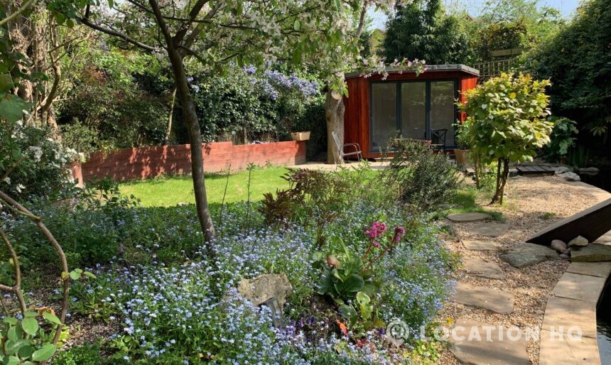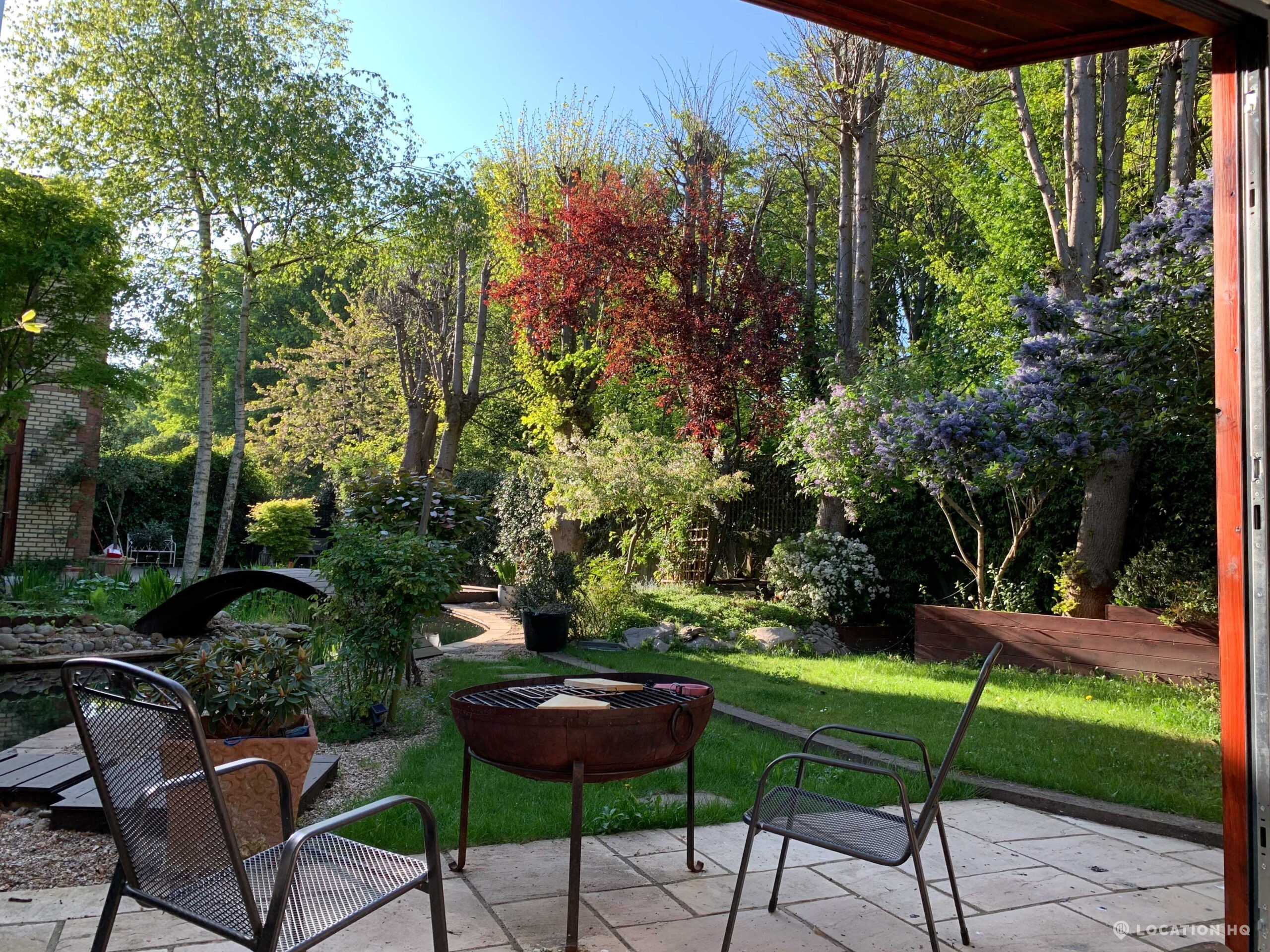 North London family house with large garden and natural swimming pool. Splendid open plan kitchen and dining room. Natural swimming pool. High ceilings and spacious rooms.