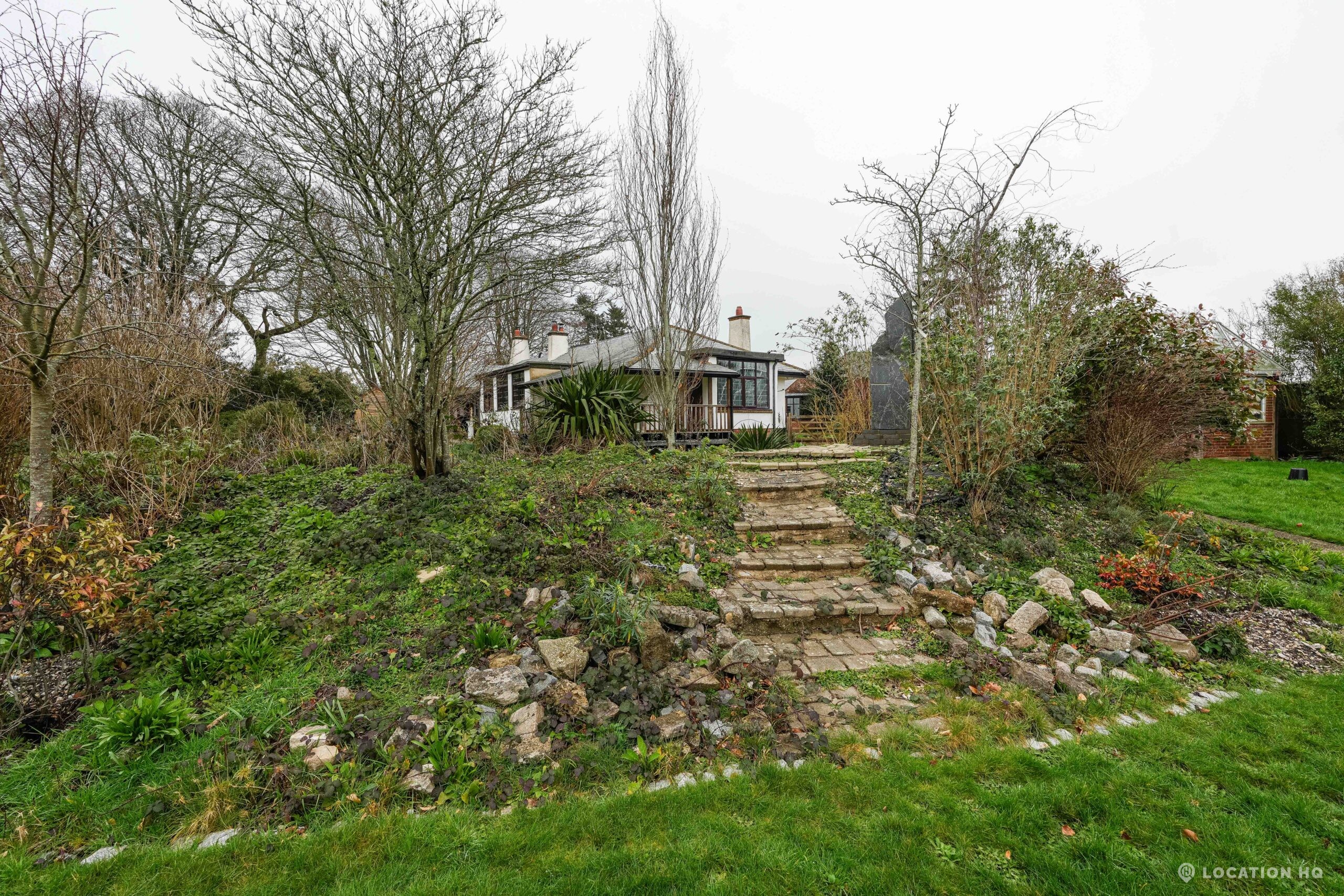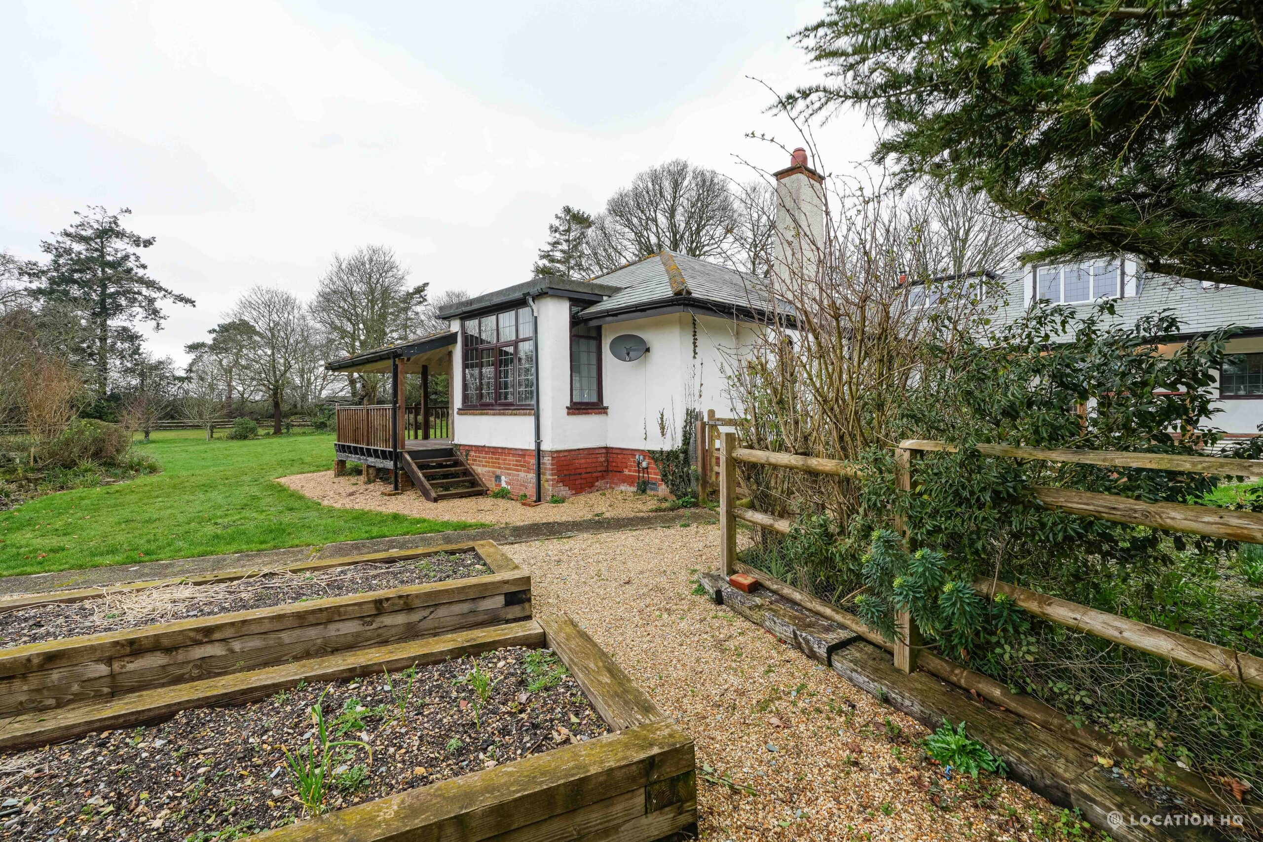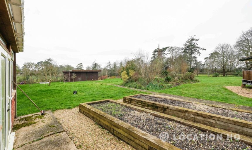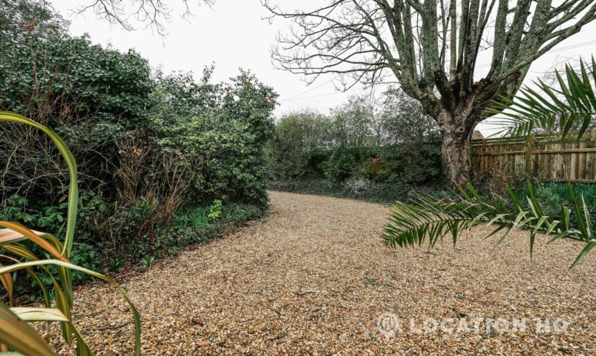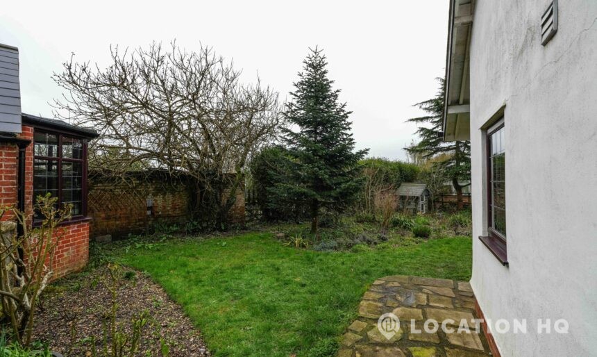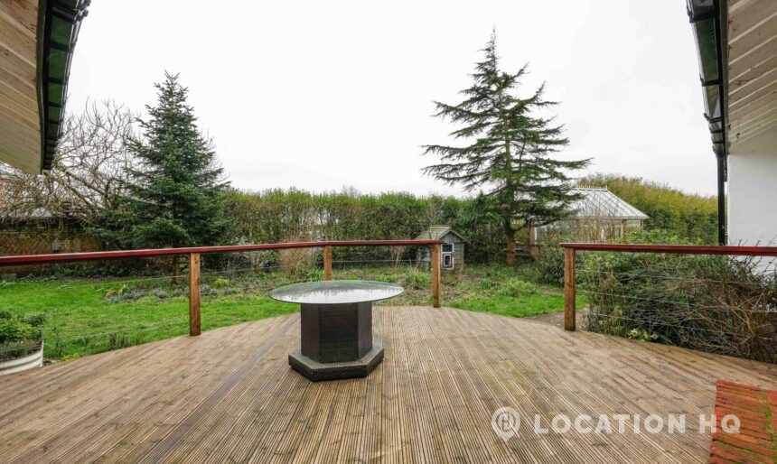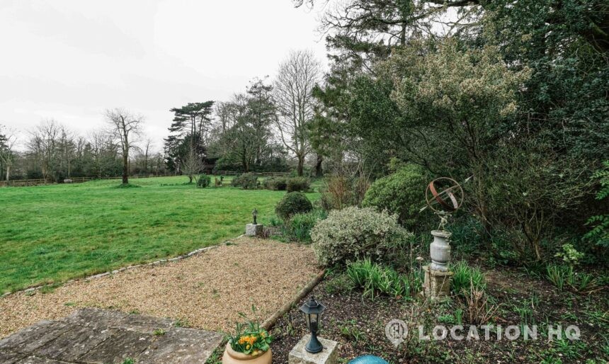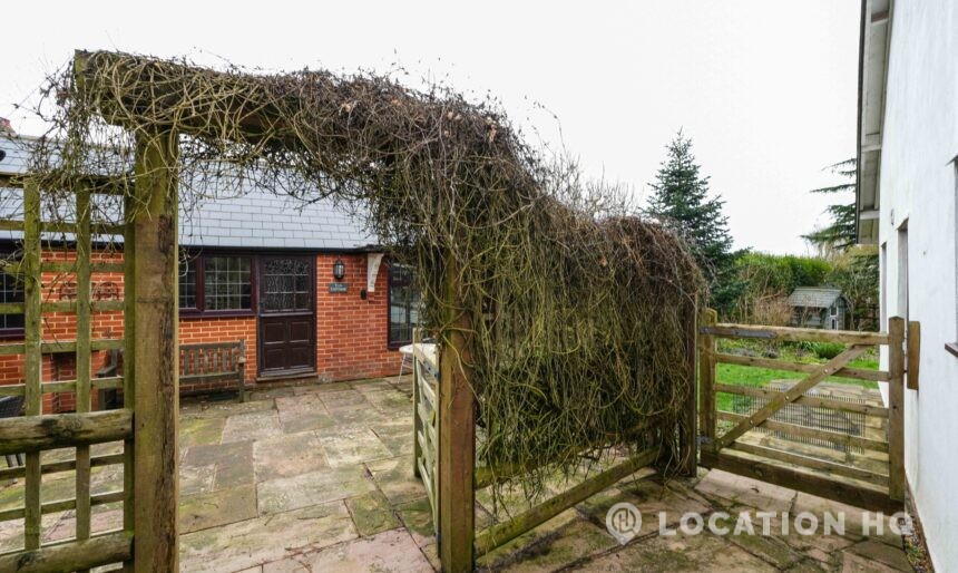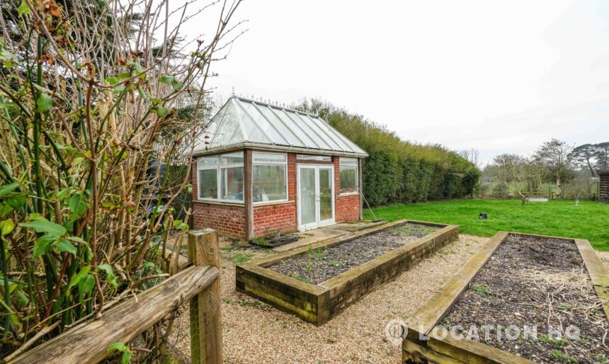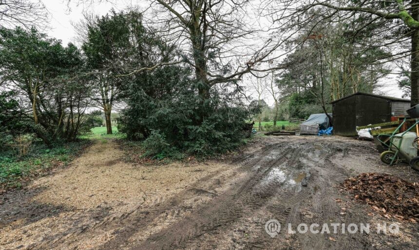 The detached bungalow offers a clear Arts and Crafts look, a separate cottage, outbuildings and 2 acres of space. Straightforward access and parking make it suitable for countryside-style filming needs.