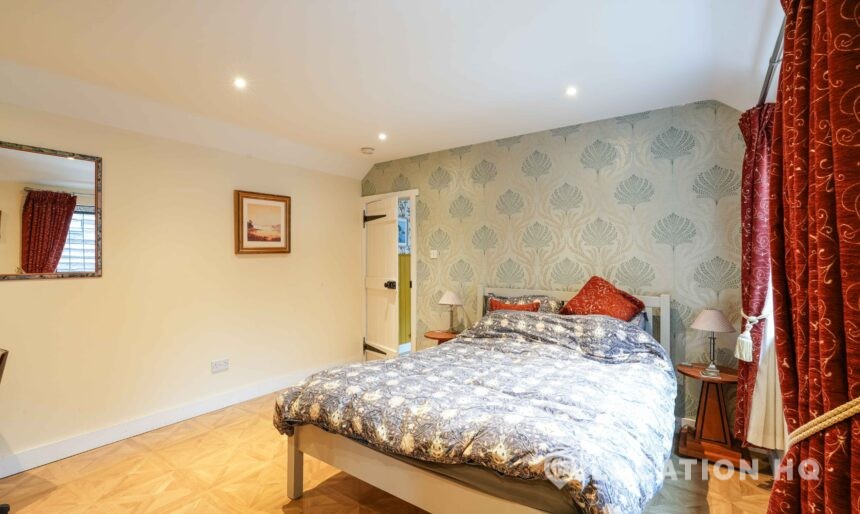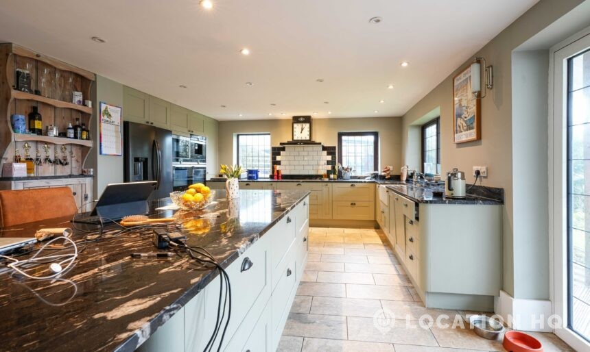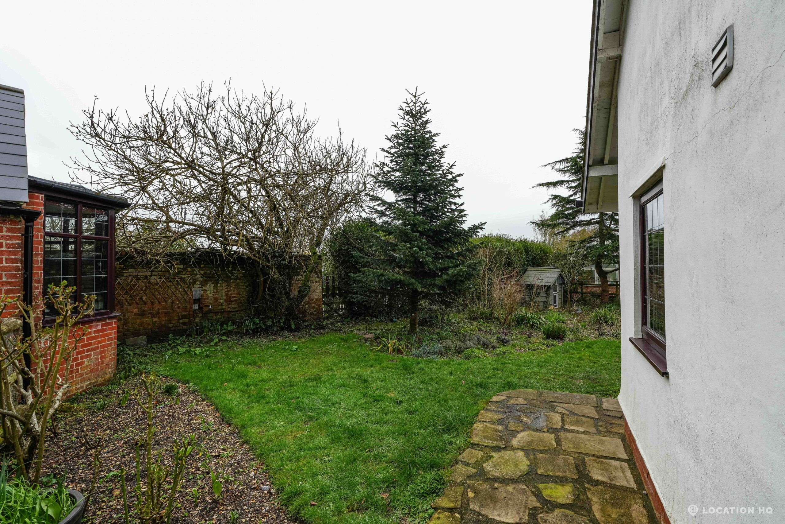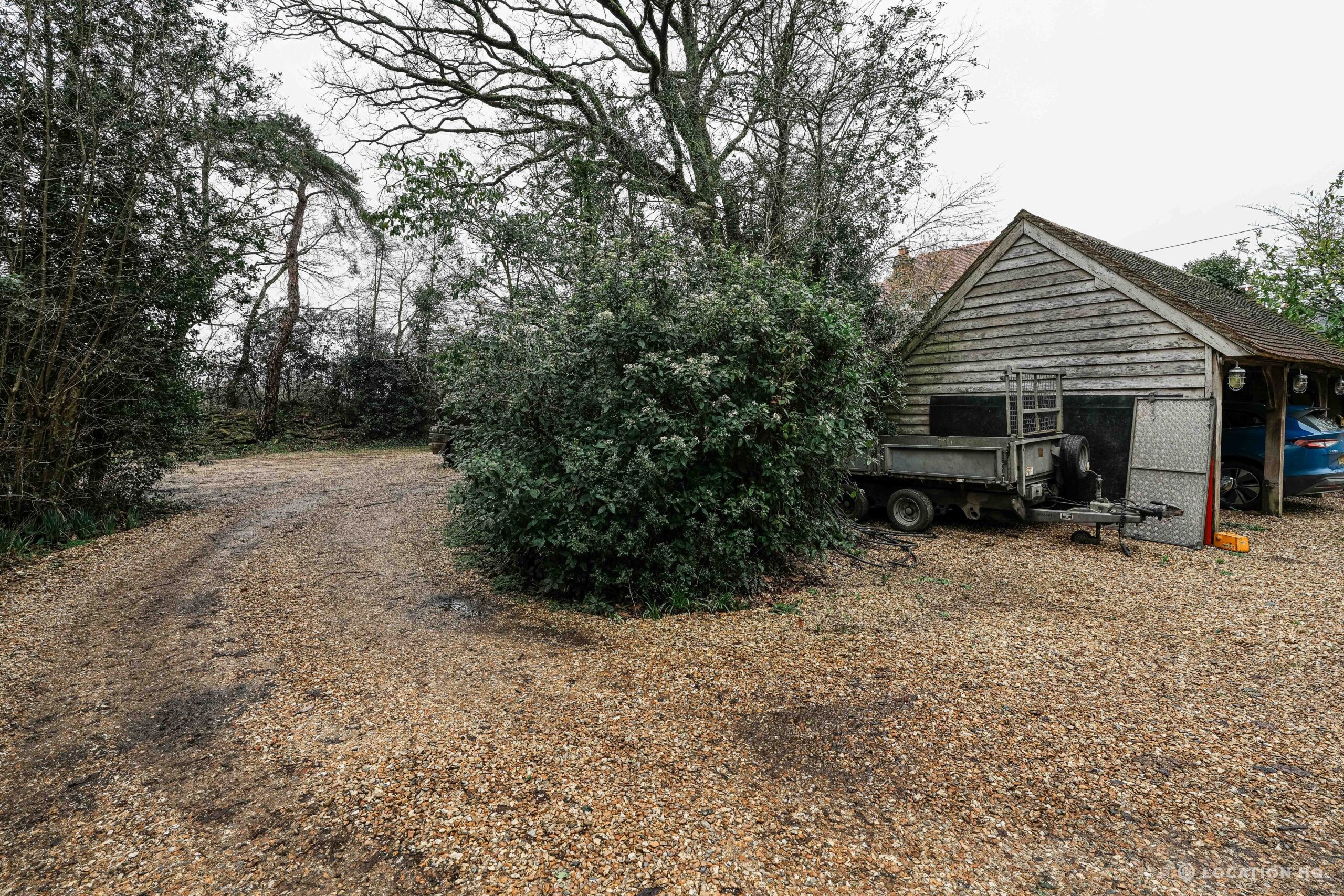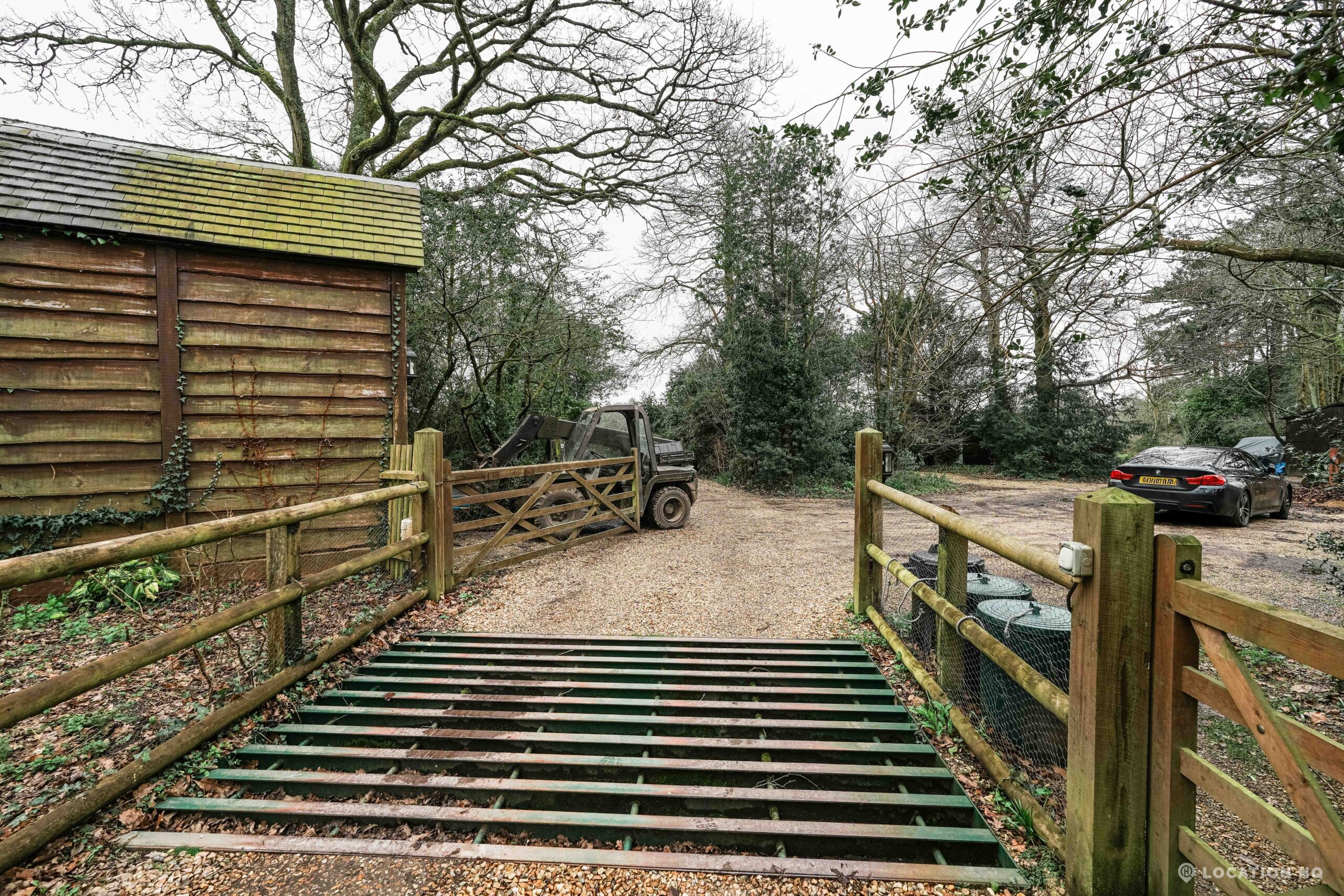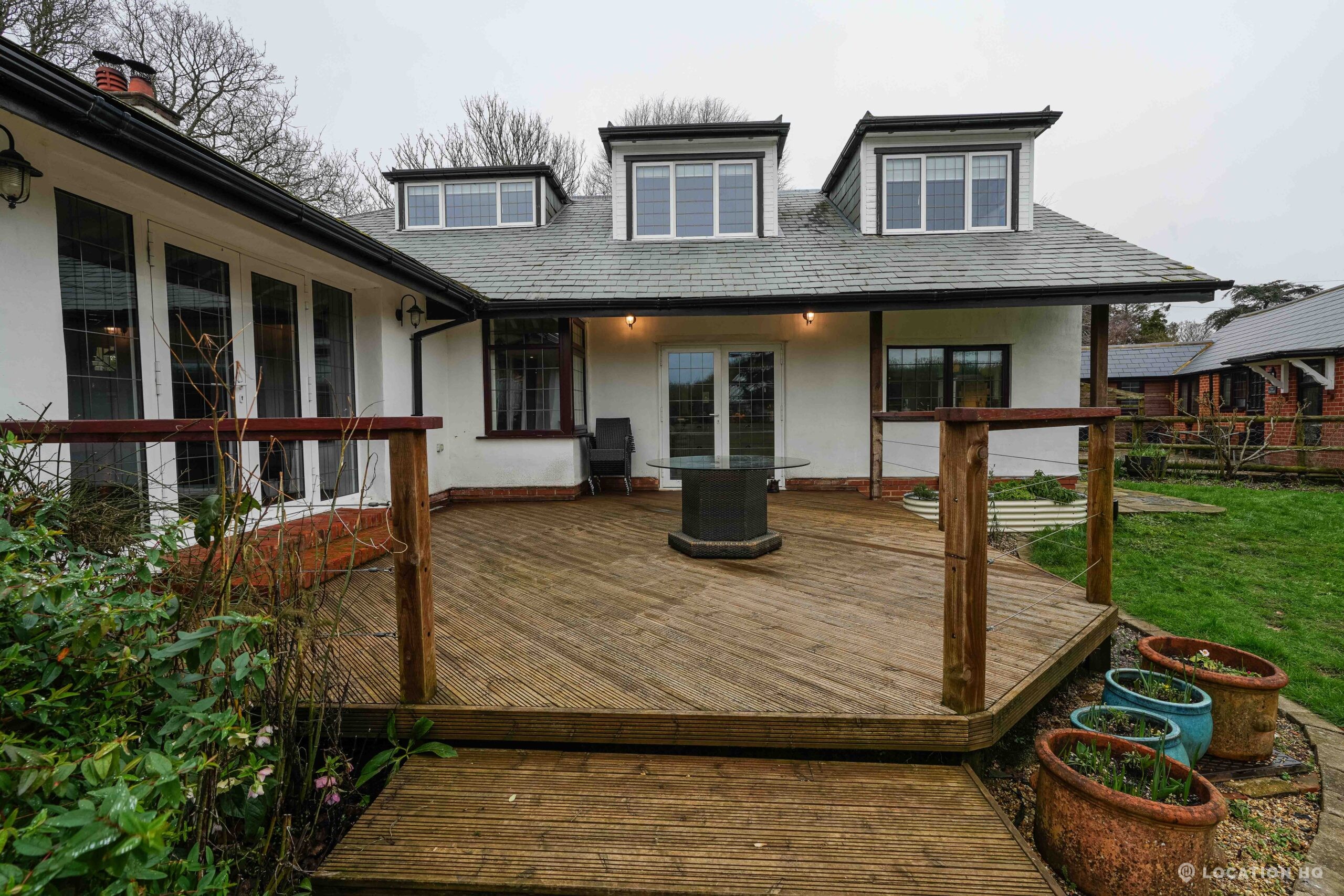 The detached bungalow offers a clear Arts and Crafts look, a separate cottage, outbuildings and 2 acres of space. Straightforward access and parking make it suitable for countryside-style filming needs.