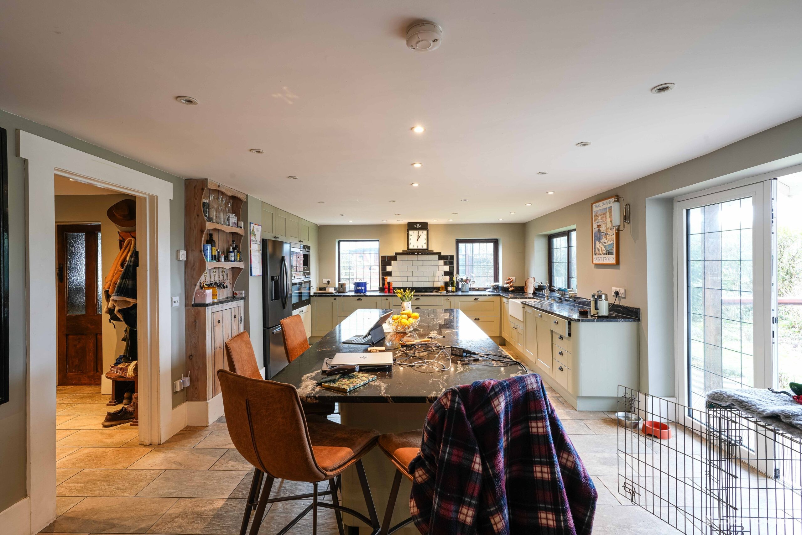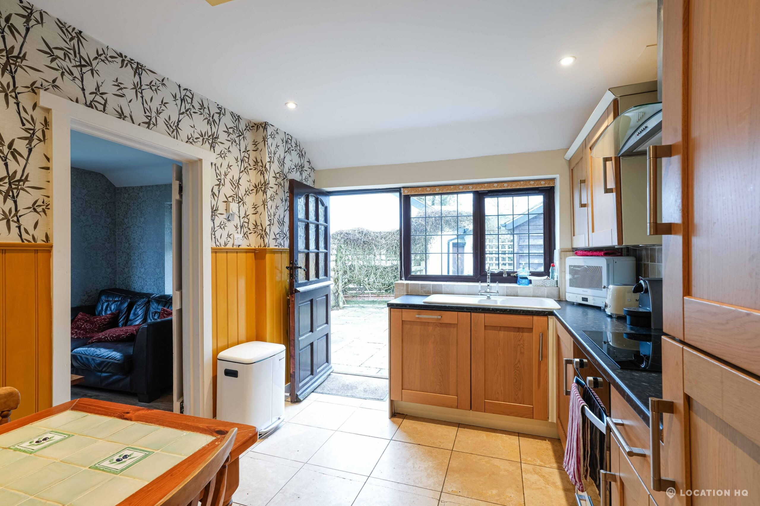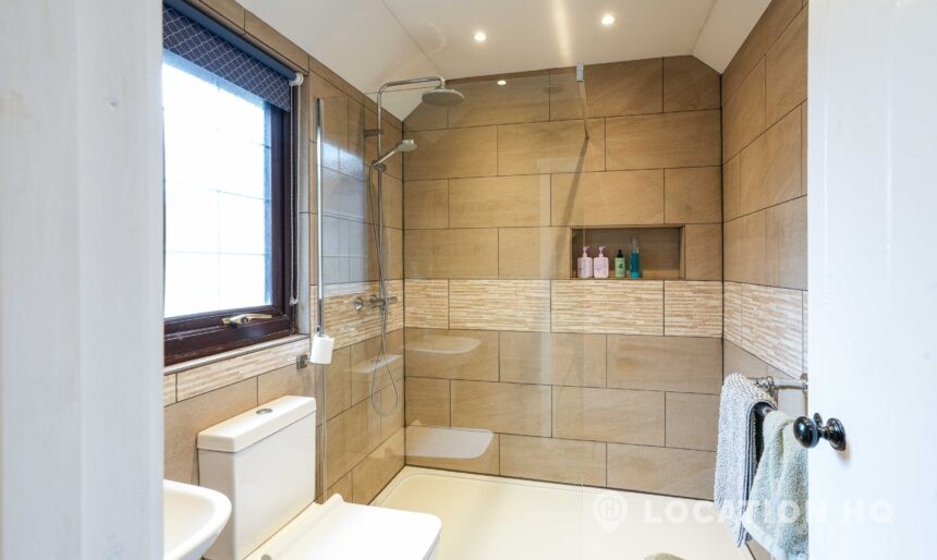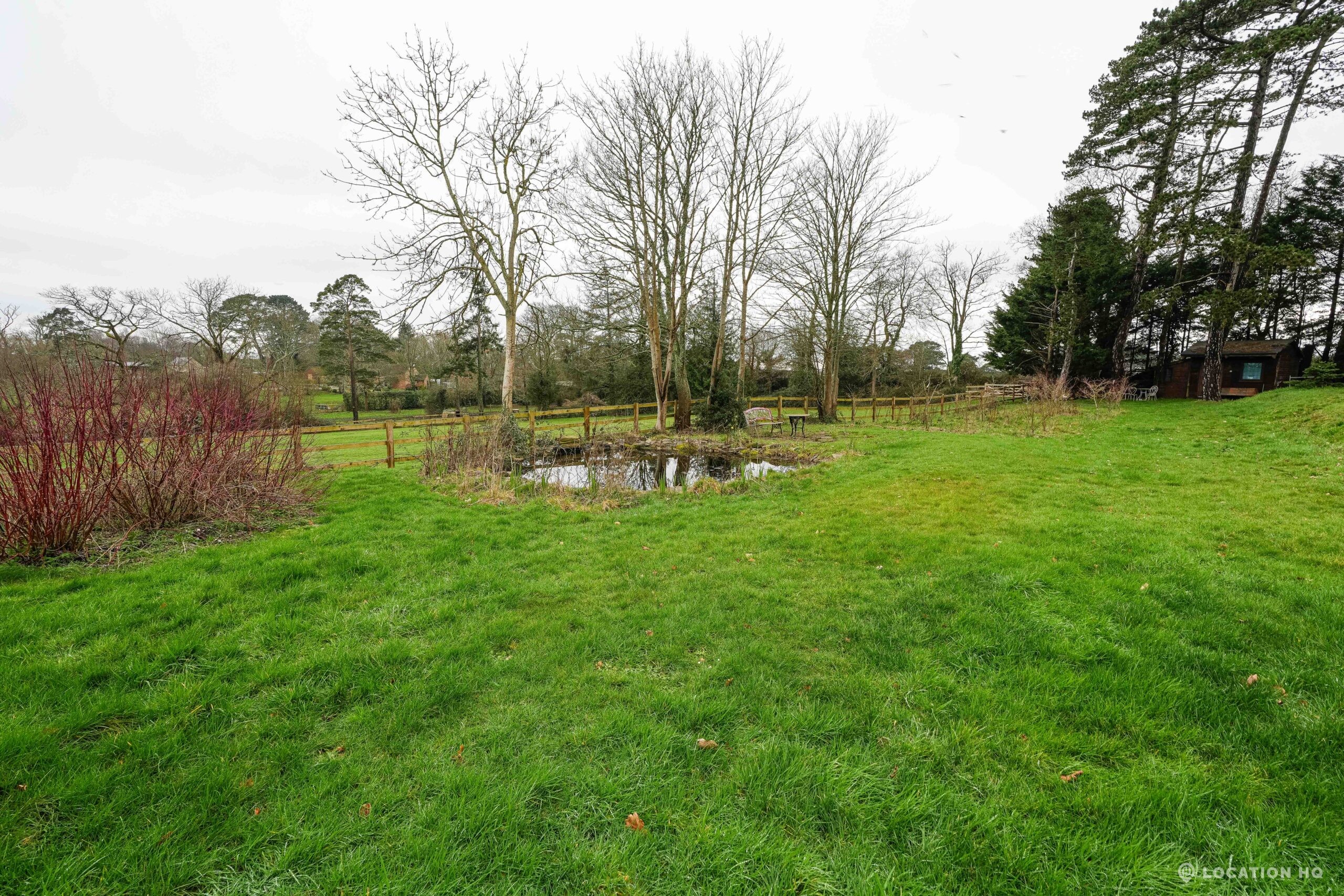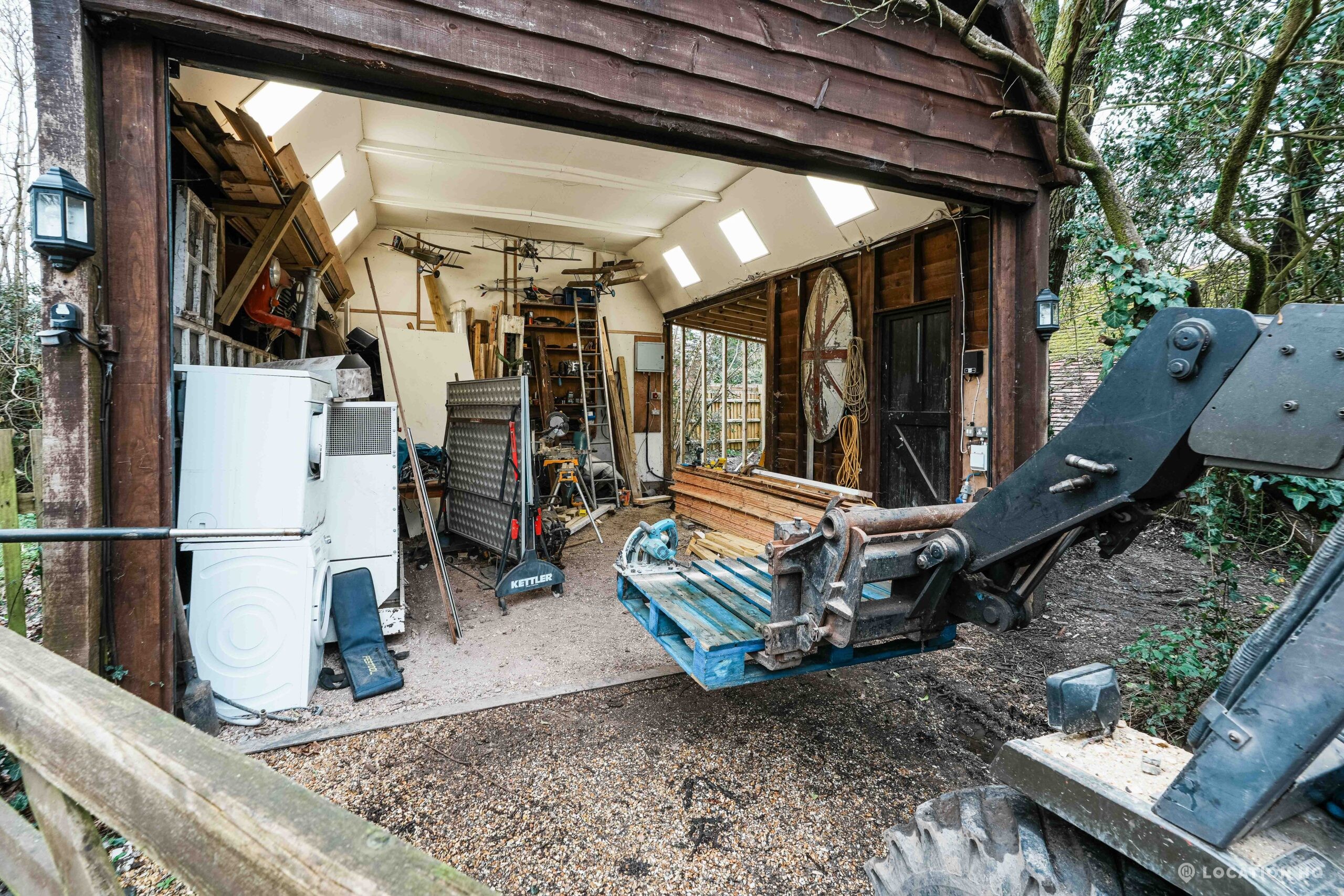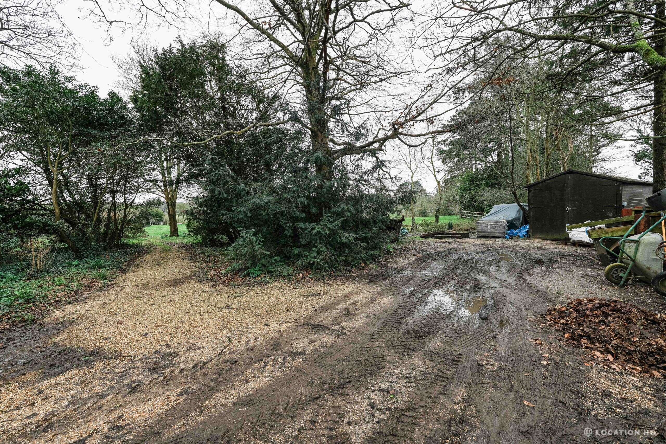 The detached bungalow offers a clear Arts and Crafts look, a separate cottage, outbuildings and 2 acres of space. Straightforward access and parking make it suitable for countryside-style filming needs.