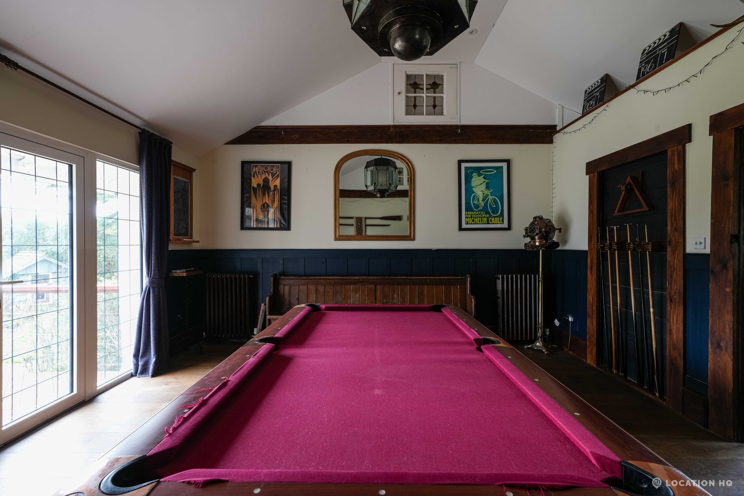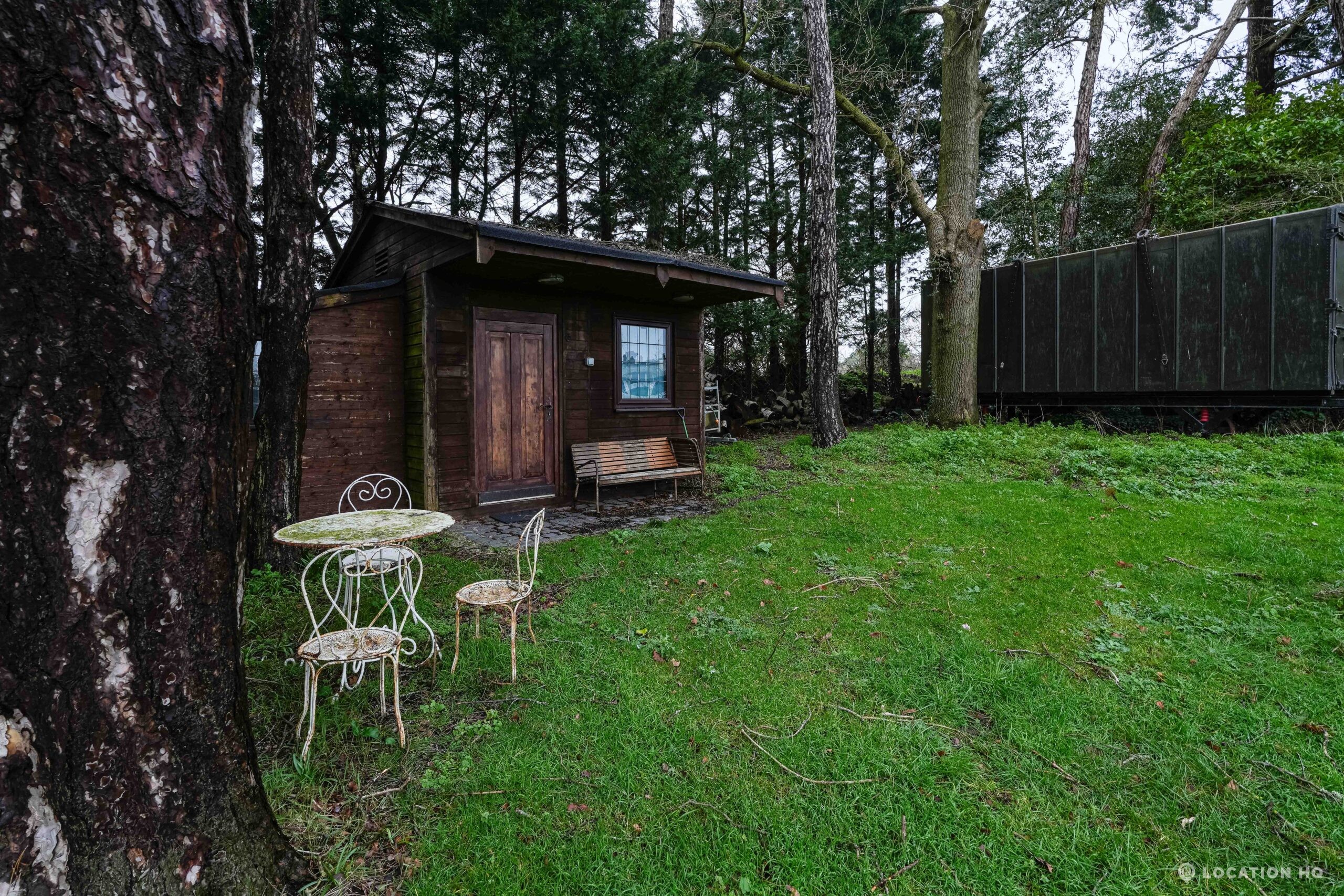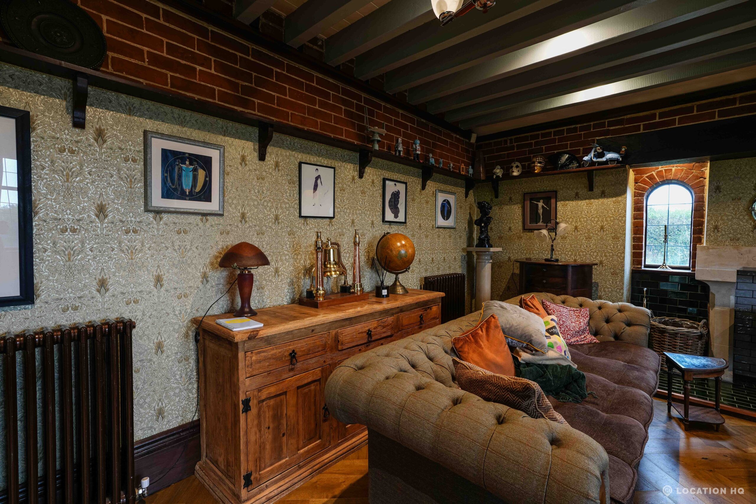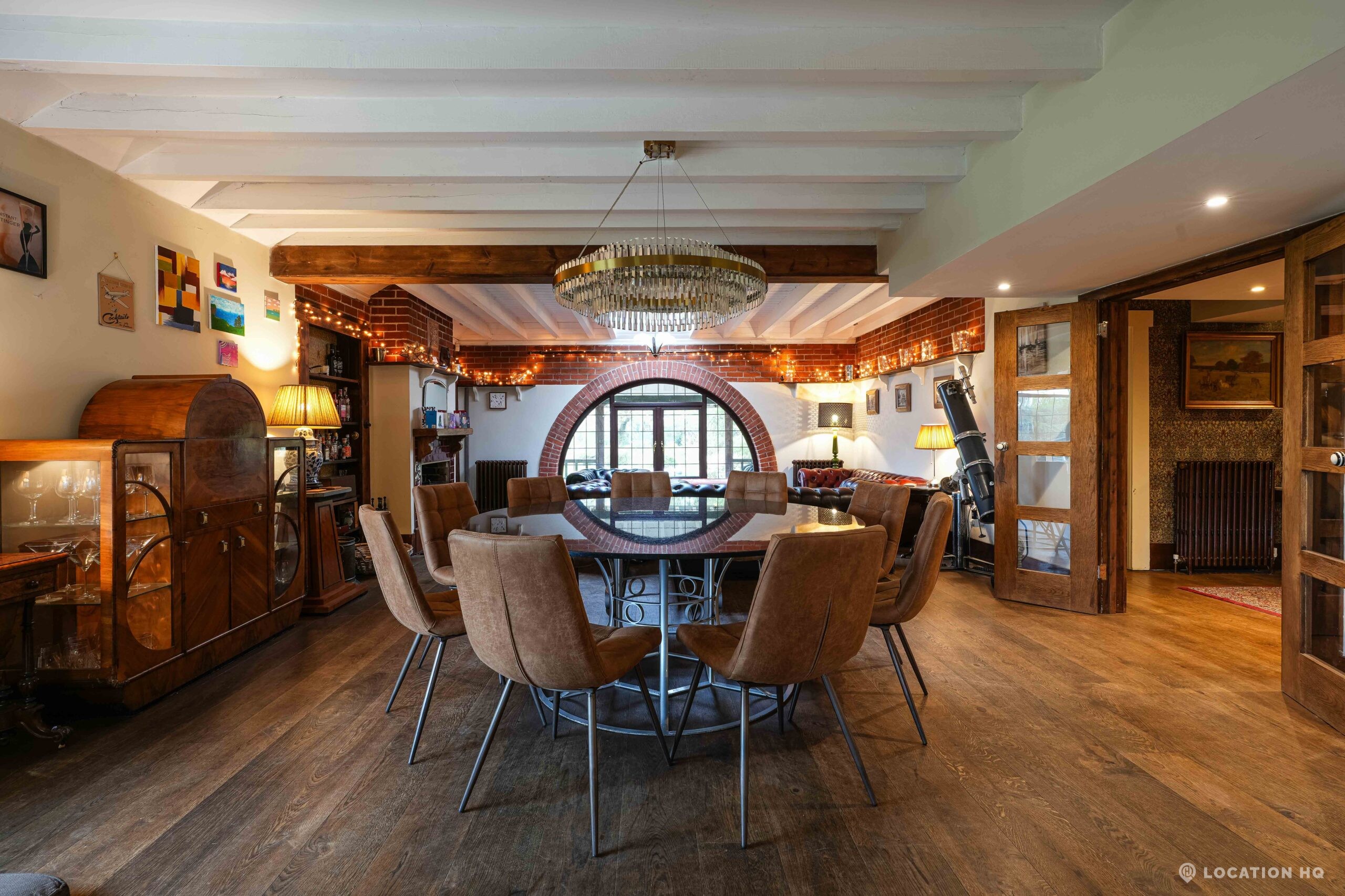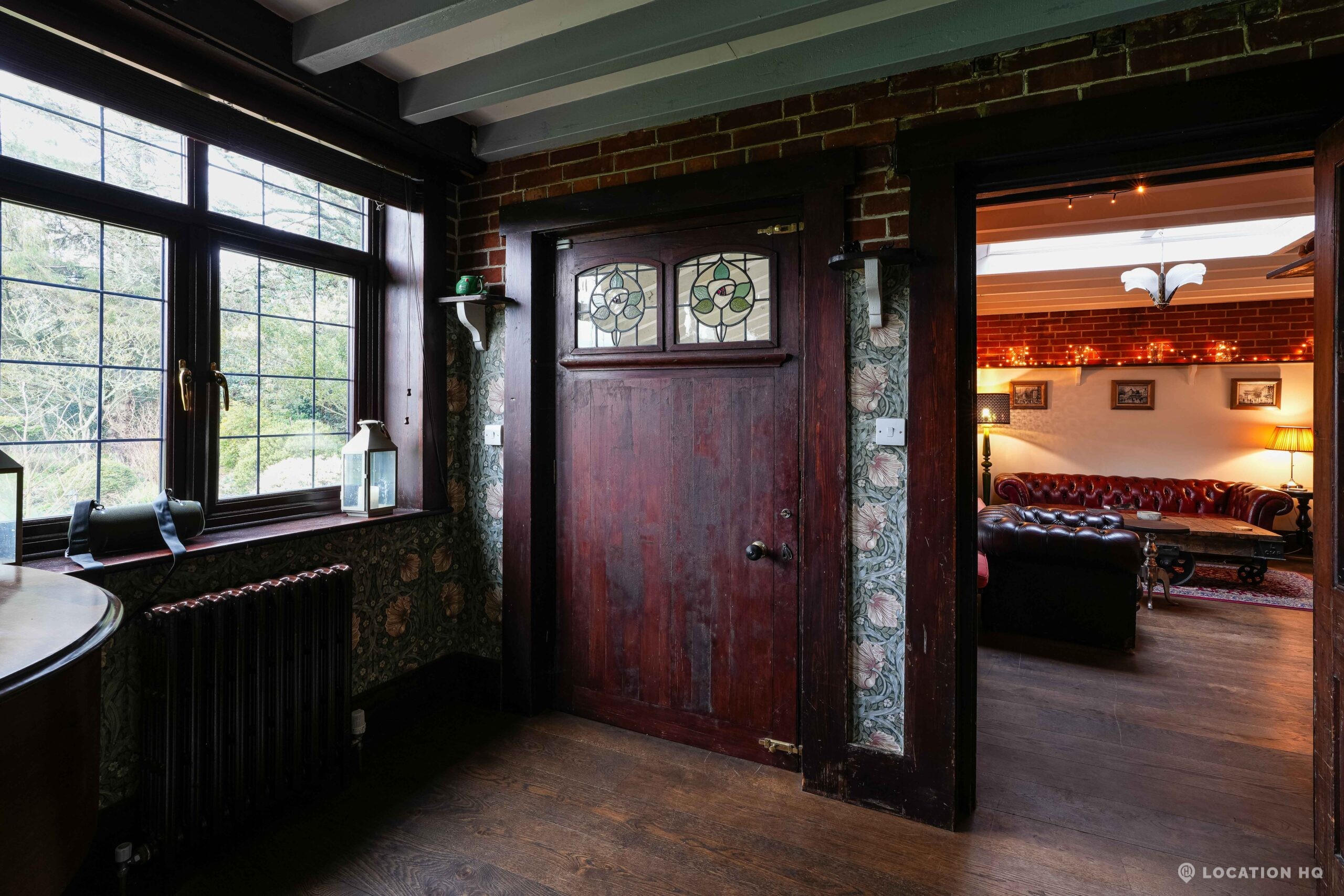 The detached bungalow is an Arts and Crafts style property set on 2 acres, with a separate cottage and useful outbuildings on site. A world first with a Bungalow gatehouse. The layout and grounds make it easy for access, with a large drive and parking big enough for a small unit base. This detached retro bungalow is a good option for productions needing a countryside detached bungalow with clear Arts and Crafts features, plus plenty of space for crew, parking and general setup without complications.