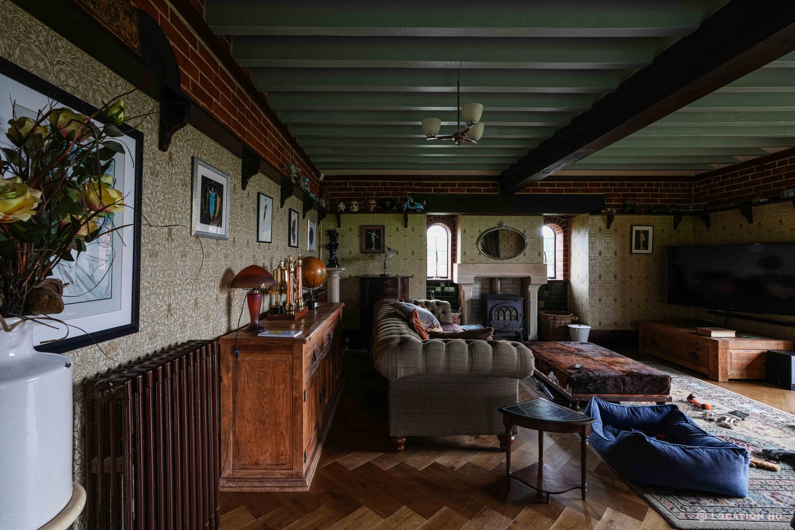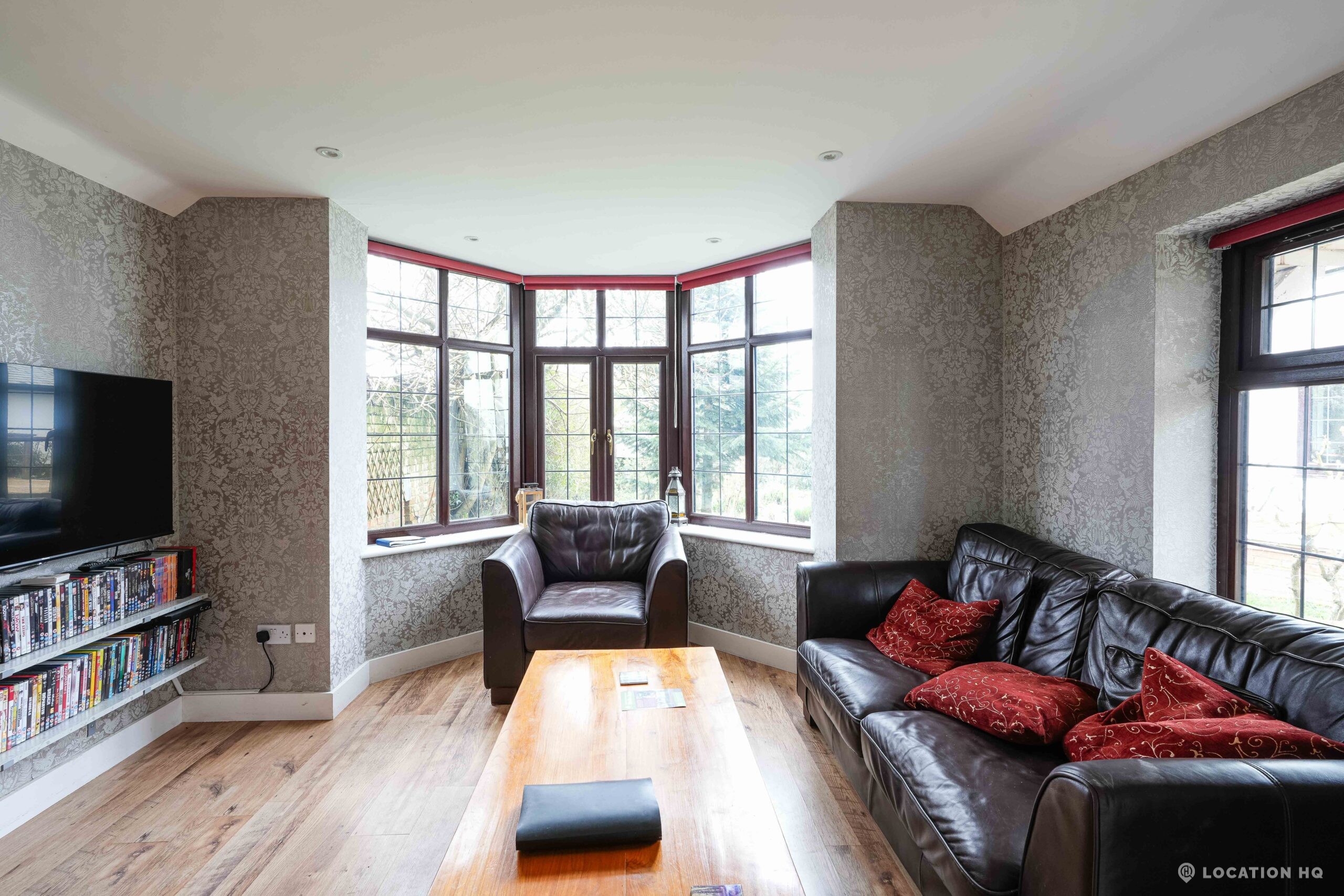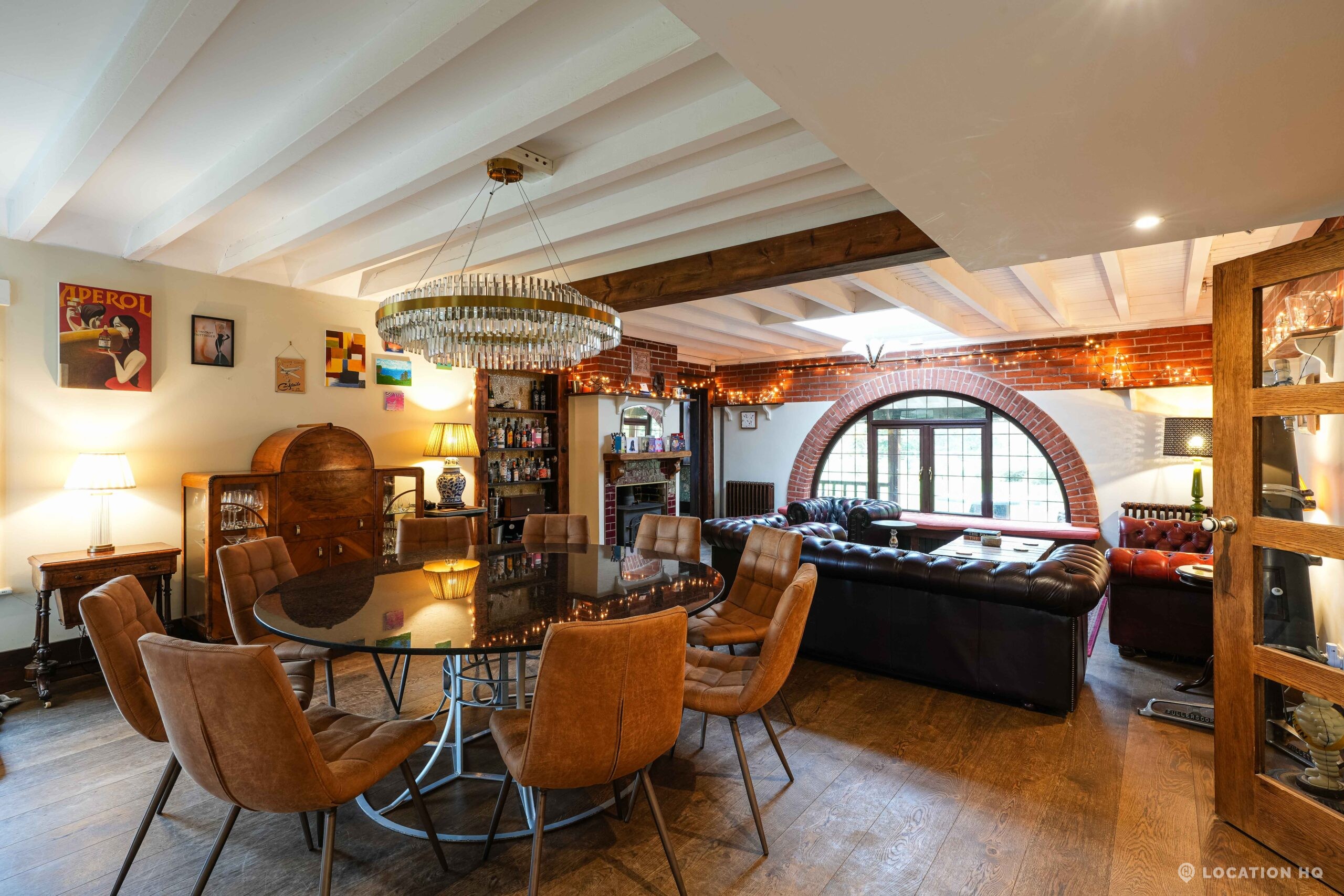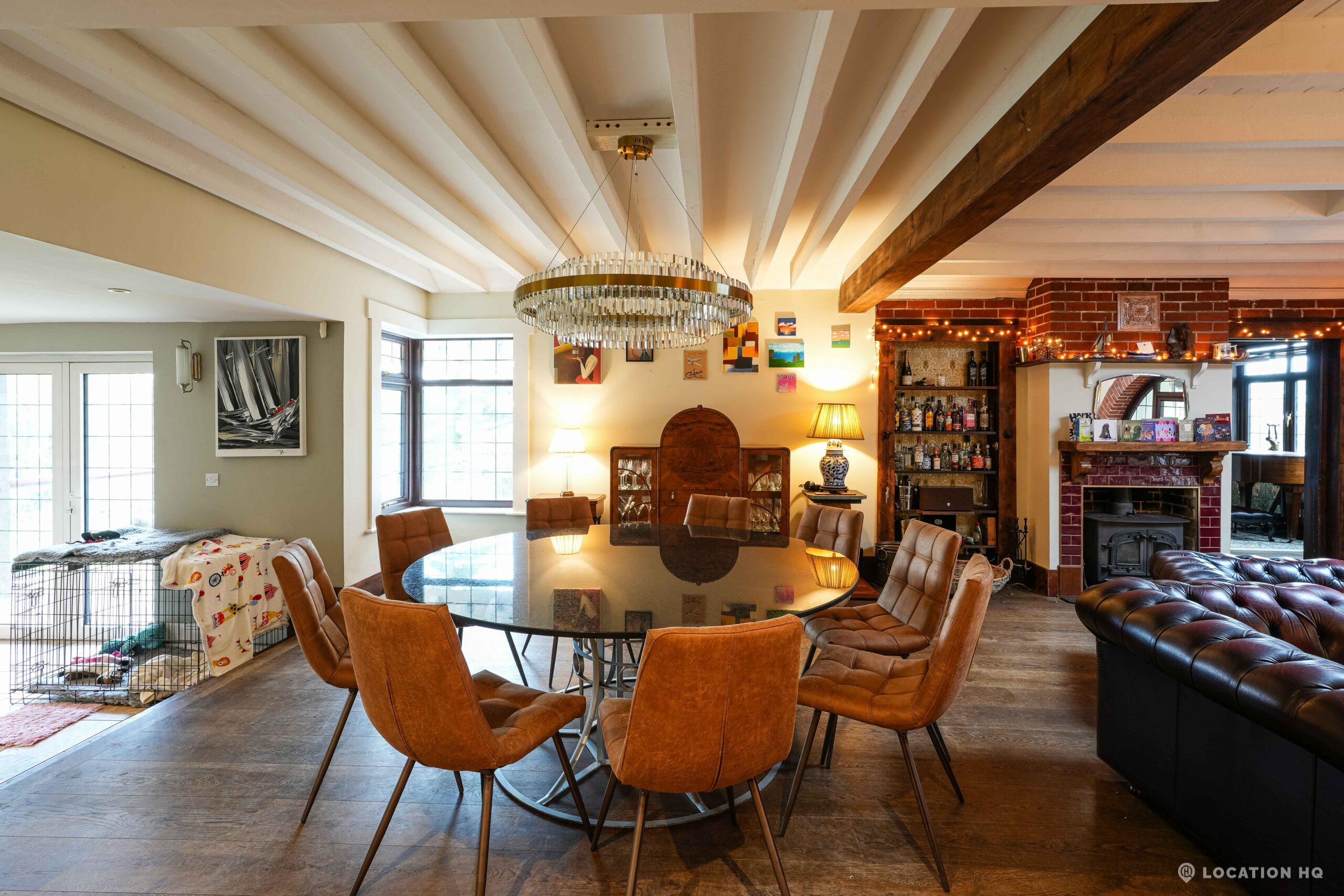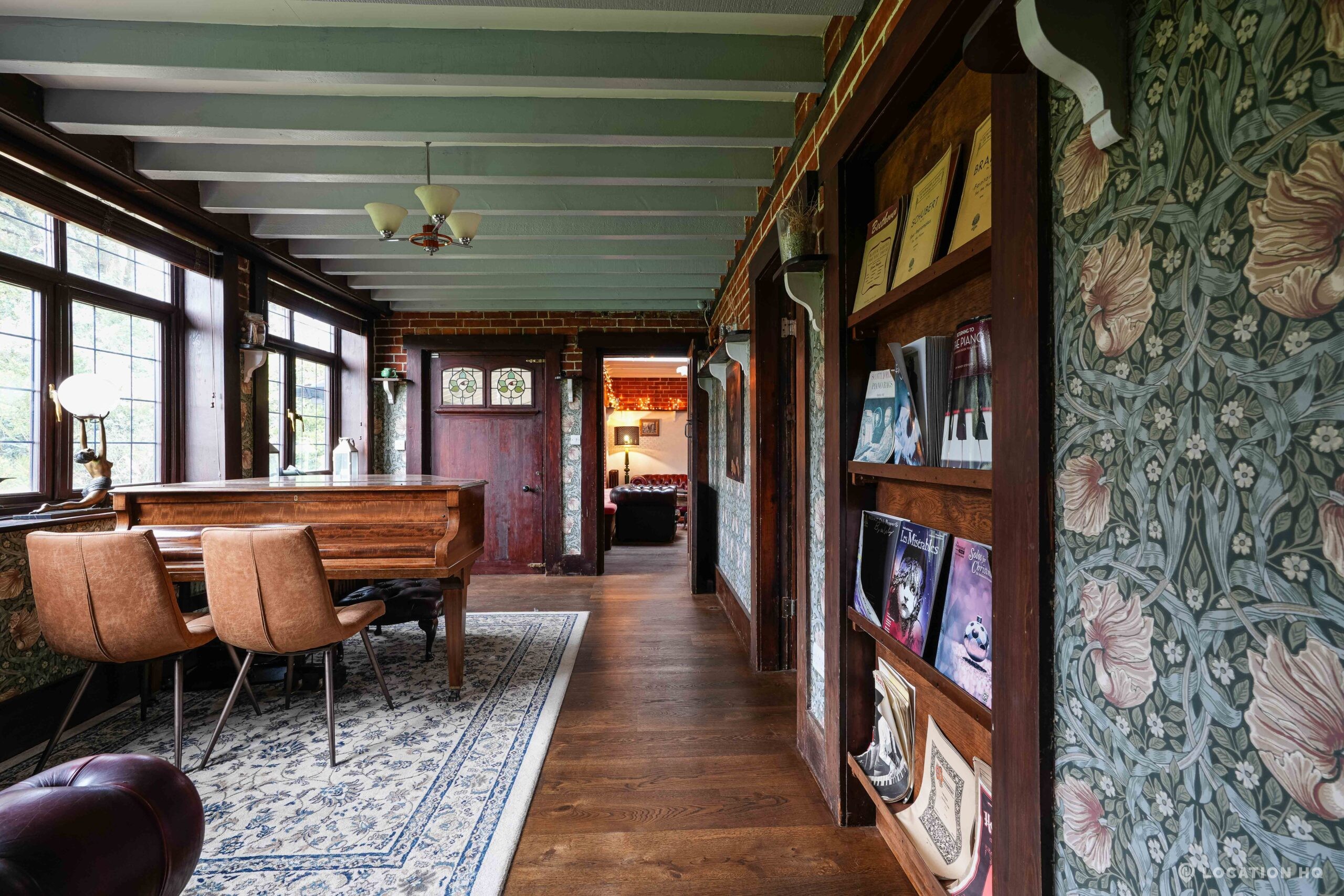 The detached bungalow is an Arts and Crafts style property set on 2 acres, with a separate cottage and useful outbuildings on site. A world first with a Bungalow gatehouse. The layout and grounds make it easy for access, with a large drive and parking big enough for a small unit base. This detached retro bungalow is a good option for productions needing a countryside detached bungalow with clear Arts and Crafts features, plus plenty of space for crew, parking and general setup without complications.