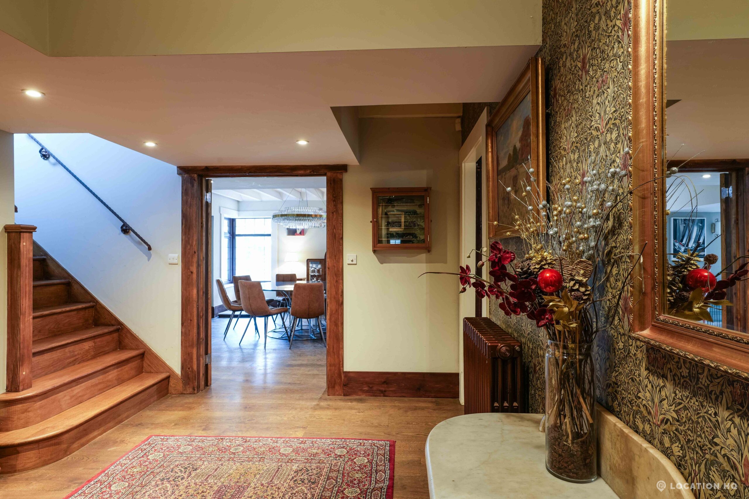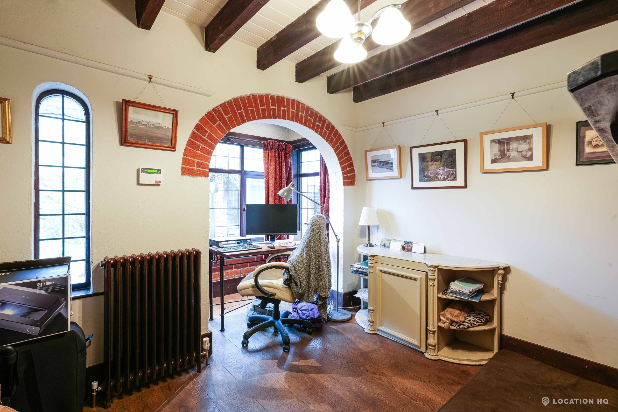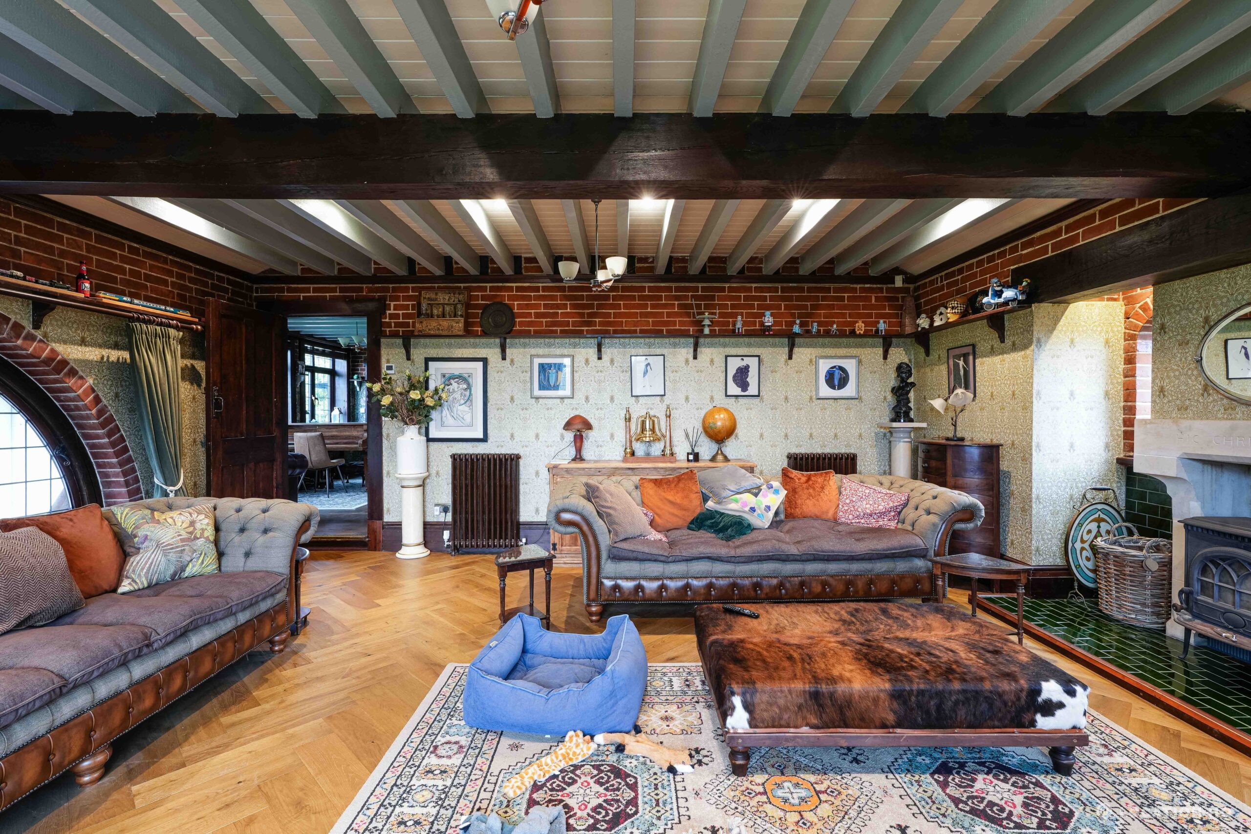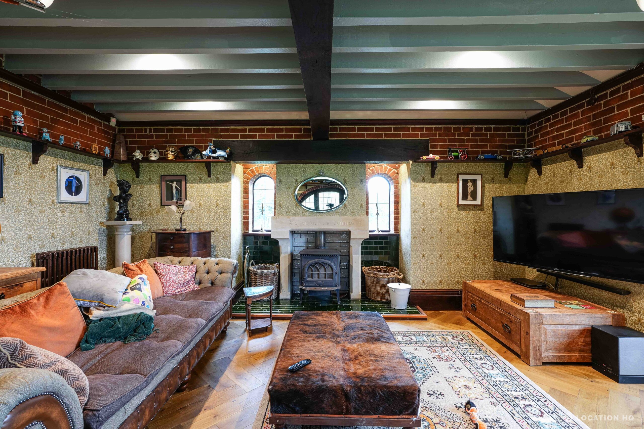 The detached bungalow is an Arts and Crafts style property set on 2 acres, with a separate cottage and useful outbuildings on site. A world first with a Bungalow gatehouse. The layout and grounds make it easy for access, with a large drive and parking big enough for a small unit base. This detached retro bungalow is a good option for productions needing a countryside detached bungalow with clear Arts and Crafts features, plus plenty of space for crew, parking and general setup without complications.