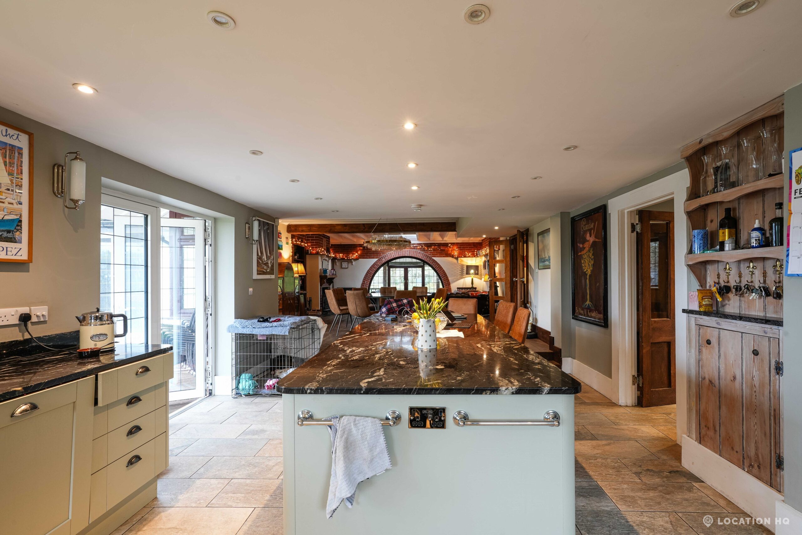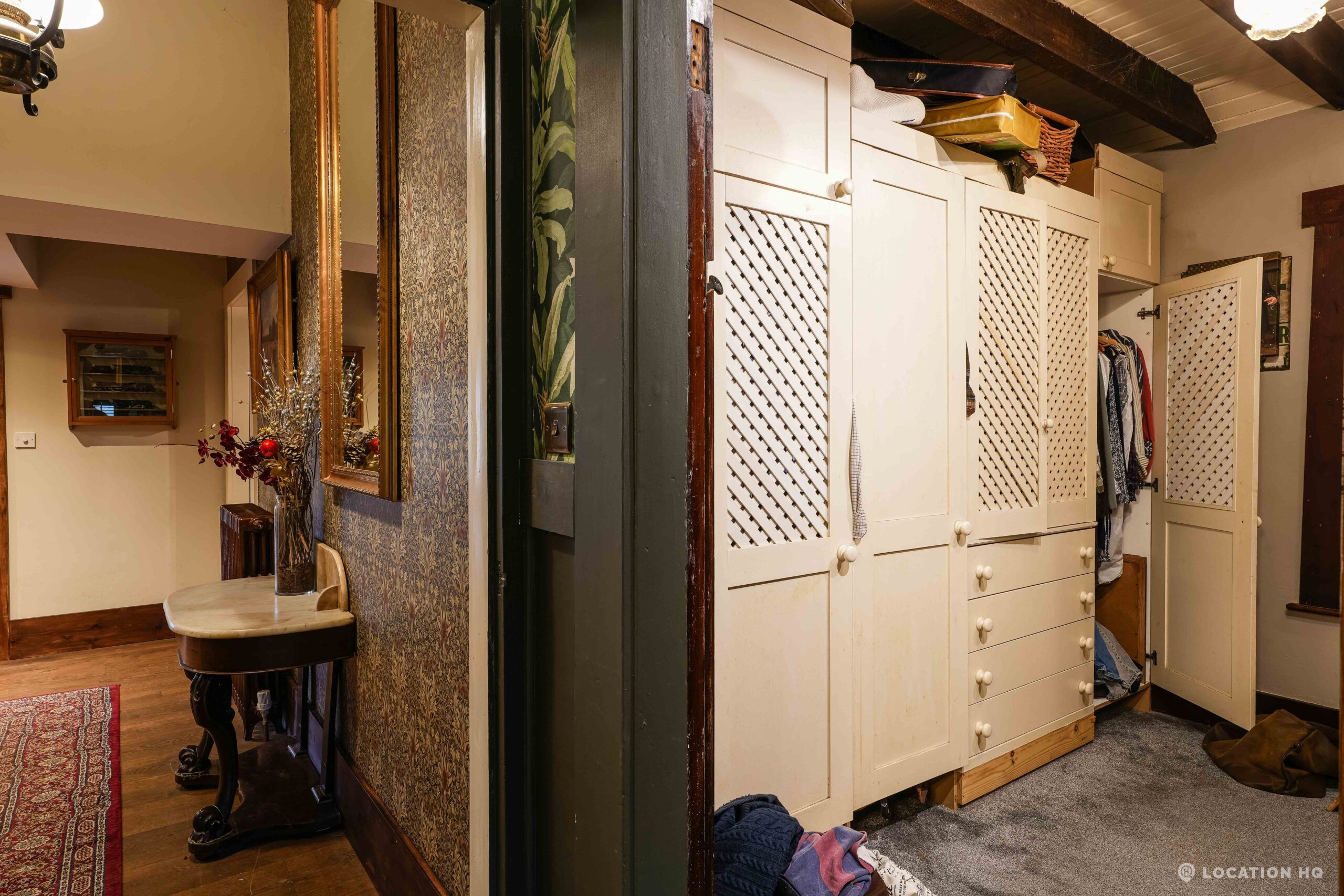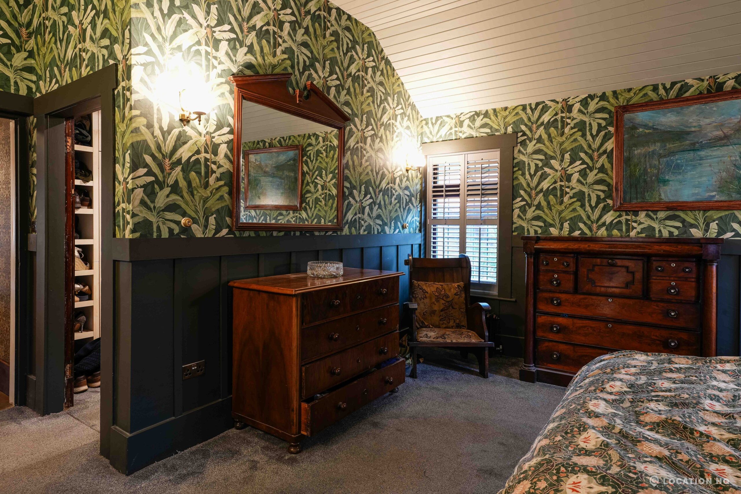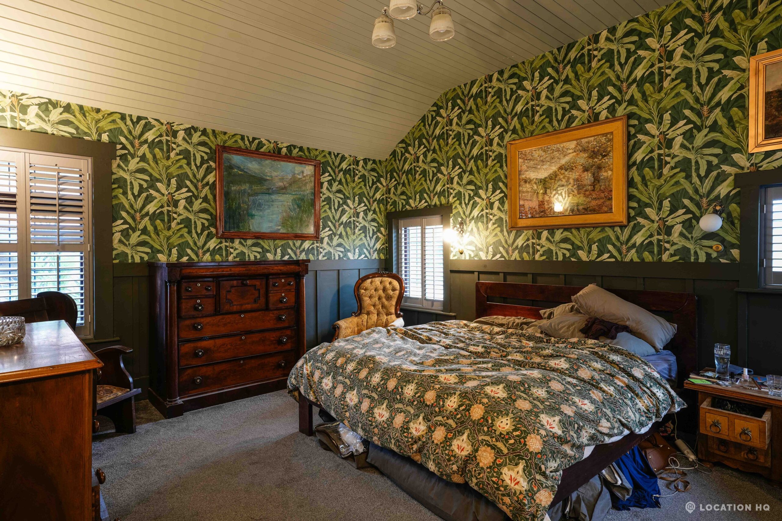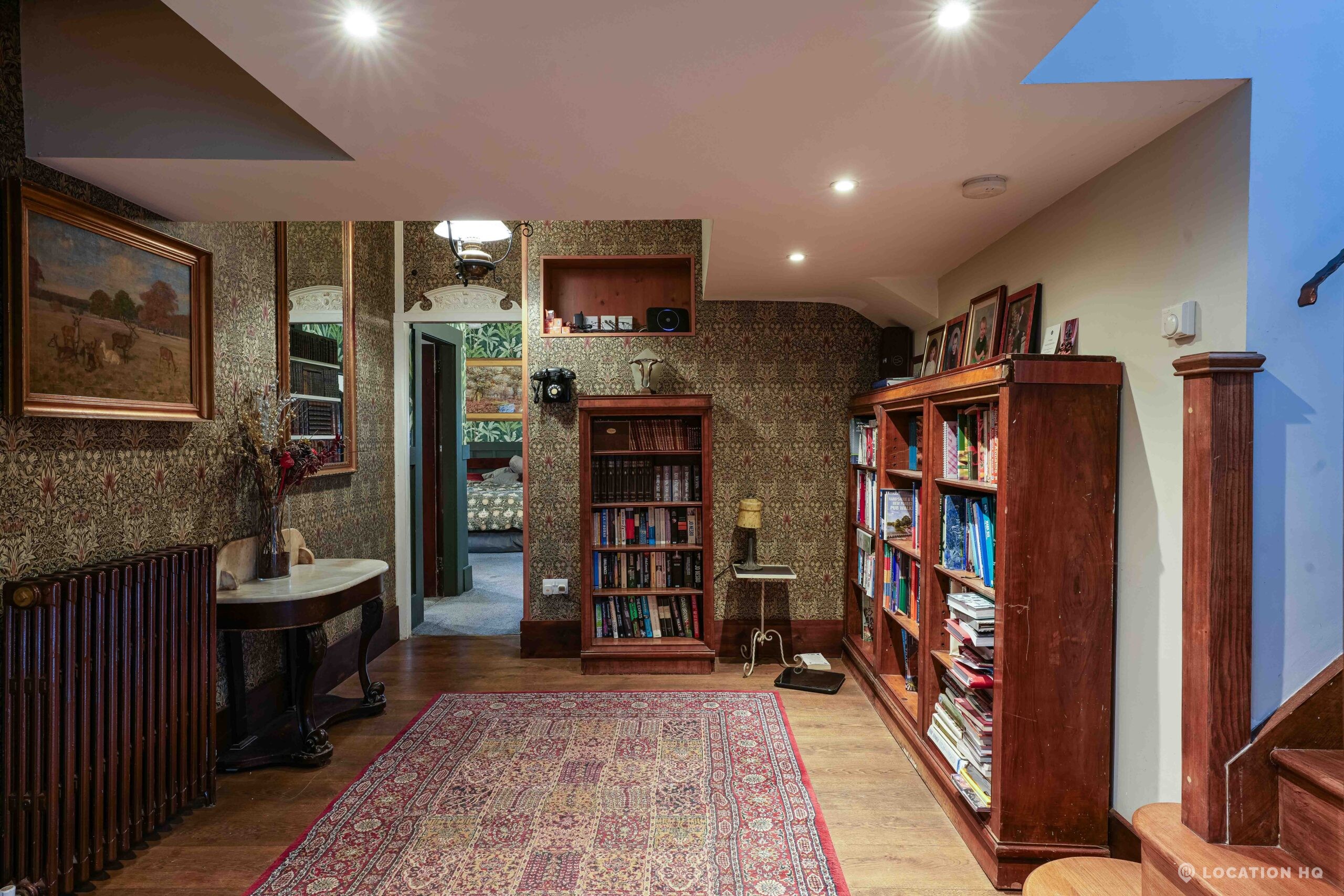 The detached bungalow is an Arts and Crafts style property set on 2 acres, with a separate cottage and useful outbuildings on site. A world first with a Bungalow gatehouse. The layout and grounds make it easy for access, with a large drive and parking big enough for a small unit base. This detached retro bungalow is a good option for productions needing a countryside detached bungalow with clear Arts and Crafts features, plus plenty of space for crew, parking and general setup without complications.
