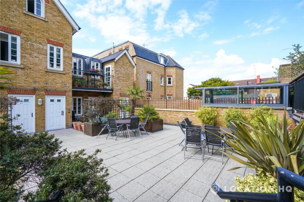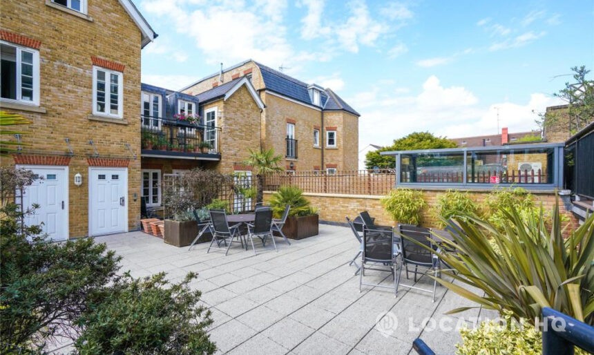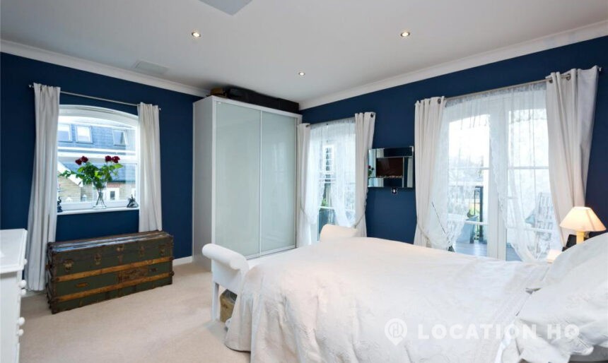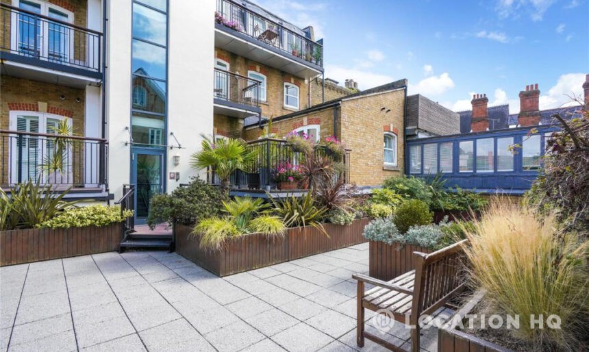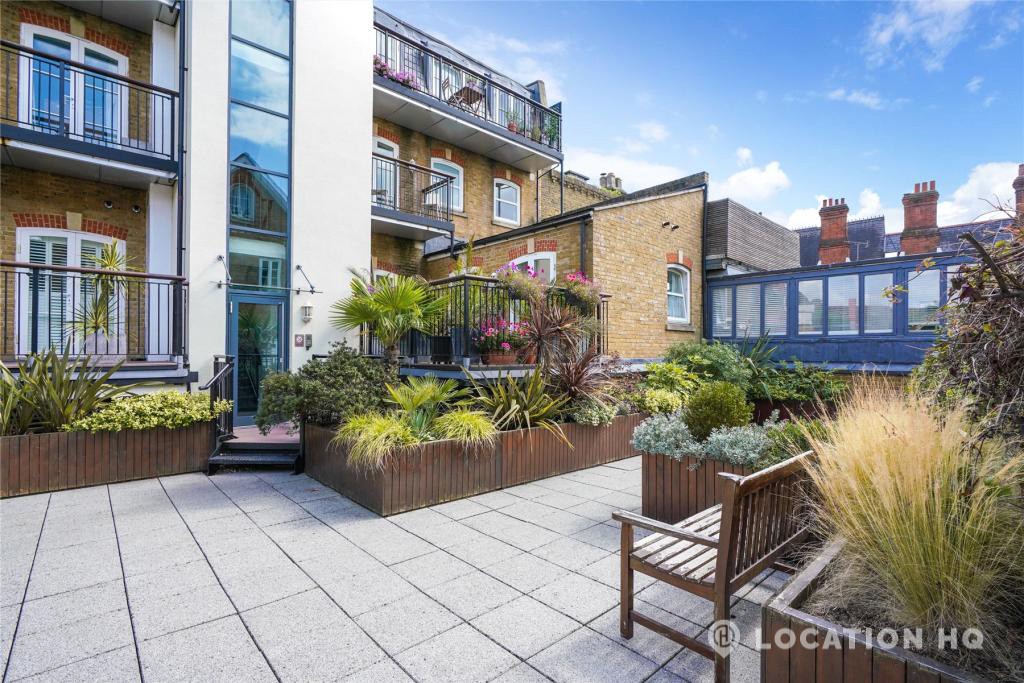 Modern flat with a bright, easy-going feel and a clean look throughout. Right on the bank of the river Thames. The open-plan kitchen and reception space works beautifully for filming, with simple lines, good natural light and a comfortable layout. The principal bedroom comes with an en suite, alongside a second double bedroom and an additional bathroom. There’s also a private terrace, a communal courtyard to use, and secure underground parking. A relaxed, versatile space that works well on camera.