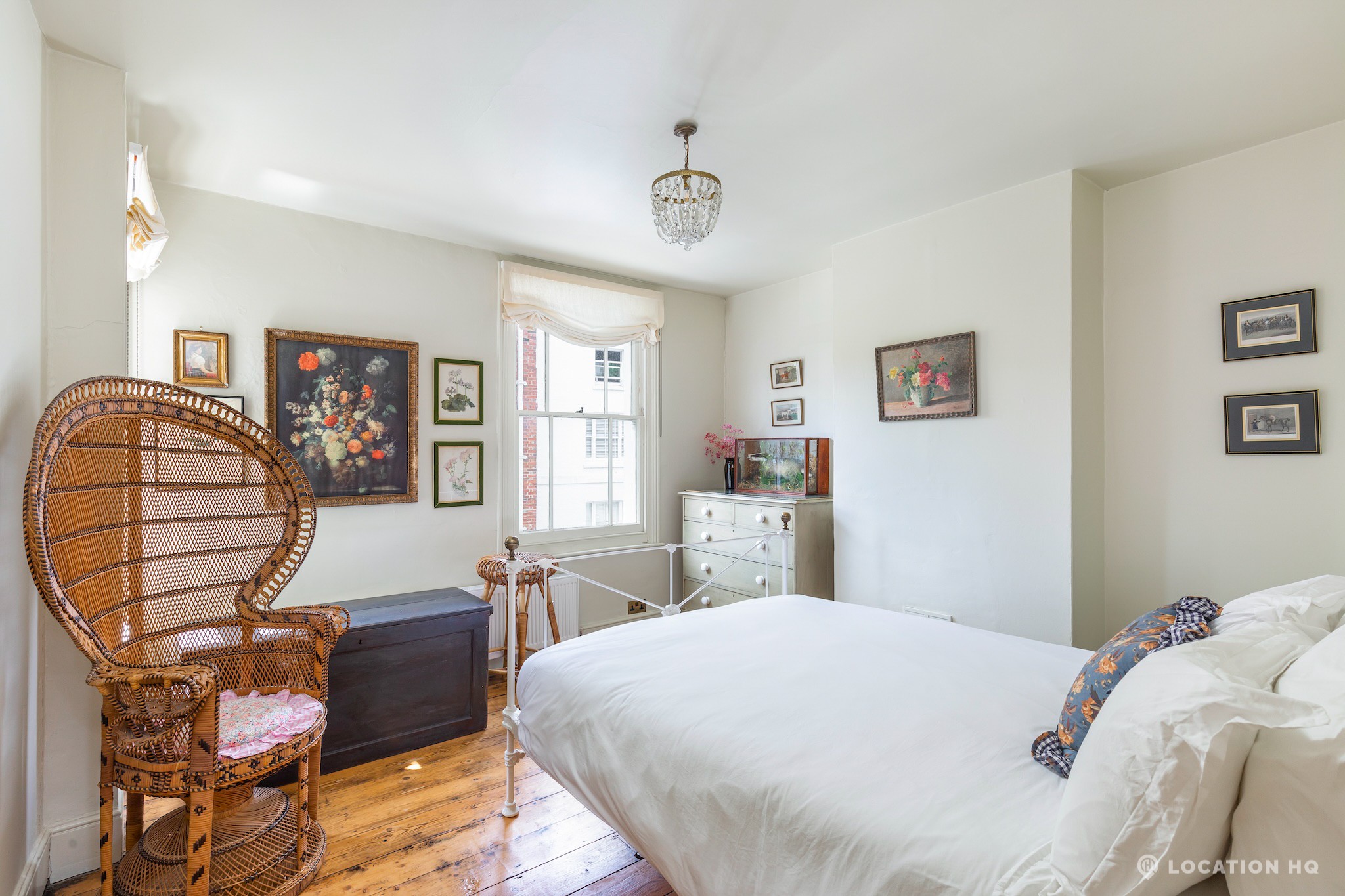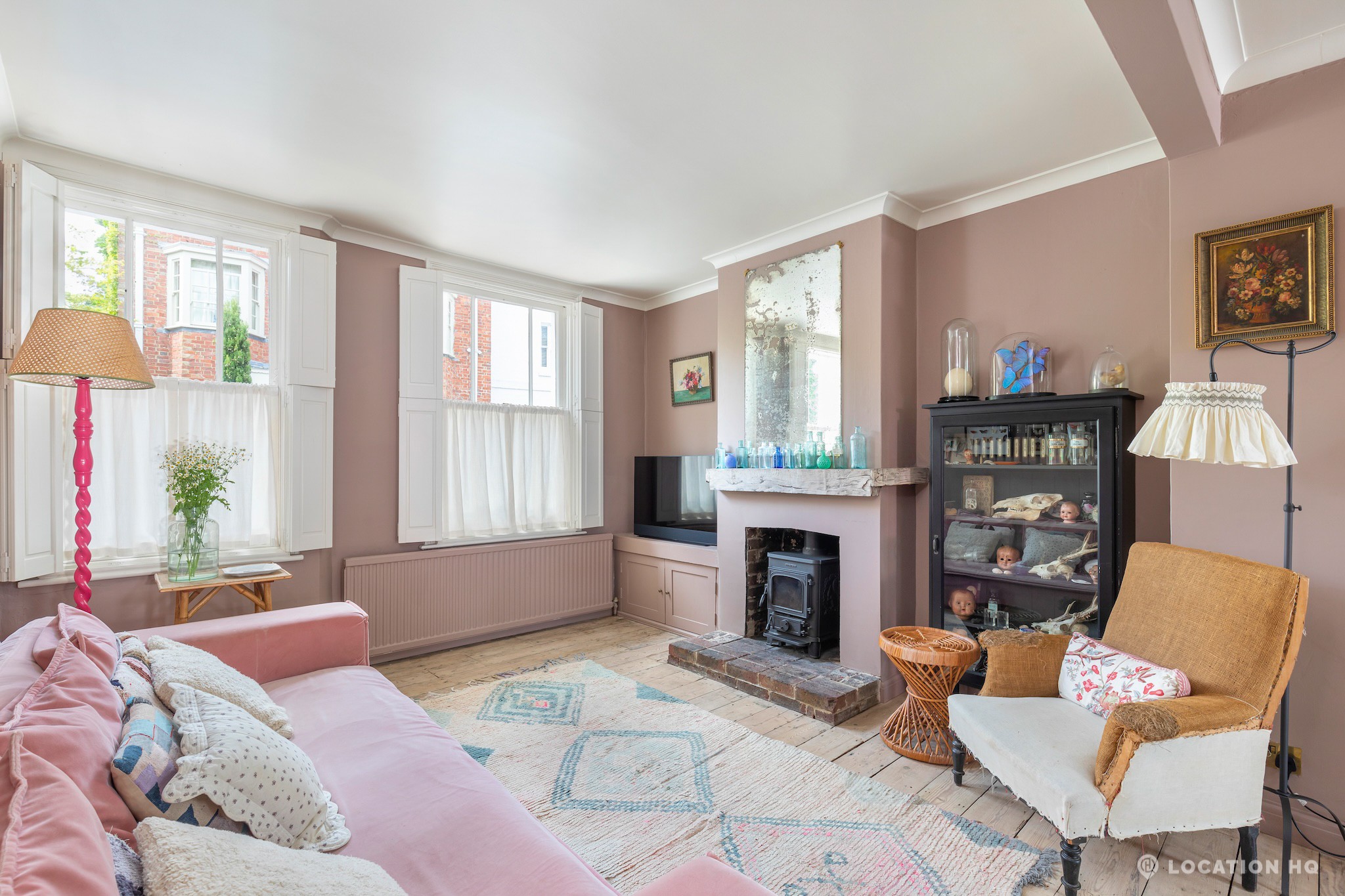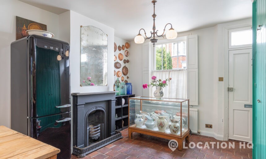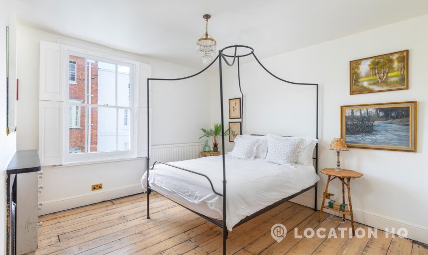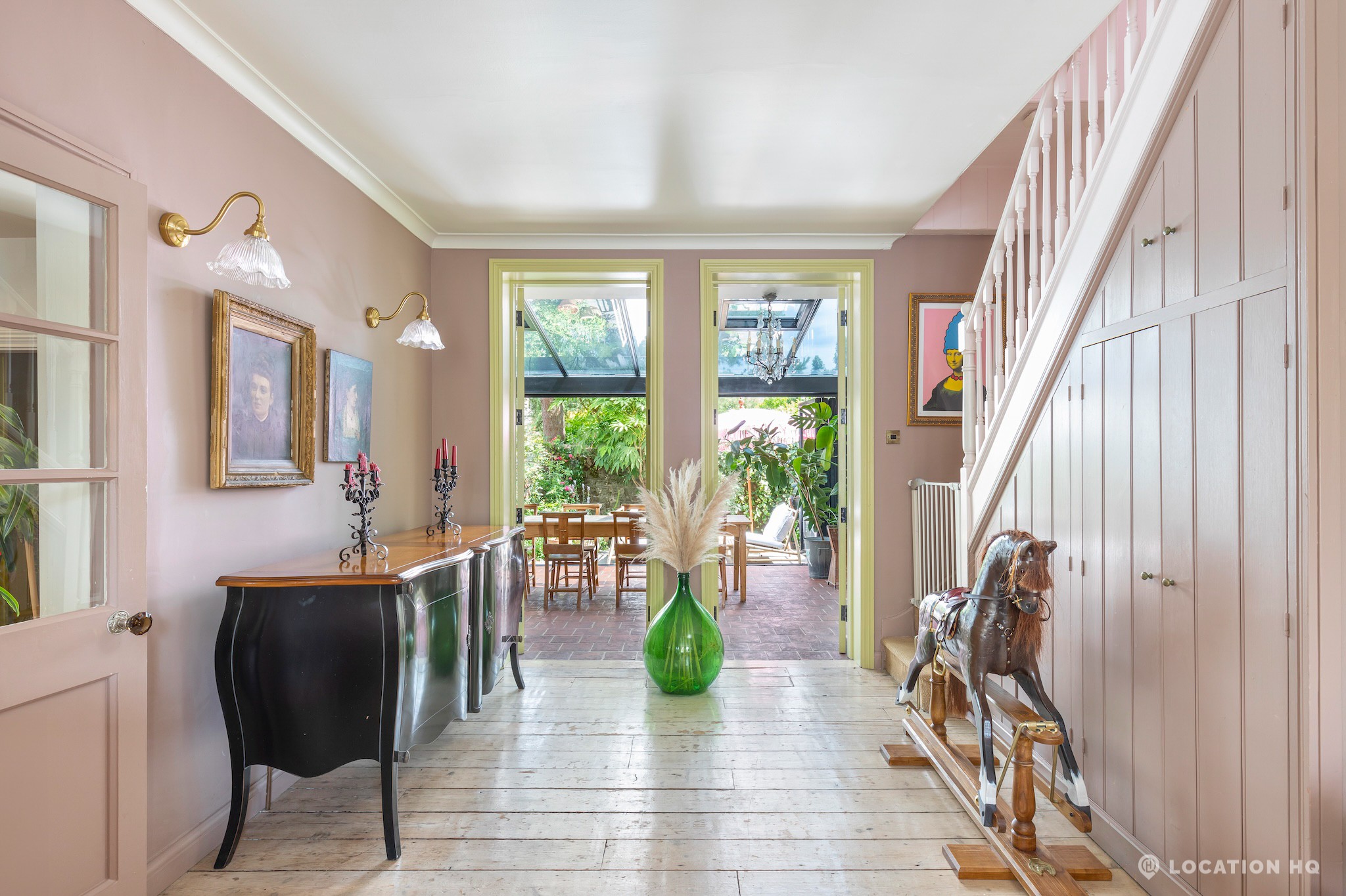 A stunning Georgian and Victorian townhouse featuring a stucco exterior with lovely dormer windows. Elegant bay windows, and rich wood-panelled floors. Strictly speaking a Georgian house with some Victorian elements, such as the dormer windows. This timeless property beautifully preserves its original Victorian features, offering the perfect setting for film, TV, and commercial productions seeking authentic period character and architectural charm in a warm, versatile residential location.