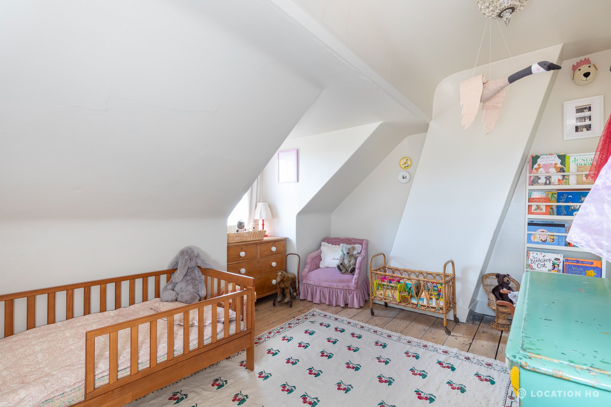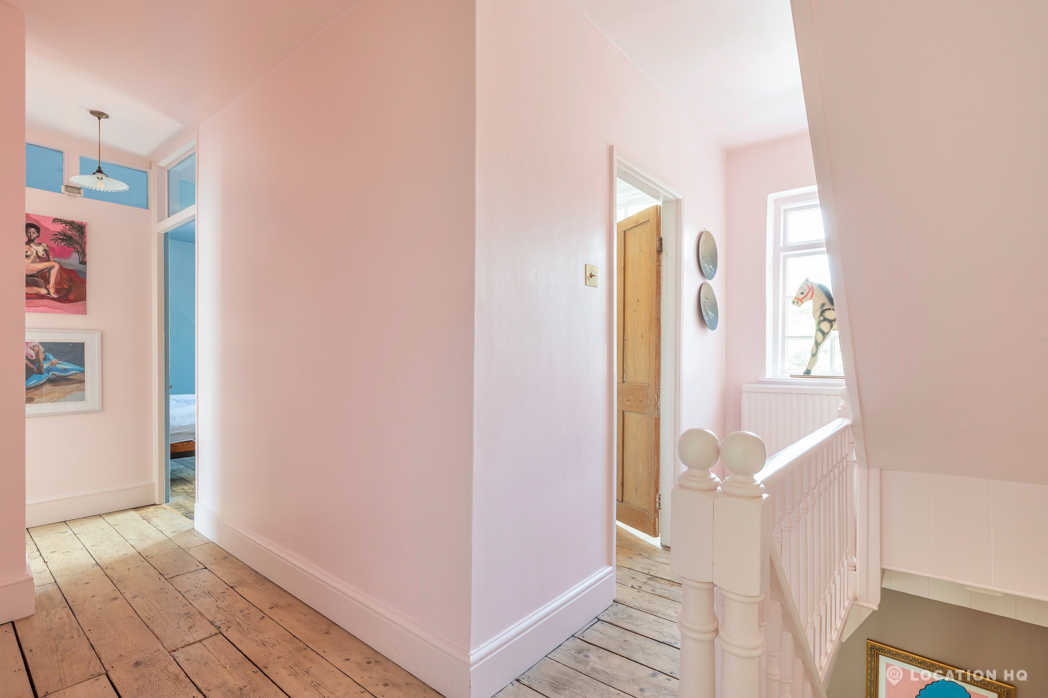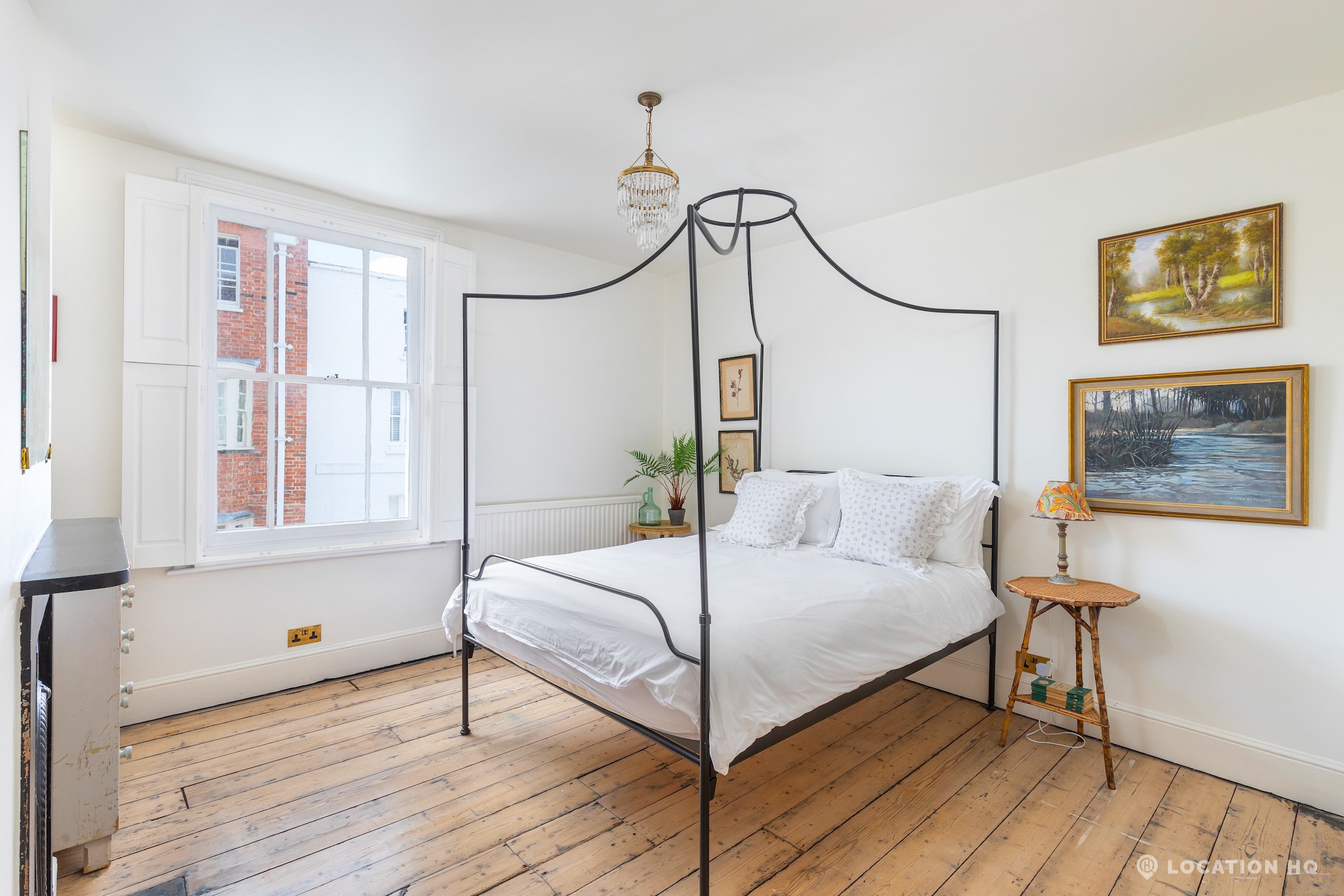 A stunning Georgian and Victorian townhouse featuring a stucco exterior with lovely dormer windows. Elegant bay windows, and rich wood-panelled floors. Strictly speaking a Georgian house with some Victorian elements, such as the dormer windows. This timeless property beautifully preserves its original Victorian features, offering the perfect setting for film, TV, and commercial productions seeking authentic period character and architectural charm in a warm, versatile residential location.