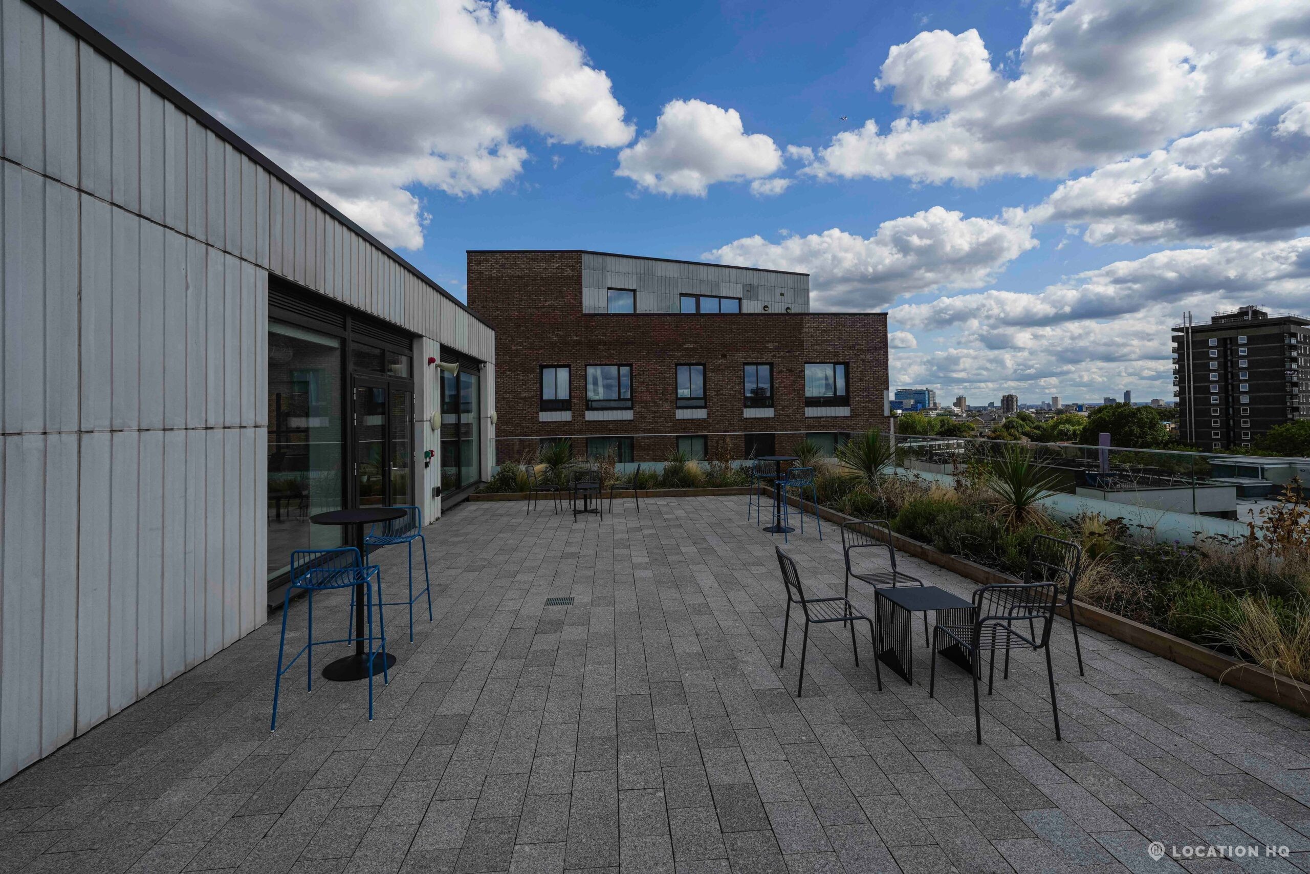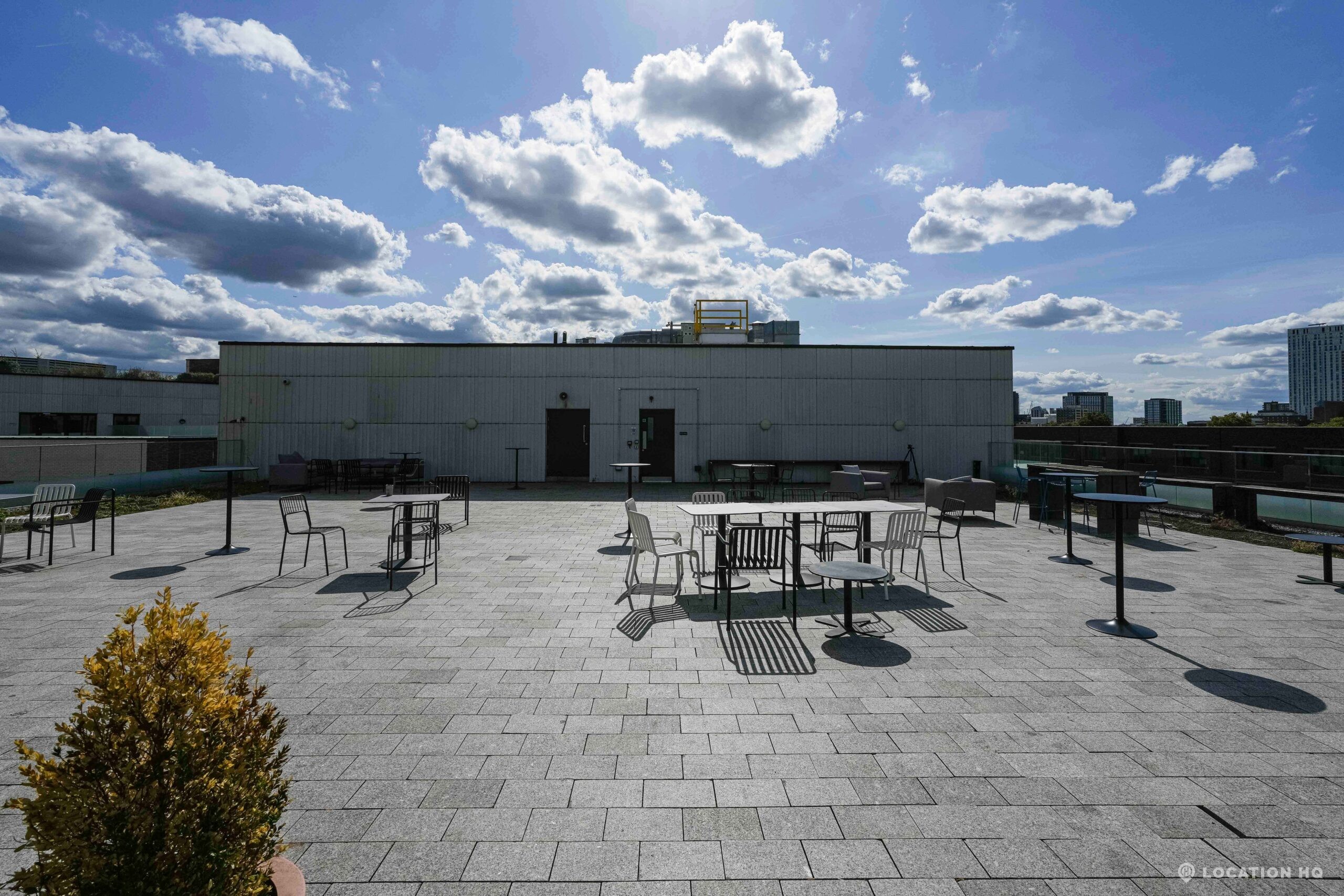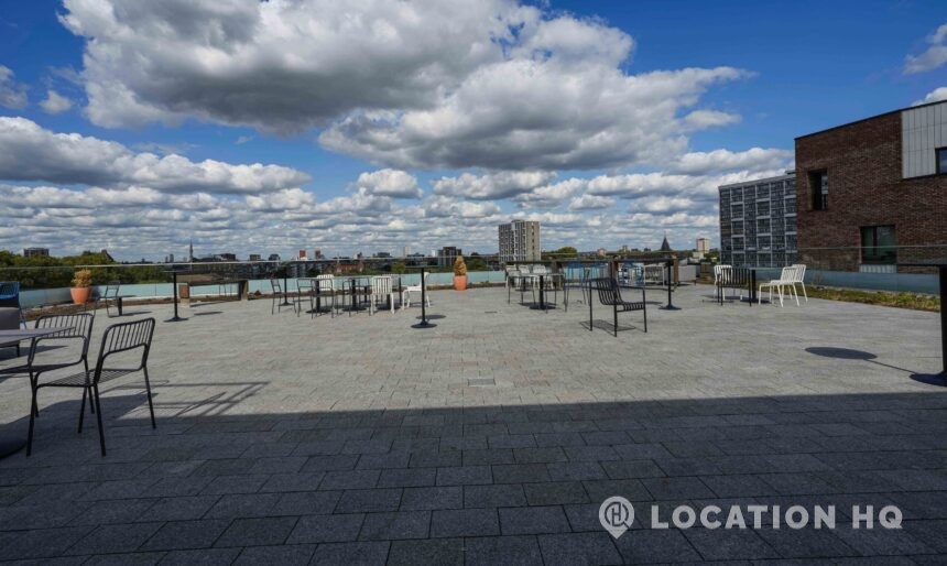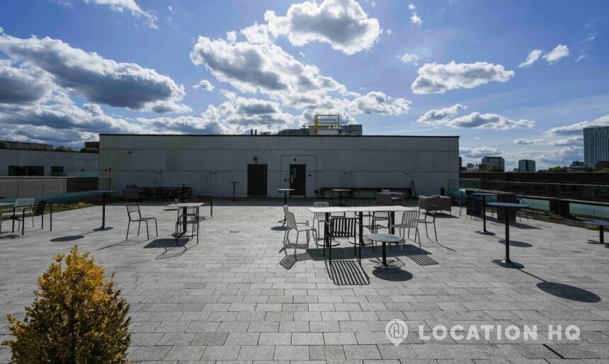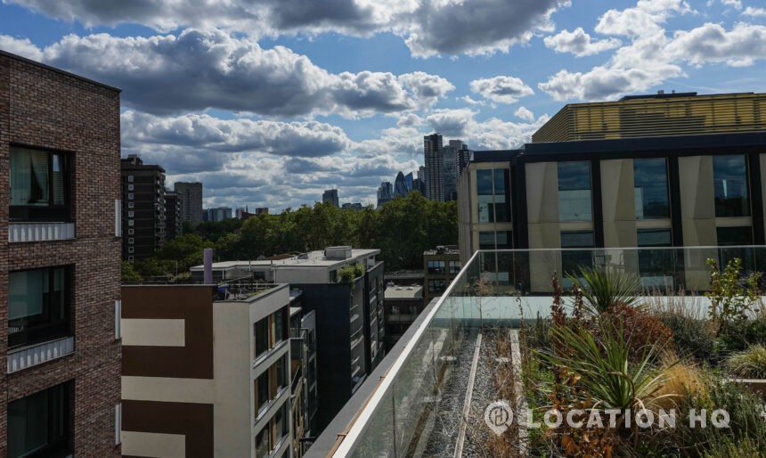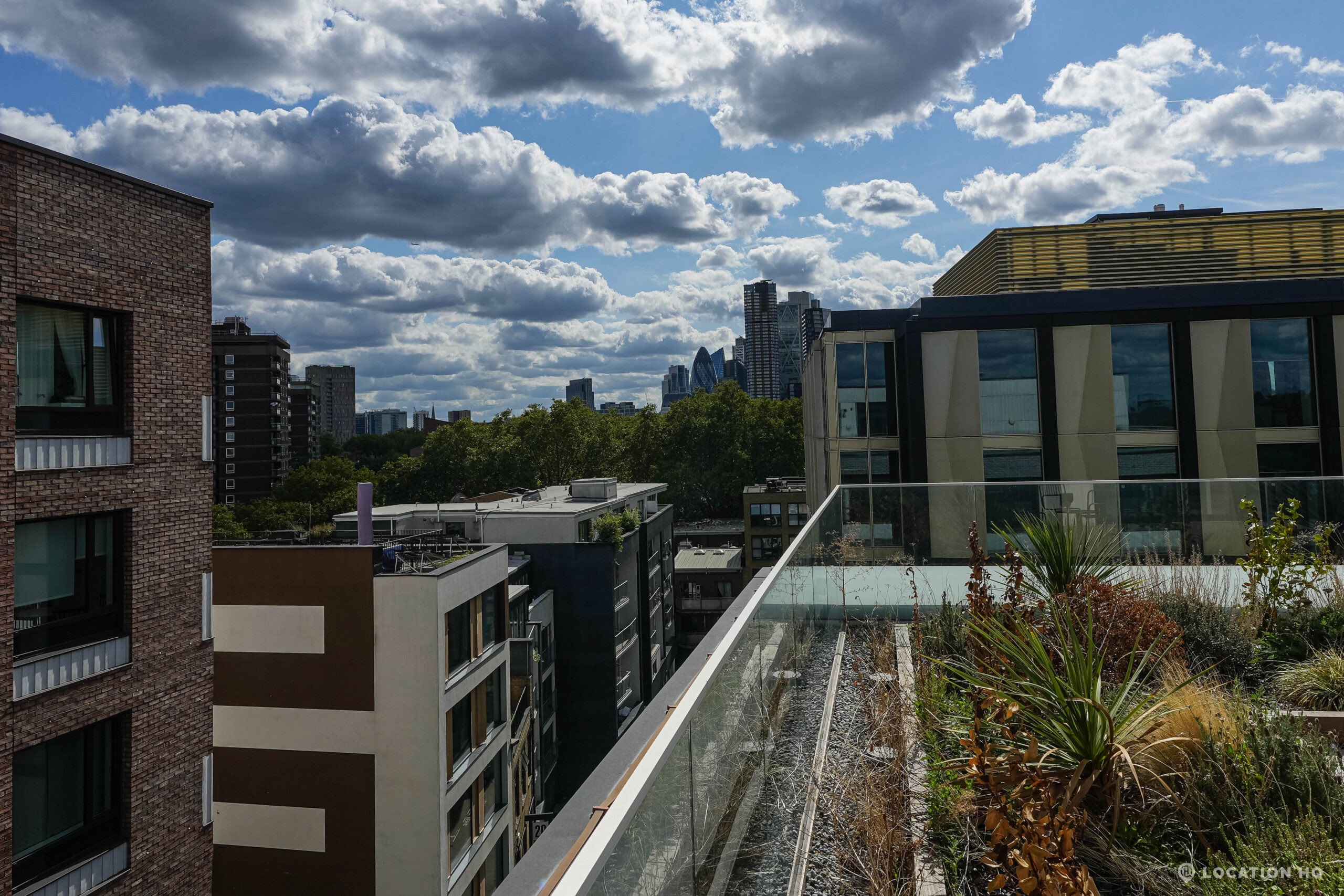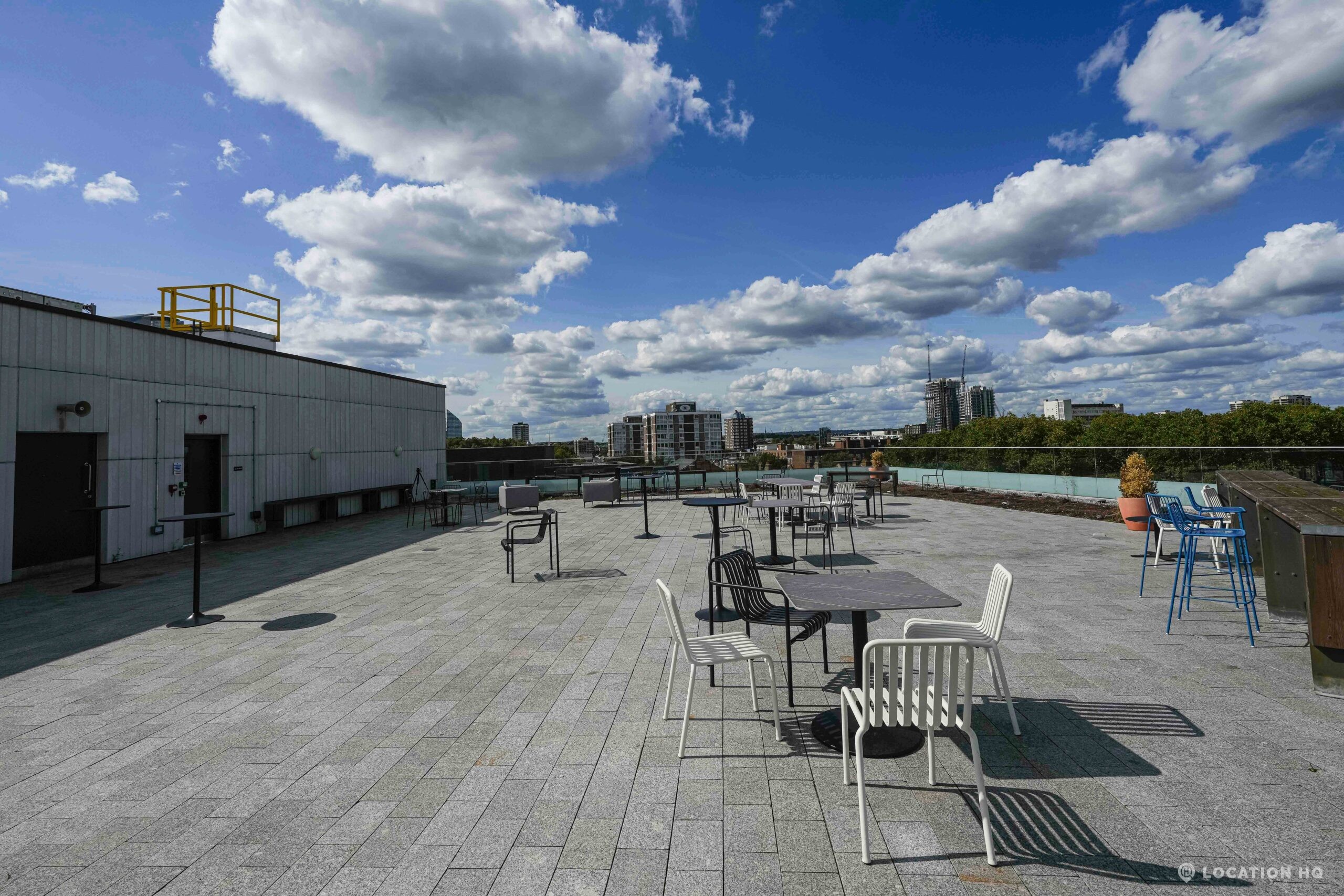 Expansive rooftop location featuring striking views of London’s skyline and adjacent railway tracks, ideal for dramatic urban scenes. The setting combines industrial character with sweeping city vistas, offering filmmakers a versatile backdrop for action sequences, atmospheric shoots, or stylish cityscape photography.