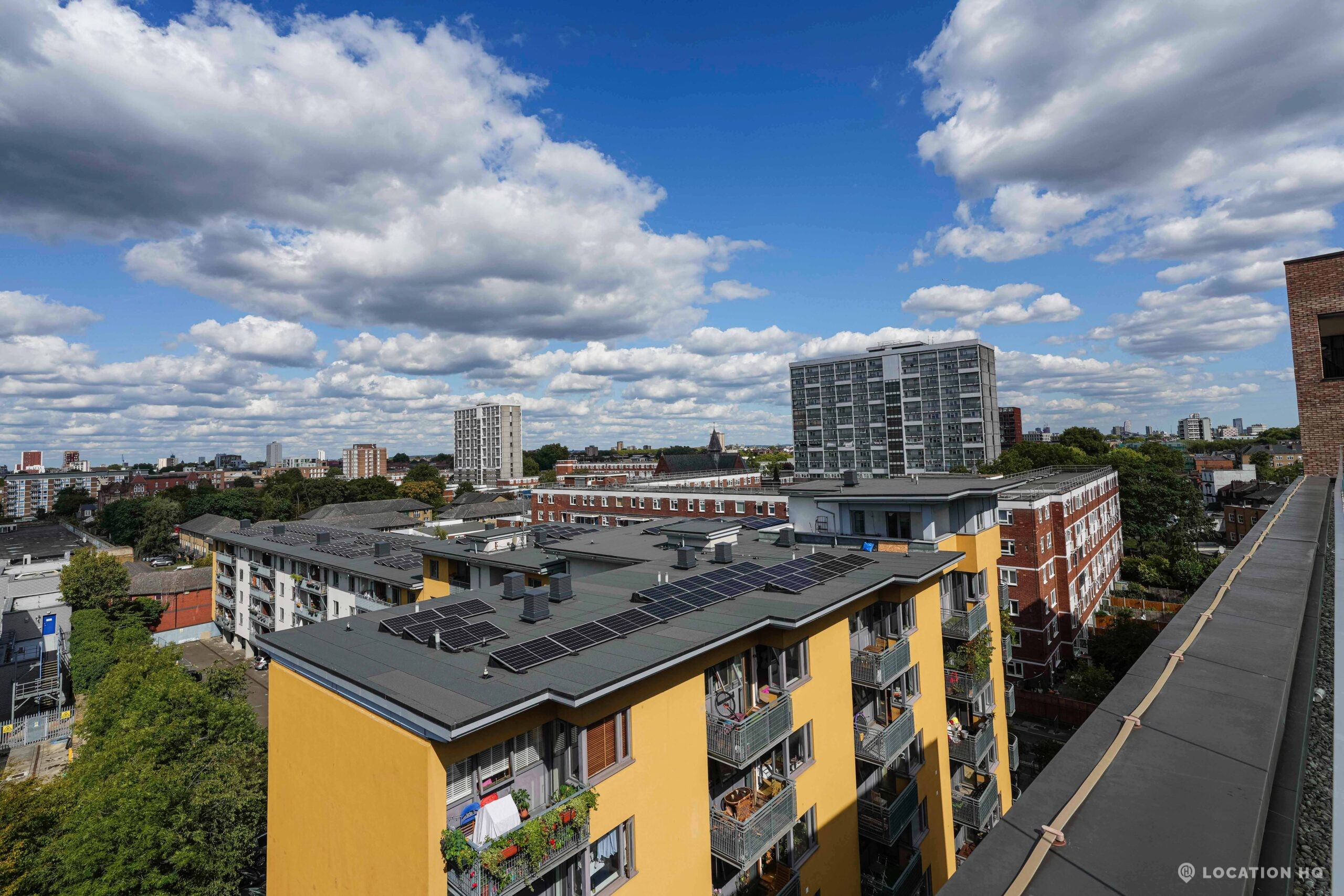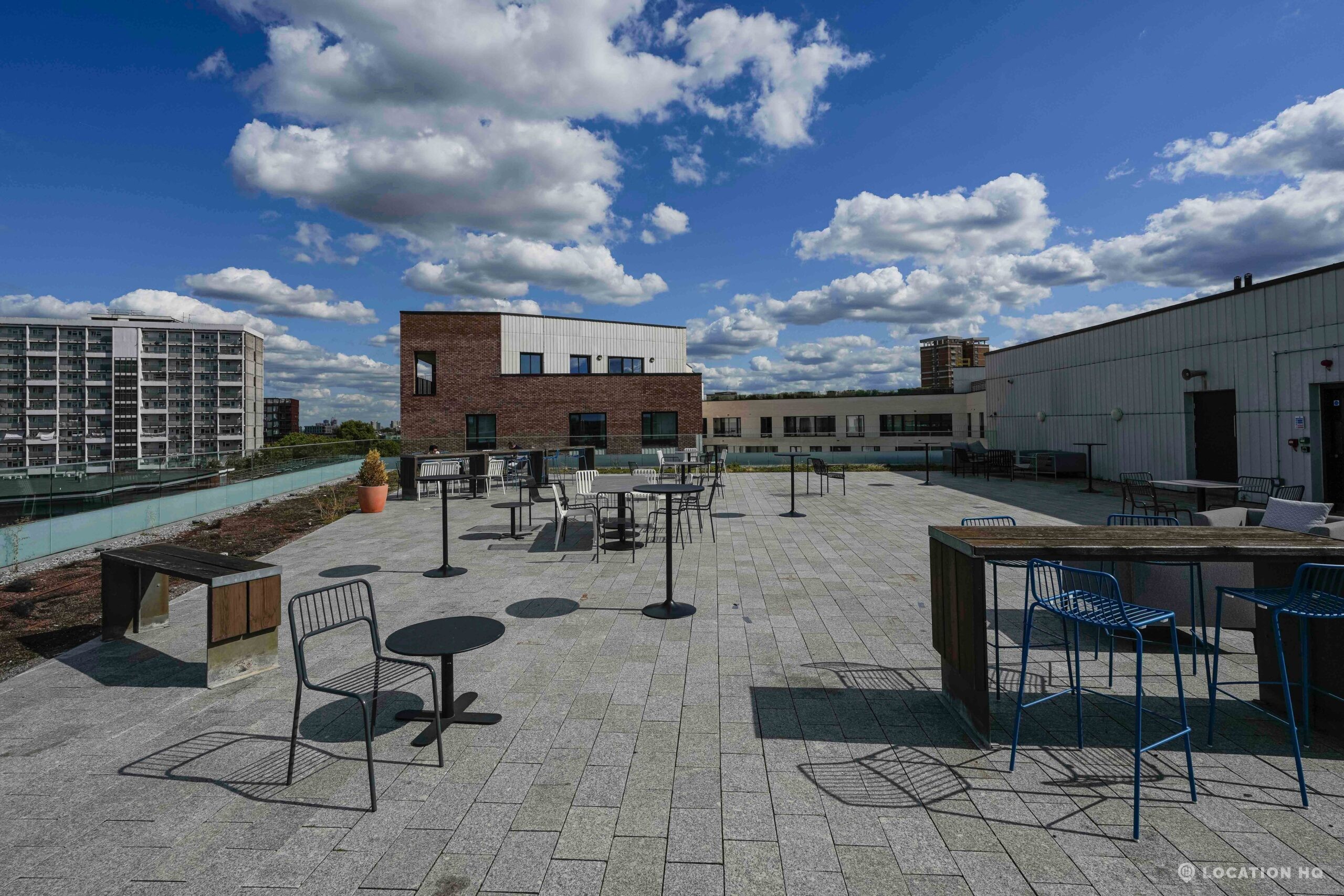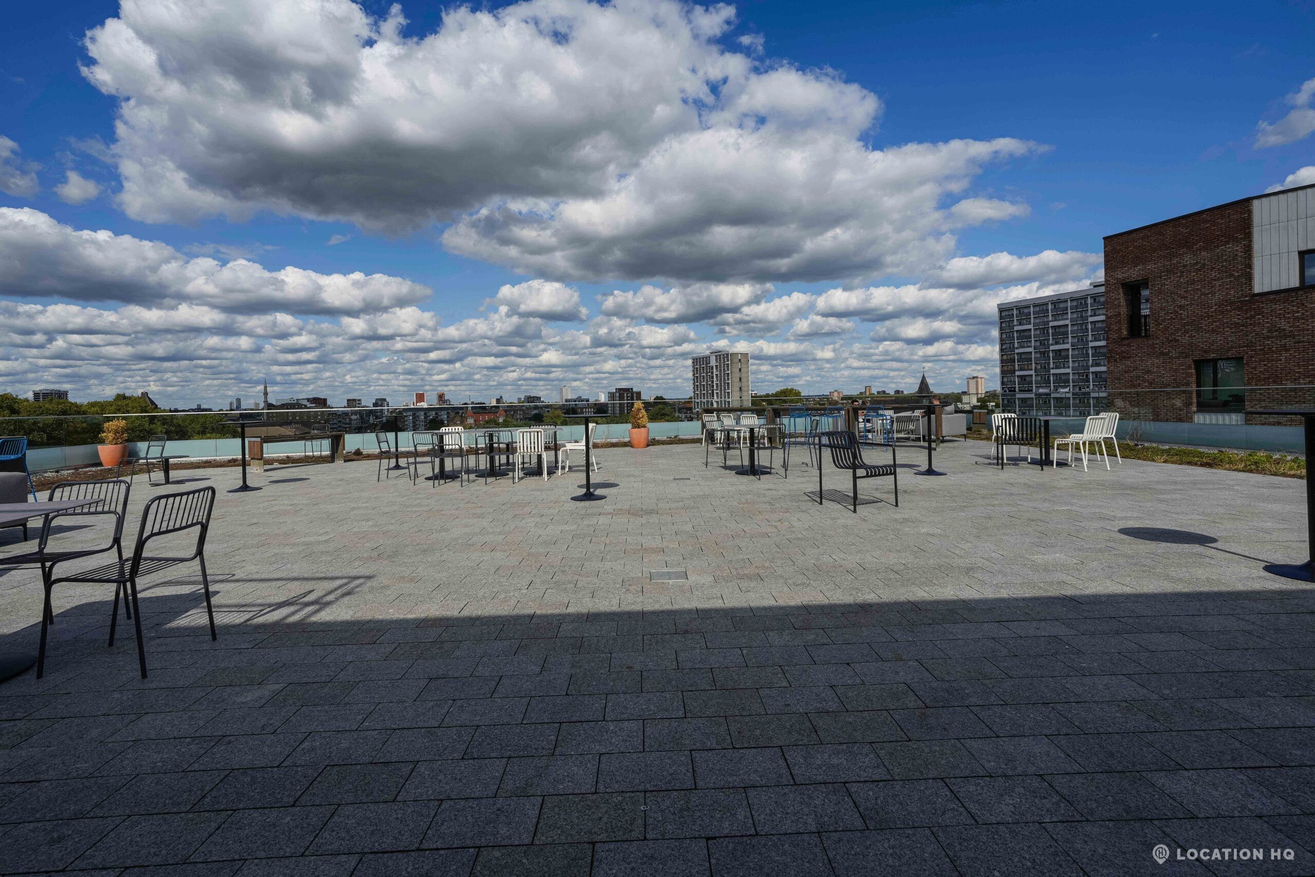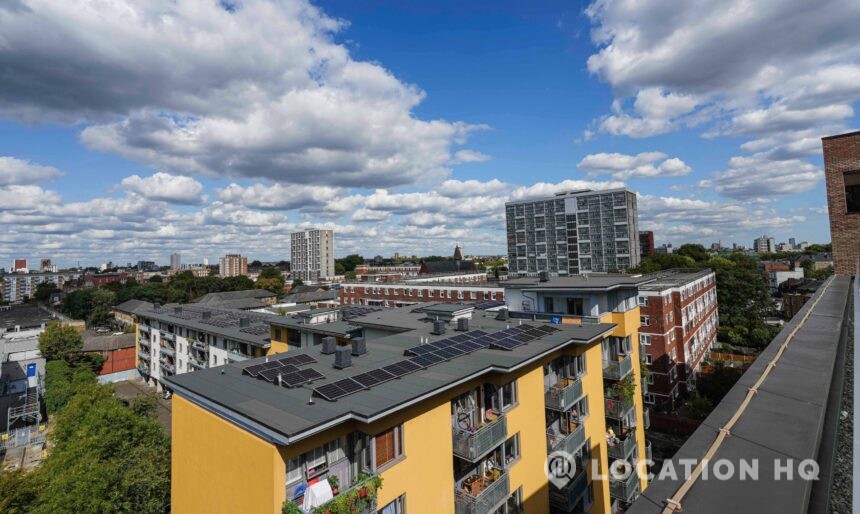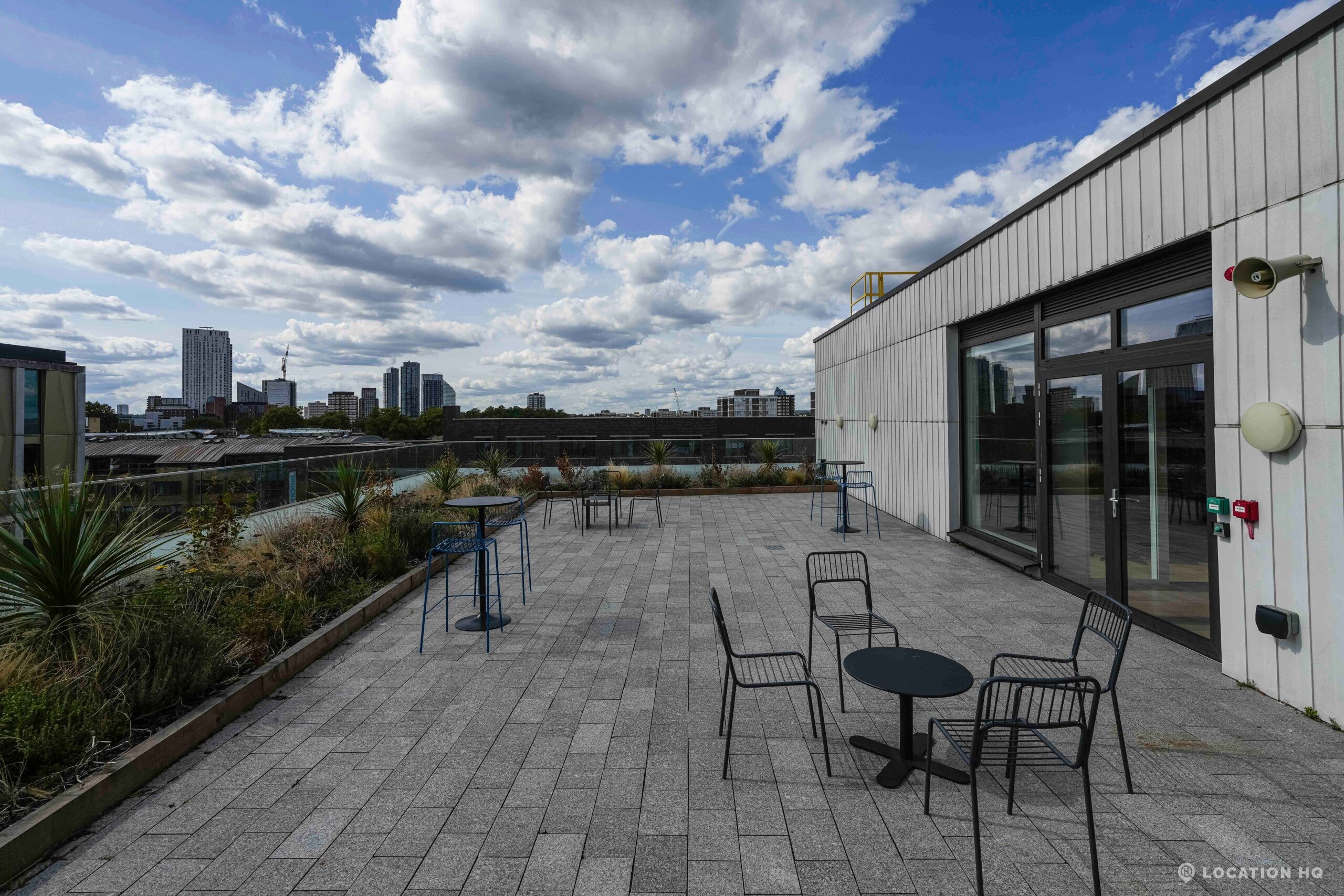 Expansive rooftop location featuring striking views of London’s skyline and adjacent railway tracks, ideal for dramatic urban scenes. The setting combines industrial character with sweeping city vistas, offering filmmakers a versatile backdrop for action sequences, atmospheric shoots, or stylish cityscape photography.