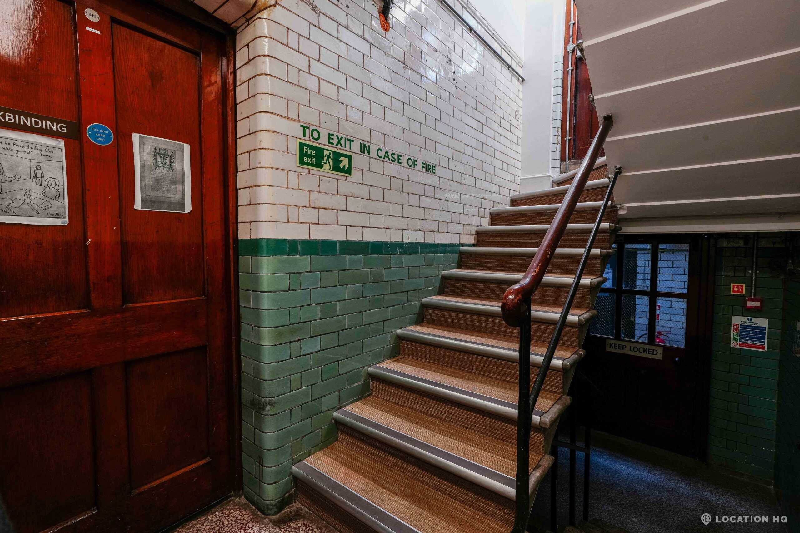 The Tiled Corridor. Defined by patterned floors, tiled staircases and clean architectural lines. Opening out to a tiled courtyard, the space feels ordered and timeless, with repeating textures and light that moves naturally along the surfaces.